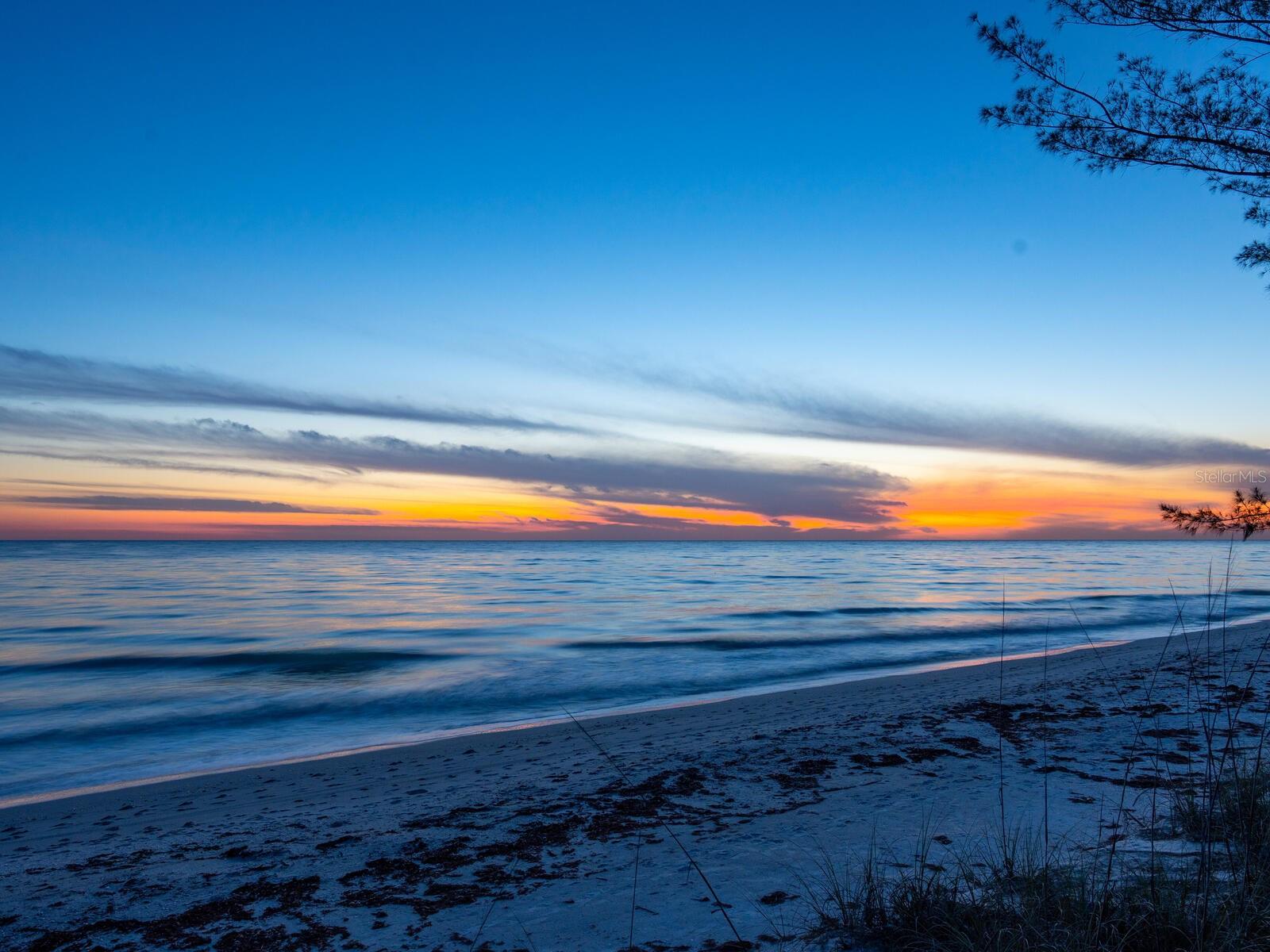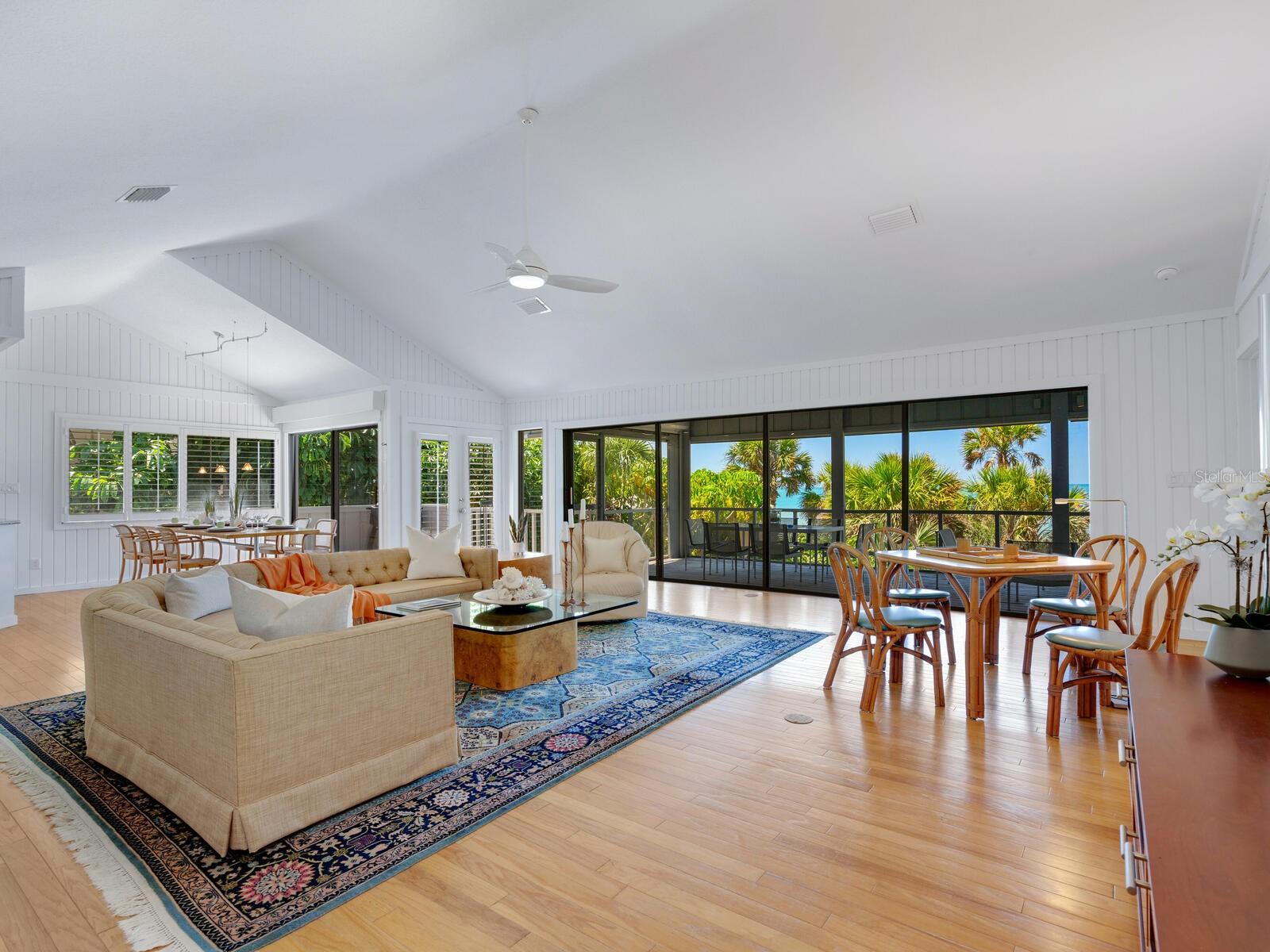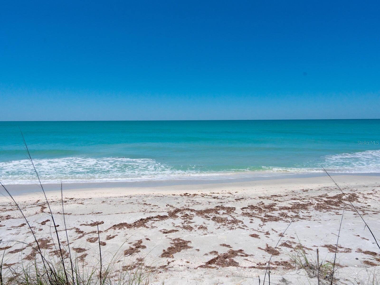 Welcome to Osmyrrah, a blending of the senses. With a focus on the white sand beach and tranquil seascape, this quintessential beach home was designed for organic, relaxed living. Positioned on the exclusive island of Casey Key with arguably the most beautiful vistas on the Gulf Coast and coveted, private, pristine beachfront where you’ll experience incredible blazing sunsets over azure waters in lush, natural private surroundings. Designed by architect George Palermo, the main home offers nearly 3,000 square feet of elevated living space in an open-concept floor plan. Soaring ceilings in the large great room and dining room flow easily to the spacious kitchen, all with fabulous water views. Grill or sun on the open deck just off the kitchen. Dine al fresco on the large, screened porch and savor gulf views and balmy breezes as the colorful palette in the sky transforms at sunset over the turquoise waters. The gulf front primary suite offers water views, soaring ceiling, luxurious renovated bath and spacious walk-in closet. An office, guest bedroom and full bath complete the northwest side of the home. On the south side, you’ll discover a second spacious primary suite addition with a full bath and walk-in closet, and laundry room with a full-size washer and dryer. Your guests will adore the charming 360-square-foot guest house with a private entrance, high ceilings, living room, bedroom, full bath and kitchenette, and just steps to the beach and outdoor shower, an invigorating way to wash up after a day at the beach. HVAC replaced 2023, new roof 2019. Two-car garage. Expansive outdoor under-home storage area, perfect for a shaded sitting area, housing kayaks, surfboards, boats and other large water toys. Follow the walkway to the beachfront deck to stairs that lead to the sand and water. You’ll feel as though you are on an island in the Caribbean. If you dream of living on the beach with your toes in the sand, collecting shells by the water’s edge, watching dolphins at play and being mesmerized by spectacular sunsets and stars each night, this may be your opportunity to own a gulf front beach house on one of the most low-key, exclusive barrier islands on Florida’s west coast. Includes three-foot deeded access easement across to the bay, and reciprocal 3-foot beach access easement for the bayside neighbor. Casey Key is an 8-mile island with meandering roads and less than 400 single-family homes. Gulf front residents own their beaches to the mean high-water line and new construction is limited to single-family homes. Located south of the historic Blackburn Point swing bridge which offers easy access to this magical island. Golf, tennis, upscale restaurants, shopping, medical facilities and schools are nearby, including the nationally acclaimed Pine View School. Culturally rich downtown Sarasota’s restaurants, theatre, ballet, opera, museums, galleries and shopping are just 30 minutes by car over the north bridge and Venice Island’s charming downtown is only 15 minutes by car over the south bridge. Convenient access to Interstate 75, and the area's private and commercial airports.