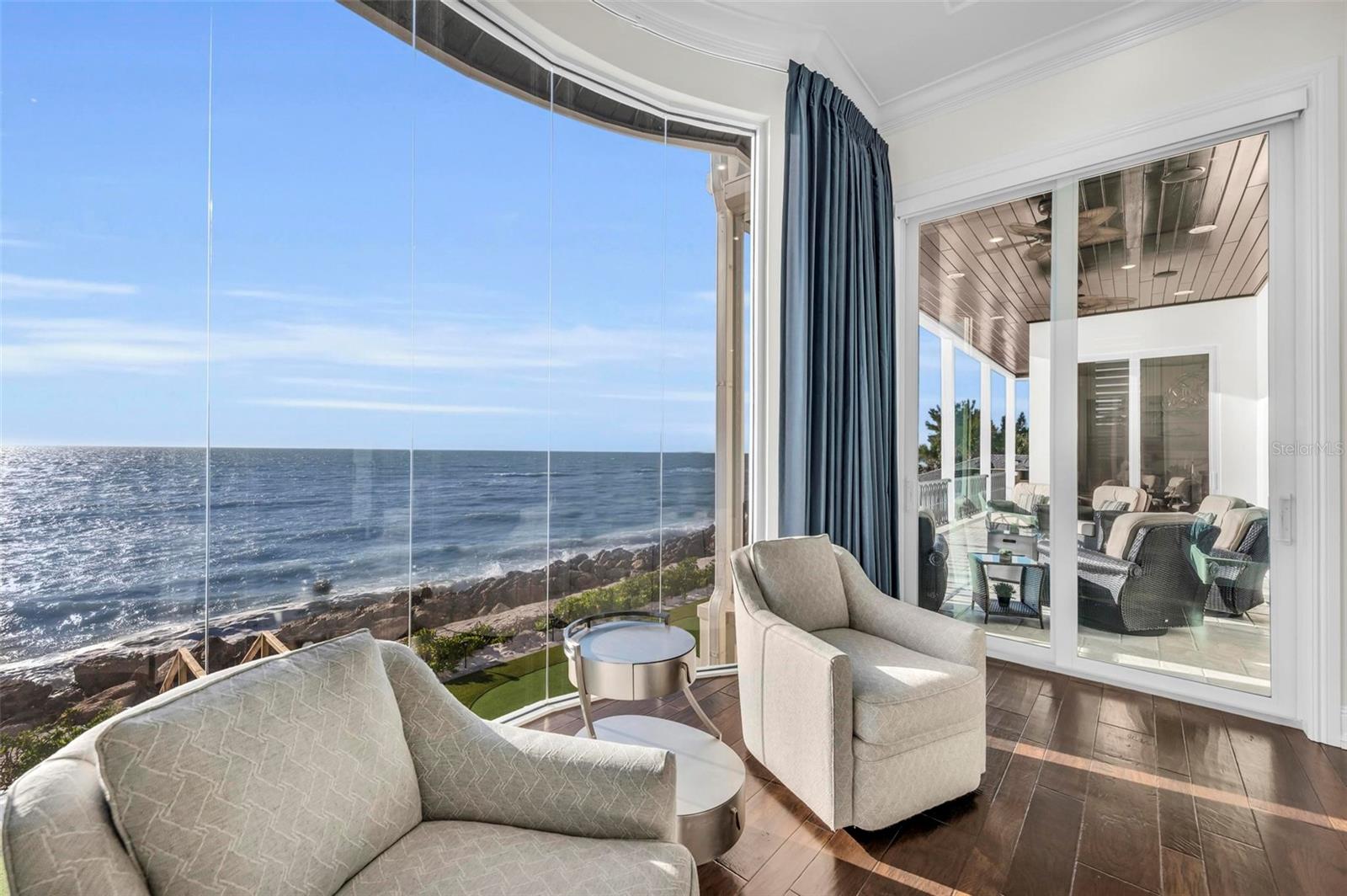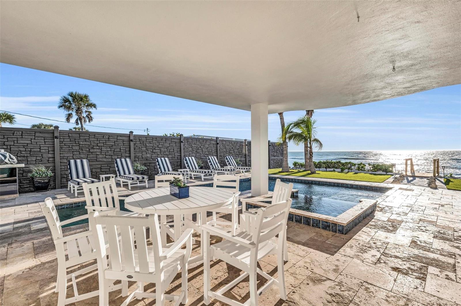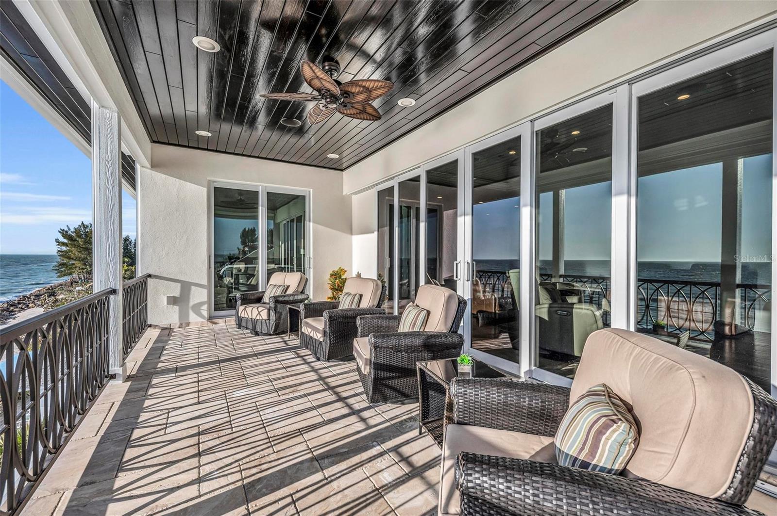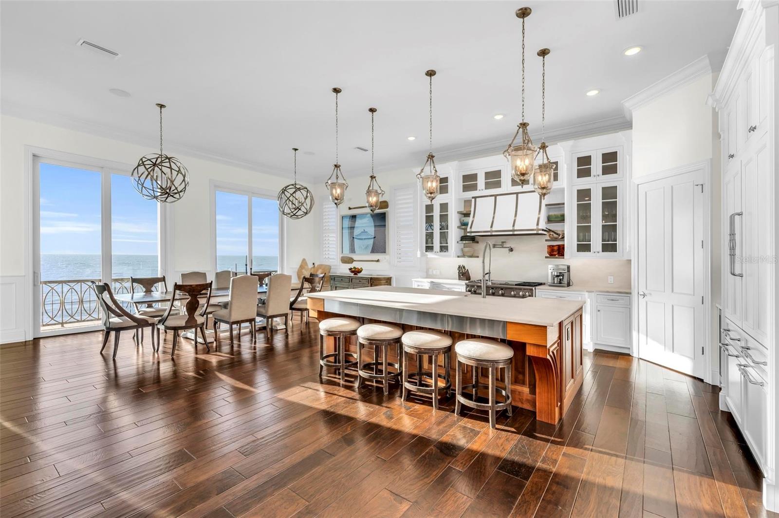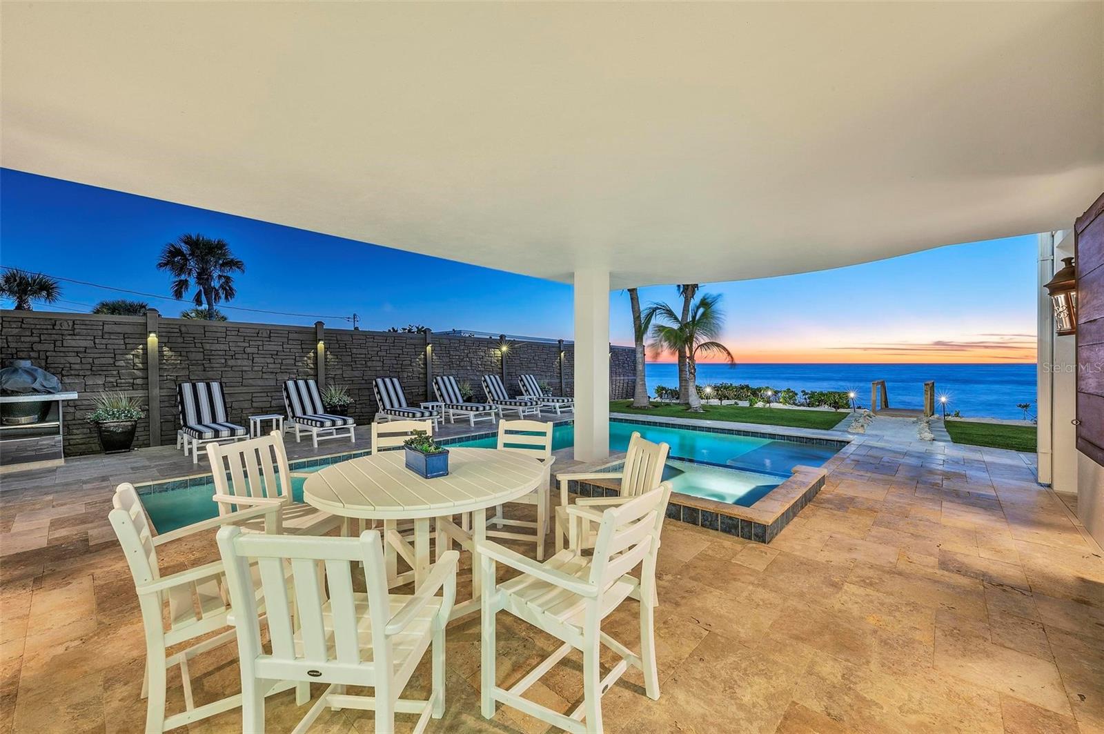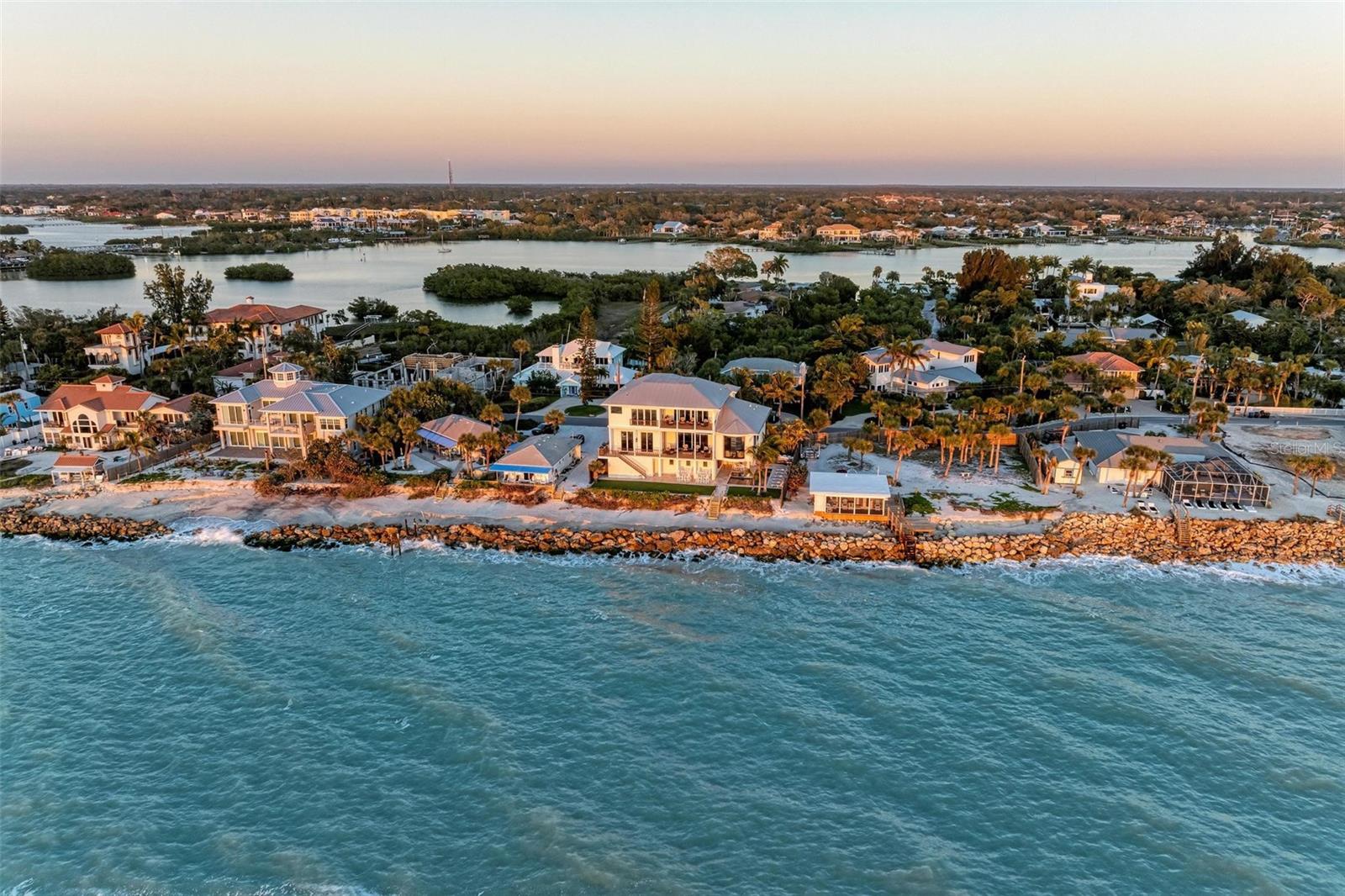 Nestled along the pristine shores of Casey Key, this luxurious residence optimizes coastal living at its finest. Boasting breathtaking panoramic views of the Gulf of Mexico, this 4-bedroom, 4.5-bathroom plus pool room with full bath, home is a masterpiece of architectural design and opulent comfort. Upon entering, guests are greeted by an elegant foyer leading to a spacious living area adorned with floor-to-ceiling windows and balcony, allowing natural light to cascade throughout the space and offering uninterrupted vistas of the turquoise waters beyond. The open-concept layout seamlessly connects the living room, dining area, and gourmet kitchen, creating an ideal setting for entertaining or simply enjoying tranquil evenings with loved ones. The kitchen is a chef's dream, featuring top-of-the-line appliances, custom cabinetry, and a center island with bar seating. Adjacent to the kitchen is an inclusive dining area, perfect for enjoying morning coffee while soaking in the breathtaking views or entertaining guests for dinner parties. For added convenience, an elevator provides easy access to all levels of the home, ensuring accessibility for residents and guests alike. The master suite, located on the main floor, is a sanctuary unto itself, complete with a spa-like bathroom featuring a walk-in shower, dual vanities, and a walk-in closet. With floor to ceiling picture windows, waking to the serene views is easy with remote shades for optimal relaxation and resting. On the second floor, you'll discover three additional bedroom suites, each providing serene havens. One suite could be a second master suite with soaking tub, dual vanity, and walk-in shower and closet that provide a private escape of expansive coastal views. Adjacent to these bedrooms, a family room awaits, ideal for hosting gatherings or unwinding in comfort. Step out onto the expansive balcony and immerse yourself in the soothing melody of waves crashing against the shore, enhancing the atmosphere of relaxation and tranquility. The expansive outdoor living space is an entertainer's paradise, featuring a sparkling salt water heated pool and spa overlooking the Gulf, a spacious deck for sunbathing, and a putting green for golf enthusiasts. Outdoor kitchen by the pool area and on the main level makes it easy to entertain in both areas watching the award winning sunsets of Casey Key. The pool room with dishwasher, sink, ice maker, and refrigerator plus full bath makes after pool or beach fun easily cleaned up and not tracked through the main home. Full feature sheet attached as the upgrades are endless! With its unparalleled location, luxurious amenities, and unparalleled views, this Casey Key residence offers a rare opportunity to experience coastal living at its absolute finest. Whether as a full-time residence or a vacation retreat, this magnificent home is sure to exceed even the most discerning buyer's expectations.