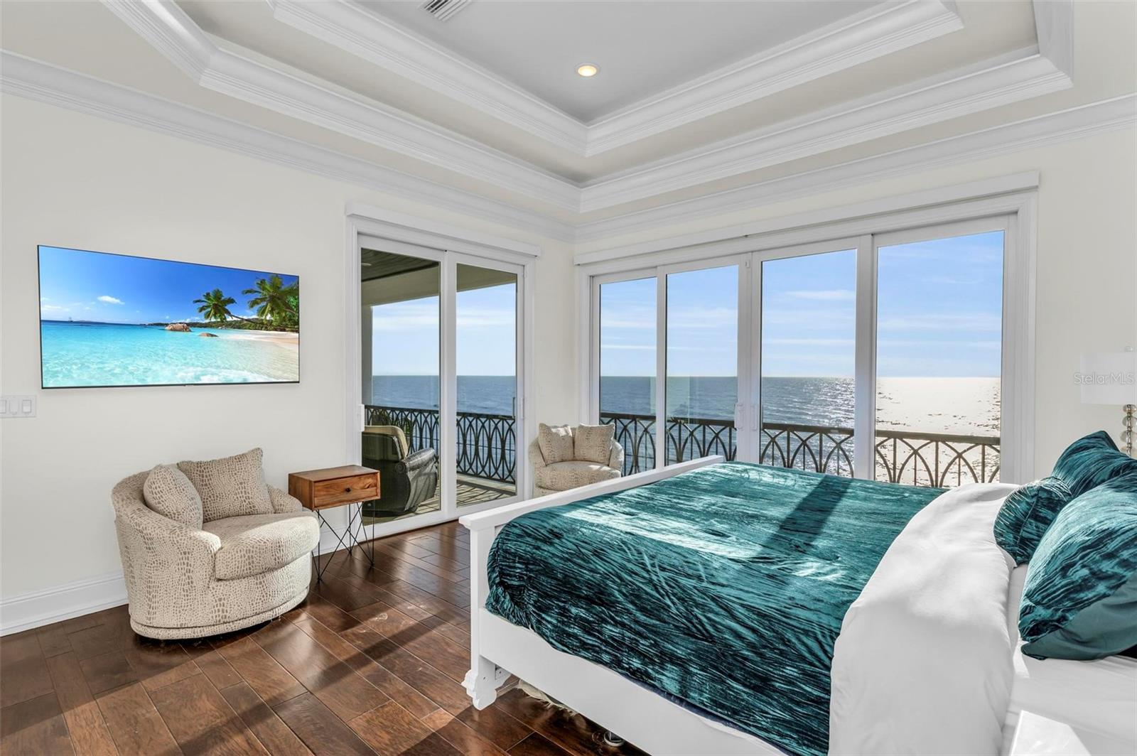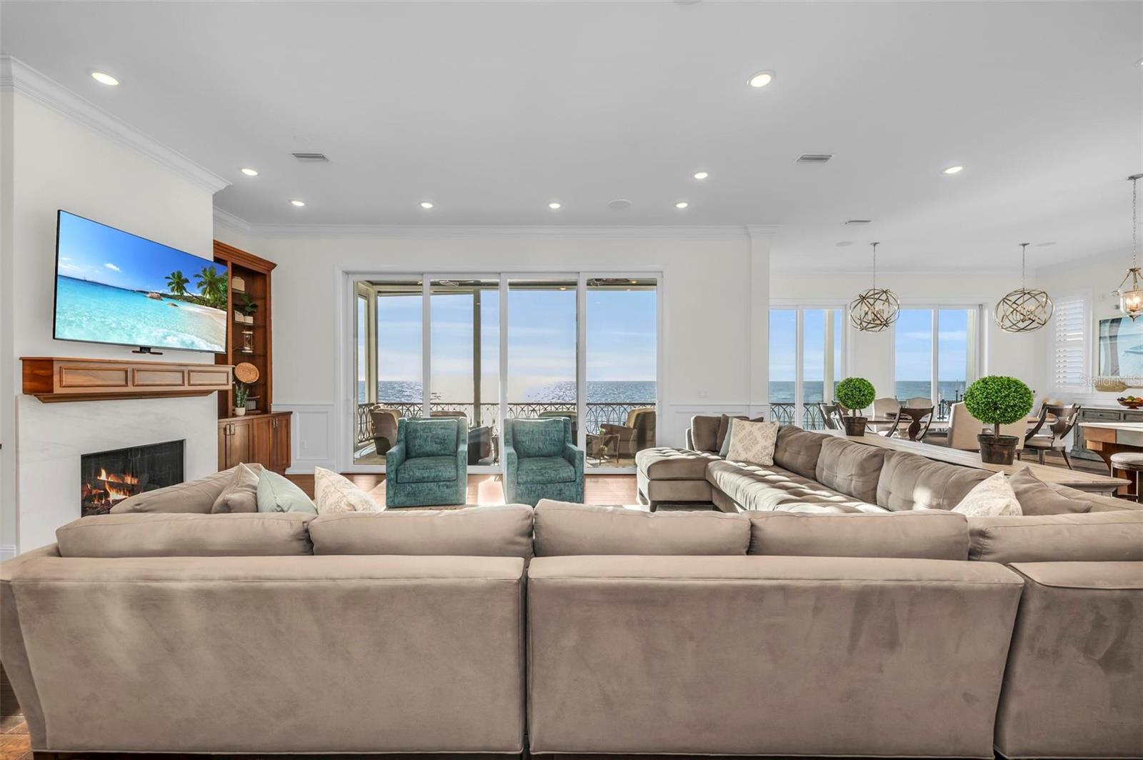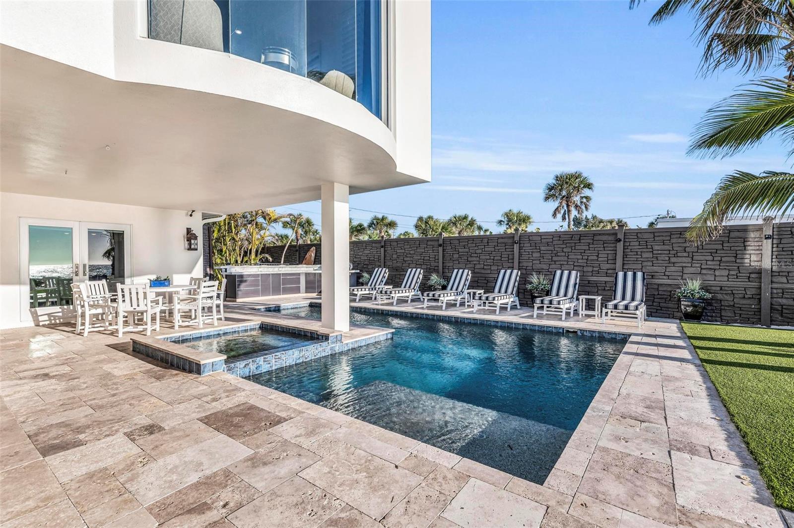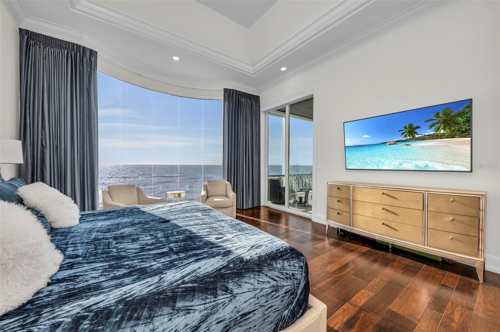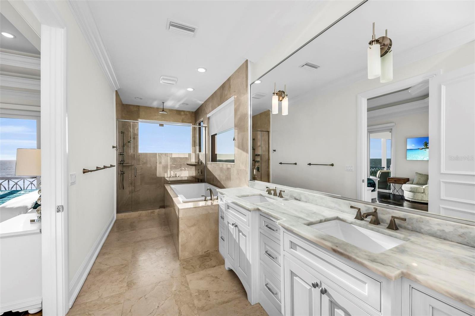 Nestled along the pristine shores of Casey Key, this luxurious residence optimizes coastal living at its finest. Boasting breathtaking panoramic views of the Gulf of Mexico, this 4-bedroom, 4.5-bathroom plus pool room with full bath, home is a masterpiece of architectural design and opulent comfort. Upon entering, guests are greeted by an elegant foyer leading to a spacious living area adorned with floor-to-ceiling windows and balcony, allowing natural light to cascade throughout the space and offering uninterrupted vistas of the turquoise waters beyond. The open-concept layout seamlessly connects the living room, dining area, and gourmet kitchen, creating an ideal setting for entertaining or simply enjoying tranquil evenings with loved ones. The kitchen is a chef's dream, featuring top-of-the-line appliances, custom cabinetry, and a center island with bar seating. Adjacent to the kitchen is an inclusive dining area, perfect for enjoying morning coffee while soaking in the breathtaking views or entertaining guests for dinner parties. For added convenience, an elevator provides easy access to all levels of the home, ensuring accessibility for residents and guests alike. The master suite, located on the main floor, is a sanctuary unto itself, complete with a spa-like bathroom featuring a walk-in shower, dual vanities, and a walk-in closet. With floor to ceiling picture windows, waking to the serene views is easy with remote shades for optimal relaxation and resting. On the second floor, you'll discover three additional bedroom suites, each providing serene havens. One suite could be a second master suite with soaking tub, dual vanity, and walk-in shower and closet that provide a private escape of expansive coastal views. Adjacent to these bedrooms, a family room awaits, ideal for hosting gatherings or unwinding in comfort. Step out onto the expansive balcony and immerse yourself in the soothing melody of waves crashing against the shore, enhancing the atmosphere of relaxation and tranquility. The expansive outdoor living space is an entertainer's paradise, featuring a sparkling salt water heated pool and spa overlooking the Gulf, a spacious deck for sunbathing, and a putting green for golf enthusiasts. Outdoor kitchen by the pool area and on the main level makes it easy to entertain in both areas watching the award winning sunsets of Casey Key. The pool room with dishwasher, sink, ice maker, and refrigerator plus full bath makes after pool or beach fun easily cleaned up and not tracked through the main home. Full feature sheet attached as the upgrades are endless! With its unparalleled location, luxurious amenities, and unparalleled views, this Casey Key residence offers a rare opportunity to experience coastal living at its absolute finest. Whether as a full-time residence or a vacation retreat, this magnificent home is sure to exceed even the most discerning buyer's expectations.