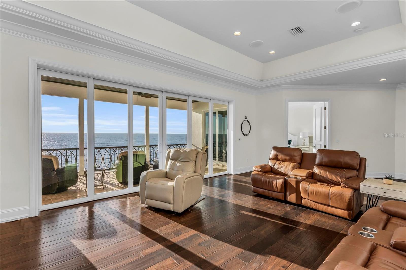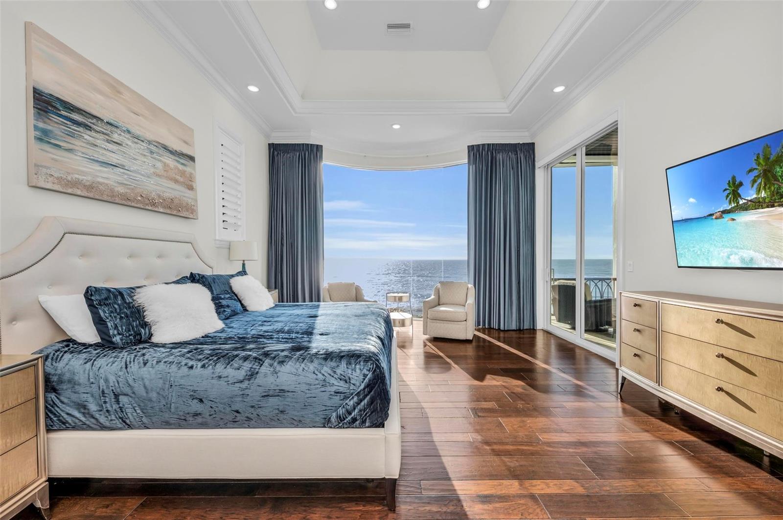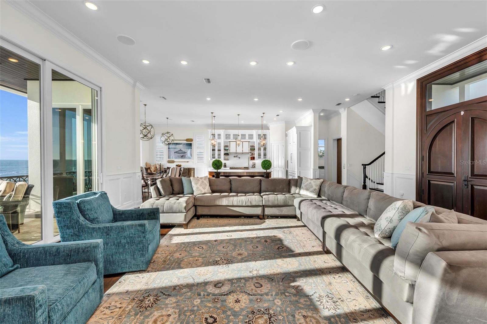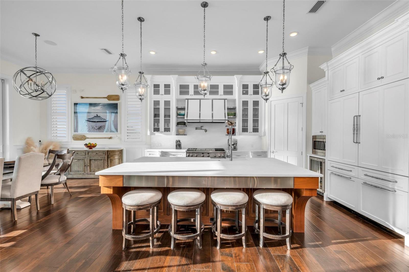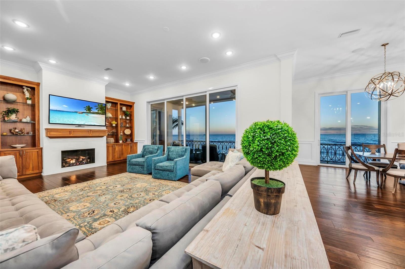Nestled along the pristine shores of Casey Key, this luxurious residence optimizes coastal living at its finest. Boasting breathtaking panoramic views of the Gulf of Mexico, this 4-bedroom, 4.5-bathroom plus pool room with full bath, home is a masterpiece of architectural design and opulent comfort. Upon entering, guests are greeted by an elegant foyer leading to a spacious living area adorned with floor-to-ceiling windows and balcony, allowing natural light to cascade throughout the space and offering uninterrupted vistas of the turquoise waters beyond. The open-concept layout seamlessly connects the living room, dining area, and gourmet kitchen, creating an ideal setting for entertaining or simply enjoying tranquil evenings with loved ones. The kitchen is a chef's dream, featuring top-of-the-line appliances, custom cabinetry, and a center island with bar seating. Adjacent to the kitchen is an inclusive dining area, perfect for enjoying morning coffee while soaking in the breathtaking views or entertaining guests for dinner parties. For added convenience, an elevator provides easy access to all levels of the home, ensuring accessibility for residents and guests alike. The master suite, located on the main floor, is a sanctuary unto itself, complete with a spa-like bathroom featuring a walk-in shower, dual vanities, and a walk-in closet. With floor to ceiling picture windows, waking to the serene views is easy with remote shades for optimal relaxation and resting. On the second floor, you'll discover three additional bedroom suites, each providing serene havens. One suite could be a second master suite with soaking tub, dual vanity, and walk-in shower and closet that provide a private escape of expansive coastal views. Adjacent to these bedrooms, a family room awaits, ideal for hosting gatherings or unwinding in comfort. Step out onto the expansive balcony and immerse yourself in the soothing melody of waves crashing against the shore, enhancing the atmosphere of relaxation and tranquility. The expansive outdoor living space is an entertainer's paradise, featuring a sparkling salt water heated pool and spa overlooking the Gulf, a spacious deck for sunbathing, and a putting green for golf enthusiasts. Outdoor kitchen by the pool area and on the main level makes it easy to entertain in both areas watching the award winning sunsets of Casey Key. The pool room with dishwasher, sink, ice maker, and refrigerator plus full bath makes after pool or beach fun easily cleaned up and not tracked through the main home. Full feature sheet attached as the upgrades are endless! With its unparalleled location, luxurious amenities, and unparalleled views, this Casey Key residence offers a rare opportunity to experience coastal living at its absolute finest. Whether as a full-time residence or a vacation retreat, this magnificent home is sure to exceed even the most discerning buyer's expectations.