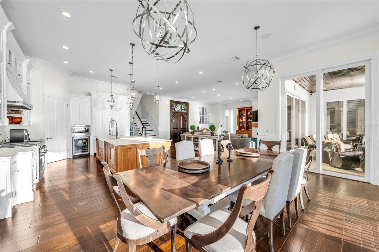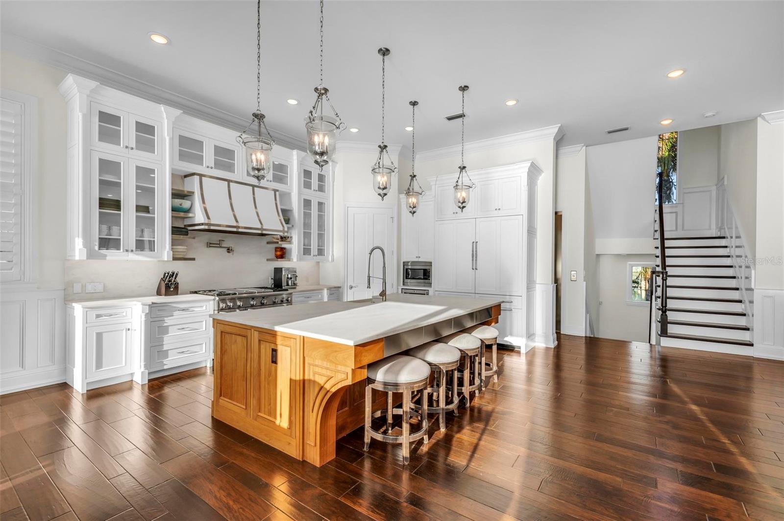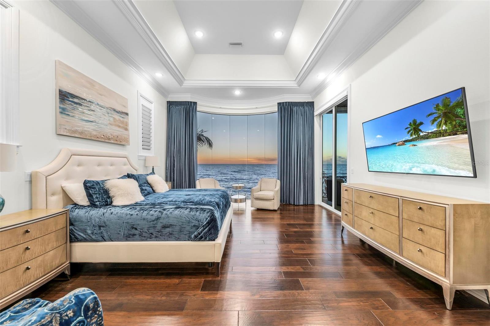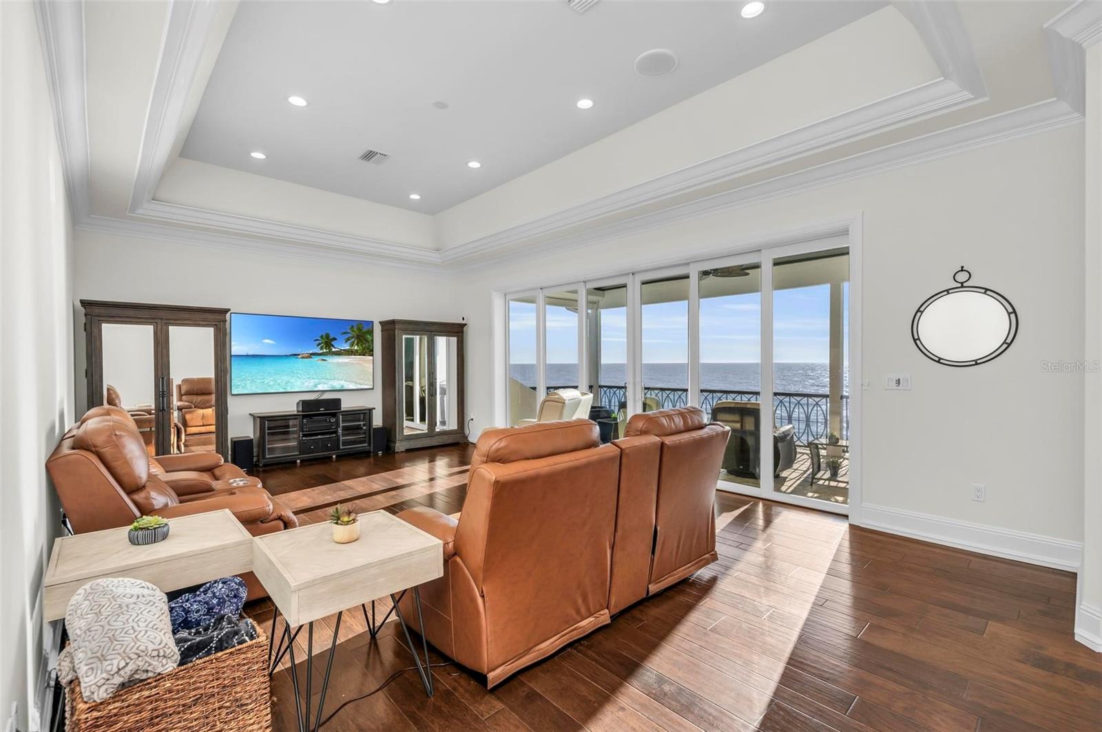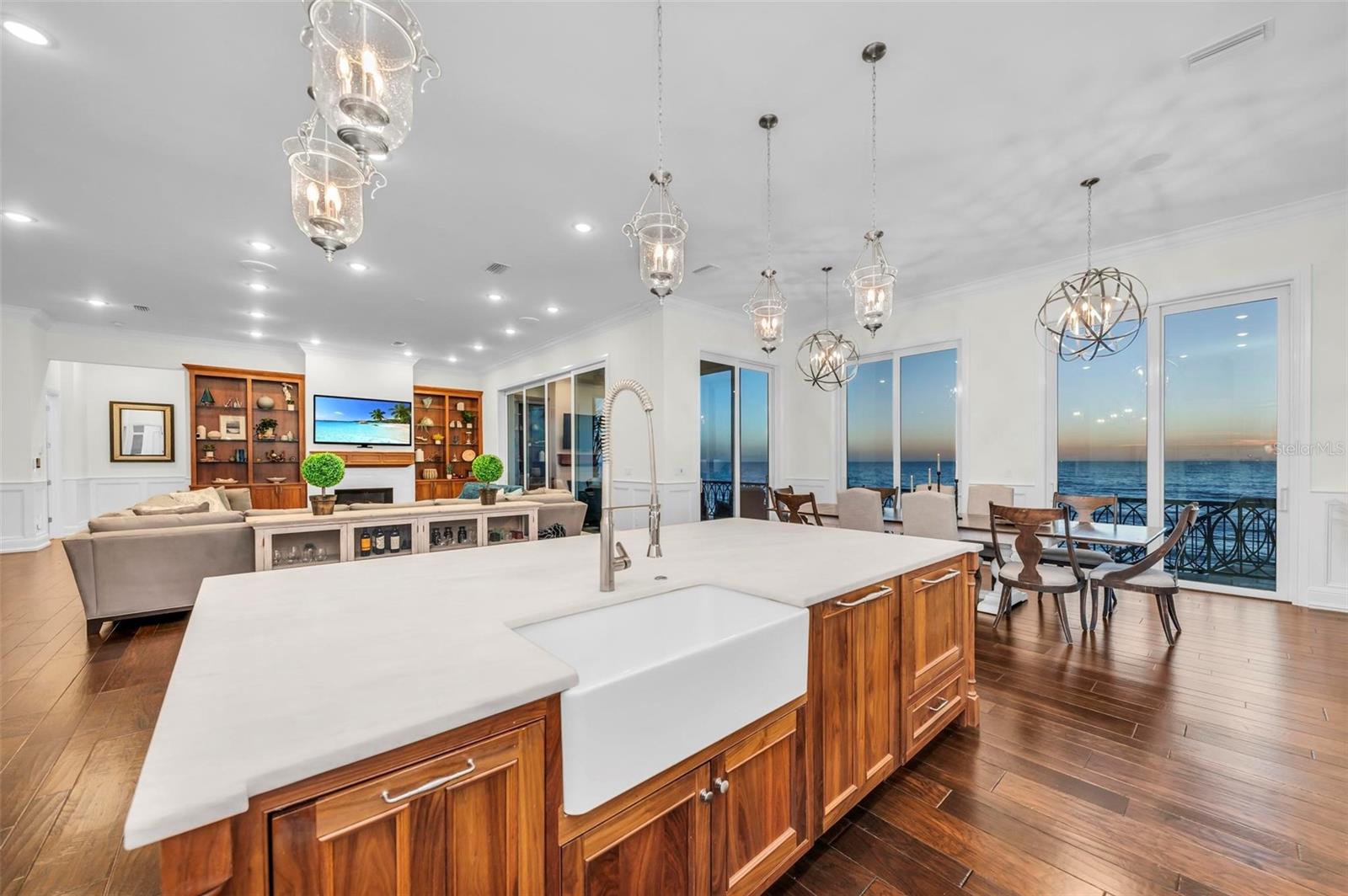 Nestled along the pristine shores of Casey Key, this luxurious residence optimizes coastal living at its finest. Boasting breathtaking panoramic views of the Gulf of Mexico, this 4-bedroom, 4.5-bathroom plus pool room with full bath, home is a masterpiece of architectural design and opulent comfort. Upon entering, guests are greeted by an elegant foyer leading to a spacious living area adorned with floor-to-ceiling windows and balcony, allowing natural light to cascade throughout the space and offering uninterrupted vistas of the turquoise waters beyond. The open-concept layout seamlessly connects the living room, dining area, and gourmet kitchen, creating an ideal setting for entertaining or simply enjoying tranquil evenings with loved ones. The kitchen is a chef's dream, featuring top-of-the-line appliances, custom cabinetry, and a center island with bar seating. Adjacent to the kitchen is an inclusive dining area, perfect for enjoying morning coffee while soaking in the breathtaking views or entertaining guests for dinner parties. For added convenience, an elevator provides easy access to all levels of the home, ensuring accessibility for residents and guests alike. The master suite, located on the main floor, is a sanctuary unto itself, complete with a spa-like bathroom featuring a walk-in shower, dual vanities, and a walk-in closet. With floor to ceiling picture windows, waking to the serene views is easy with remote shades for optimal relaxation and resting. On the second floor, you'll discover three additional bedroom suites, each providing serene havens. One suite could be a second master suite with soaking tub, dual vanity, and walk-in shower and closet that provide a private escape of expansive coastal views. Adjacent to these bedrooms, a family room awaits, ideal for hosting gatherings or unwinding in comfort. Step out onto the expansive balcony and immerse yourself in the soothing melody of waves crashing against the shore, enhancing the atmosphere of relaxation and tranquility. The expansive outdoor living space is an entertainer's paradise, featuring a sparkling salt water heated pool and spa overlooking the Gulf, a spacious deck for sunbathing, and a putting green for golf enthusiasts. Outdoor kitchen by the pool area and on the main level makes it easy to entertain in both areas watching the award winning sunsets of Casey Key. The pool room with dishwasher, sink, ice maker, and refrigerator plus full bath makes after pool or beach fun easily cleaned up and not tracked through the main home. Full feature sheet attached as the upgrades are endless! With its unparalleled location, luxurious amenities, and unparalleled views, this Casey Key residence offers a rare opportunity to experience coastal living at its absolute finest. Whether as a full-time residence or a vacation retreat, this magnificent home is sure to exceed even the most discerning buyer's expectations.