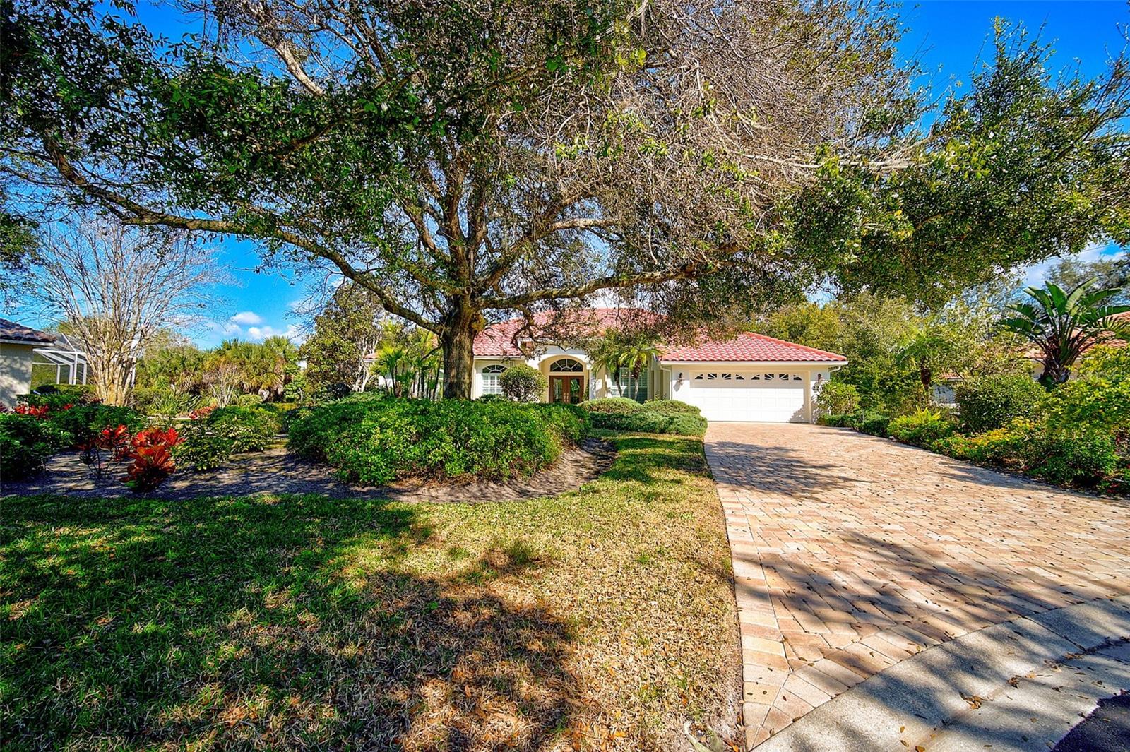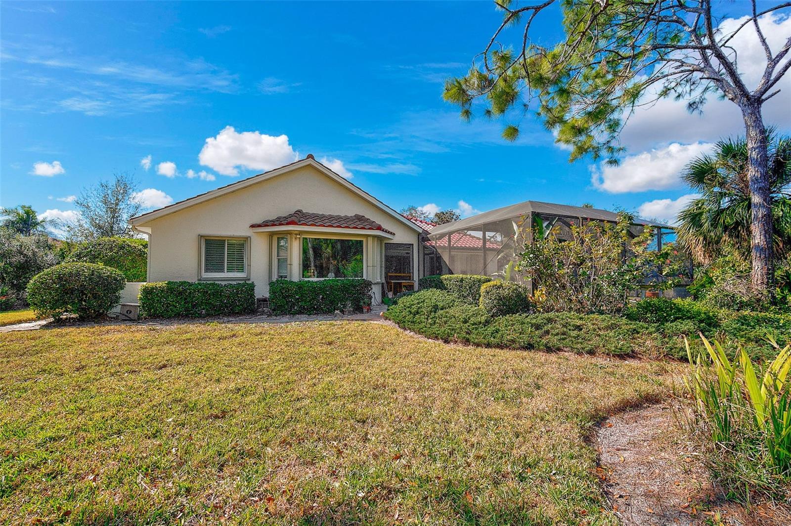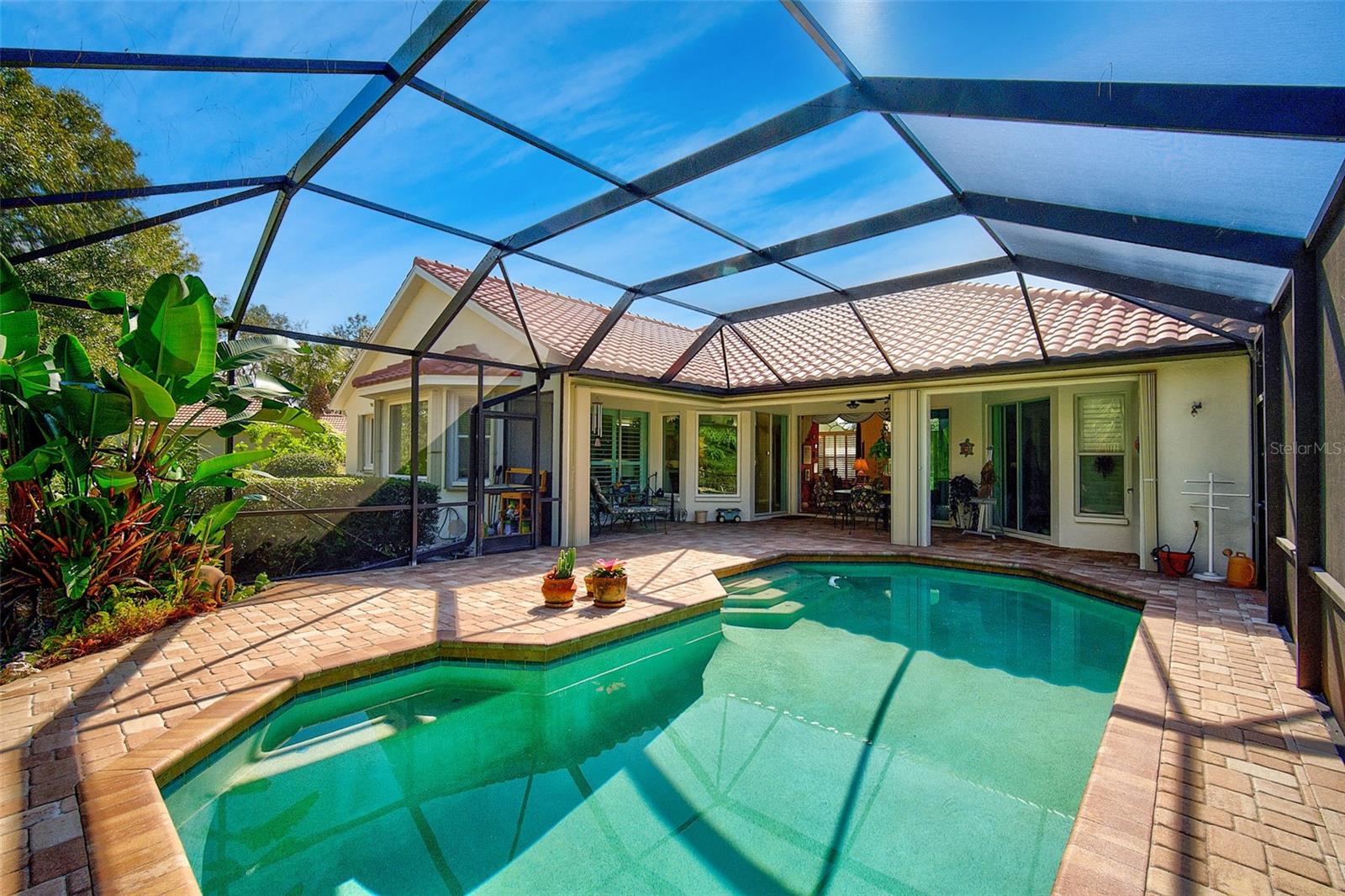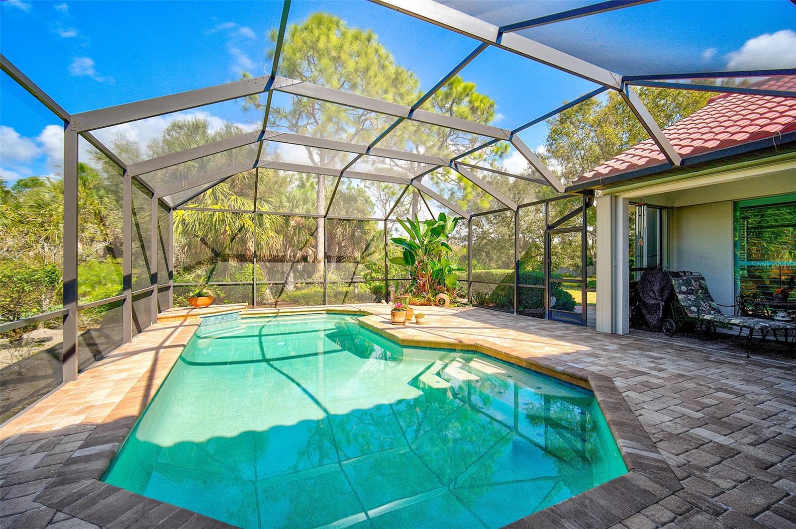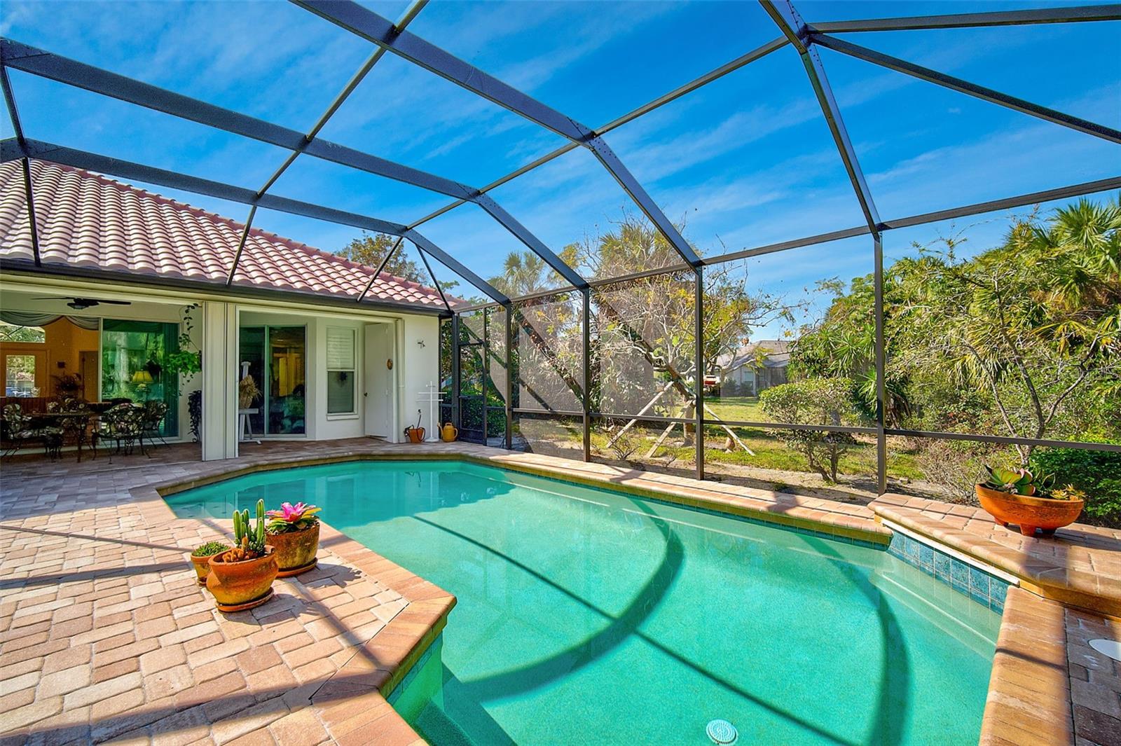 Nestled on a quaint cul-de-sac in the heart of Calusa Lakes is a gardener’s dream. Boasting privacy from every view this amazing property captures the beauty of nature, creating a seamless connection between indoor and outdoor living. The large picture window and numerous sliders bathe the home in natural sunlight and well thought out design is ideal for entertaining. The open chef’s kitchen is equipped with stainless steel appliances and an oversized dual-level island which is open to the family room. The adjoining living room and dining area flow effortlessly to the spacious primary suite with private bath area, walk-in shower and relaxing soaking tub. The two additional bedrooms are located on the opposite side of the home, creating privacy for family and friends. There is also a den or private office area, ideal for working at home, this could also be used as a 4th bedroom.. No worries here with a NEW ROOF and air conditioner installed in 2022. The home has HURRICANE SHUTTERS and has been RE-PLUMBED. This single-level family home offers a tranquil escape while floating in your private pool or just relaxing on your spacious lanai. This home is a quick ride to Nokomis beach and Venice Island with boutique shops, numerous quaint restaurants and cultural activities. The back gate for residence only provides quick access to the new Sarasota Memorial Hospital, I-75 to Sarasota, and airport options north and south. Calusa Lakes is located in a beautiful semi-private golf community where membership is not mandatory for home ownership, there is no CDD and the HOA fee is a low $300 a quarter. BE SURE TO VIEW THE 3-D AND AERIAL TOURS.