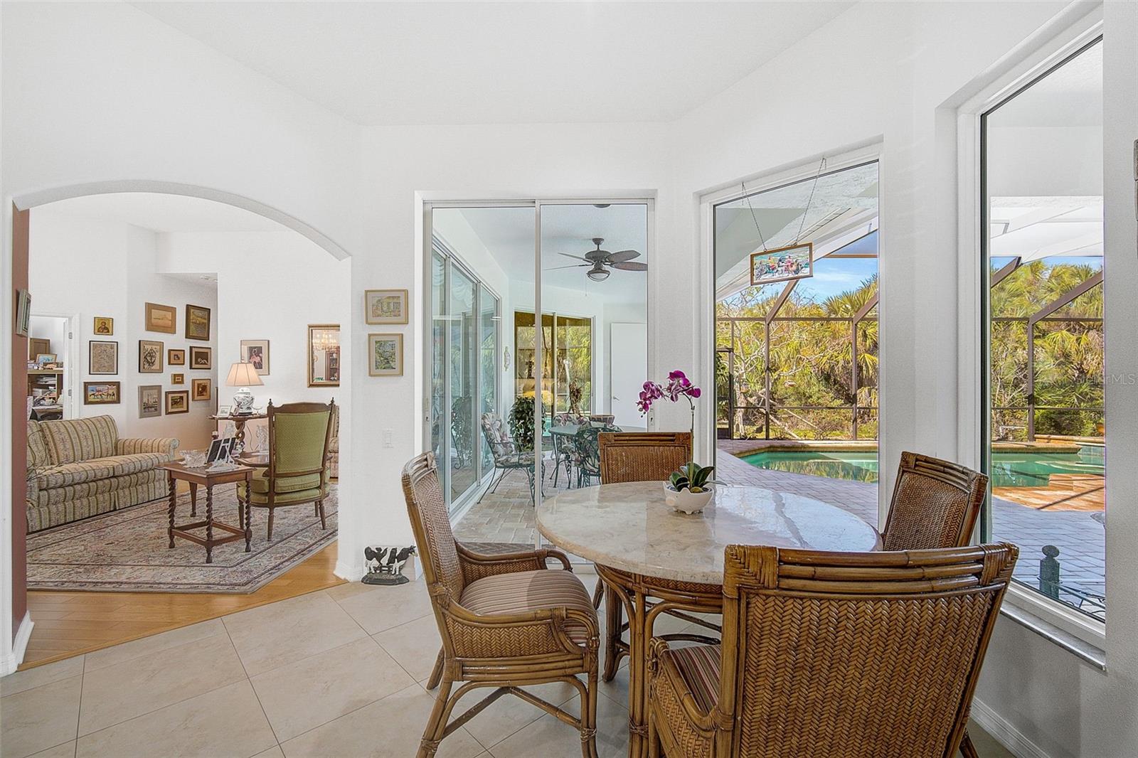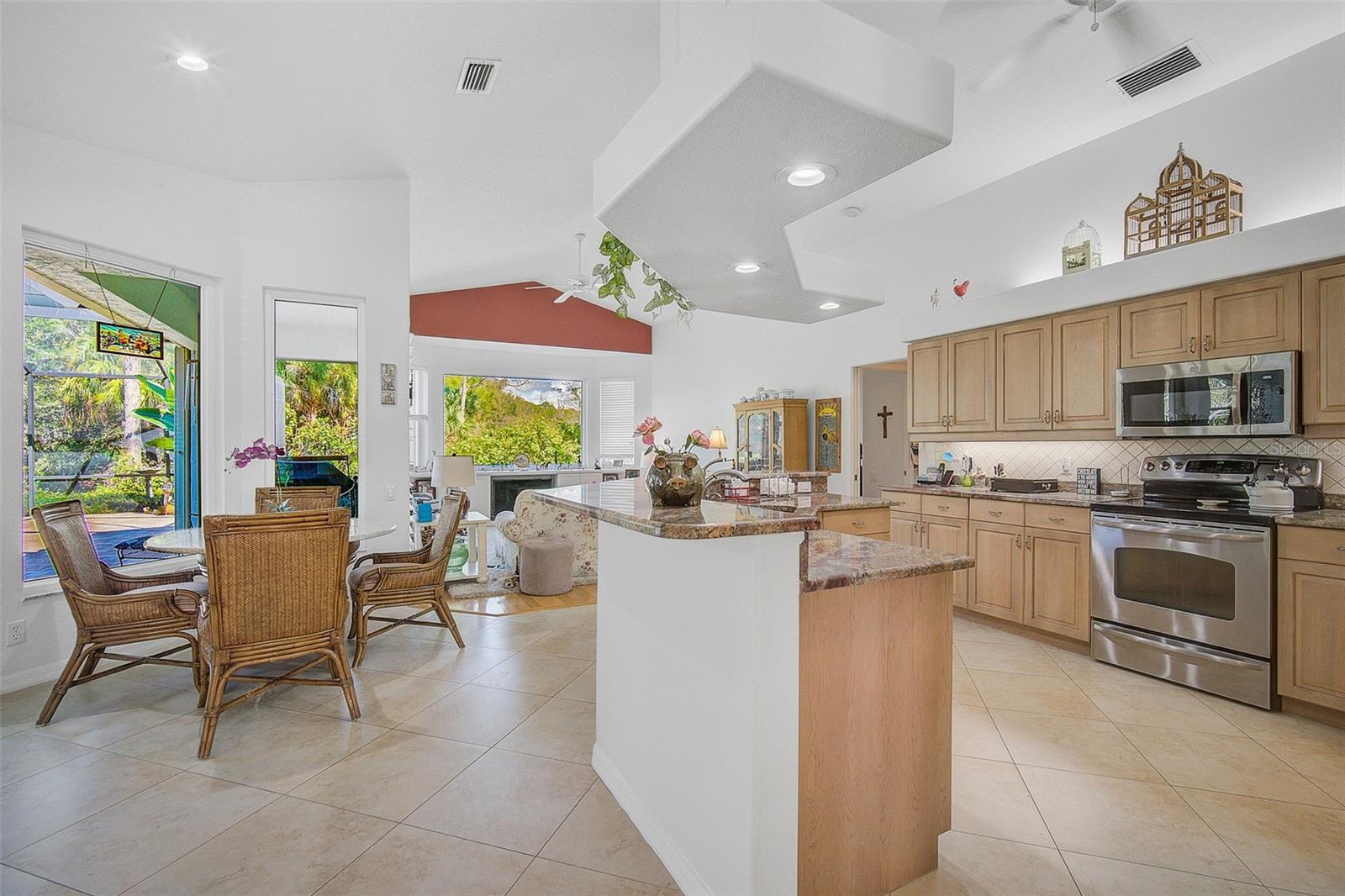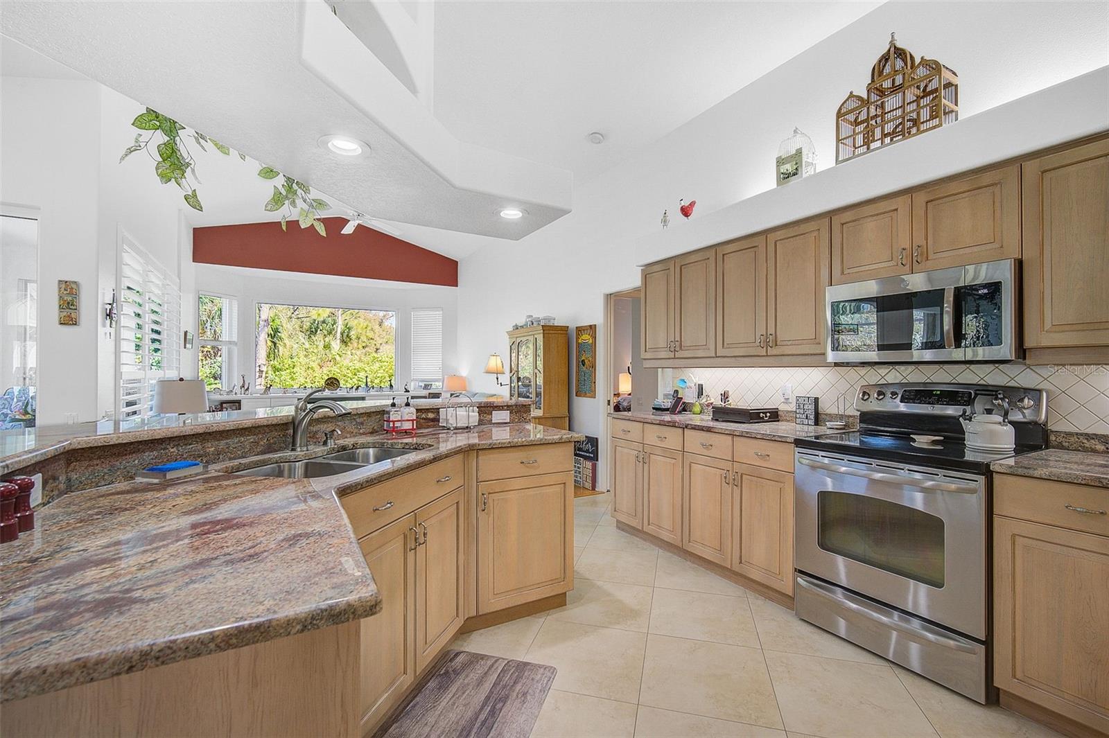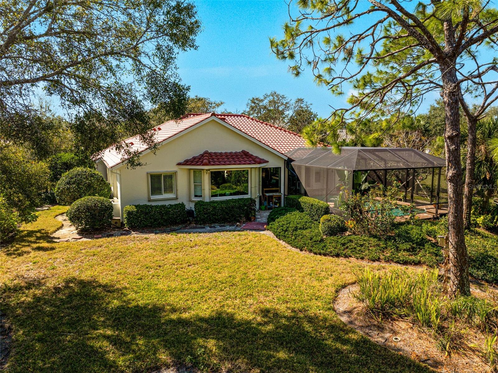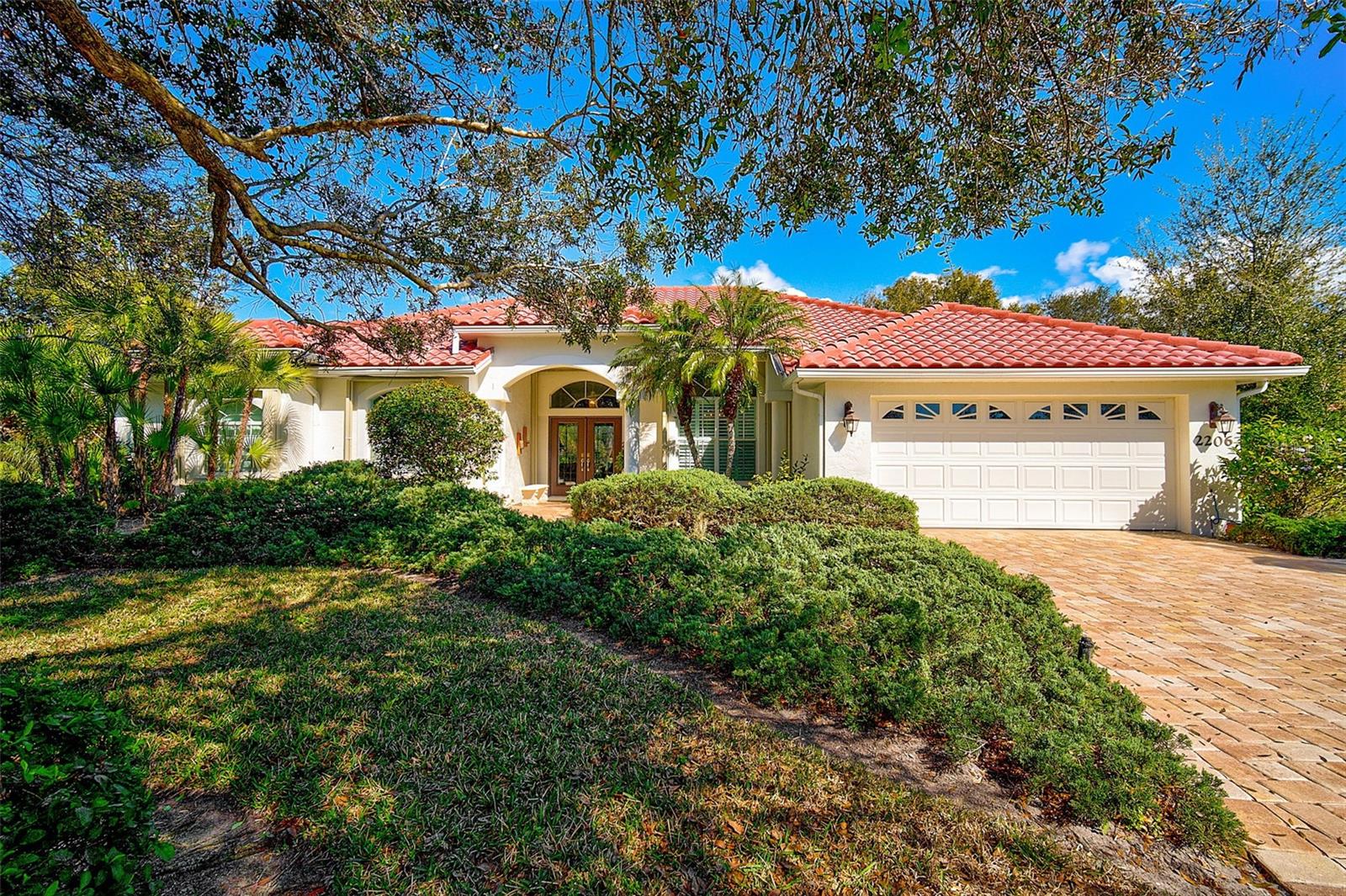 Nestled on a quaint cul-de-sac in the heart of Calusa Lakes is a gardener’s dream. Boasting privacy from every view this amazing property captures the beauty of nature, creating a seamless connection between indoor and outdoor living. The large picture window and numerous sliders bathe the home in natural sunlight and well thought out design is ideal for entertaining. The open chef’s kitchen is equipped with stainless steel appliances and an oversized dual-level island which is open to the family room. The adjoining living room and dining area flow effortlessly to the spacious primary suite with private bath area, walk-in shower and relaxing soaking tub. The two additional bedrooms are located on the opposite side of the home, creating privacy for family and friends. There is also a den or private office area, ideal for working at home, this could also be used as a 4th bedroom.. No worries here with a NEW ROOF and air conditioner installed in 2022. The home has HURRICANE SHUTTERS and has been RE-PLUMBED. This single-level family home offers a tranquil escape while floating in your private pool or just relaxing on your spacious lanai. This home is a quick ride to Nokomis beach and Venice Island with boutique shops, numerous quaint restaurants and cultural activities. The back gate for residence only provides quick access to the new Sarasota Memorial Hospital, I-75 to Sarasota, and airport options north and south. Calusa Lakes is located in a beautiful semi-private golf community where membership is not mandatory for home ownership, there is no CDD and the HOA fee is a low $300 a quarter. BE SURE TO VIEW THE 3-D AND AERIAL TOURS.