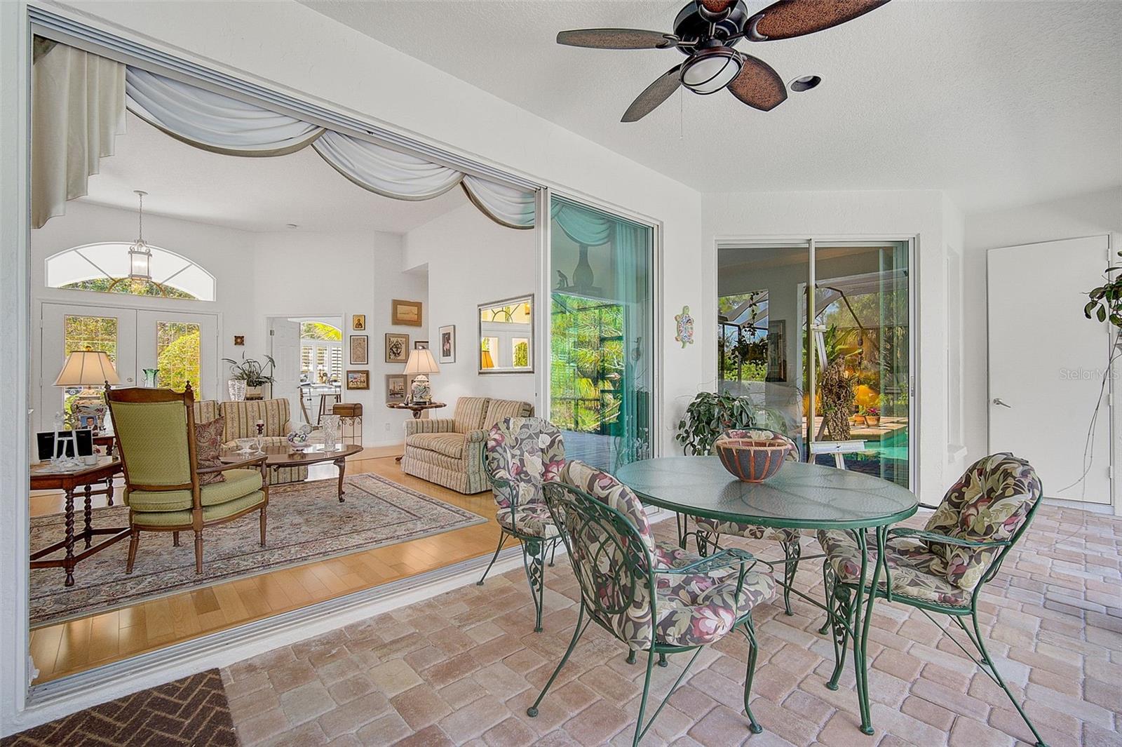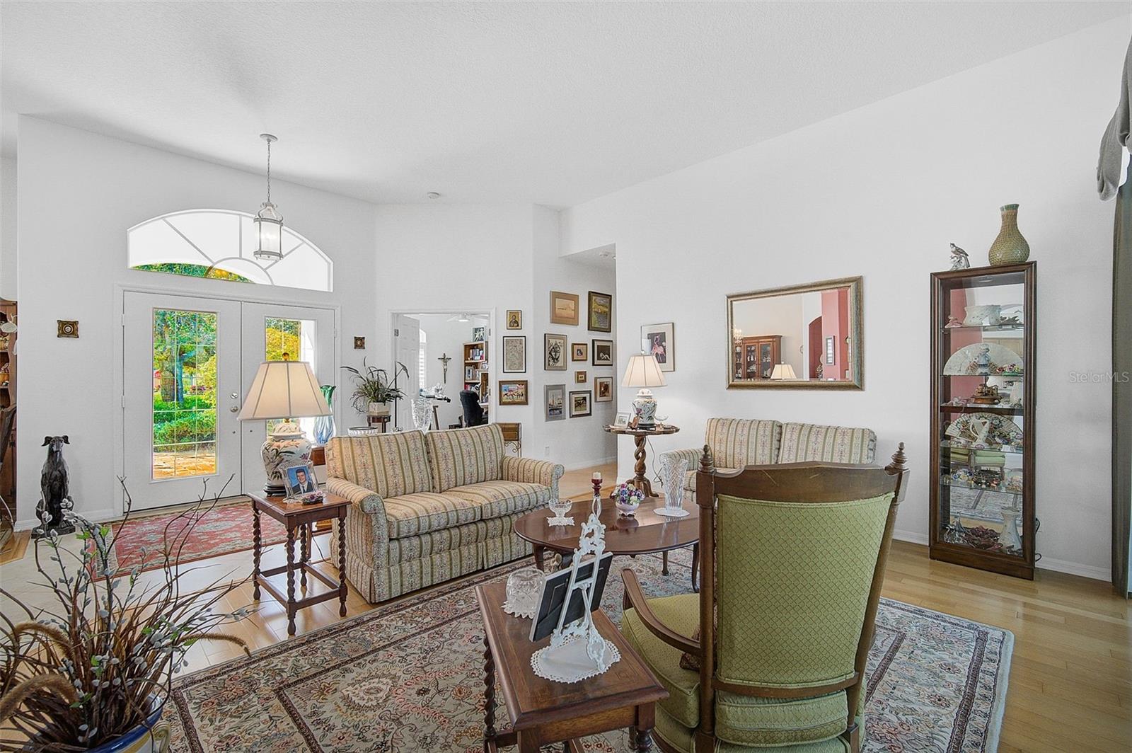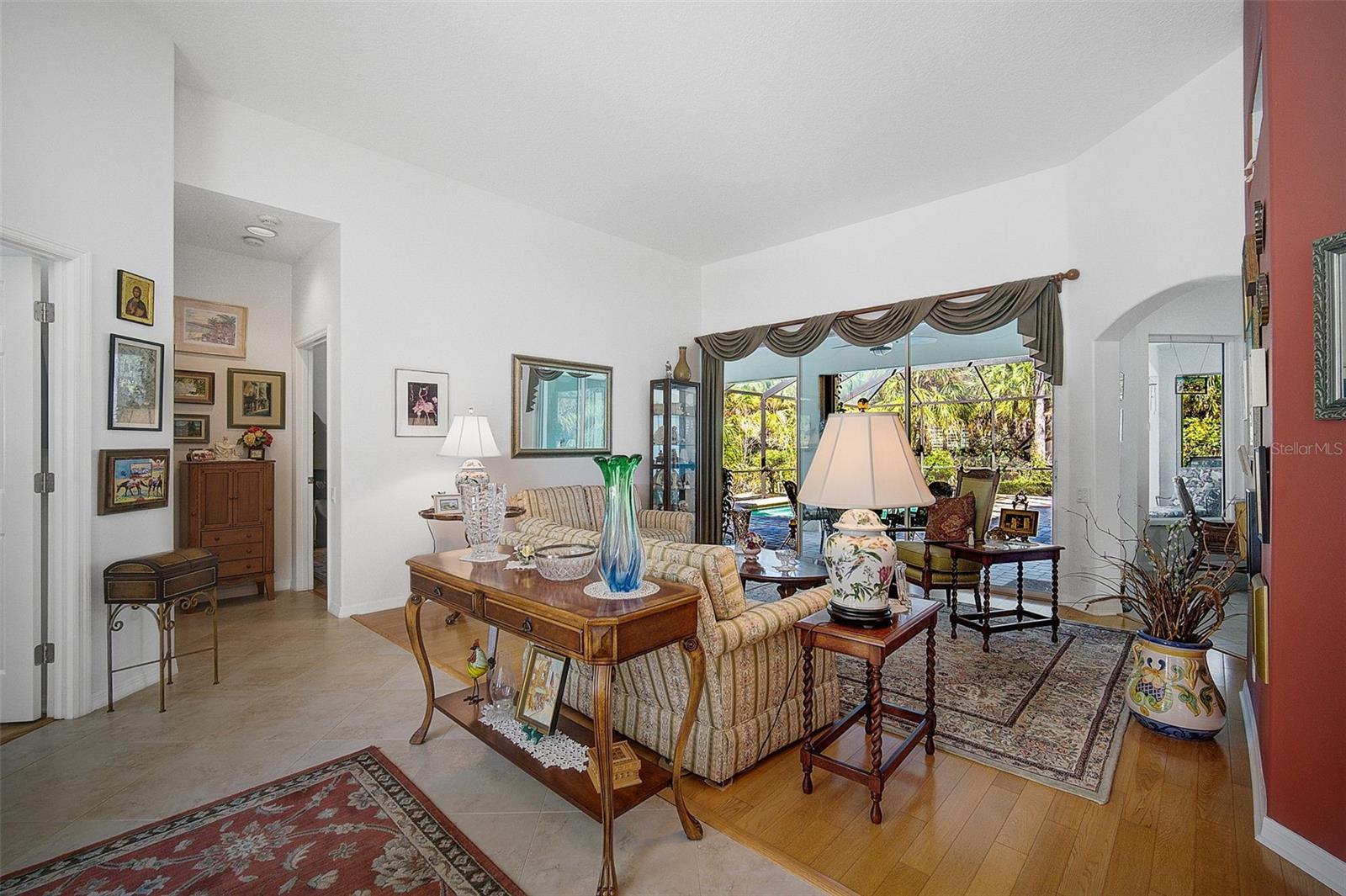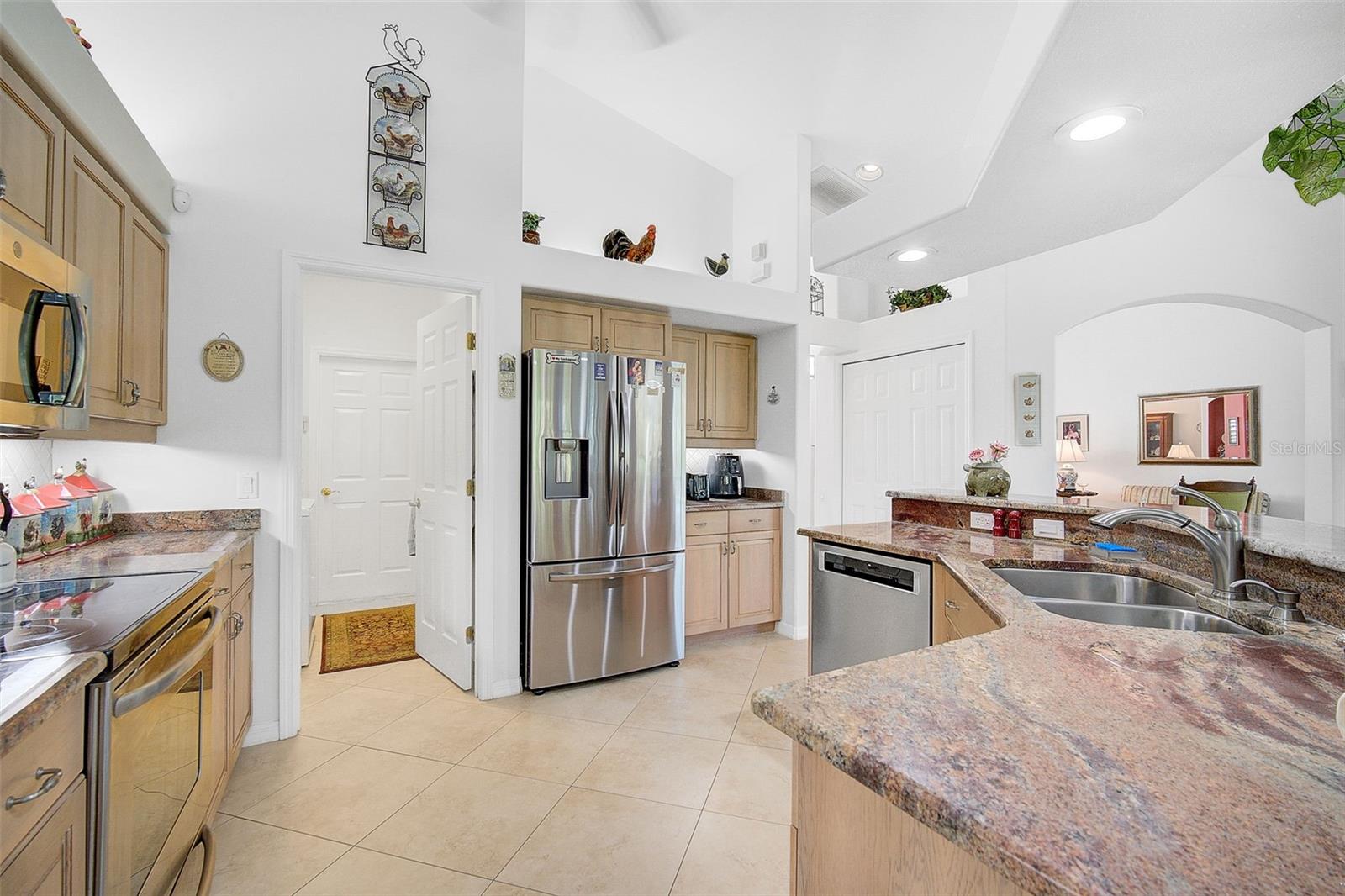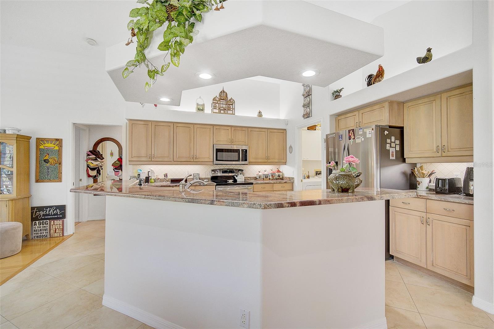 Nestled on a quaint cul-de-sac in the heart of Calusa Lakes is a gardener’s dream. Boasting privacy from every view this amazing property captures the beauty of nature, creating a seamless connection between indoor and outdoor living. The large picture window and numerous sliders bathe the home in natural sunlight and well thought out design is ideal for entertaining. The open chef’s kitchen is equipped with stainless steel appliances and an oversized dual-level island which is open to the family room. The adjoining living room and dining area flow effortlessly to the spacious primary suite with private bath area, walk-in shower and relaxing soaking tub. The two additional bedrooms are located on the opposite side of the home, creating privacy for family and friends. There is also a den or private office area, ideal for working at home, this could also be used as a 4th bedroom.. No worries here with a NEW ROOF and air conditioner installed in 2022. The home has HURRICANE SHUTTERS and has been RE-PLUMBED. This single-level family home offers a tranquil escape while floating in your private pool or just relaxing on your spacious lanai. This home is a quick ride to Nokomis beach and Venice Island with boutique shops, numerous quaint restaurants and cultural activities. The back gate for residence only provides quick access to the new Sarasota Memorial Hospital, I-75 to Sarasota, and airport options north and south. Calusa Lakes is located in a beautiful semi-private golf community where membership is not mandatory for home ownership, there is no CDD and the HOA fee is a low $300 a quarter. BE SURE TO VIEW THE 3-D AND AERIAL TOURS.