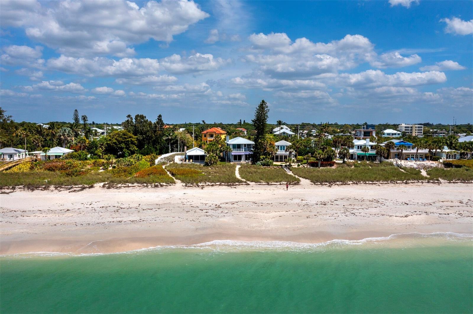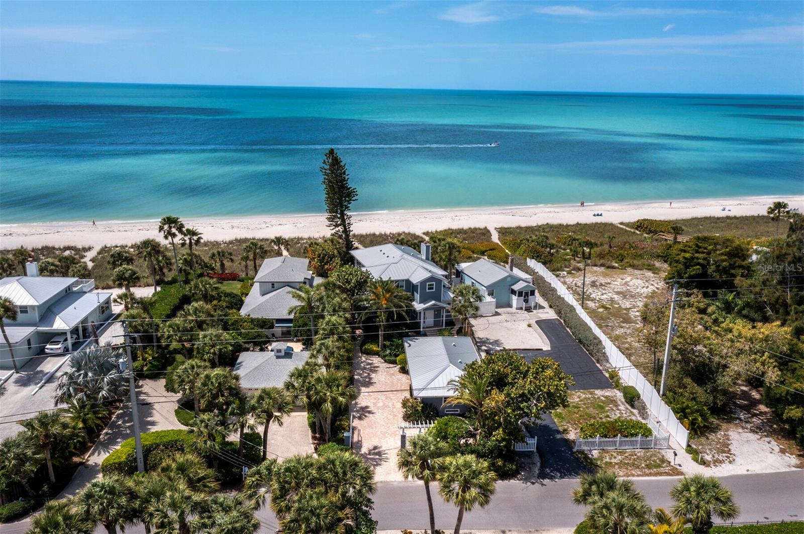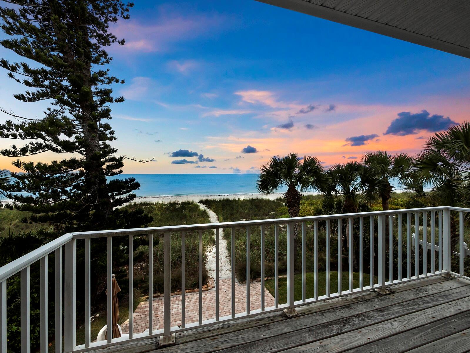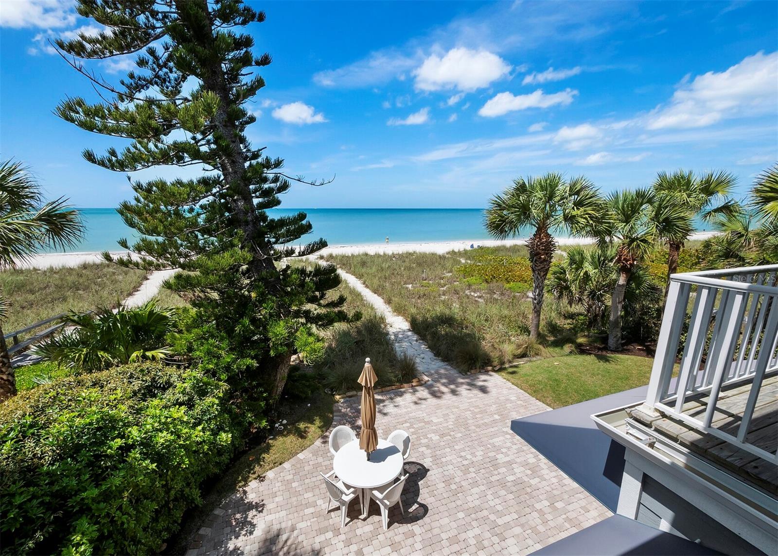 Indulge in the epitome of coastal luxury at this remarkable Casey Key beachfront residence, boasting unparalleled panoramic gulf front views. Step onto the expansive rear paver patio and witness dolphins playfully frolicking in the surf. Soak in the breathtaking unobstructed sunsets visible from numerous rooms within this thoughtfully designed open floor plan home. Seamlessly connecting the living room, family room, dining room and kitchen, this home creates an inviting space for entertaining and relaxation. Tile flooring throughout the first floor, 9-foot ceilings and large impact sliding glass doors frame the picturesque views of the gulf, evoking a sense of tranquility and awe. The kitchen, a chef's delight, features white cabinets with pullout shelves, stainless steel appliances, tile backsplash and an abundance of countertops, including a gas cooktop. Adjacent to the kitchen, a breakfast nook with sliding glass doors offers easy access to the patio, ideal for enjoying morning coffee while taking in the scenic surroundings. For those seeking a quiet retreat or a dedicated workspace, the office features double-entry glass pane French doors, ceiling fan and recessed built-in shelving. The primary owner’s suite exudes comfort and luxury, with sliding glass doors leading to a spacious private balcony overlooking the beach and sparkling gulf waters. A large walk-in closet and en-suite bath with dual vanities, soaking garden tub and walk-in tile shower ensure a serene retreat. Guests will feel pampered in the generously sized bedrooms, each offering private access to a Jack-and-Jill bath. The fourth bedroom, on the ground floor and distinct from the communal spaces, features direct bath access and its own private exterior entry, making it an ideal in-law or guest suite, or even a media room. Updates include new HVAC units in 2024, impact windows, doors and exterior siding in 2020, a metal roof in 2015, and a tankless water heater in 2017 to offer convenience and peace of mind. Being on the water is not complete without boat access, and the captain in you will relish the convenience of the deeded boat dock just steps away on the intracoastal. The voluminous three-car garage includes an additional climate-controlled room, ideal for a workshop, art studio, workout room or just extra storage. Appreciate the convenience of having the nationally acclaimed Pine View school, ranked #18 in the country, just a short 15-minute drive away. In an ideal location with convenient bridge access to shopping, dining and amenities, this gulf front property epitomizes the ultimate coastal lifestyle. Don’t miss your chance to own this extraordinary coastal retreat. Schedule your showing today!
