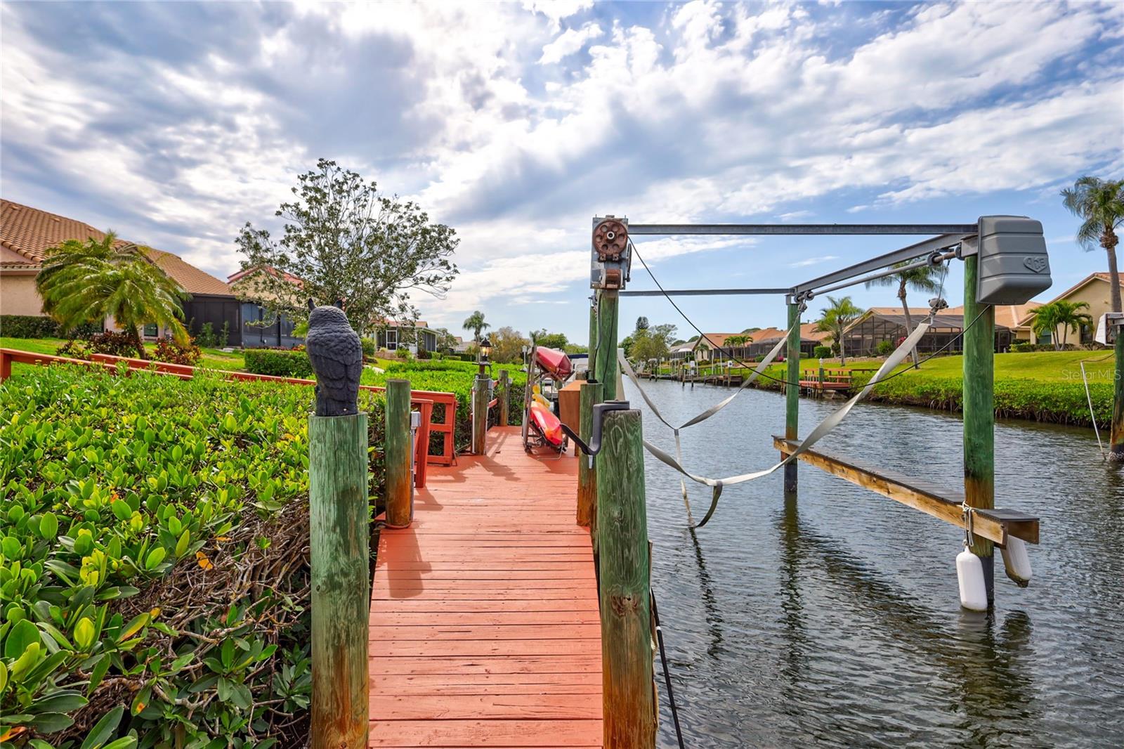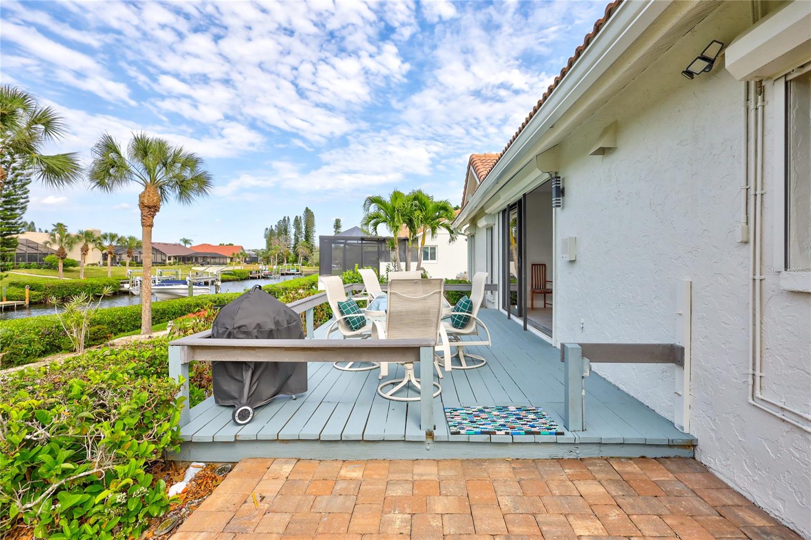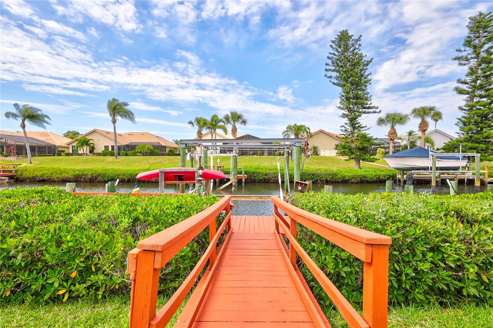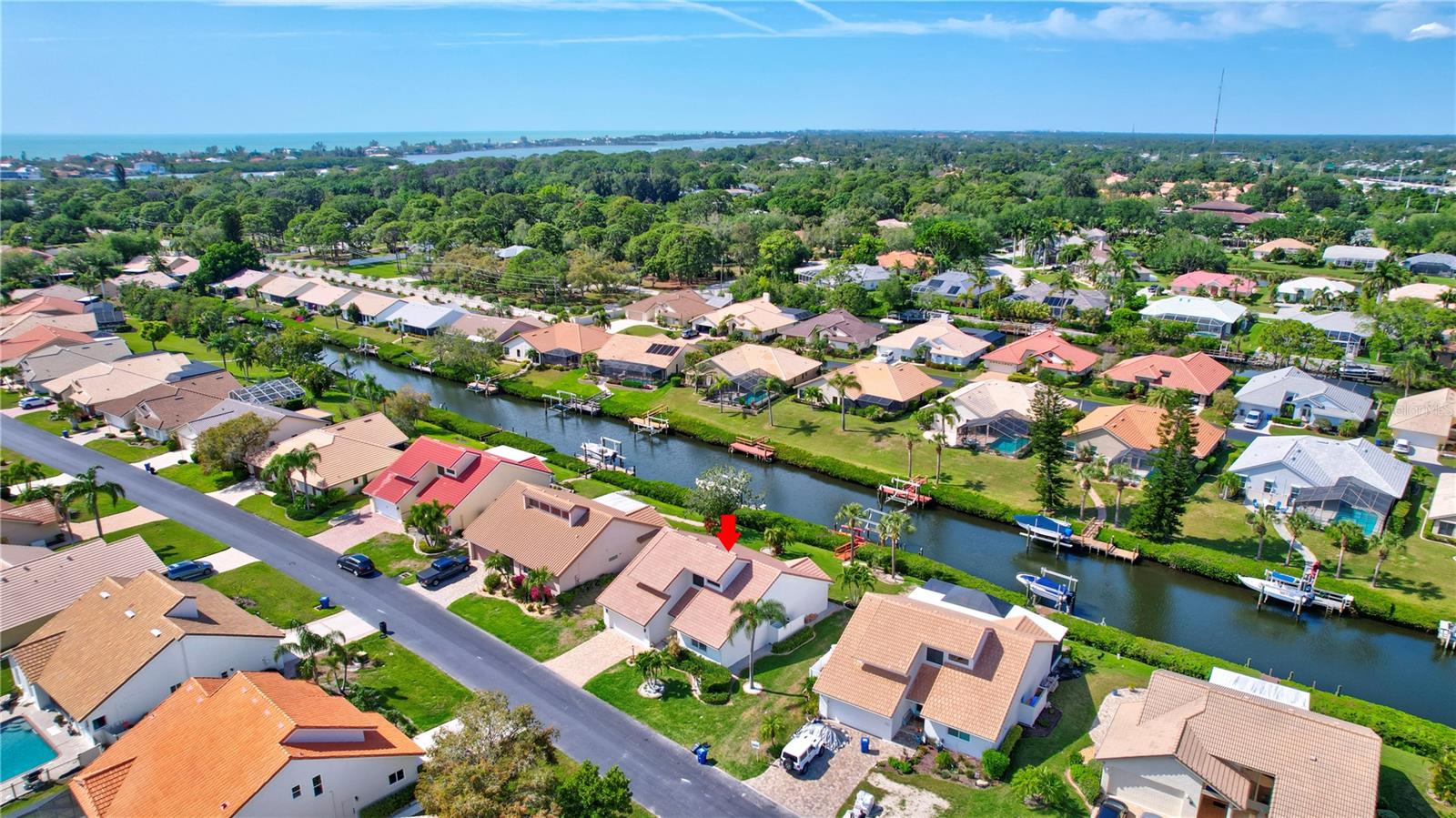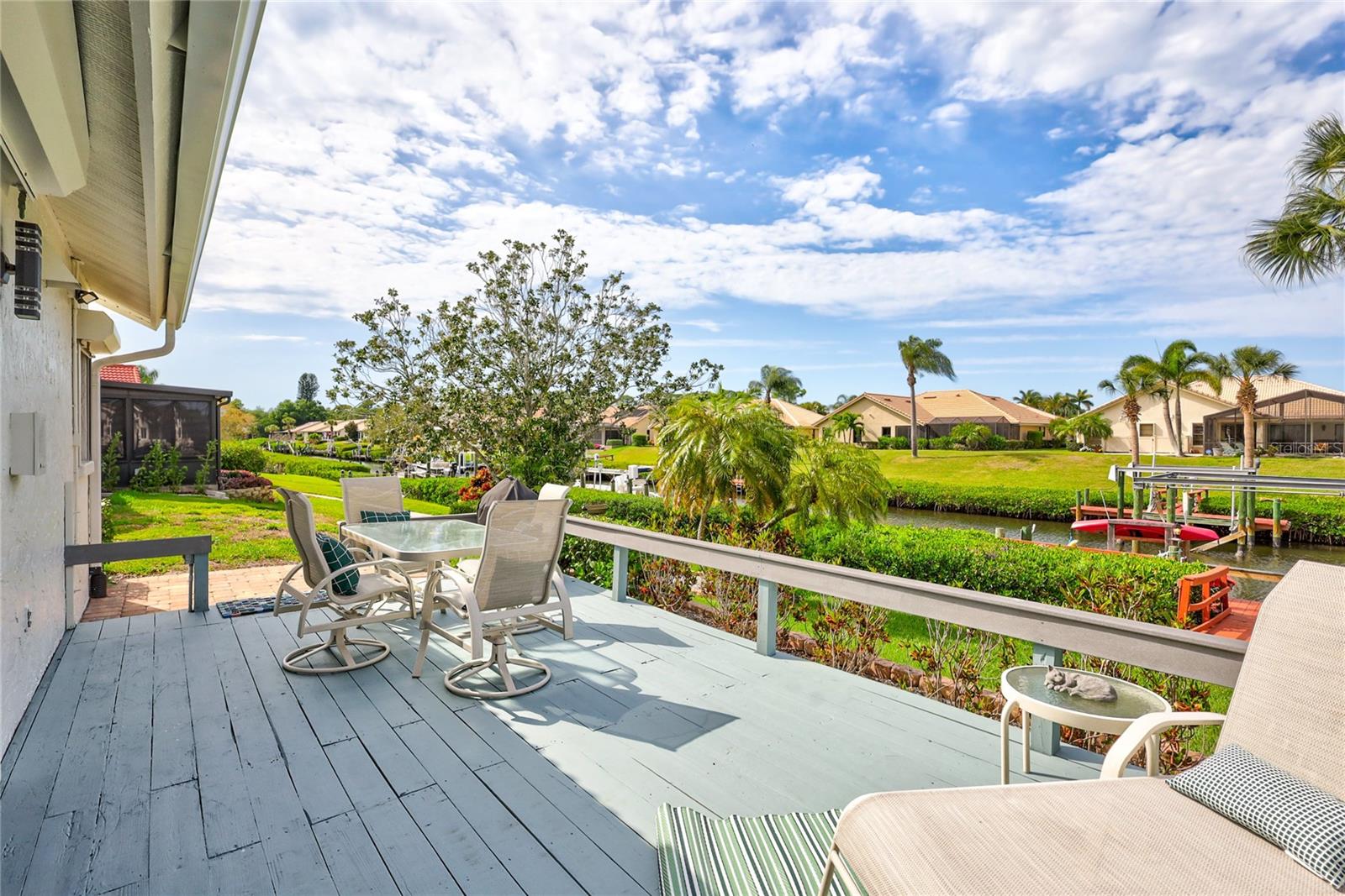 Welcome to the best of Waterfront Living! Found West of US 41, this hidden gem is just over 1 mile to Nokomis Beach and easy boating access to Lyons Bay, the Intracoastal Waterway, and the Gulf of Mexico. This spacious home has a new 2023 Roof, new Interior and Exterior Paint, Storm Shutters, Pavered Entry and Driveway, beautiful wood tile throughout, new baseboards, and interior retexture of all walls and ceilings. Dramatic ceilings and open and airy spaces greet you as you enter this updated home. The kitchen has recessed lighting, soft-close JEK Cabinetry, a new designer backsplash and a 6’ x 7.5’ pantry. The primary and second bedrooms are located on the first floor. The primary bedroom has views of the water, a walk-in closet and a large updated en-suite bath with an extended dual sink countertop and walk-in shower. The second bedroom is supported by a full first floor bath. The living area flows to the breakfast nook and opens to the exterior patio that is perfect for outdoor grilling while you enjoy views of the canal and oversized dock. The upstairs space is open to the living room below and is perfect for a combination office/bedroom. The upstairs area boasts a walk-in closet and a full bath with shower. Fish, kayak or launch your boat from the expansive dock. This stand-alone condo includes cable TV, internet, ground maintenance, and community amenities in the monthly fee. The Inlets is conveniently located between Sarasota and Venice. There is a large-heated pool, exercise room, tennis courts, and a wide range of social activities. Walk, bike, or just relax and enjoy this beautifully landscaped waterfront community. Two small pets are allowed. Welcome home to the Inlets. Flood Zone downgraded from AE to X500.