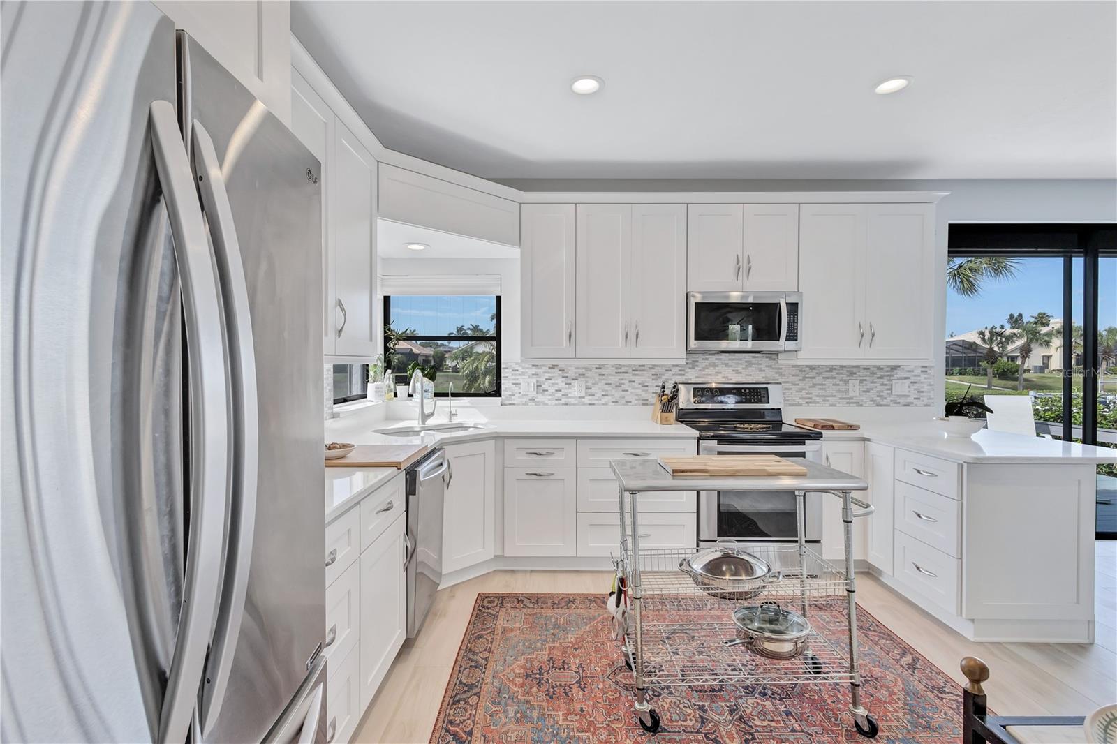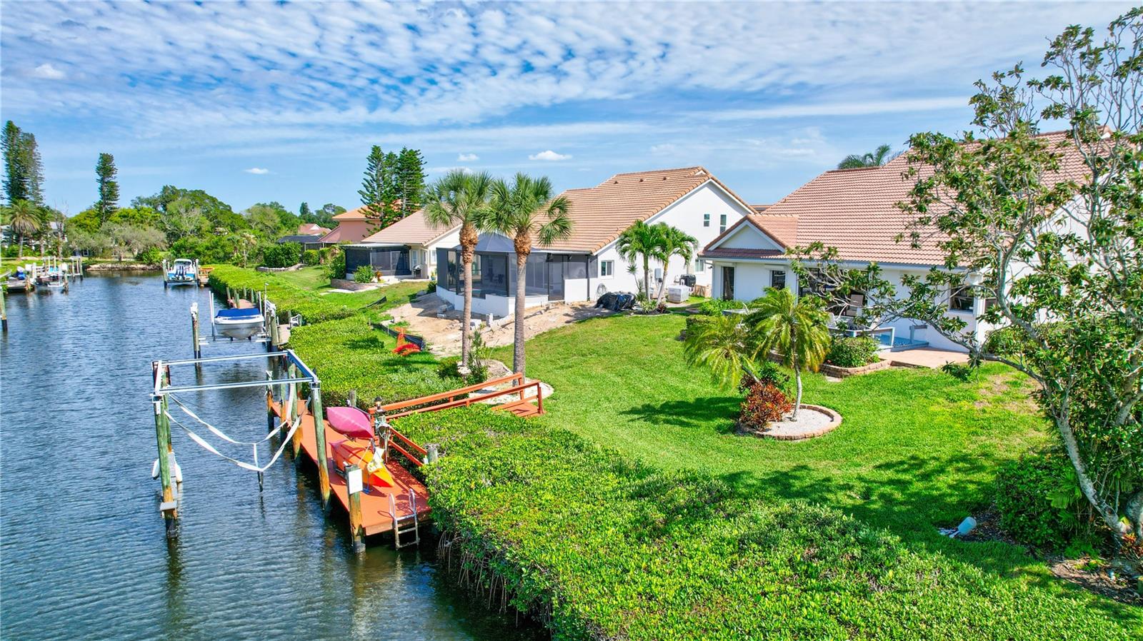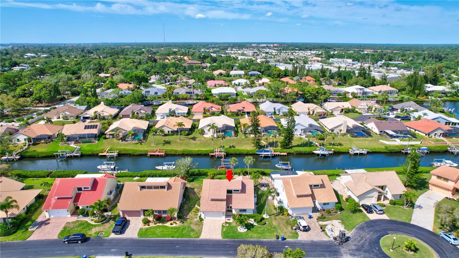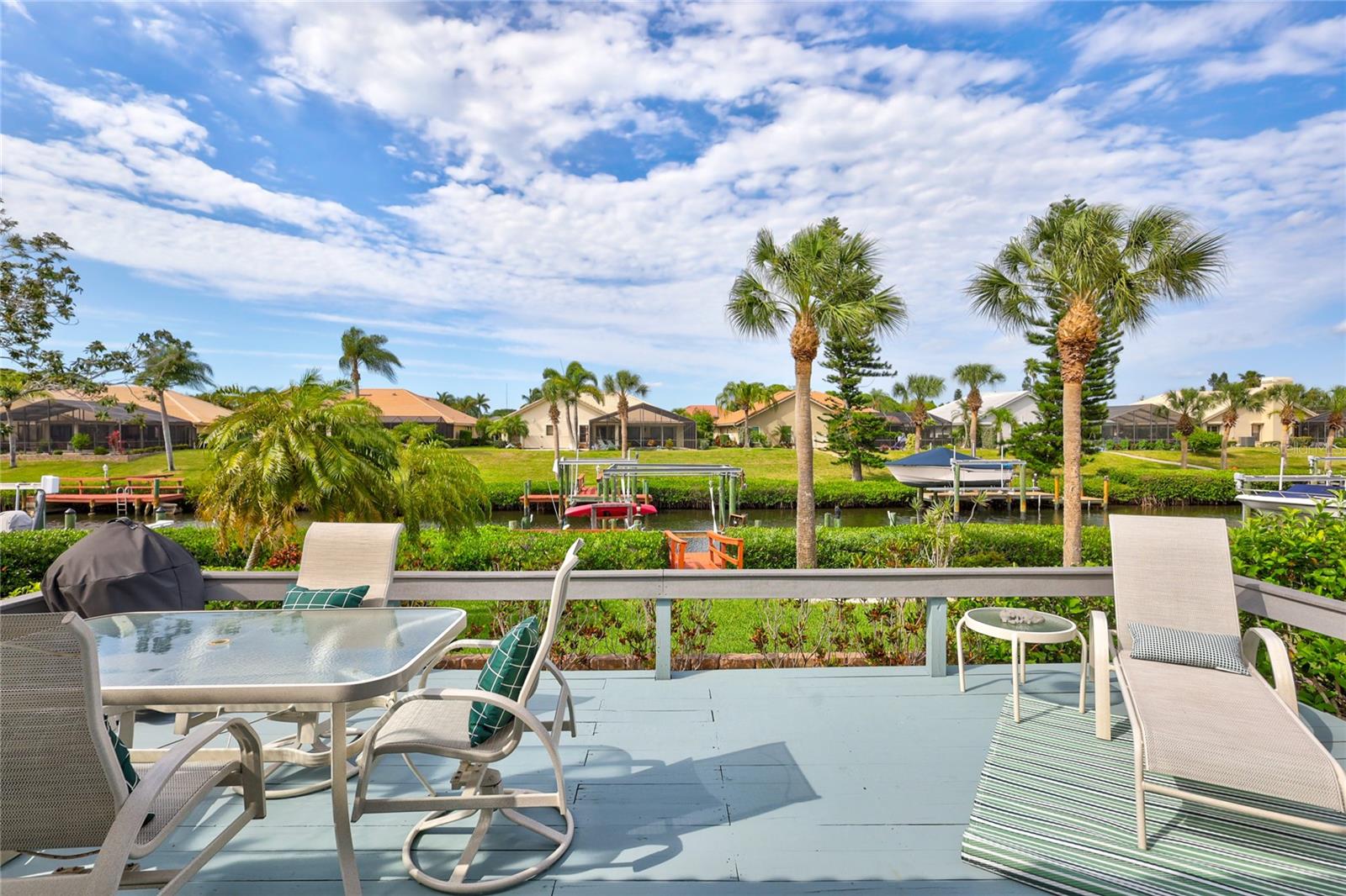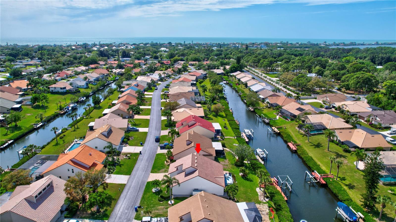 Welcome to the best of Waterfront Living! Found West of US 41, this hidden gem is just over 1 mile to Nokomis Beach and easy boating access to Lyons Bay, the Intracoastal Waterway, and the Gulf of Mexico. This spacious home has a new 2023 Roof, new Interior and Exterior Paint, Storm Shutters, Pavered Entry and Driveway, beautiful wood tile throughout, new baseboards, and interior retexture of all walls and ceilings. Dramatic ceilings and open and airy spaces greet you as you enter this updated home. The kitchen has recessed lighting, soft-close JEK Cabinetry, a new designer backsplash and a 6’ x 7.5’ pantry. The primary and second bedrooms are located on the first floor. The primary bedroom has views of the water, a walk-in closet and a large updated en-suite bath with an extended dual sink countertop and walk-in shower. The second bedroom is supported by a full first floor bath. The living area flows to the breakfast nook and opens to the exterior patio that is perfect for outdoor grilling while you enjoy views of the canal and oversized dock. The upstairs space is open to the living room below and is perfect for a combination office/bedroom. The upstairs area boasts a walk-in closet and a full bath with shower. Fish, kayak or launch your boat from the expansive dock. This stand-alone condo includes cable TV, internet, ground maintenance, and community amenities in the monthly fee. The Inlets is conveniently located between Sarasota and Venice. There is a large-heated pool, exercise room, tennis courts, and a wide range of social activities. Walk, bike, or just relax and enjoy this beautifully landscaped waterfront community. Two small pets are allowed. Welcome home to the Inlets. Flood Zone downgraded from AE to X500.