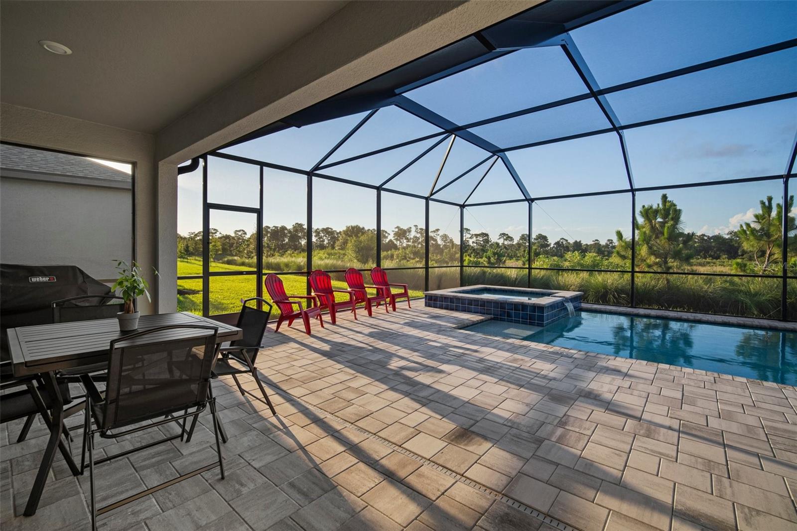 Discover peace of mind in this stunning Taylor Morrison home in Palmero - situated in NO FLOOD ZONE and ideally positioned just 4 miles from the beach, offering the perfect balance of coastal convenience while staying safely outside hurricane surge zones. This 2023 new construction home showcases the latest hurricane protection features, including full hurricane shutters and construction that meets or exceeds all current hurricane codes, reflecting the growing trend of buyers seeking modern, storm-ready homes in Florida. This home is located in one of the most desired neighborhoods in the Sarasota, Nokomis, Palmer Ranch area. Located in a neighborhood were there was no flooding (high and dry), yet under a ten minute drive to Nokomis Beach, where you will find yourself going to relax and catch the most amazing sunsets. If you are not at the beach or dining at one of the many waterfront restaurants nearby, you will be relaxing on your lanai enjoying the heated pool or spa and privacy this home offers. It is perfectly situated on a dead end street overlooking a nature preserve. This rare, north facing, pie-shaped, premium lot allows you to not only catch a beautiful sunrise listening to the birds as you sip your morning coffee or tea, but you end each day by watching the breathtaking sunsets as well. Palmero offers a resort style pool, spa, volleyball court, basketball court, playground, fire pit and a dog park! All this with a LOW HOA and NO CDD fee. As you enter the home, you will be welcomed with an open floor plan with upgrades abounding. The kitchen is nestled in the heart of the home and open to the inviting great room overlooking the spectacular 14 x 28 custom pool with a caged 28’ x 40’ paver deck. You can relax in your salt water pool or spa that are both heated. The pool and spa also features a remote aqualink access system and lighting. You will find yourself enjoying the expansive screened paver deck that is completely private and surrounded by nature. This home features the following upgrades: eight foot doors, gourmet kitchen, enclosed glass doors on the flex room, front stone elevation, custom primary closet, custom primary bedroom closet with bonus access into laundry room, upgraded pool surface, glass front door, walk-in showers, additional storage, gutters around the entire house, and so much more! This light, bright, open concept home is perfect for entertaining guests or just having the space to relax and enjoy the wonderful Florida lifestyle. This home is perfect as either a vacation retreat or living in paradise year-round. Imagine living in a location minutes to Sarasota, Lakewood Ranch, and Historic Venice for the variety of all those towns have to offer. You also will be pleased to know, you have 10 different city and county beachfront parks all within minutes. They include: Nokomis Beach, South Jetty Beach, Venice Beach, Venice Fishing Pier, Caspersen Beach, Caspersen Park Canoe and Kayak Launch and Brohard Paw Park (the county's only dog friendly beach). In addition, this home is very close to the highly rated Pine View school for the gifted, Laurel Nokomis school and the new Sarasota Memorial Hospital of Venice.