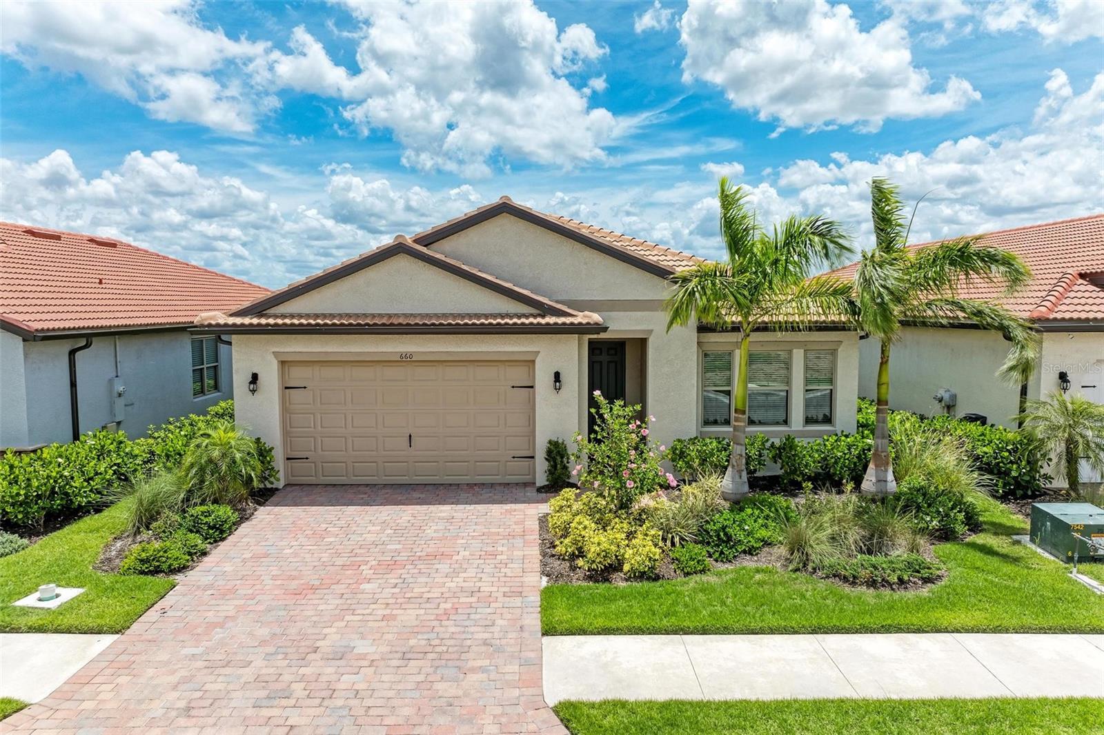 **THIS PROPERTY QUALIFIES FOR A 1% LENDER INCENTIVE IF USING PREFERRED LENDER. INQUIRE FOR MORE DETAILS.** Immerse yourself in the gated, lakefront community of Toscana Isles, offering exclusive, maintenance-free living. Built in 2022 with an array of builder upgrades, this home epitomizes resort-style living. A charming brick paver driveway and vibrant tropical landscaping invite you into the thoughtfully designed interior. Spanning nearly 2,000 sq. ft., the home offers 3 spacious bedrooms and 2.5 bathrooms, retaining the pristine feel of new construction without the wait. An open floor plan is enhanced by large windows offering serene lake views and abundant natural light, creating a bright and airy ambiance. Elegant vinyl plank flooring runs throughout the main living areas, complemented by crown molding, high ceilings, and 8-foot doors. The kitchen boasts Whirlpool stainless steel appliances, stone countertops, and a spacious island ideal for entertaining and meal preparation. A triple sliding glass door opens to the tranquil screen-enclosed lanai, perfect for morning coffee or evening relaxation with serene lake views. The primary suite features a tray ceiling, crown molding, and lake views, providing a peaceful retreat. Its en suite bathroom includes a tiled shower, dual vanities, and a private water closet. A spacious walk-in closet conveniently connects to the laundry room, equipped with built-in shelving and a sink for added convenience. The split floor plan ensures privacy by separating the primary suite from two additional bedrooms that share a well-appointed second bathroom. A convenient half bath leads to the garage, where you'll find upgraded epoxy flooring and versatile storage solutions, ideal for workshop needs and extra storage space. Residents of Toscana Isles enjoy a range of amenities covered by HOA fees, including lawn maintenance, ensuring a carefree lifestyle. The clubhouse serves as the vibrant heart of the community, featuring a gathering room for social events and a state-of-the-art fitness center offering yoga and aerobics classes. Outdoor enthusiasts can enjoy tennis, pickleball, and bocce ball courts, while families appreciate the nearby playground and pet owners enjoy the dedicated dog park. The resort-style pool beckons with its expansive sun deck, loungers, and shaded cabanas, offering an ideal retreat. Nature lovers can explore the serene lake for kayaking and paddleboarding, or take leisurely strolls along scenic walking paths through meticulously landscaped gardens and green spaces. Toscana Isles enjoys a prime location with easy access to the area's Gulf Coast beaches. Indulge in beach activities and water sports, or enjoy breathtaking sunsets just a short drive away. The community also offers a rich cultural scene and recreational opportunities, including historic Venice Island with its charming downtown area, Venice Theatre, and Venice Art Center.