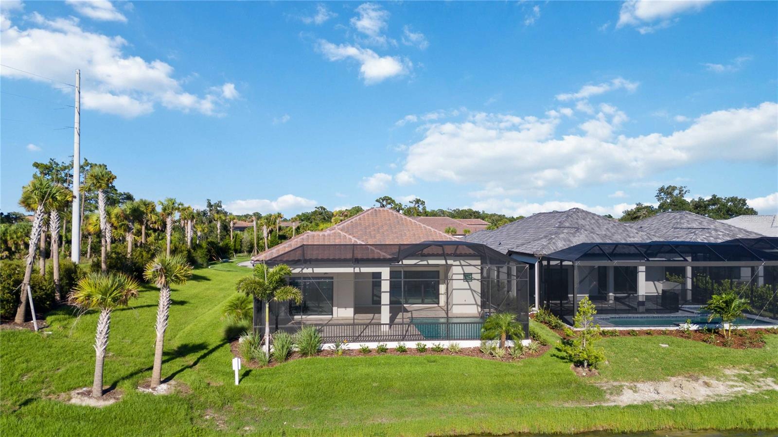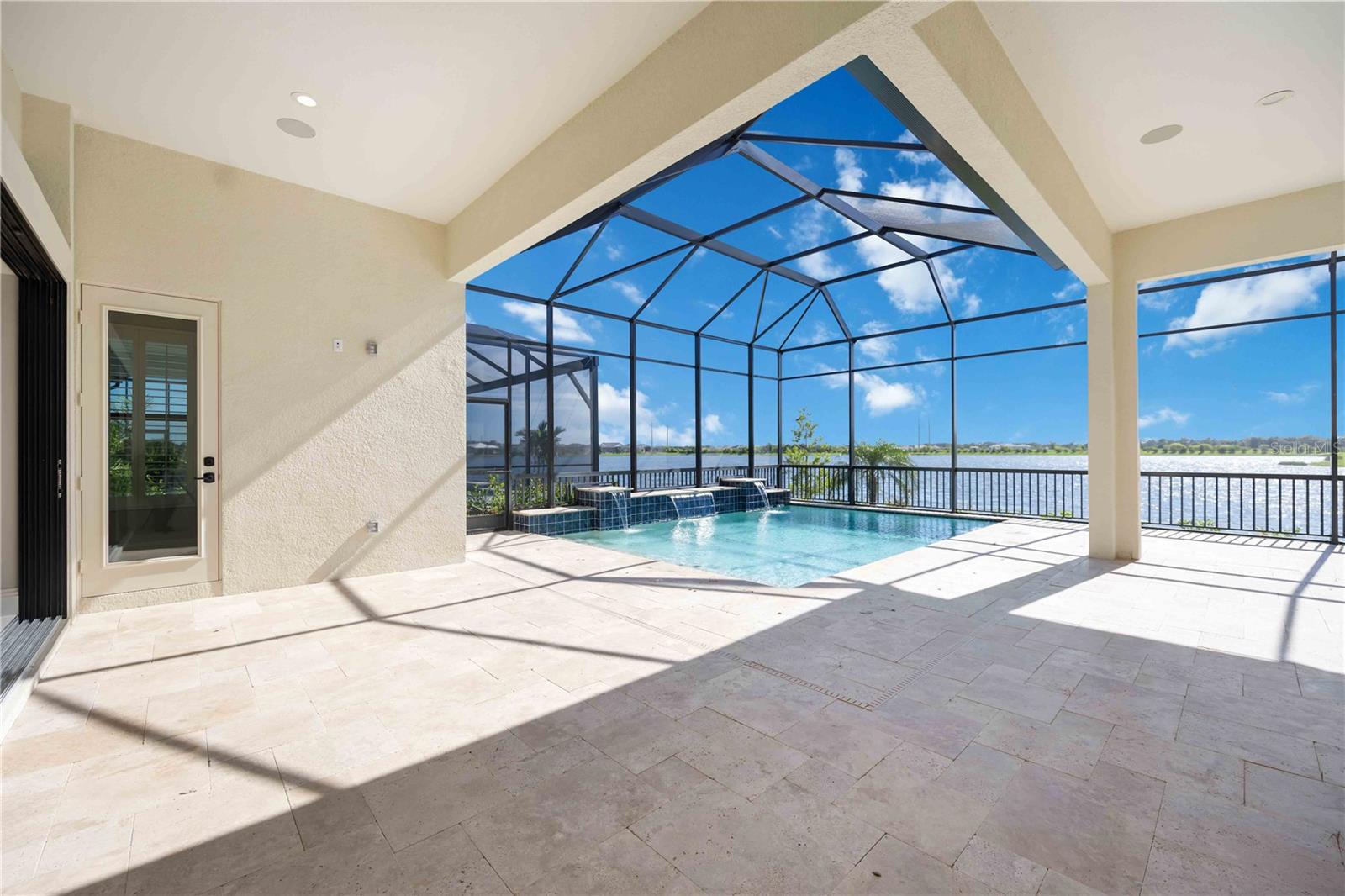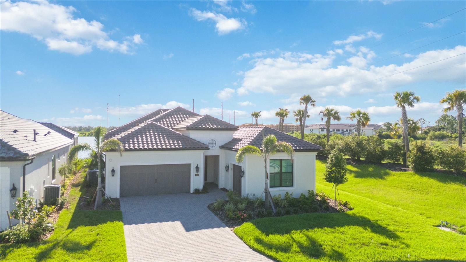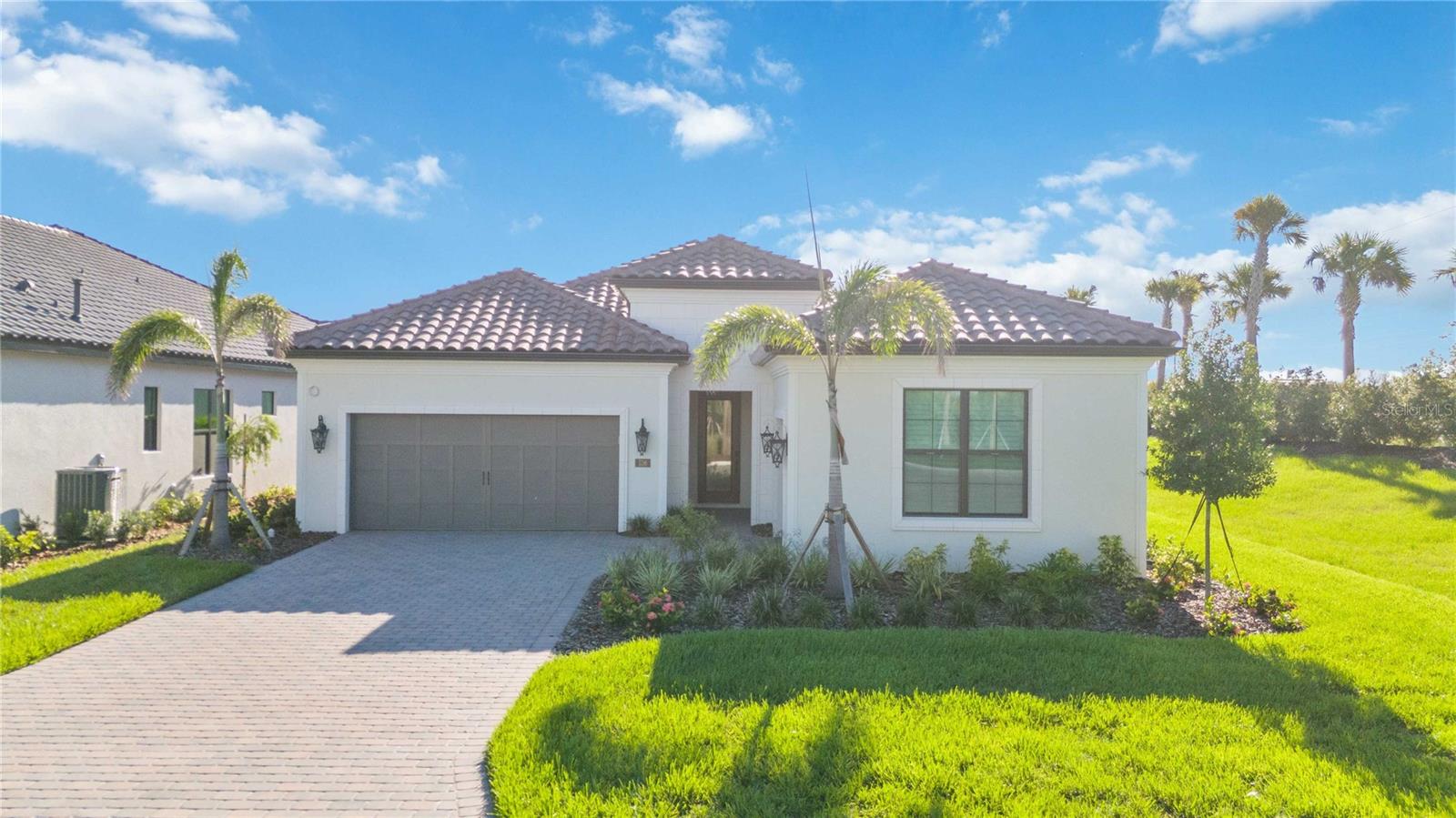 Welcome to luxury in this immaculate CORTINA model home, never lived in and crafted by Neal Signature Homes. Nestled in the highly desirable suburb of Nokomis, this 3-bedroom, 2.5-bathroom single-family residence spans 2,518 sq. ft. of meticulously designed living space, featuring extensive upgrades that elevate it far beyond the base model. From the moment you enter, the large built-in bookcase in the foyer sets an elegant tone, guiding you through the office/den and into the expansive great room. The high-end kitchen is a culinary masterpiece, complete with an extended island, beverage fridge, and state-of-the-art GE Monogram appliances. Transition effortlessly to the outdoors through sliding pocket doors that lead to an extended lanai, perfect for indoor-outdoor living. The outdoor area is equally impressive, featuring travertine pavers, a stunning custom self-cleaning saltwater pool, and all the connections you need to create your dream outdoor kitchen. Bronzed hurricane impact windows throughout provide both beauty and security. Entertain with ease as ceiling speakers fill the great room space with ambient sound, or escape to the primary suite. This private retreat includes a spa-like bathroom with dual sink vanities, a spacious walk-in shower, a relaxing tub, and a private water closet. Just steps away, an oversized walk-in closet connects to a well-appointed luxury utility room, ensuring convenience at every turn. The home's thoughtful layout includes two guest bedrooms sharing a second full bathroom, with a convenient hallway connecting to a versatile bonus garage, complementing the two-car garage and providing ample additional space. Located in the prestigious Aria community, this home provides access to a state-of-the-art fitness center, clubhouse, resort-style pool and spa, and pickleball courts. Plus, with its location outside the flood zone, you can enjoy peace of mind knowing your investment is protected. Experience the perfect fusion of comfort, style, and sophistication in this stunning, move-in-ready home.