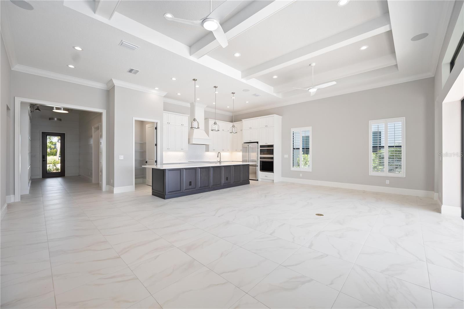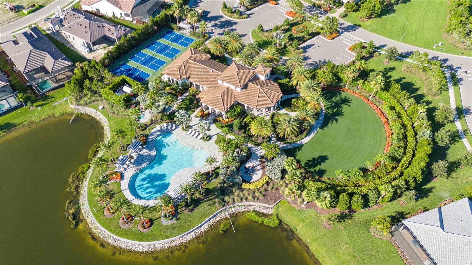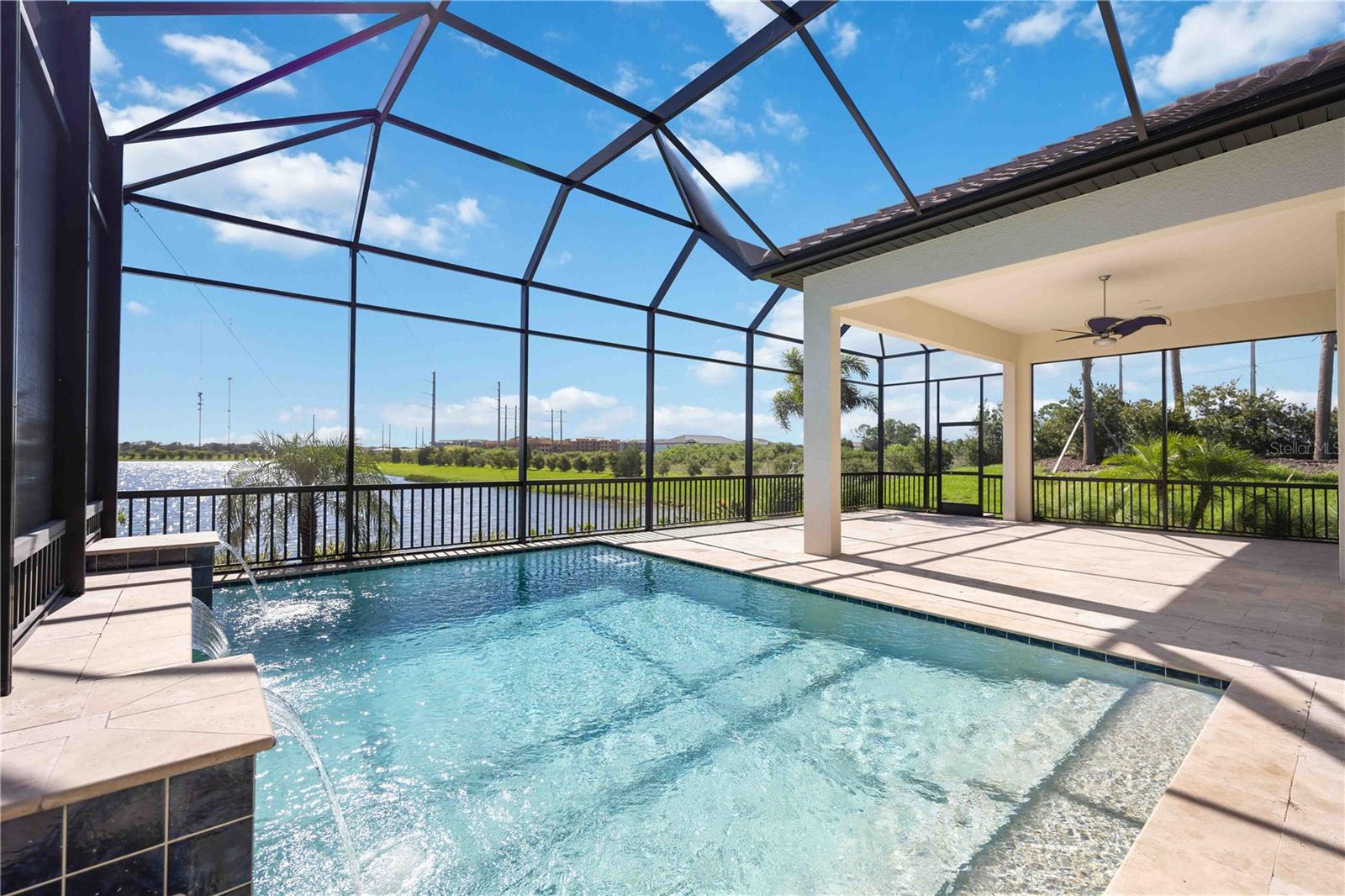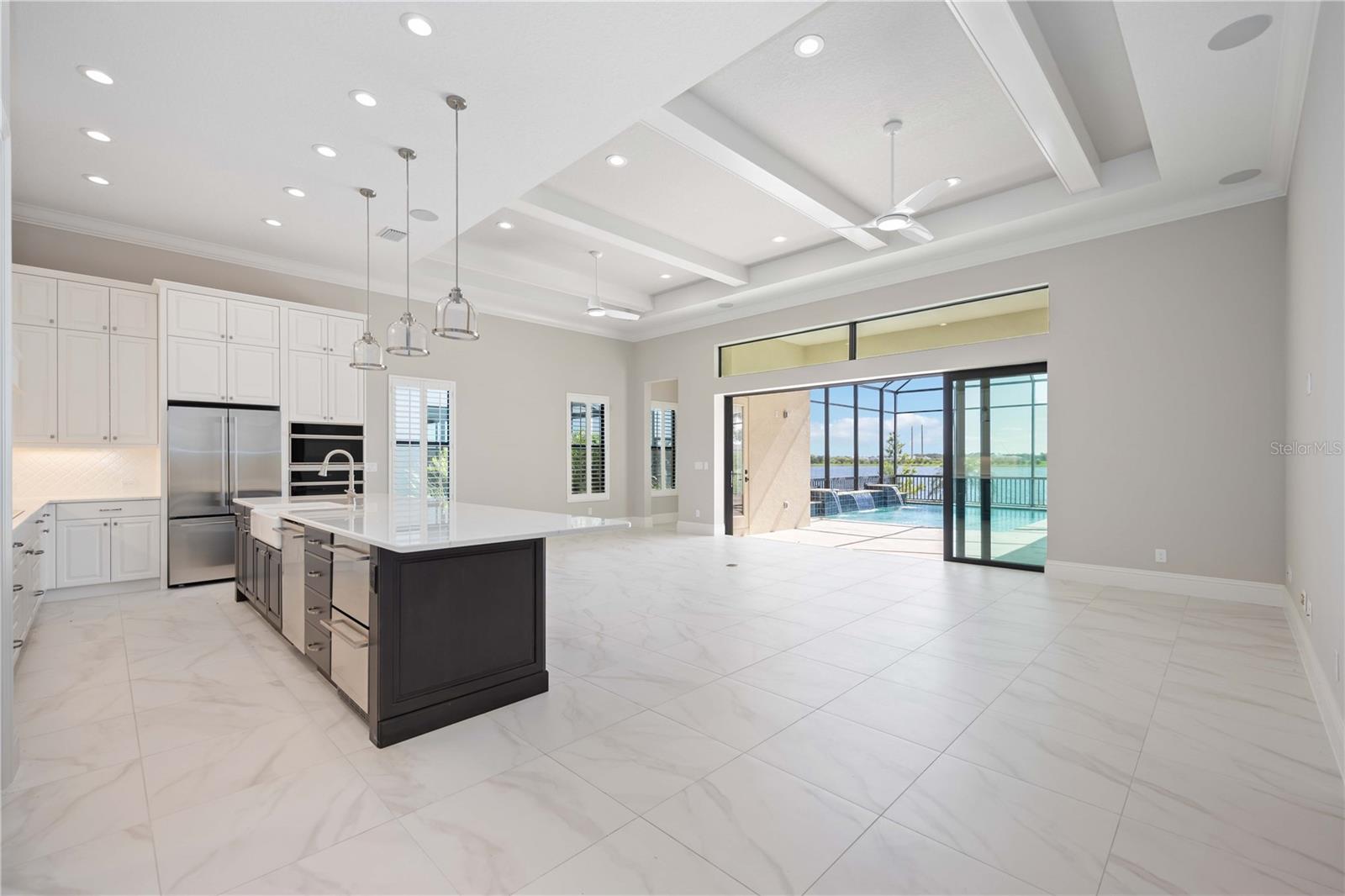 Welcome to luxury in this immaculate CORTINA model home, never lived in and crafted by Neal Signature Homes. Nestled in the highly desirable suburb of Nokomis, this 3-bedroom, 2.5-bathroom single-family residence spans 2,518 sq. ft. of meticulously designed living space, featuring extensive upgrades that elevate it far beyond the base model. From the moment you enter, the large built-in bookcase in the foyer sets an elegant tone, guiding you through the office/den and into the expansive great room. The high-end kitchen is a culinary masterpiece, complete with an extended island, beverage fridge, and state-of-the-art GE Monogram appliances. Transition effortlessly to the outdoors through sliding pocket doors that lead to an extended lanai, perfect for indoor-outdoor living. The outdoor area is equally impressive, featuring travertine pavers, a stunning custom self-cleaning saltwater pool, and all the connections you need to create your dream outdoor kitchen. Bronzed hurricane impact windows throughout provide both beauty and security. Entertain with ease as ceiling speakers fill the great room space with ambient sound, or escape to the primary suite. This private retreat includes a spa-like bathroom with dual sink vanities, a spacious walk-in shower, a relaxing tub, and a private water closet. Just steps away, an oversized walk-in closet connects to a well-appointed luxury utility room, ensuring convenience at every turn. The home's thoughtful layout includes two guest bedrooms sharing a second full bathroom, with a convenient hallway connecting to a versatile bonus garage, complementing the two-car garage and providing ample additional space. Located in the prestigious Aria community, this home provides access to a state-of-the-art fitness center, clubhouse, resort-style pool and spa, and pickleball courts. Plus, with its location outside the flood zone, you can enjoy peace of mind knowing your investment is protected. Experience the perfect fusion of comfort, style, and sophistication in this stunning, move-in-ready home.