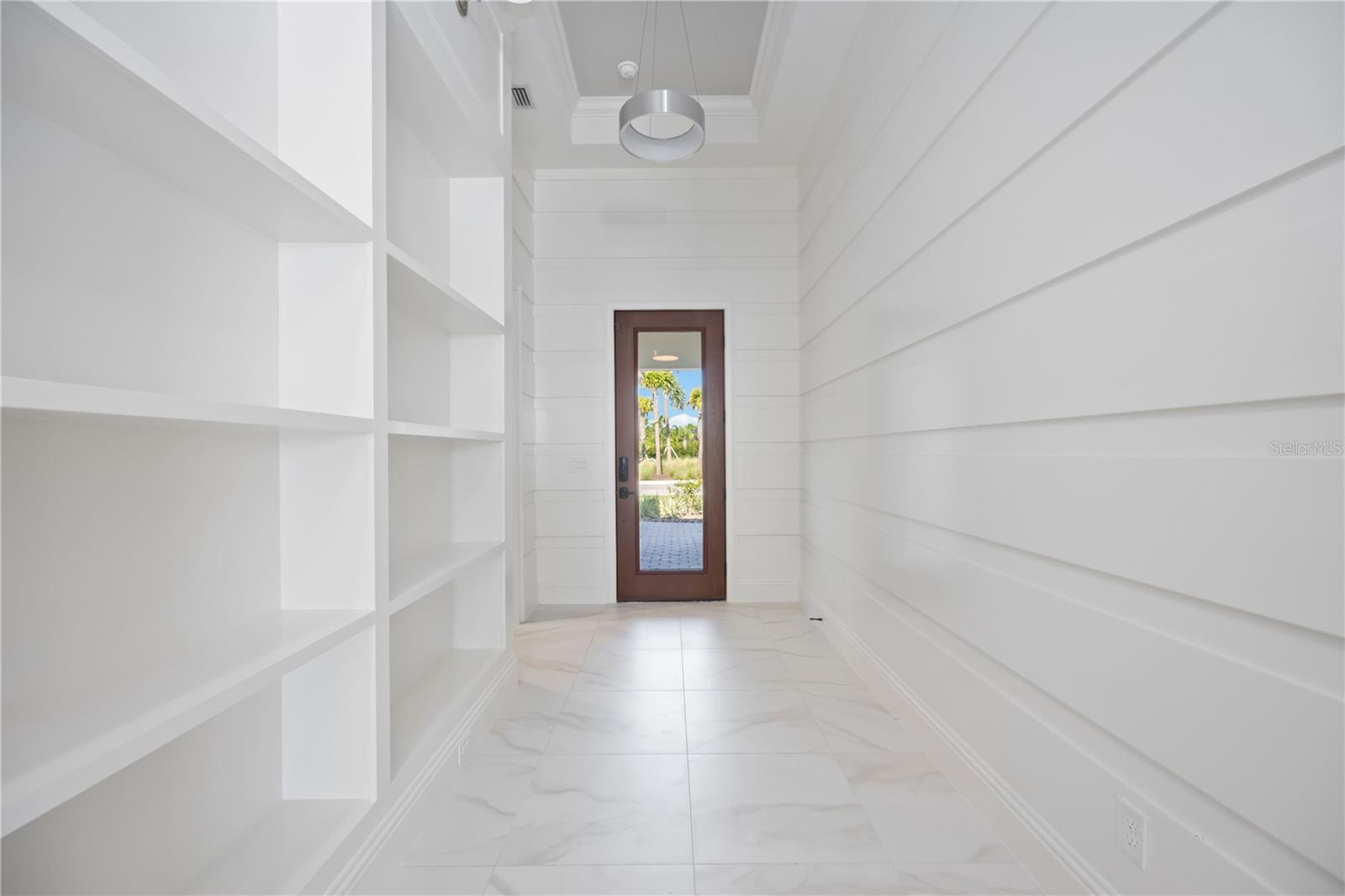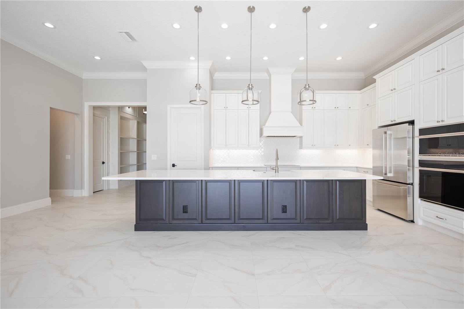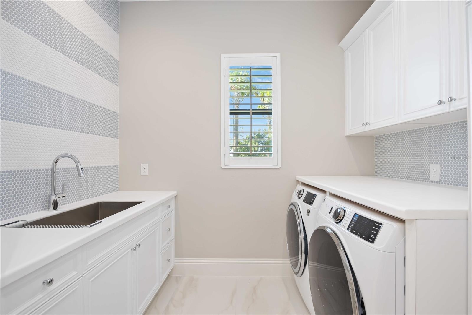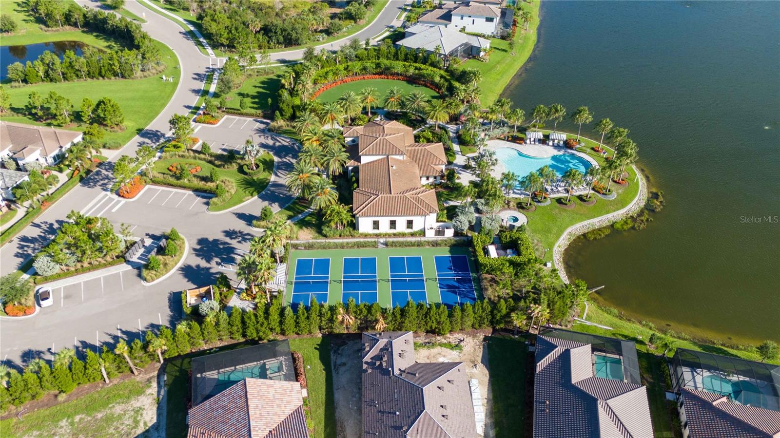 Welcome to luxury in this immaculate CORTINA model home, never lived in and crafted by Neal Signature Homes. Nestled in the highly desirable suburb of Nokomis, this 3-bedroom, 2.5-bathroom single-family residence spans 2,518 sq. ft. of meticulously designed living space, featuring extensive upgrades that elevate it far beyond the base model. From the moment you enter, the large built-in bookcase in the foyer sets an elegant tone, guiding you through the office/den and into the expansive great room. The high-end kitchen is a culinary masterpiece, complete with an extended island, beverage fridge, and state-of-the-art GE Monogram appliances. Transition effortlessly to the outdoors through sliding pocket doors that lead to an extended lanai, perfect for indoor-outdoor living. The outdoor area is equally impressive, featuring travertine pavers, a stunning custom self-cleaning saltwater pool, and all the connections you need to create your dream outdoor kitchen. Bronzed hurricane impact windows throughout provide both beauty and security. Entertain with ease as ceiling speakers fill the great room space with ambient sound, or escape to the primary suite. This private retreat includes a spa-like bathroom with dual sink vanities, a spacious walk-in shower, a relaxing tub, and a private water closet. Just steps away, an oversized walk-in closet connects to a well-appointed luxury utility room, ensuring convenience at every turn. The home's thoughtful layout includes two guest bedrooms sharing a second full bathroom, with a convenient hallway connecting to a versatile bonus garage, complementing the two-car garage and providing ample additional space. Located in the prestigious Aria community, this home provides access to a state-of-the-art fitness center, clubhouse, resort-style pool and spa, and pickleball courts. Plus, with its location outside the flood zone, you can enjoy peace of mind knowing your investment is protected. Experience the perfect fusion of comfort, style, and sophistication in this stunning, move-in-ready home.