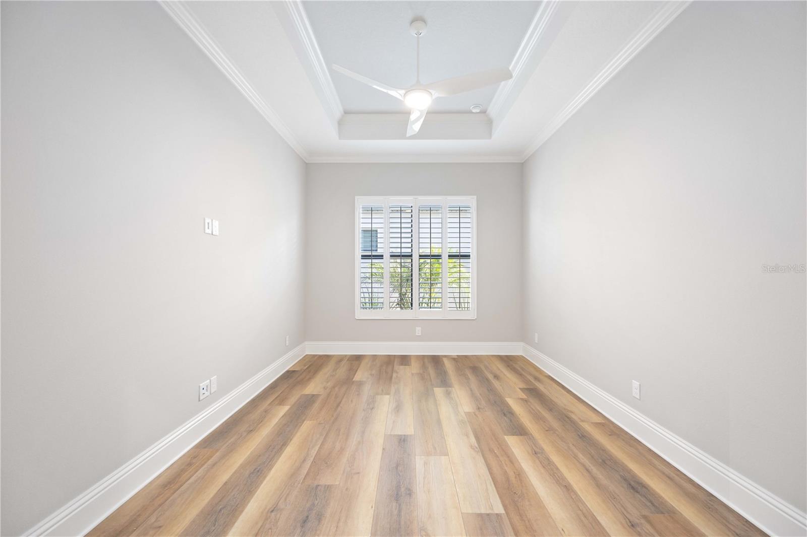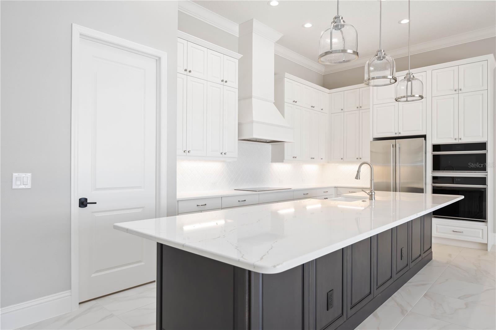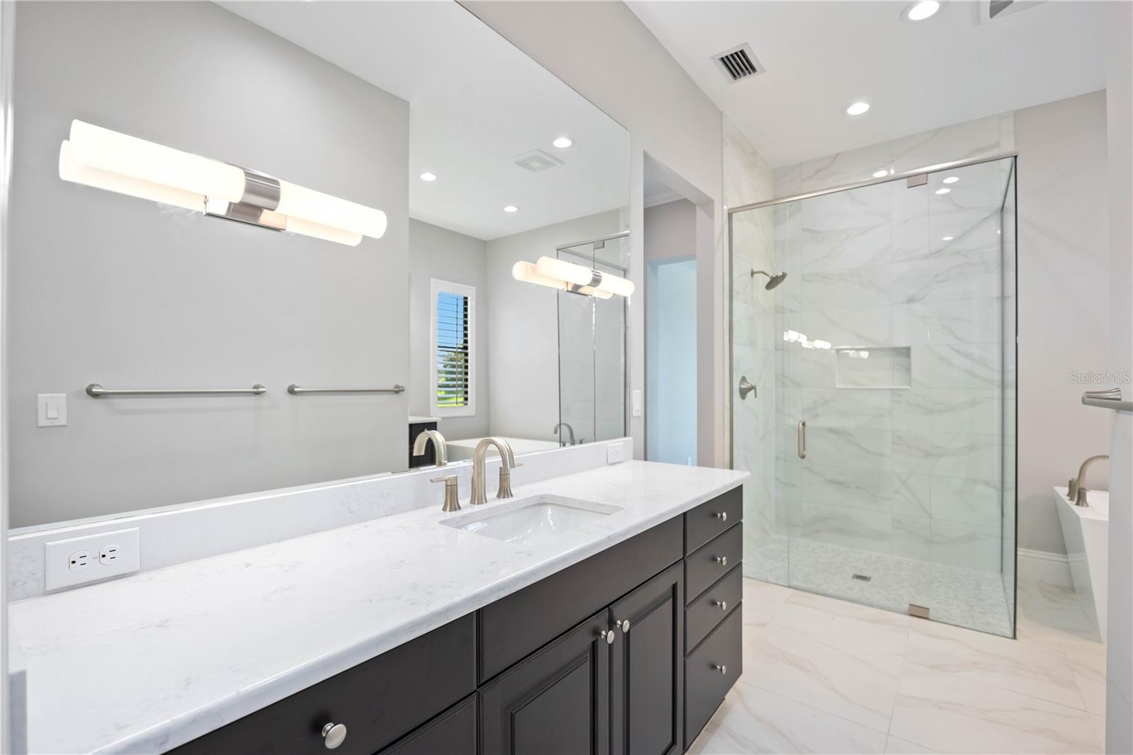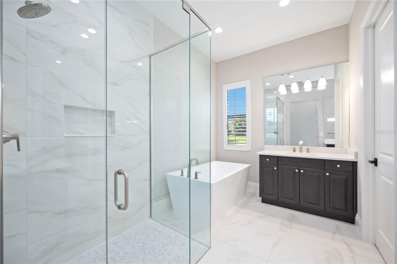 Welcome to luxury in this immaculate CORTINA model home, never lived in and crafted by Neal Signature Homes. Nestled in the highly desirable suburb of Nokomis, this 3-bedroom, 2.5-bathroom single-family residence spans 2,518 sq. ft. of meticulously designed living space, featuring extensive upgrades that elevate it far beyond the base model. From the moment you enter, the large built-in bookcase in the foyer sets an elegant tone, guiding you through the office/den and into the expansive great room. The high-end kitchen is a culinary masterpiece, complete with an extended island, beverage fridge, and state-of-the-art GE Monogram appliances. Transition effortlessly to the outdoors through sliding pocket doors that lead to an extended lanai, perfect for indoor-outdoor living. The outdoor area is equally impressive, featuring travertine pavers, a stunning custom self-cleaning saltwater pool, and all the connections you need to create your dream outdoor kitchen. Bronzed hurricane impact windows throughout provide both beauty and security. Entertain with ease as ceiling speakers fill the great room space with ambient sound, or escape to the primary suite. This private retreat includes a spa-like bathroom with dual sink vanities, a spacious walk-in shower, a relaxing tub, and a private water closet. Just steps away, an oversized walk-in closet connects to a well-appointed luxury utility room, ensuring convenience at every turn. The home's thoughtful layout includes two guest bedrooms sharing a second full bathroom, with a convenient hallway connecting to a versatile bonus garage, complementing the two-car garage and providing ample additional space. Located in the prestigious Aria community, this home provides access to a state-of-the-art fitness center, clubhouse, resort-style pool and spa, and pickleball courts. Plus, with its location outside the flood zone, you can enjoy peace of mind knowing your investment is protected. Experience the perfect fusion of comfort, style, and sophistication in this stunning, move-in-ready home.