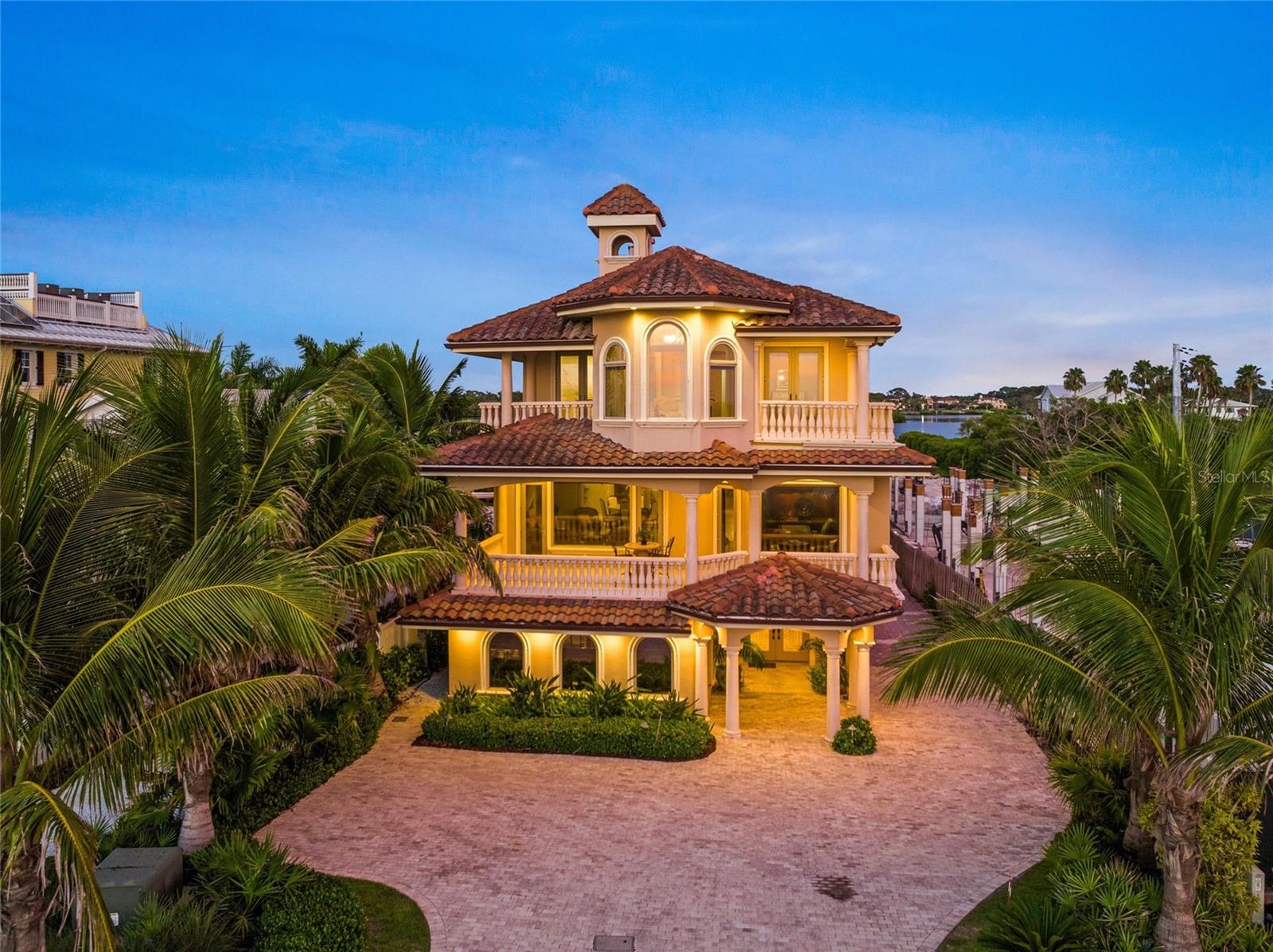 Seize the opportunity to own Casa Del Mar, an exquisite architectural gem located on the highly sought-after gulf-to-bay Casey Key parcel. This exclusive 8-mile island, perfectly positioned between the historic allure of Venice and the vibrant culture of Sarasota, hosts this extraordinary residence. Designed by the acclaimed architect George Merlin and constructed in 2006 by the renowned Christner Brothers. Each room is designed to maximize natural light and frame the stunning gulf and bay views, embodying coastal luxury at its finest. As you step into the grand foyer, the magnificent staircase draws your eye upward to the elevated main living area. The home features lavish details throughout, including extensive crown molding, tray ceilings, and Turkish Travertine tumbled marble flooring. With three fireplaces, custom cabinetry by Yoder Kitchens of Indiana, and meticulously designed his-and-her offices, this residence exudes sophistication. The gulf-front living and dining spaces are ideal for elegant gatherings, while the gourmet kitchen, opening to the family room, includes corner sliding glass doors that lead to an outdoor paradise. This space features a summer kitchen, dining area, fireplace, and a pool with a captivating waterfall and panoramic bayfront views. Four ensuite guest bedrooms and a gathering room offer direct access to the pool, dock, and uninterrupted bayfront vistas. The master suite is a luxurious retreat, boasting 180-degree gulf views, separate his-and-her baths, dressing areas, an exercise room, and a comfortable sitting area. This is a unique chance to acquire a gulf-to-bay property that is move-in ready! Don't miss out on this extraordinary piece of paradise!