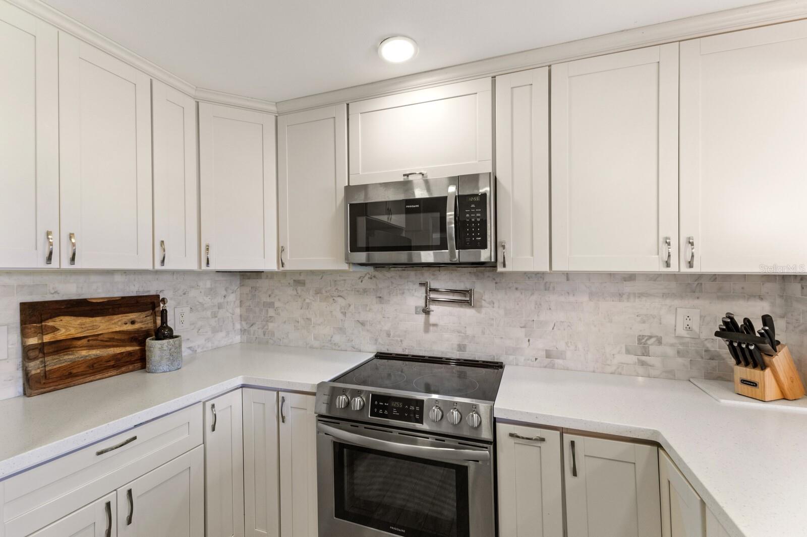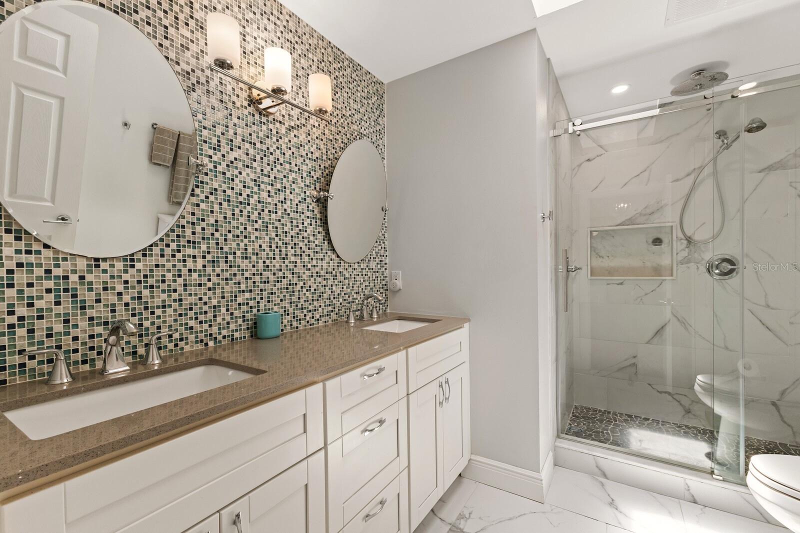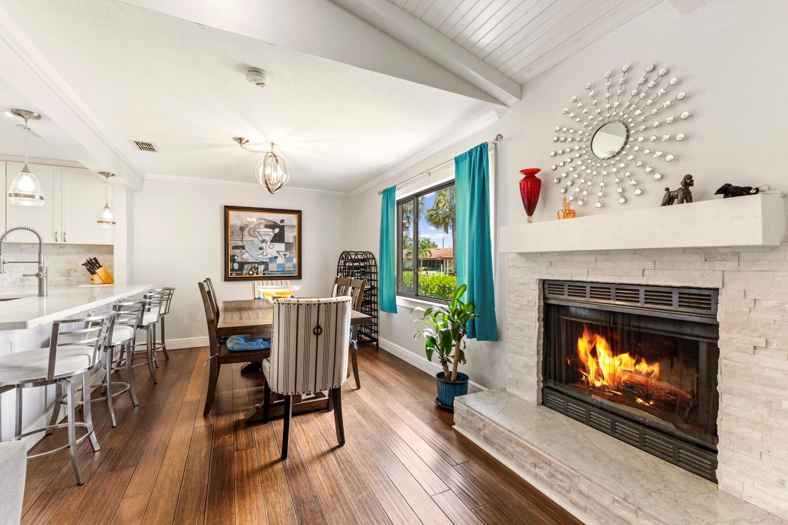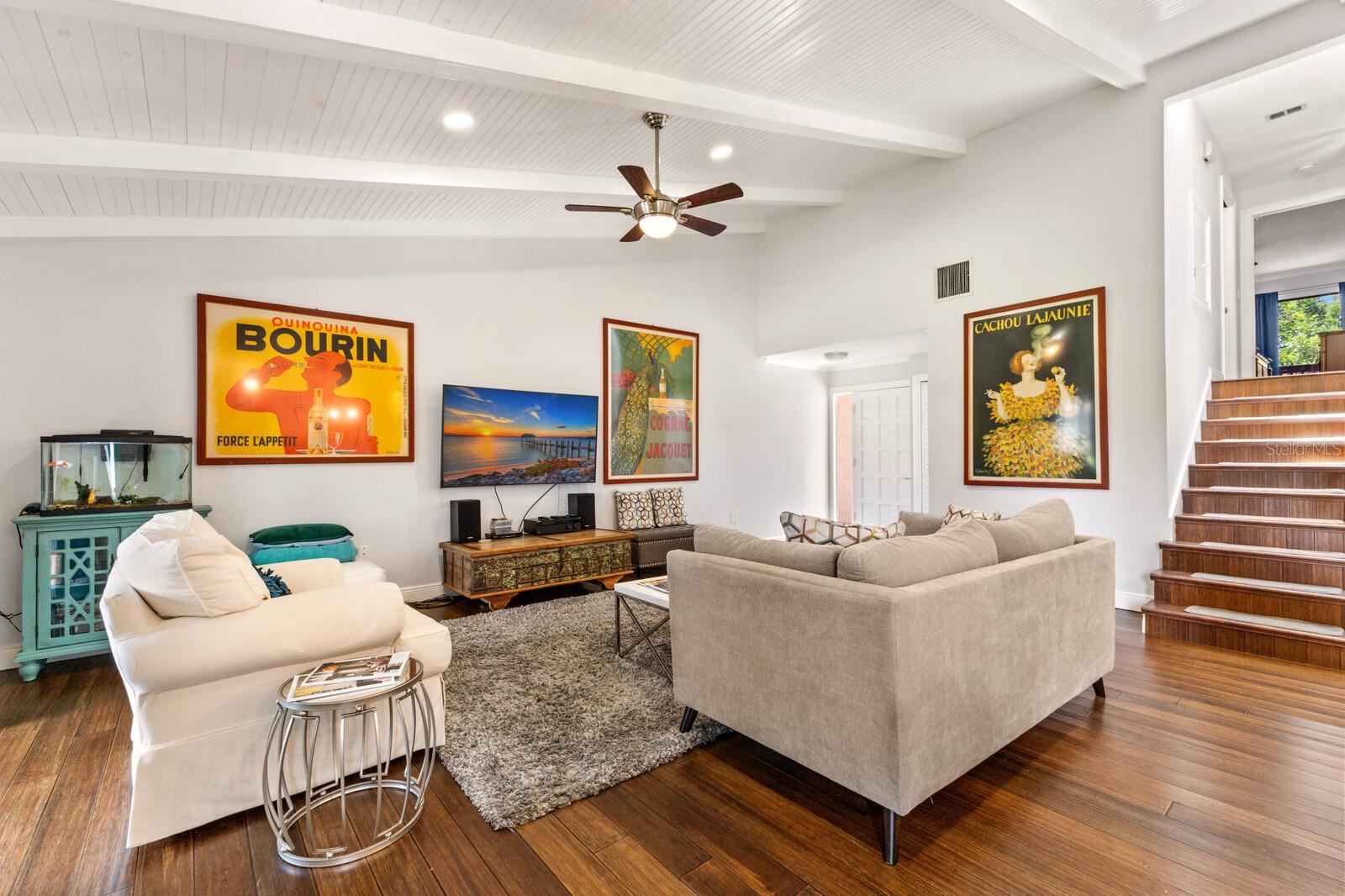 Calling boat enthusiasts! Remodeled 3 bedroom/2.5 bath condo in coveted "West of Trail" location offers direct access to ICW and Gulf of Mexico. The modern, multi-level design includes a two-car garage and separate laundry on the ground floor. Up a few steps discover a cleverly redesigned kitchen with white wood cabinets, glass pendants, new appliances, lazy Susan organizers, a spice drawer, and quartz breakfast bar that flows into the dining room, with picturesque views through a large window. Grays and whites effortlessly blend into the expansive great room, enhanced by soaring shiplap-beamed vaulted ceilings and solid strand bamboo flooring. An office/sunroom tucked off the back overlooks the peaceful courtyard - perfect for home office, craft space, or exercise. Up a few stairs are two bedrooms that share a fully renovated bathroom and balcony. A few more steps lead to the master suite, with 2 separate closets and a completely redone ensuite bath with spacious walk-in dual head shower, marble tile and dual sink vanity. Roof new 2023. Fees include community pool, building maintenance, roof, lawn care, wind/flood/hazard insurance, tennis courts and common areas. Slips at dock are first come basis. Boat sold separately. Highly rated schools including Laurel Nokomis, Pineview and Venice HS.