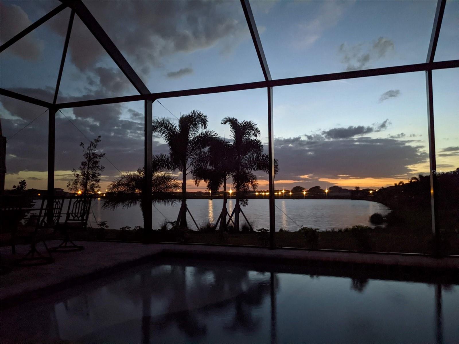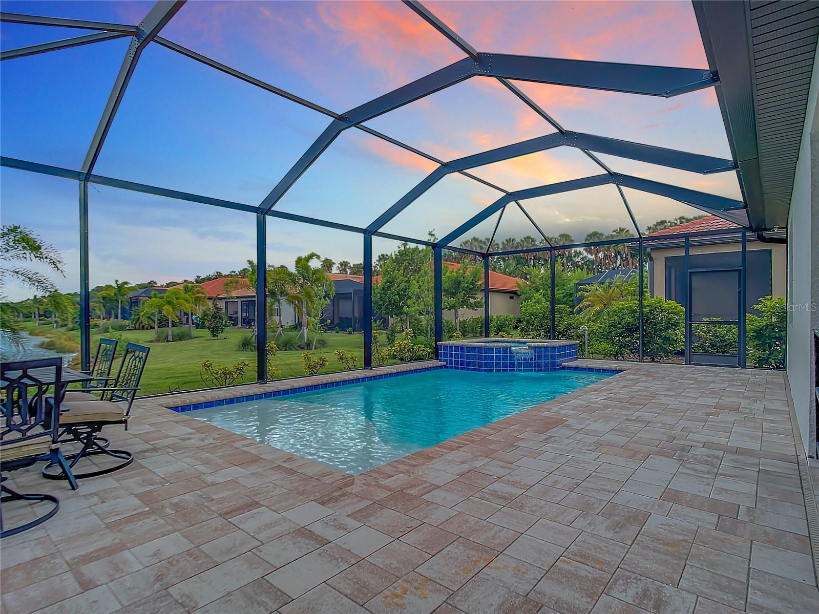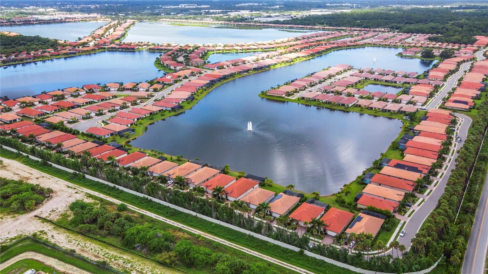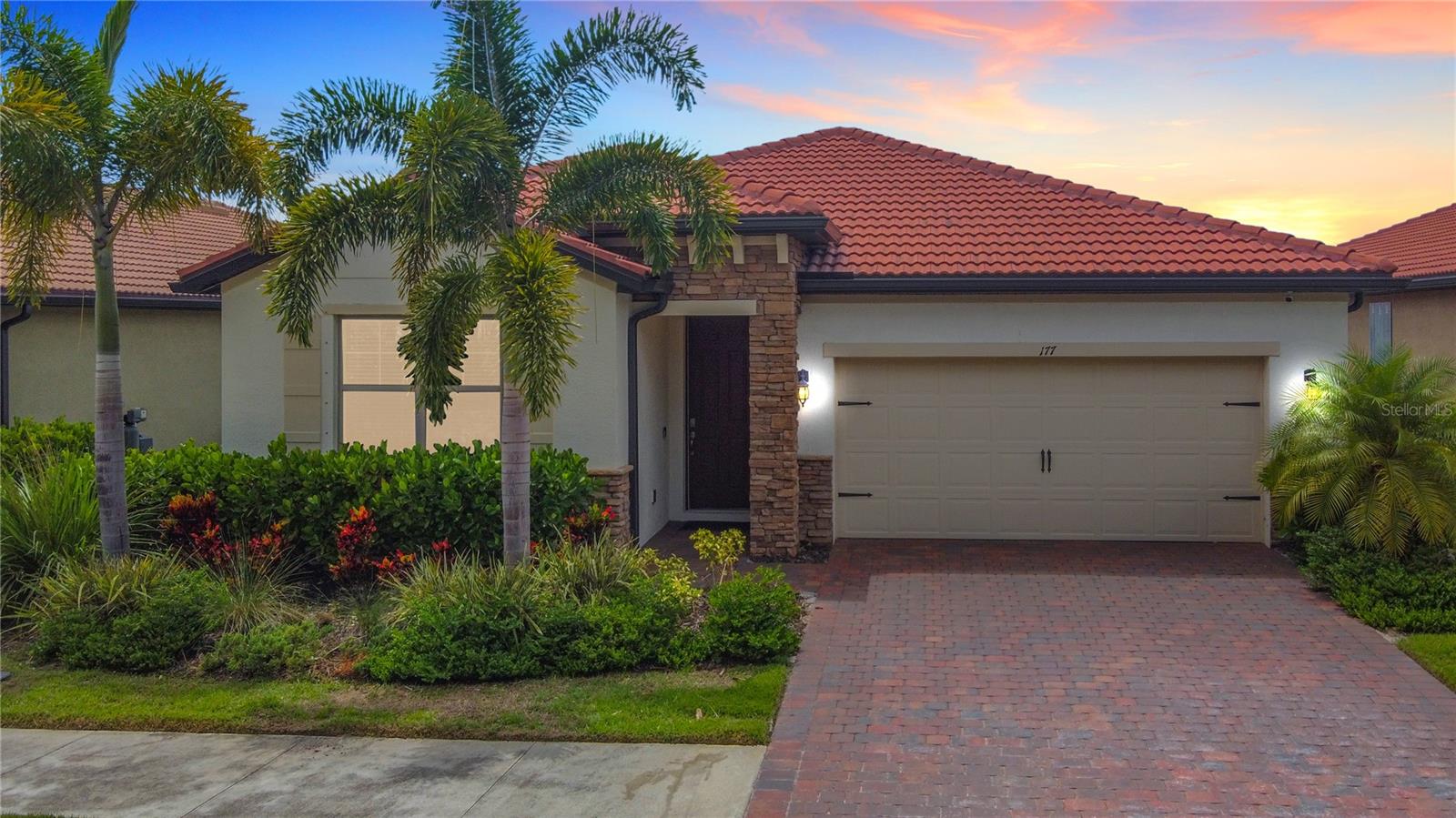 Welcome to Toscana Isles, a vibrant and newer community just minutes from the beautiful beaches of Nokomis and Venice. This serene lakefront retreat, conveniently located near the new Sarasota Memorial Hospital, features a stunning 3-year-old home with breathtaking lake views and spectacular sunsets visible from your private screened-in pool area. The thoughtfully designed split-bedroom layout places the main suite at the back, offering direct views of the pool, spa, and lake. On the opposite side, a second bedroom, a versatile den/third bedroom, and a full bath provide privacy and flexibility. At the heart of the home, the spacious great room and kitchen, with 42-inch cabinets and a large center island, create an ideal space for gatherings. Additional features include an expanded patio for extra outdoor space, a heated saltwater pool and spa with app-controlled settings, ceiling fans in every room and the patio, 4 TV wall mounts, a Kinetico water purification system, and a three-camera ADT security system with smart home controls for locks, lights, and the garage door. This home offers incredible value as one of the most affordable lakefront pool home in the neighborhood, complete with unforgettable sunset views. Schedule your sunset showing today!