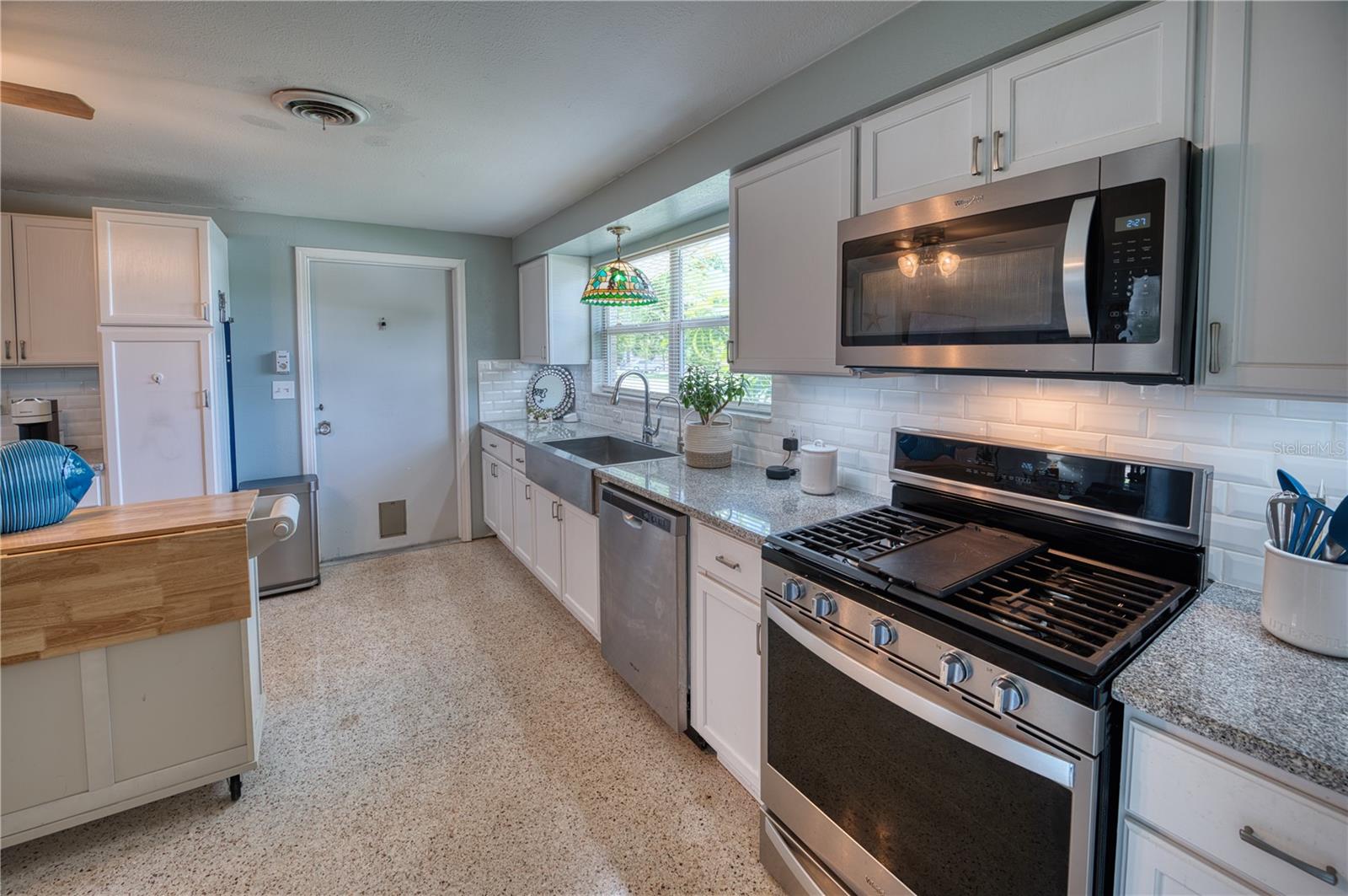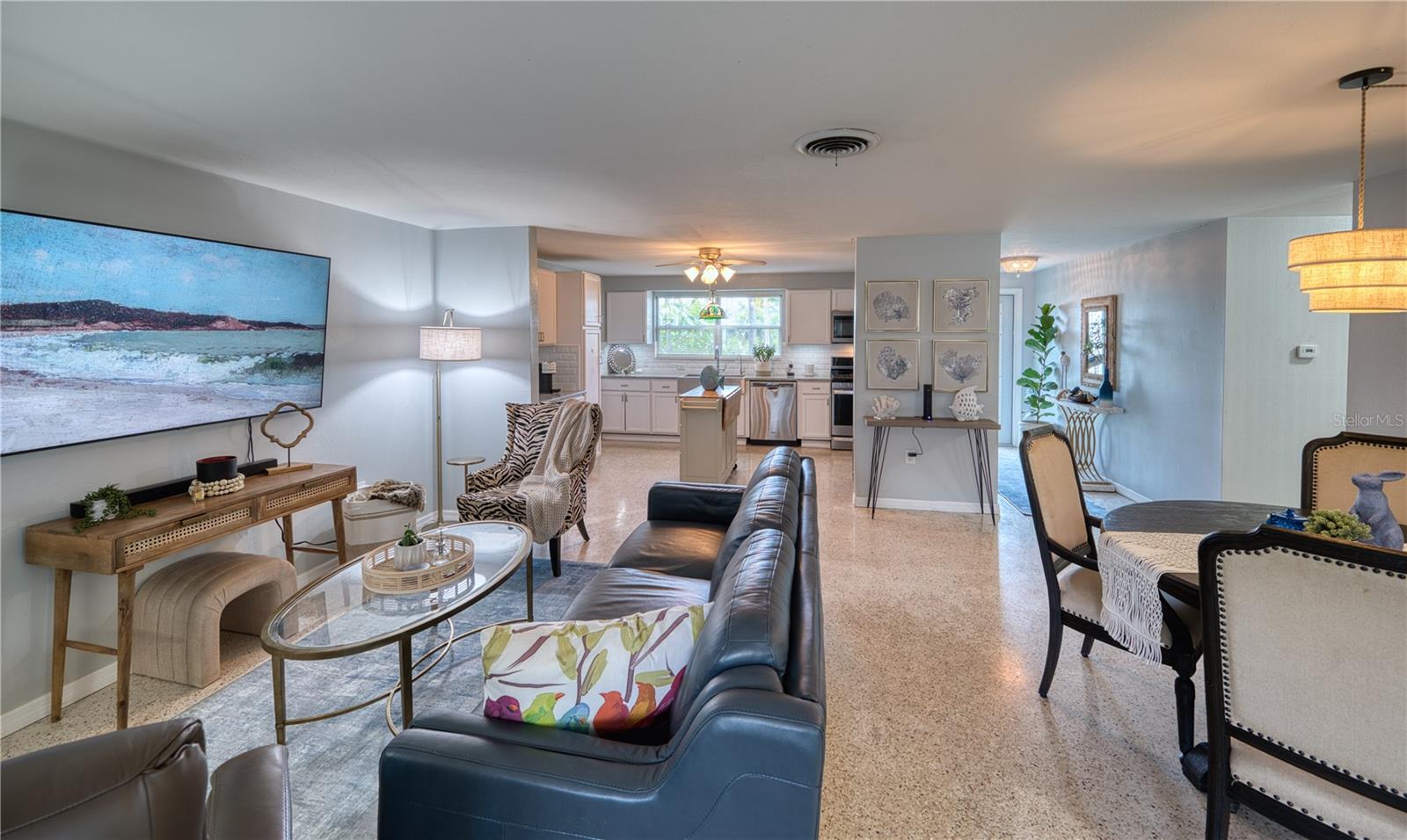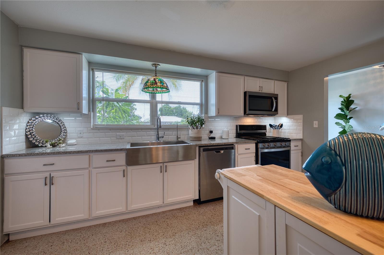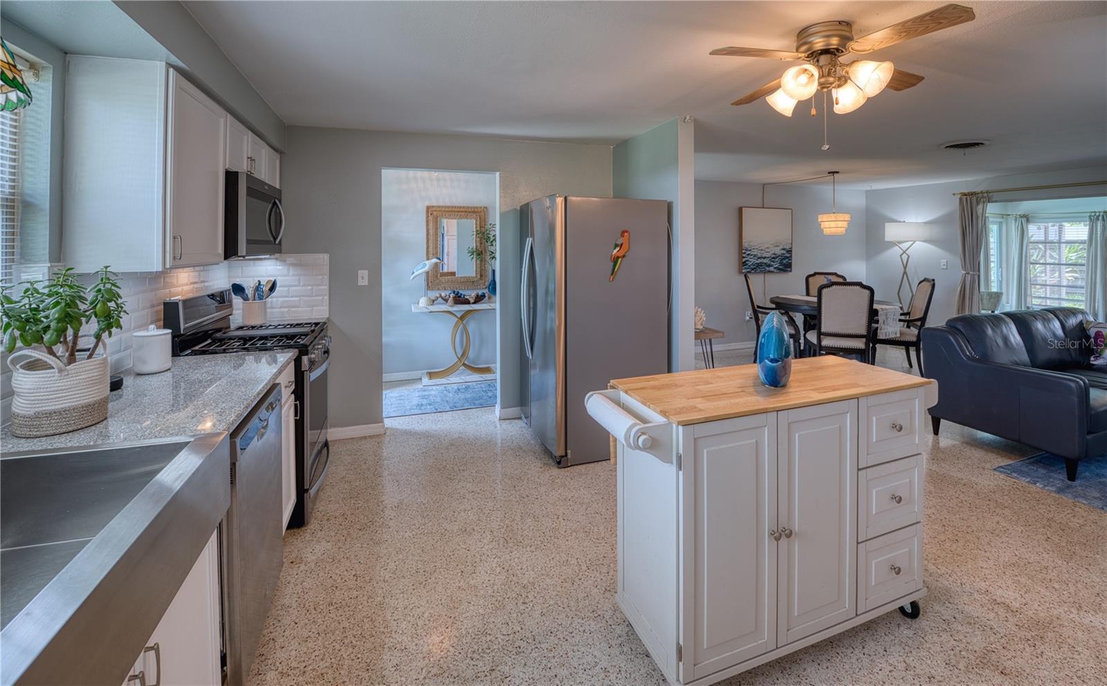 Discover your perfect retreat in Nokomis! This charming 2-bedroom, 2-bathroom, home with a 1-car garage is nestled on almost a quarter acre of lush land, offering both tranquility and convenience. As you step inside you will find a naturally lit open floor plan with beautiful terrazzo flooring throughout the main living areas, adding a touch of elegance and easy maintenance. The on-trend kitchen is a chef's delight, featuring updated cabinetry, a gas stove with a smart oven, a sleek stainless steel farm sink, newer stainless-steel appliances, granite countertops, and a floating island that enhances both functionality and style. The home's roof & AC were replaced in 2022, the AC ducts & blown in insulation were replaced 1 year ago ensuring durability and peace of mind for years to come. Outside, the serene setting extends to the private saltwater pool, where you can unwind and enjoy the Florida sunshine in your very own oasis. The property also offers two sheds for additional storage. This property is ideally located close to some of the best beaches in the area, including Nokomis Beach, Venice Beach, and Siesta Key Beach. Outdoor enthusiasts will love the proximity to the Legacy Trail, a biker's dream. Additionally, you'll find great shopping, restaurants, and A-rated schools just a short distance away. Experience the best of Nokomis living in this delightful home. Contact us today to schedule a showing!