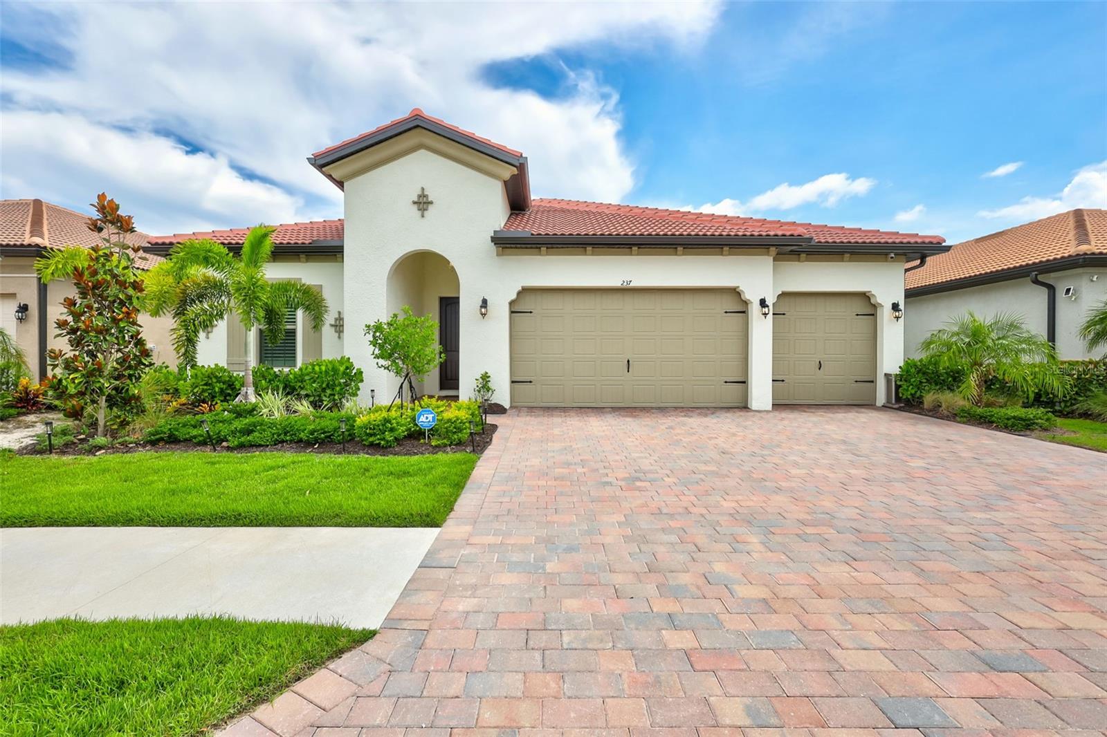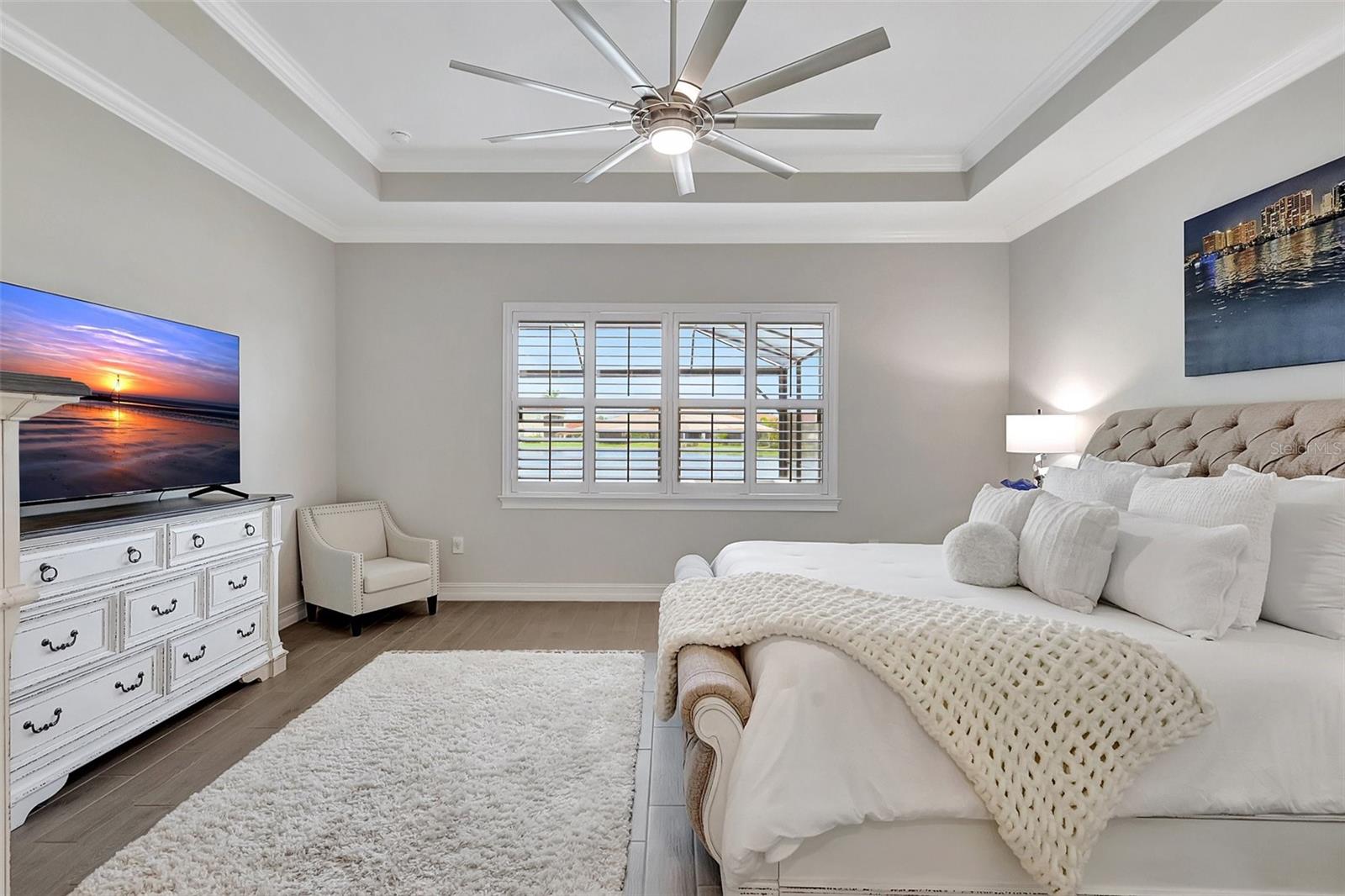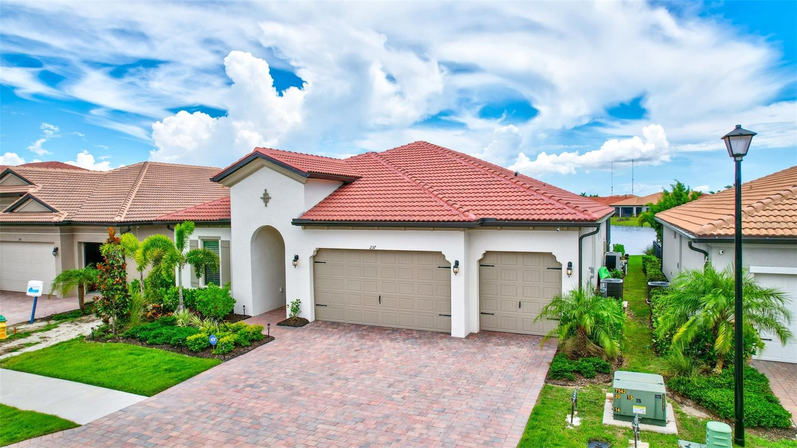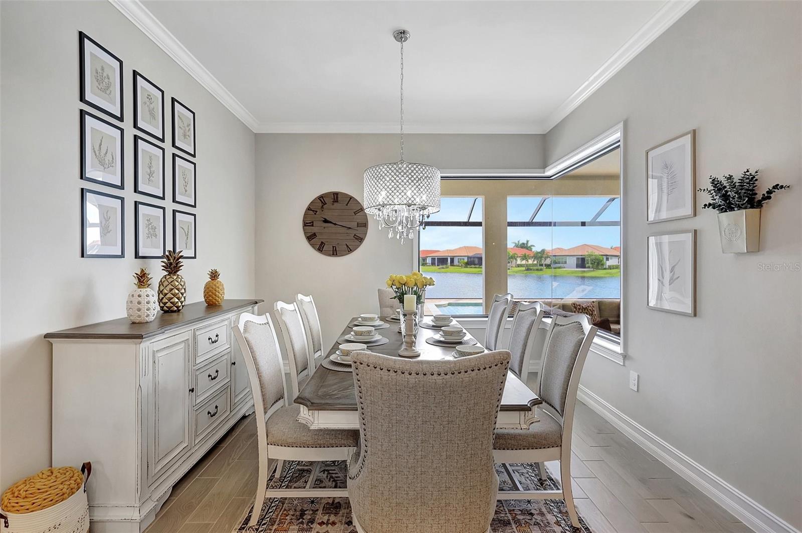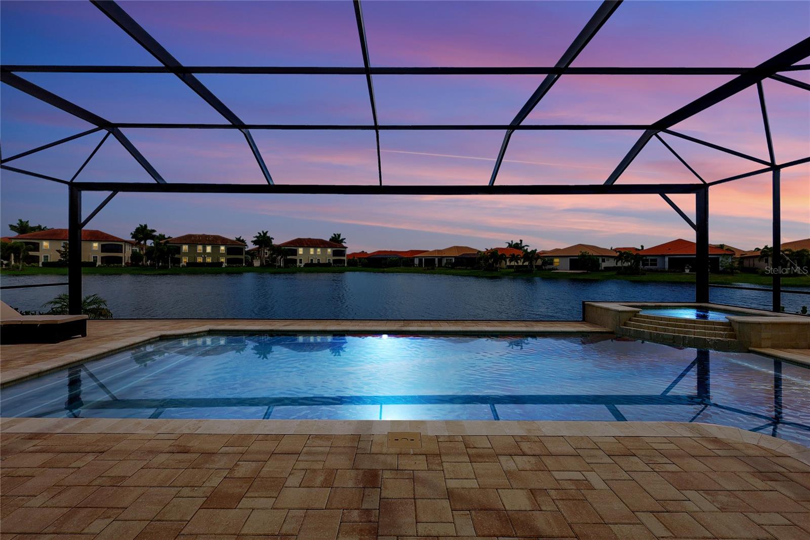 Indulge in luxury living in this exquisite three-bedroom, three-bathroom home featuring an additional two half-bathrooms. This meticulously designed residence boasts a spacious den, a three-car garage, and breathtaking panoramic views of a serene pond. Unwind in your private oasis, complete with a sparkling saltwater pool, rejuvenating hot tub, and a clear view screened-in enclosure offering seamless indoor-outdoor living. This home is complete with impact resistant windows and doors. Step inside from the covered paver entryway to discover a world of elegance with gleaming quartz countertops, rich wood-look ceramic tile flooring throughout, crown molding and an open floor plan perfect for entertaining. Foray is a wonderful long view thru to the lanai pool. Directly to the left is a hallway having a second bedroom facing the front of the home, a lovely shared full bath and an additional third bedroom. Each bedroom has a ceiling fan with light. Further, on the left is a spacious glass double door entry to a spacious den with window. Across the hallway is one of two half baths, the mud space to the three-car garage. Further, down this hallway is you'll find the laundry room with many cabinets, sink and quartz counter space for folding. Onward, the third bedroom with wonderful full bath, with long counter and glass door walk-in tiled shower. Entering the spacious open heart of the home with large tray ceiling, views of the lanai, pool and pond. The fabulous kitchen has a large, long counter for hosting, tiled backsplash, soft-close and top of the line SS Kitchen Aid appliances. The pantry is larger and is wood shelved for the highest use. Adjoining the kitchen is a delightful long dining area with seamless window views to lanai, pool and pond. To the back of the home the master suite with four windows, two California closet walk in's, double-sink master bath and ceiling to floor walk-in shower. In the back, an amazing, covered area on the lanai, with outdoor tile/stone kitchen with grill, vent-out hood, sink and refrigerator. The pool area is paver, a sun shelf, raised hot tub and grand view of large pond behind home. Toscana Isles has amenities for all, a grand infinity edge pool, hot tub, looking over one of 200 acres of connected lakes for the members of this neighborhood to kayak/canoe, fish and board. With 8,000 sq ft clubhouse holding a fitness center, gathering game room, kitchen/bar billiard room and ballroom. The grounds having tennis, pickleball, bocce courts, playground and dog parks. Some of the best beaches on the Gulf of Mexico within minutes, the Legacy Trail for biking and running/walking, downtown Venice and Sarasota and just a mile from Sarasota Memorial Hospital Venice at the US 75 highway.