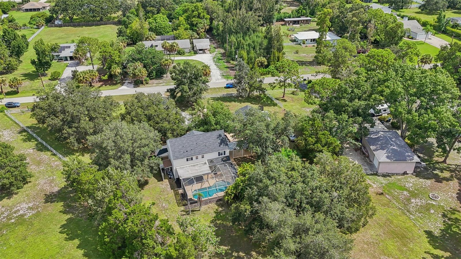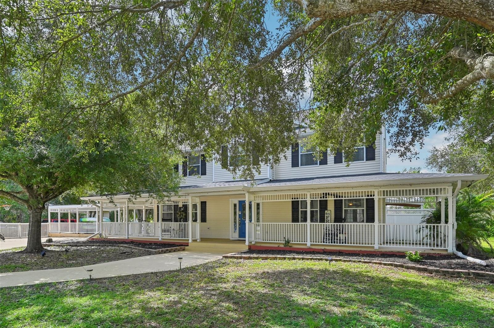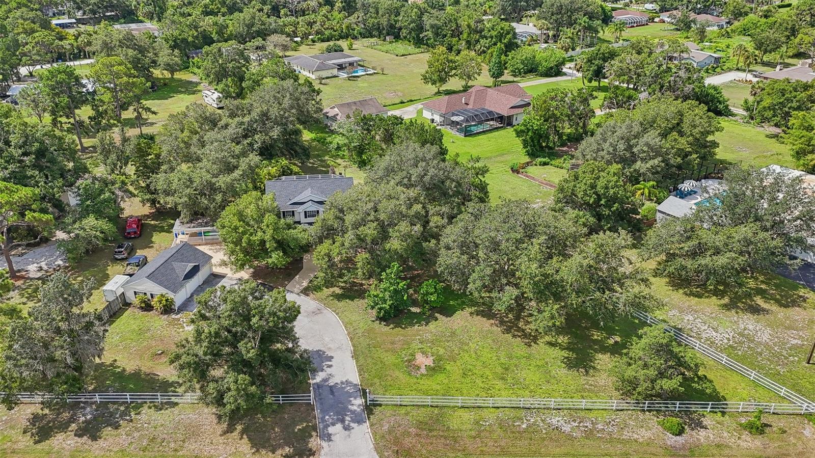 DO NOT MISS this amazing opportunity! This charming single-family pool home on over an acre lot is located in the sought-after Mission Valley Estates. MVE is a non HOA community which allows for horses and livestock. Bring your boats, RVs and toys. Featuring four bedrooms and two and a half bathrooms, this two-story farmhouse-style house boasts a large front porch perfect for relaxing. Enter into a foyer with ample space for a drop zone before heading upstairs. The upgraded kitchen, with white cabinets, granite countertops, and stainless appliances, opens to an informal dining area. A casual flex space separates the kitchen from the large living room. French doors lead to a screened lanai with a pool overlooking the expansive rear lot. All four bedrooms are located upstairs, with the primary bedroom featuring an ensuite bathroom at one end. Laundry on 2nd floor for added convenience. The property also includes a separate three-car garage. A large side porch offers endless possibilities, from hammocks to boat storage. Recent updates include a new roof in 2022 and HVAC in 2018. This home is ideally situated less than 4 miles from Nokomis Beach, only 1.3 miles from the Legacy Trail, just 3.4 miles from the new Sarasota Memorial Hospital, and less than 5 miles from the amazing restaurants of downtown Venice. Golf enthusiasts will appreciate the proximity to Mission Valley Golf & Country Club and Calusa Lakes Golf Club right across the street. Zoned and minutes from sought after schools - Laurel Nokomis School and Venice High. Priced to allow for buyers' upgrades, this home is ready for you to make it your own!