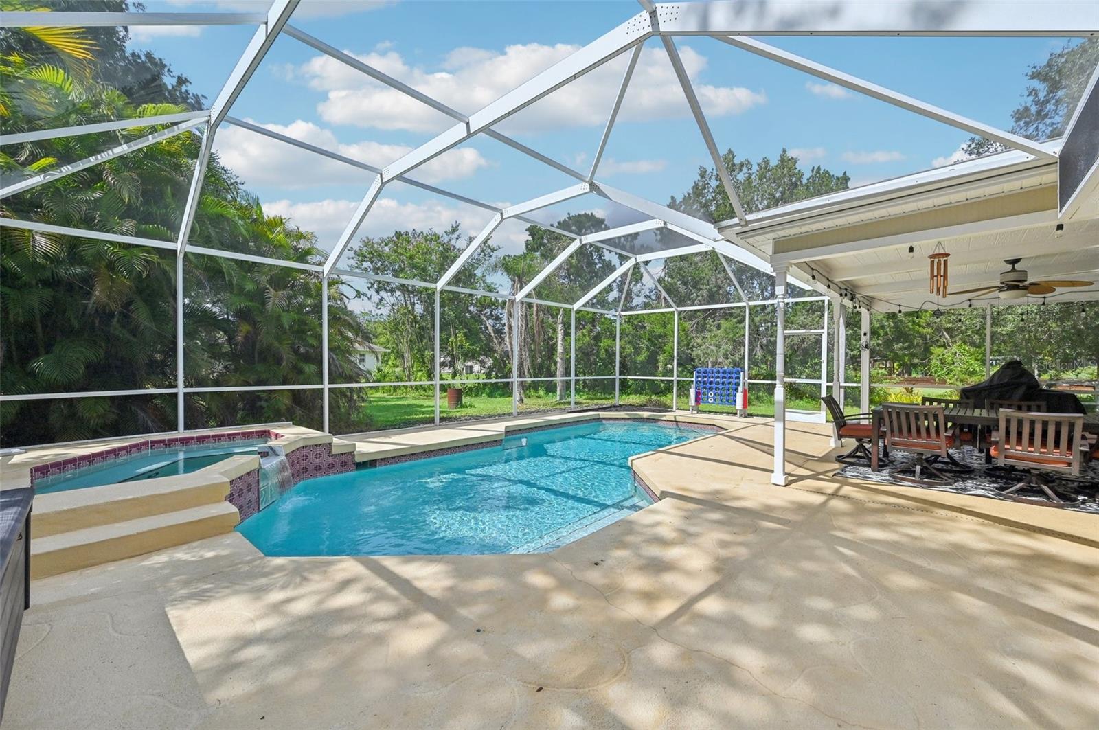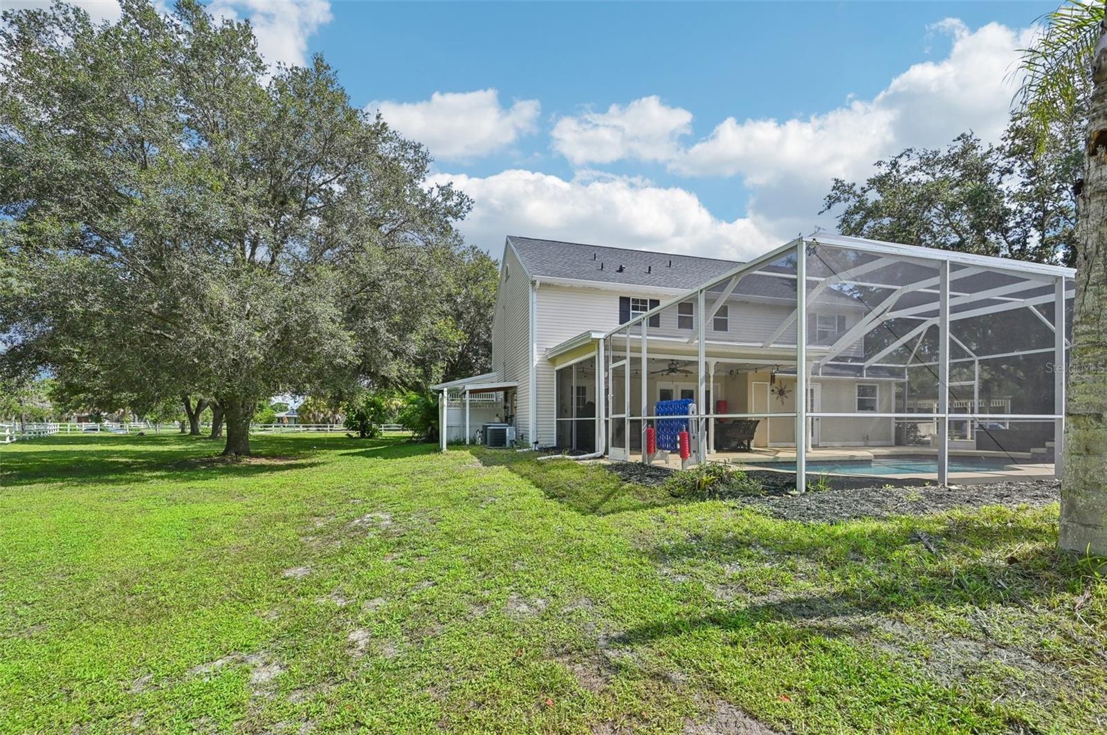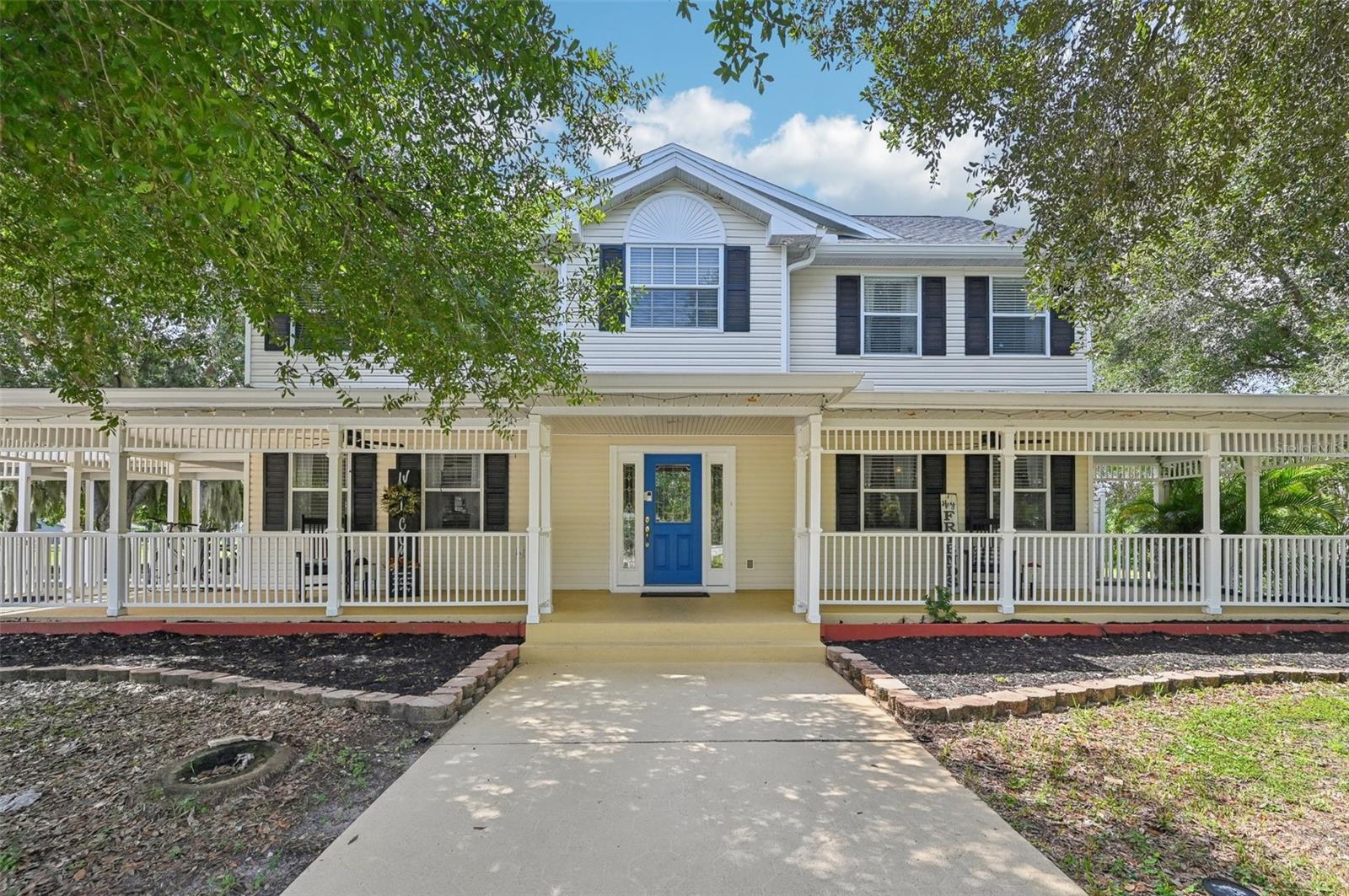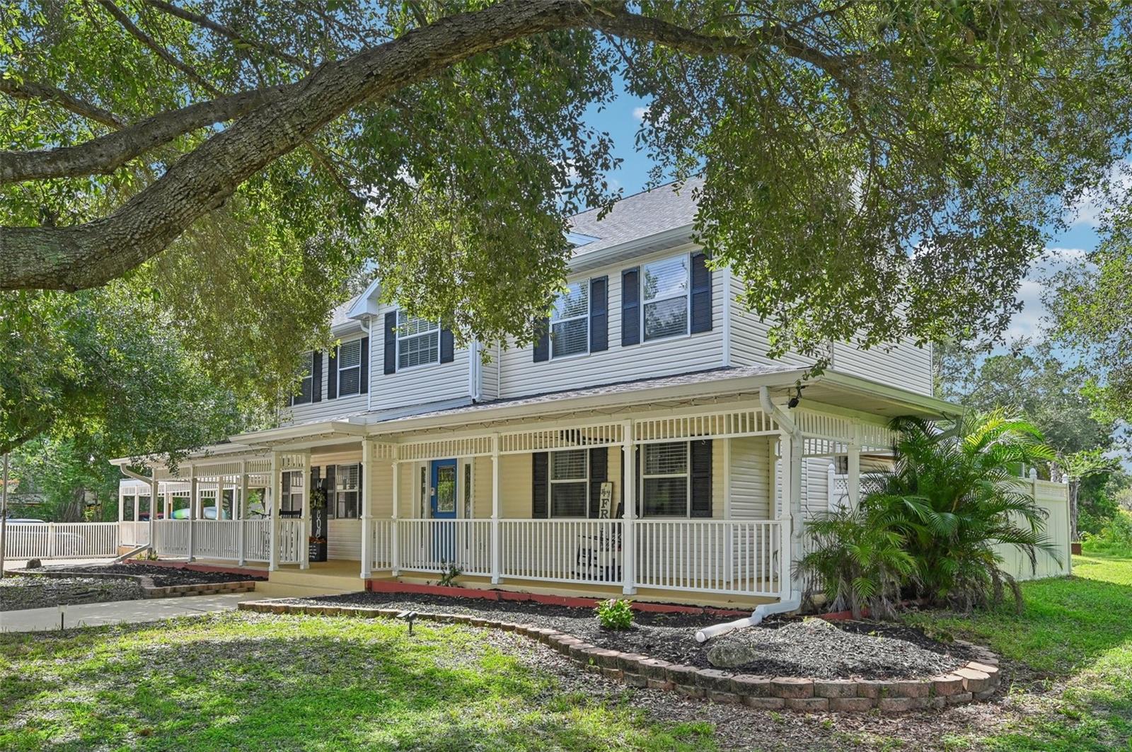 DO NOT MISS this amazing opportunity! This charming single-family pool home on over an acre lot is located in the sought-after Mission Valley Estates. MVE is a non HOA community which allows for horses and livestock. Bring your boats, RVs and toys. Featuring four bedrooms and two and a half bathrooms, this two-story farmhouse-style house boasts a large front porch perfect for relaxing. Enter into a foyer with ample space for a drop zone before heading upstairs. The upgraded kitchen, with white cabinets, granite countertops, and stainless appliances, opens to an informal dining area. A casual flex space separates the kitchen from the large living room. French doors lead to a screened lanai with a pool overlooking the expansive rear lot. All four bedrooms are located upstairs, with the primary bedroom featuring an ensuite bathroom at one end. Laundry on 2nd floor for added convenience. The property also includes a separate three-car garage. A large side porch offers endless possibilities, from hammocks to boat storage. Recent updates include a new roof in 2022 and HVAC in 2018. This home is ideally situated less than 4 miles from Nokomis Beach, only 1.3 miles from the Legacy Trail, just 3.4 miles from the new Sarasota Memorial Hospital, and less than 5 miles from the amazing restaurants of downtown Venice. Golf enthusiasts will appreciate the proximity to Mission Valley Golf & Country Club and Calusa Lakes Golf Club right across the street. Zoned and minutes from sought after schools - Laurel Nokomis School and Venice High. Priced to allow for buyers' upgrades, this home is ready for you to make it your own!