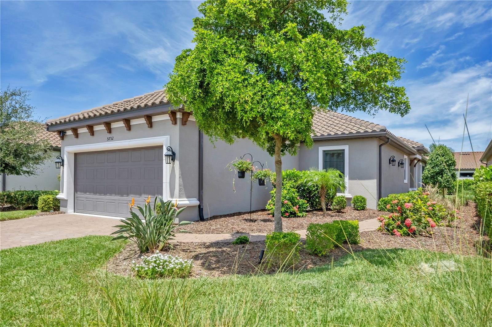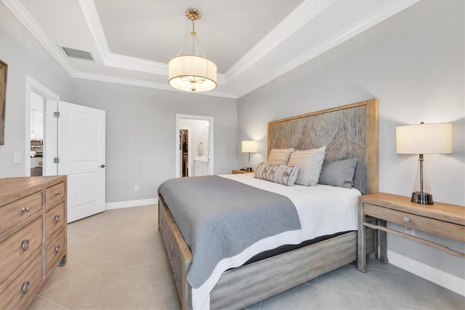 Perfectly located in the gated, Taylor Morrison Esplanade community of Bellacina By Casey Key, this like new, three-bedroom home with a pool offers beautiful style, design, serenity and convenience. From the moment you enter the residence, a sense of calmness takes over, because the home is open and airy, has volume ceilings, is bright and light and is finished in a smooth palate of soft colors. Inside this wonderfully maintained property, you’ll find 18” porcelain tile flooring laid on the diagonal, a spacious kitchen with solid wood cabinetry, quartz countertops, 48” upper wall cabinets, a pantry closet, tiled backsplash, under cabinet lighting, cabinet drawers with dovetail joinery, pendant lighting, GE stainless steel appliances with a natural gas stove and counter height seating for entertaining. Adjacent to that is the dining room that features a tray ceiling with crown molding, a transom window, designer fabric drapery, a decorative chandelier and expansive walls for art. From there, you flow into the family room with more natural light from windows and glass sliders and here you’ll find a volume, tray ceiling with crown molding, decorative chandelier, window treatments and views of the outdoor sundeck. The primary bedroom suite is spacious in size, featuring high ceilings, crown molding, bay windows with shades that look out to the pool, and direct access to an ensuite bath with private water closet, vanity cabinetry with dual, under-mount sinks, and a tiled lined shower with frameless glass. The walk-in wardrobe closet has an upgraded clothing storage system, which help make this area neat and organized. Each of the guest bedrooms are also generous in size and offer walk-in closets with upgraded closet organizing systems, decorative ceiling fans, windows with drapery and blinds and access to a full bathroom with combination shower/bathtub. There’s also a laundry room with an LG front load washer and dryer, a two-car garage with four extra feet in length builder upgrade, a workshop, storage cabinets and professional storage shelves suspended from the ceiling. Outside the back of the cheerful residence is a screened-in brick paver deck with a covered seating area and a kidney shaped dipping pool. The home boasts a brick paver driveway, walkways, storm panels for the exterior window openings, just in case the weather gets a little fickle. The community features an upscale clubhouse with catering kitchen, a fitness room that overlooks the resort-style heated swimming pool with cabanas, an outdoor spa, firepit, pickleball courts, a tennis court, bocce ball court, cornhole station, a playground, two dog parks and an activities director to help keep your social agenda full. At Bellancia there’s no CDD fees and lawn maintenance is included in your HOA fees. There is also gated access to the Sarasota County Legacy Trail from inside the community. From this location, you’re very close to Nokomis Beach, Venice Beach and Siesta Key Beach, plus there’s an abundance of shopping, restaurants, grocery stores, and all that southwest Florida graciously has to offer.
