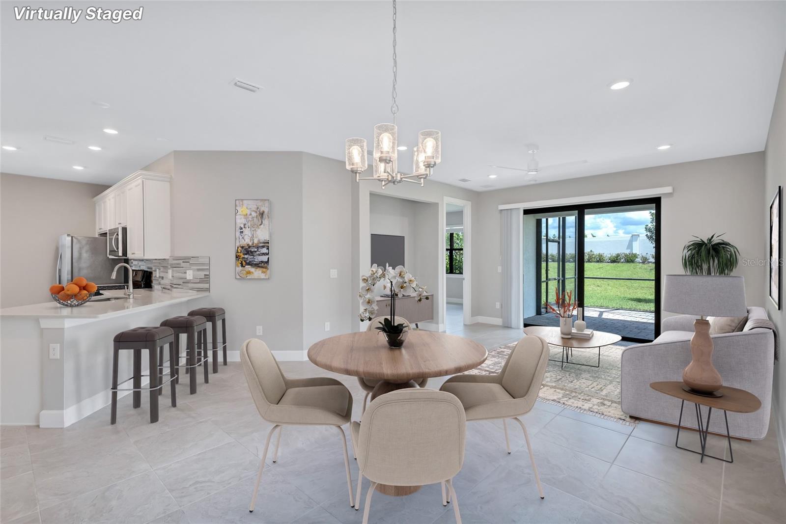 Why Wait? Upscale Resort-Stye Living in Talon Preserve begins now with this move-in ready, 2022 construction END- unit Villa. This show-stopping 2-bedroom, 2-full bath, with a den/bonus room home in the gated community of Talon Preserve offers the ultimate Florida lifestyle, free from maintenance fees and CDD burden. Imagine coffee on your extended screened lanai, while the sun rises streaming through the 8-foot doors and sliders, creating a bright and airy haven under the soaring 10-foot ceilings. This meticulously maintained home with numerous upgrades boasts porcelain tile throughout, a neutral color palette, designer lighting for a modern feel, and a gorgeous gourmet kitchen with stainless steel appliances, quartz countertops and marble backsplash. An additional 3rd room provides extra space and flexibility to fit your lifestyle priorities. Peace of mind upgrades begin with whole-house Impact Glass & Sliders, interior laundry room, a secure, attached 2-car garage all situated in a private cul-de-sac setting. This villa is located in a construction-free neighborhood with close access to the front gate and the Talon Preserve Resort-Style Amenities. The 18,000 square foot Grand Resort Clubhouse includes a full-service inside/outside bar & restaurant, community & gathering rooms, fitness center, performance training room, group fitness studio, locker rooms, card/craft rooms & a Classic Arcade. The outside amenities include a resort-styled heated lap pool & spa with rock waterfall & beach entry. Pickle Ball & Tennis Courts with shaded canopy seating, Bocce Courts, a Fire Pit Lounge, Bike Racks and even a splash pad & Dog Park which accommodates other residents and guests. An onsite Manager & Lifestyle Director coordinate the details and events that distinguishes the Talon Preserve lifestyle community. Located in the heart of Sarasota County, Talon Preserve offers unique life-style opportunities for its residents including easy access to Downtown Sarasota’s cultural centers, the quaint Downtown Venice Center, Siesta Key & other numerous Gulf beaches and private access to the 20-mile Legacy Trail for biking/walking through the lush tropical Florida landscaping! Why wait on the sidelines when prices for new construction keep going up?