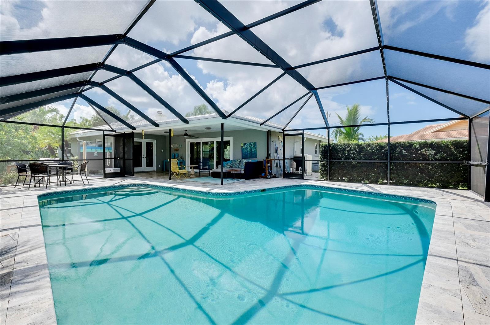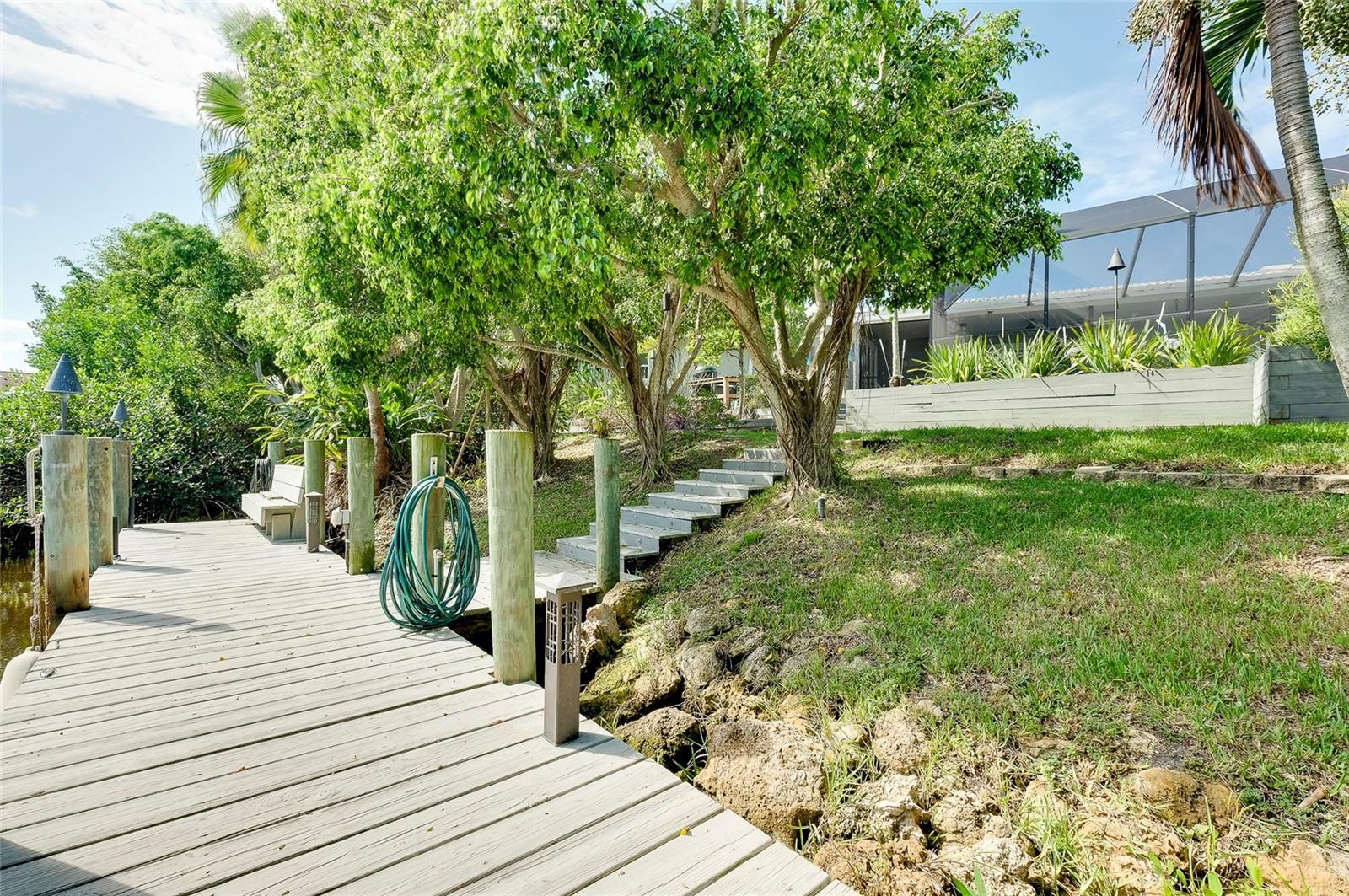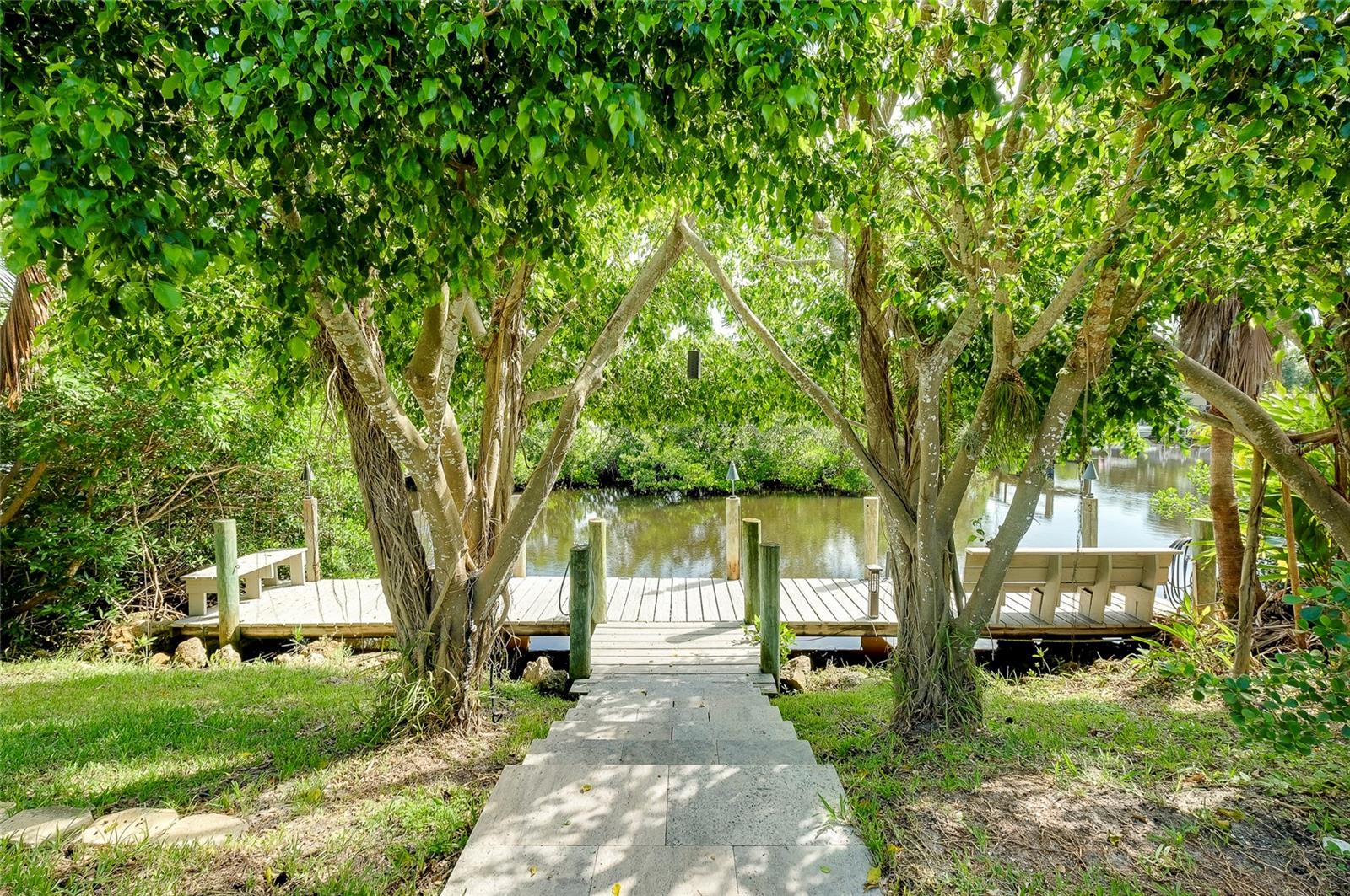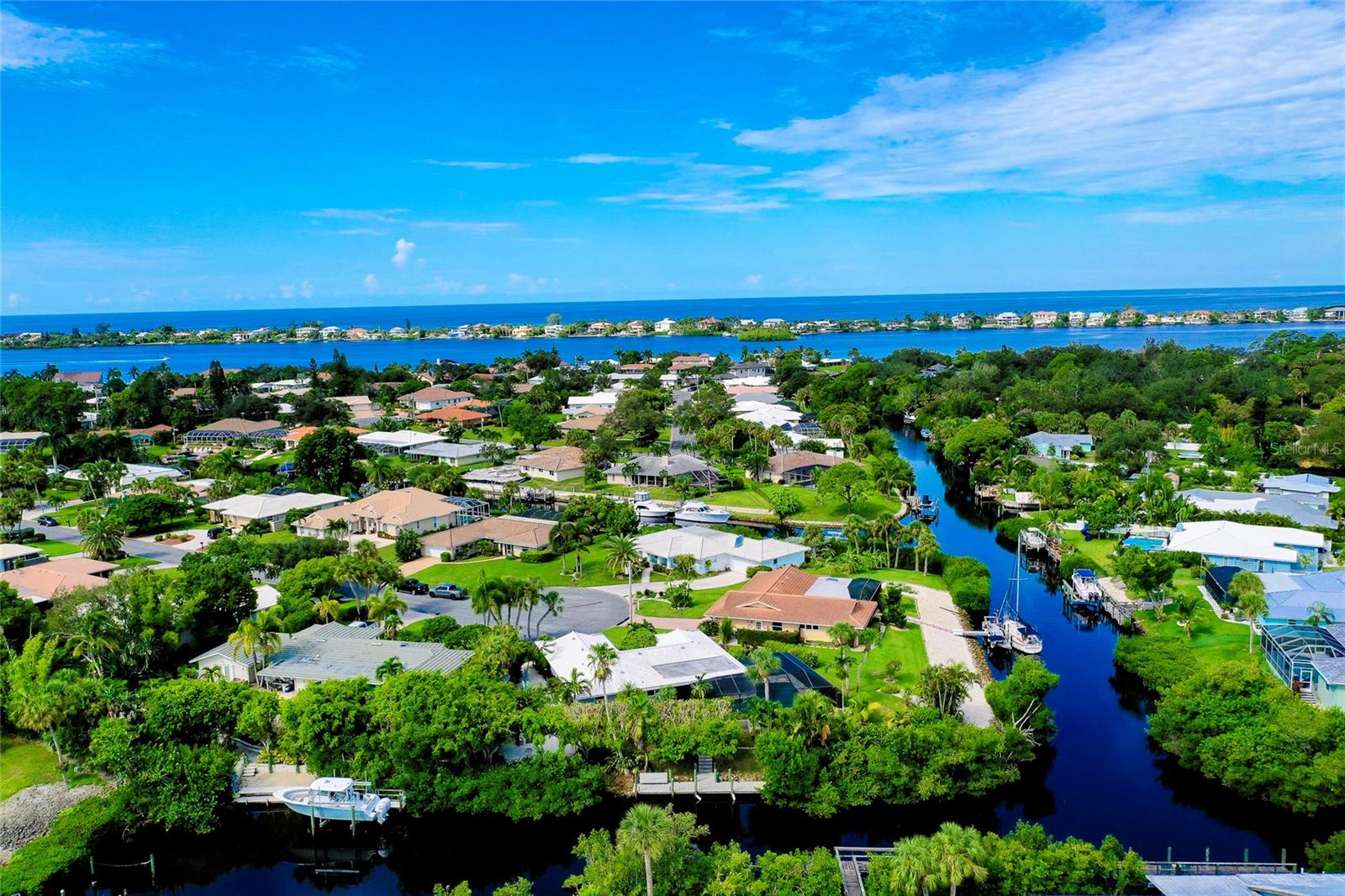 Welcome to the "Water House," a rare waterfront gem offering a perfect blend of luxury, nature, and convenience.Situated in a peaceful, laid-back neighborhood just minutes from the beach, this home provides sailboat access to the Gulf with no bridges in between, giving you direct access to the water right from your backyard. The wide waterfront views offer a tranquil backdrop, while the large, deep heated saltwater pool invites year-round relaxation. The location is unbeatable, with proximity to I-75, Oscar Scherer State Park, Venice, and Sarasota, ensuring that everything you need is just a short drive away. Whether you're cruising to the beach in your golf cart (LSV) or enjoying the serenity of the professionally landscaped and lit outdoor space, this property offers a unique combination of privacy, safety, and coastal living. The home is positioned on a quiet cul-de-sac, offering even more peace and seclusion, ideal for those seeking a quiet, retreat-like atmosphere. Nature enthusiasts will fall in love with the private dock where you can fish, observe manatees, and watch birds in their natural habitat—all from the comfort of your own backyard. Inside, the home boasts a split floor plan, providing the perfect balance of open living and privacy for families or guests. Almost every major system has been updated within the past 10 years, including a new tile roof, air conditioning, and septic system. The kitchen and baths feature modern European Kraftmaid cabinetry, with the owner's suite offering a serene soaking tub for the ultimate relaxation experience. Additional amenities include an inside laundry room, county water with an irrigation system on well water, and sewer pipes that were relined in 2024 for added peace of mind. Hurricane fabric protects all doors and windows, and recent upgrades include new front doors, impact garage door, and a new French door (currently being installed Approx. Mid October). This home combines the best of modern living with the tranquility of nature—schedule your viewing today to experience this exceptional waterfront lifestyle!
