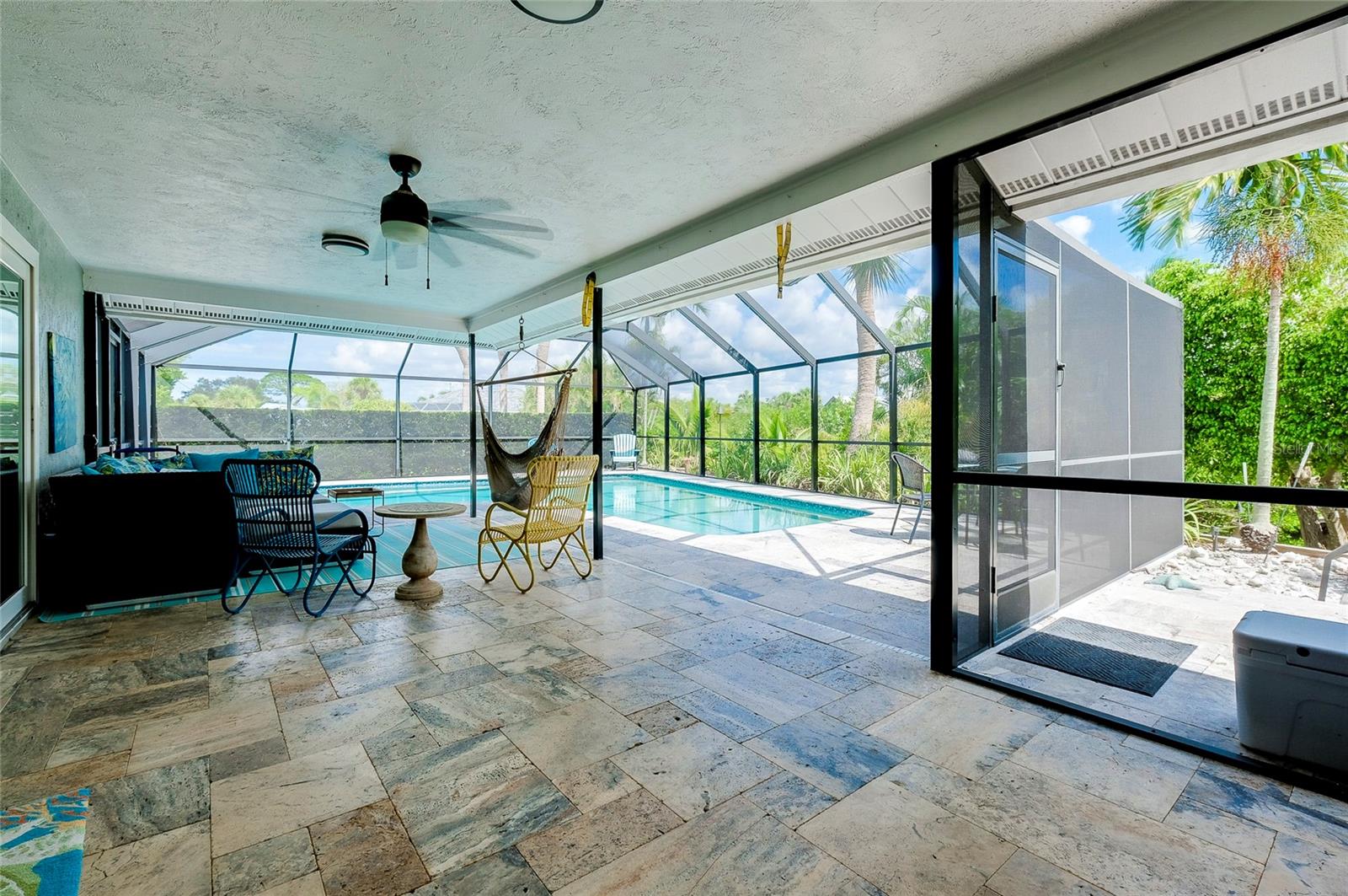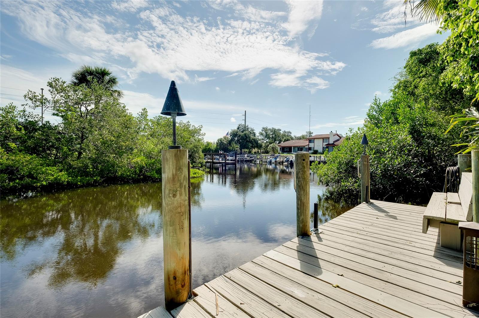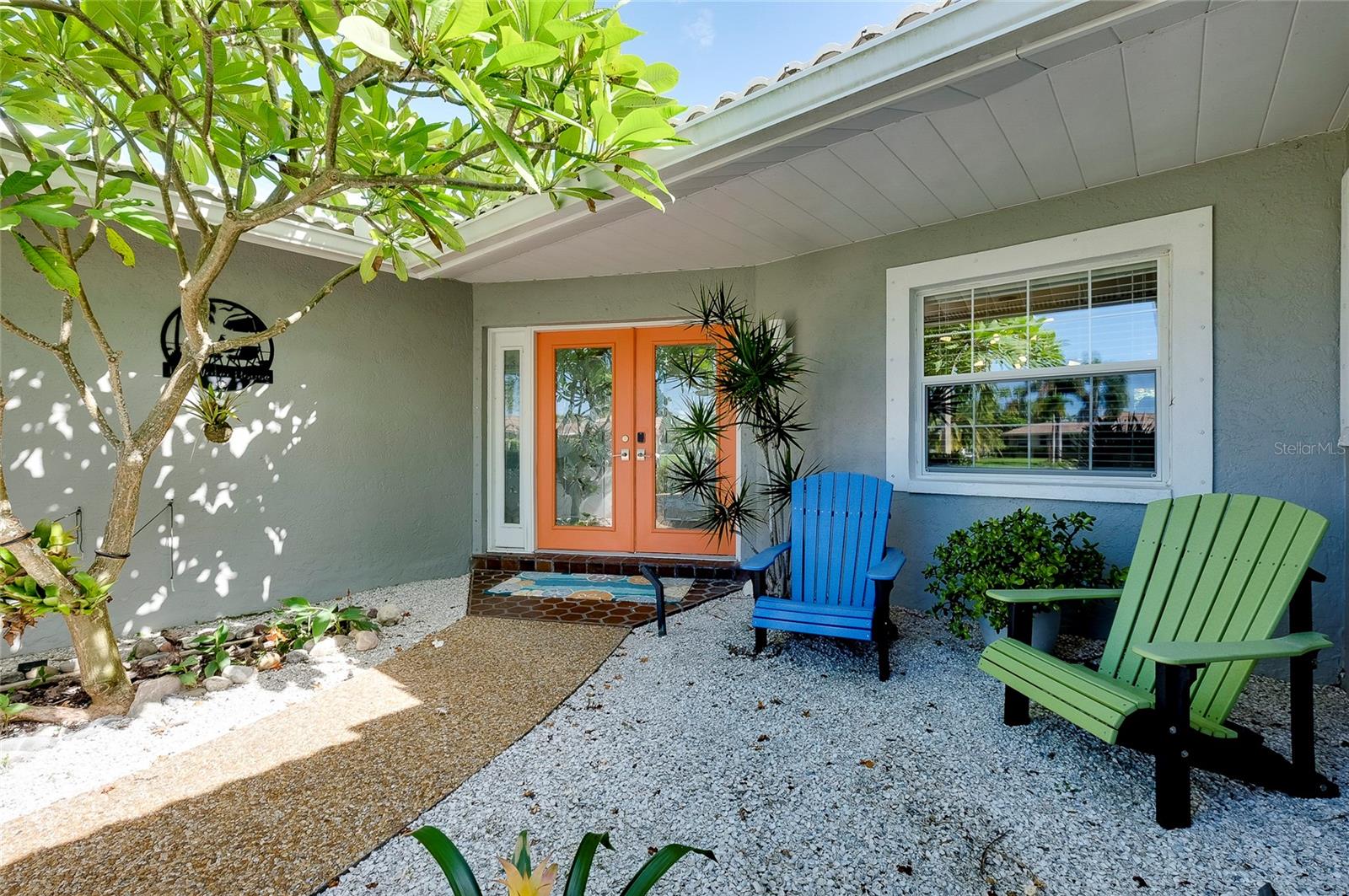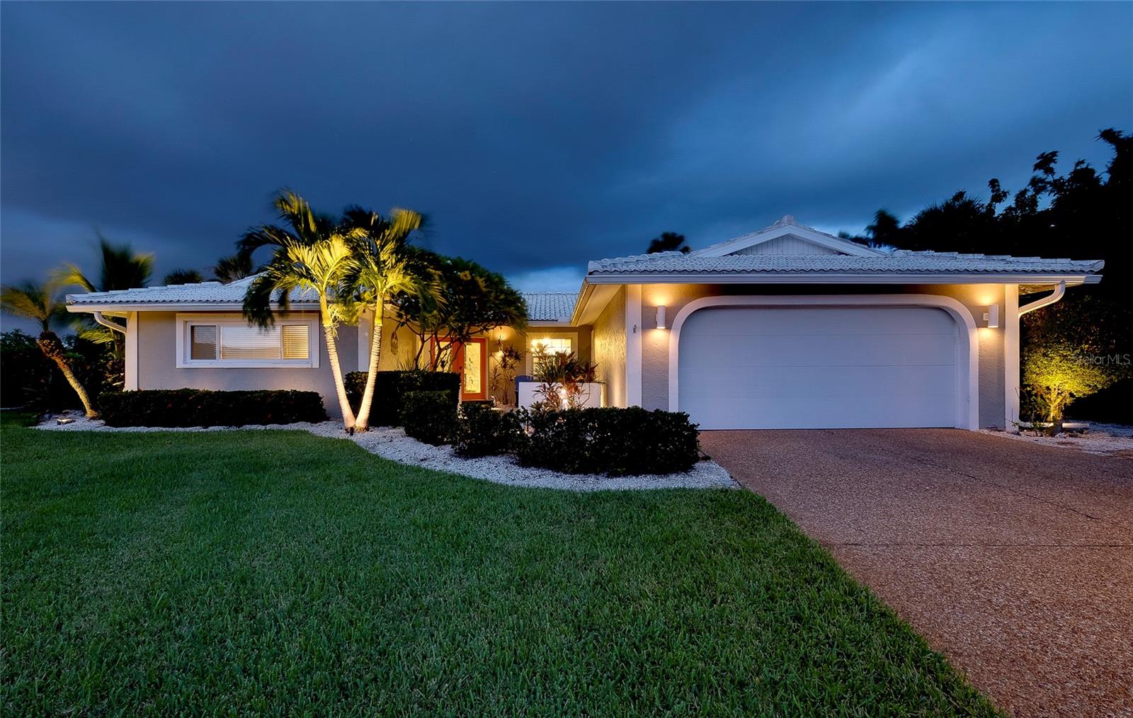 Welcome to the "Water House," a rare waterfront gem offering a perfect blend of luxury, nature, and convenience.Situated in a peaceful, laid-back neighborhood just minutes from the beach, this home provides sailboat access to the Gulf with no bridges in between, giving you direct access to the water right from your backyard. The wide waterfront views offer a tranquil backdrop, while the large, deep heated saltwater pool invites year-round relaxation. The location is unbeatable, with proximity to I-75, Oscar Scherer State Park, Venice, and Sarasota, ensuring that everything you need is just a short drive away. Whether you're cruising to the beach in your golf cart (LSV) or enjoying the serenity of the professionally landscaped and lit outdoor space, this property offers a unique combination of privacy, safety, and coastal living. The home is positioned on a quiet cul-de-sac, offering even more peace and seclusion, ideal for those seeking a quiet, retreat-like atmosphere. Nature enthusiasts will fall in love with the private dock where you can fish, observe manatees, and watch birds in their natural habitat—all from the comfort of your own backyard. Inside, the home boasts a split floor plan, providing the perfect balance of open living and privacy for families or guests. Almost every major system has been updated within the past 10 years, including a new tile roof, air conditioning, and septic system. The kitchen and baths feature modern European Kraftmaid cabinetry, with the owner's suite offering a serene soaking tub for the ultimate relaxation experience. Additional amenities include an inside laundry room, county water with an irrigation system on well water, and sewer pipes that were relined in 2024 for added peace of mind. Hurricane fabric protects all doors and windows, and recent upgrades include new front doors, impact garage door, and a new French door (currently being installed Approx. Mid October). This home combines the best of modern living with the tranquility of nature—schedule your viewing today to experience this exceptional waterfront lifestyle!
