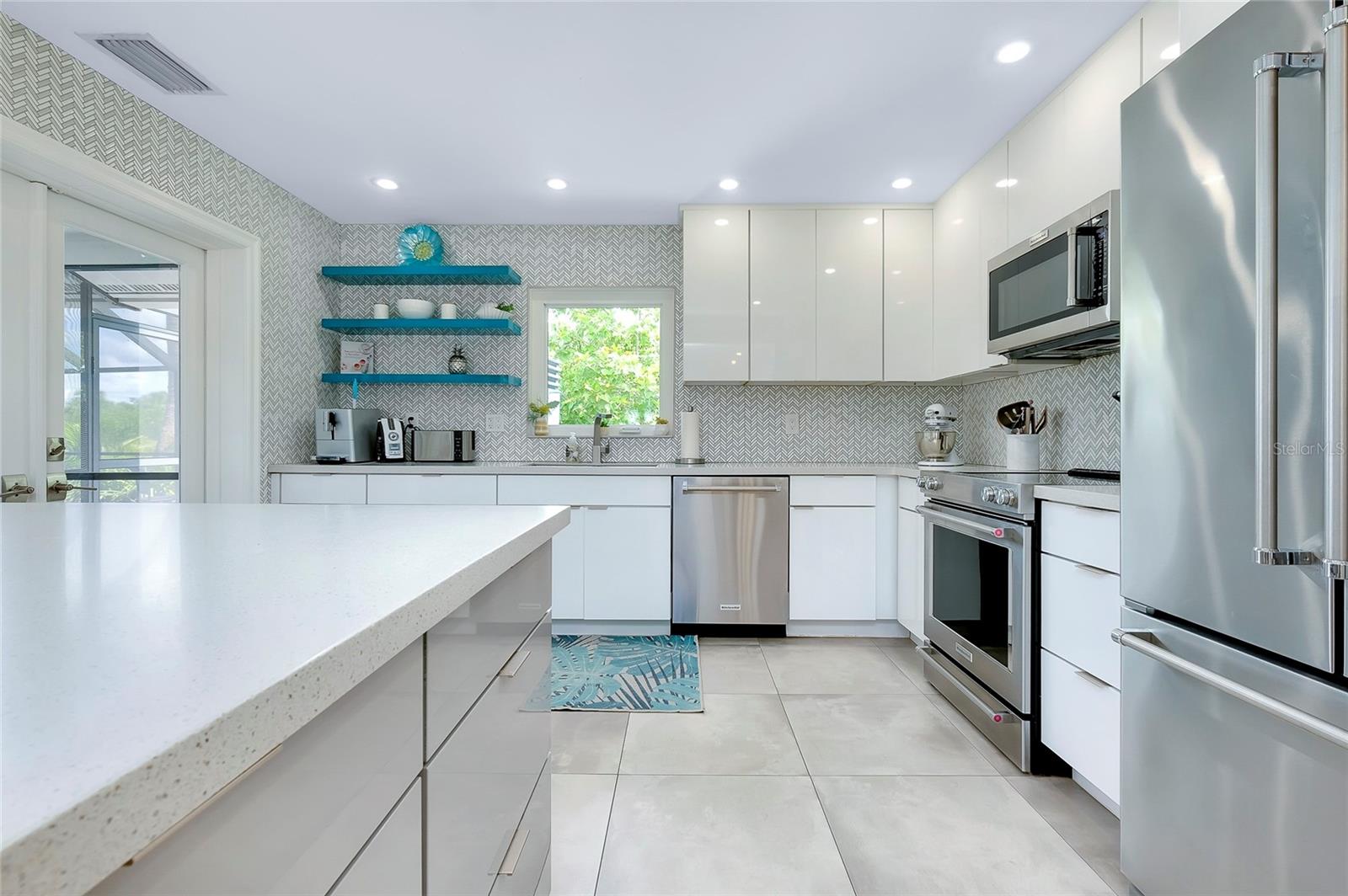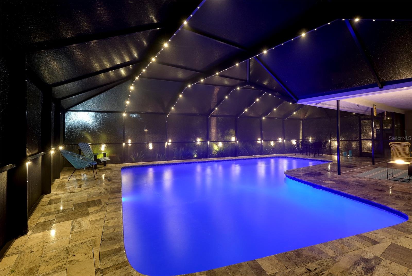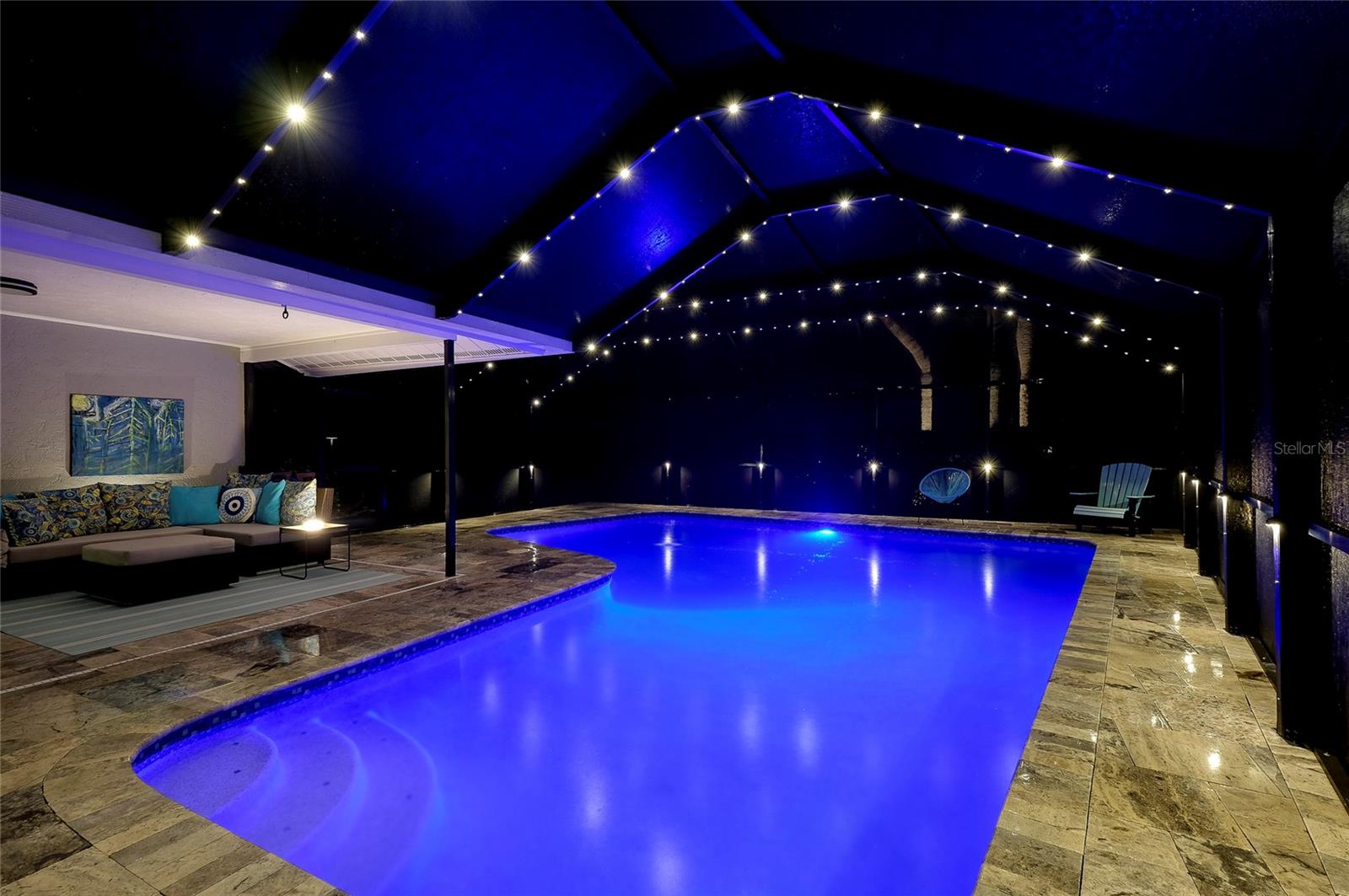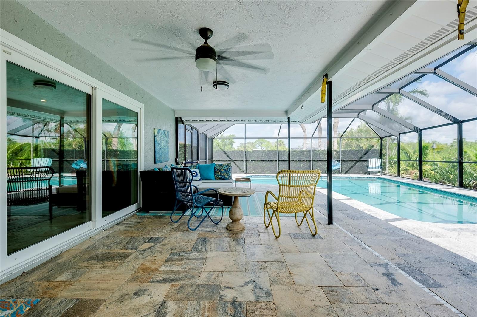 Welcome to the "Water House," a rare waterfront gem offering a perfect blend of luxury, nature, and convenience.Situated in a peaceful, laid-back neighborhood just minutes from the beach, this home provides sailboat access to the Gulf with no bridges in between, giving you direct access to the water right from your backyard. The wide waterfront views offer a tranquil backdrop, while the large, deep heated saltwater pool invites year-round relaxation. The location is unbeatable, with proximity to I-75, Oscar Scherer State Park, Venice, and Sarasota, ensuring that everything you need is just a short drive away. Whether you're cruising to the beach in your golf cart (LSV) or enjoying the serenity of the professionally landscaped and lit outdoor space, this property offers a unique combination of privacy, safety, and coastal living. The home is positioned on a quiet cul-de-sac, offering even more peace and seclusion, ideal for those seeking a quiet, retreat-like atmosphere. Nature enthusiasts will fall in love with the private dock where you can fish, observe manatees, and watch birds in their natural habitat—all from the comfort of your own backyard. Inside, the home boasts a split floor plan, providing the perfect balance of open living and privacy for families or guests. Almost every major system has been updated within the past 10 years, including a new tile roof, air conditioning, and septic system. The kitchen and baths feature modern European Kraftmaid cabinetry, with the owner's suite offering a serene soaking tub for the ultimate relaxation experience. Additional amenities include an inside laundry room, county water with an irrigation system on well water, and sewer pipes that were relined in 2024 for added peace of mind. Hurricane fabric protects all doors and windows, and recent upgrades include new front doors, impact garage door, and a new French door (currently being installed Approx. Mid October). This home combines the best of modern living with the tranquility of nature—schedule your viewing today to experience this exceptional waterfront lifestyle!