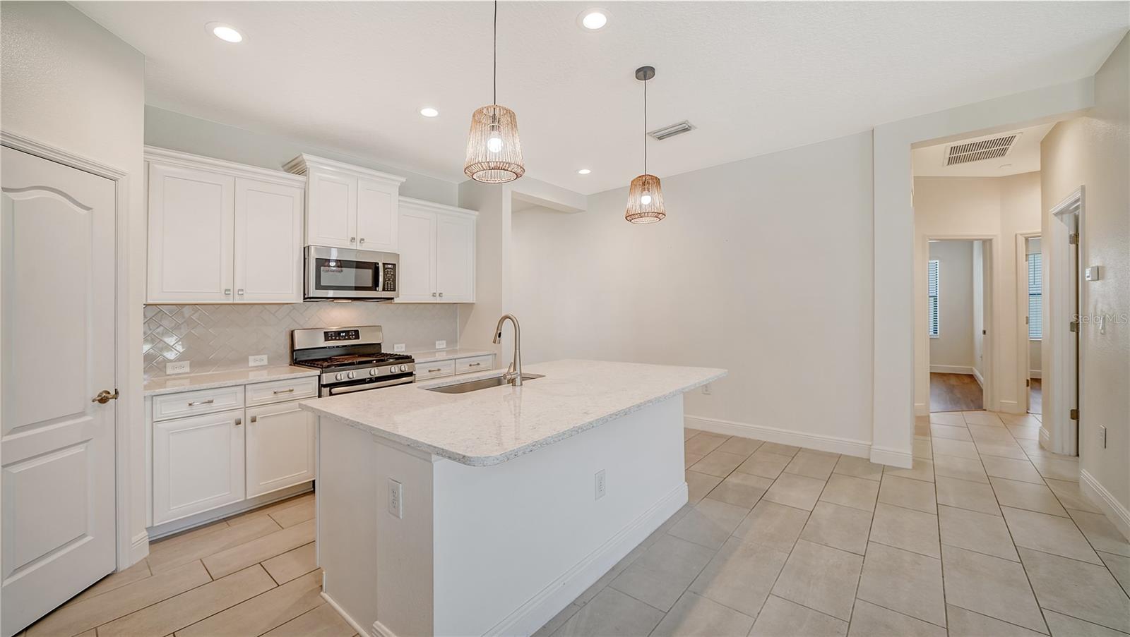 One or more photo(s) has been virtually staged. PRICE REDUCED on a Great home in desirable Milano community! This stunning home offers 3 roomy bedrooms + den, 2 baths, 2 car garage and large, fenced in back yard. Barely lived in (built in 2019), the home shows like a model and you can just move right in and start living the relaxed, Florida lifestyle. You will appreciate the many upgrades which include beautiful quartz counters in the kitchen and bathrooms, elegant tile flooring, coffered ceiling and high-end light fixtures. This luxurious home has the open, smart floorplan everyone wants, is light and bright and has full home hurricane protection for peace of mind. The kitchen is a chef's delight with gorgeous quartz countertops, upgraded kitchen cabinets, a gas stove, large island, stainless steel appliances and farmhouse sink. Family & Friends will enjoy entertaining in the airy great room with adjoining dining area which has a coffered ceiling, crown molding and easy access to the private lanai. The spacious primary suite, located at the rear of the home for maximum peace and quiet, has a large walk-in closet and ensuite bathroom with dual sinks and beautiful walk-in tiled shower. The two nicely sized bedrooms afford plenty of privacy for guests and the den could be a craft room. Relax or entertain, while watching a spectacular sunset in the private lanai which overlooks the huge backyard. Other features include stove, water heater and dryer are gas for low utility bills and the home is near a cul-de sac, ensuring minimal traffic. Milano is a gated, active community with NO CDD fee and low HOA fee (only $451 quarterly) which allows you to enjoy all of the amazing amenities: lovely clubhouse with gorgeous, resort style, heated pool and spa, event center and kitchen, outdoor pavilion, fire pit, pickle ball and bocce ball courts and dog park. Make new friends and meet neighbors at the many community events planned by the lifestyle director. Ideal location: only 6.5 miles to the historic Venice Island with its beautiful beaches, many restaurants, cultural events, theater and farmer's market. Home is also convenient to shopping (2.6 miles to Publix), is near numerous restaurants and multiple golf courses and is only 5 minutes to the new Sarasota Memorial Hospital and I-75. Don't wait - come make this gorgeous home yours today!
