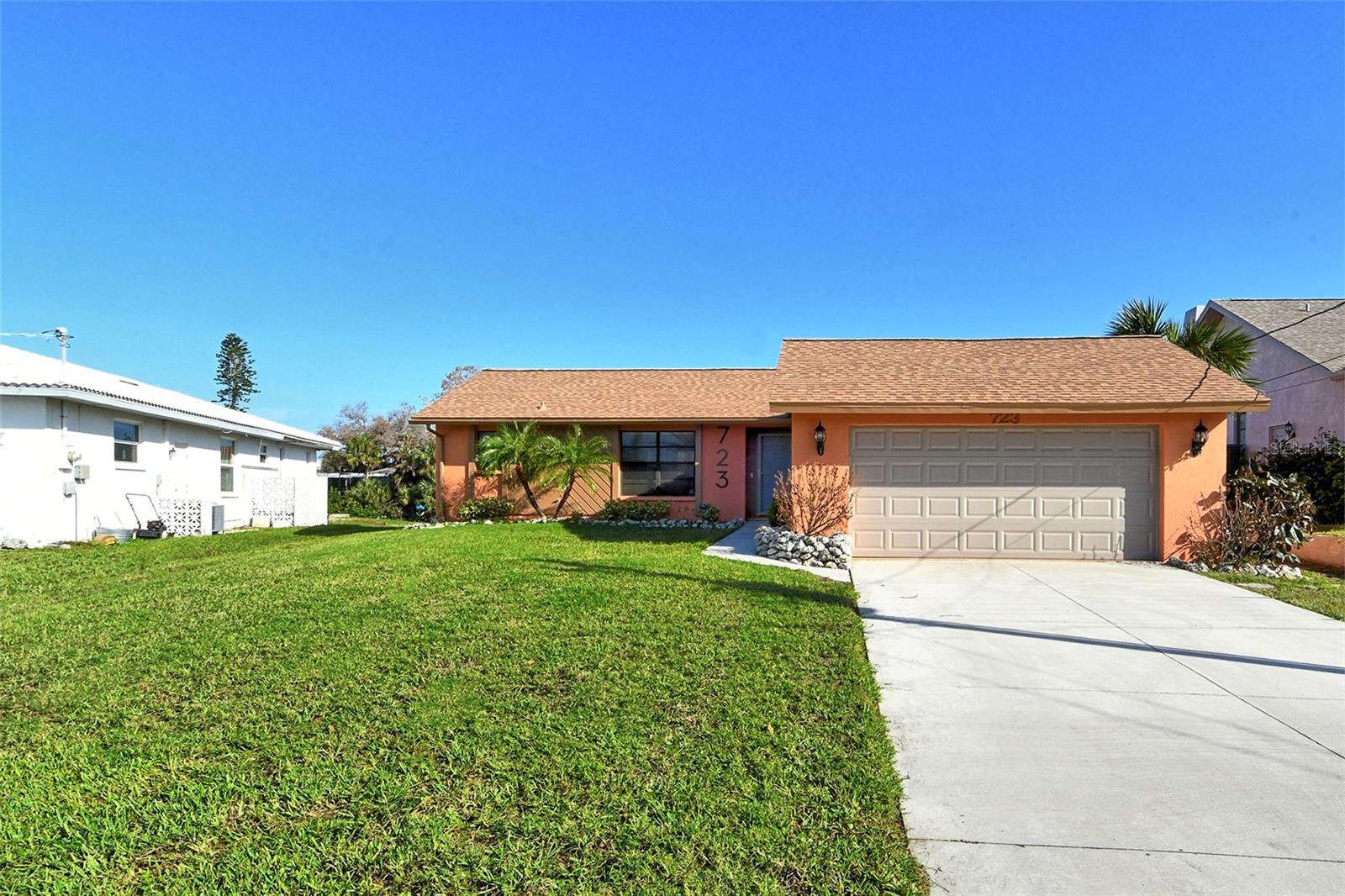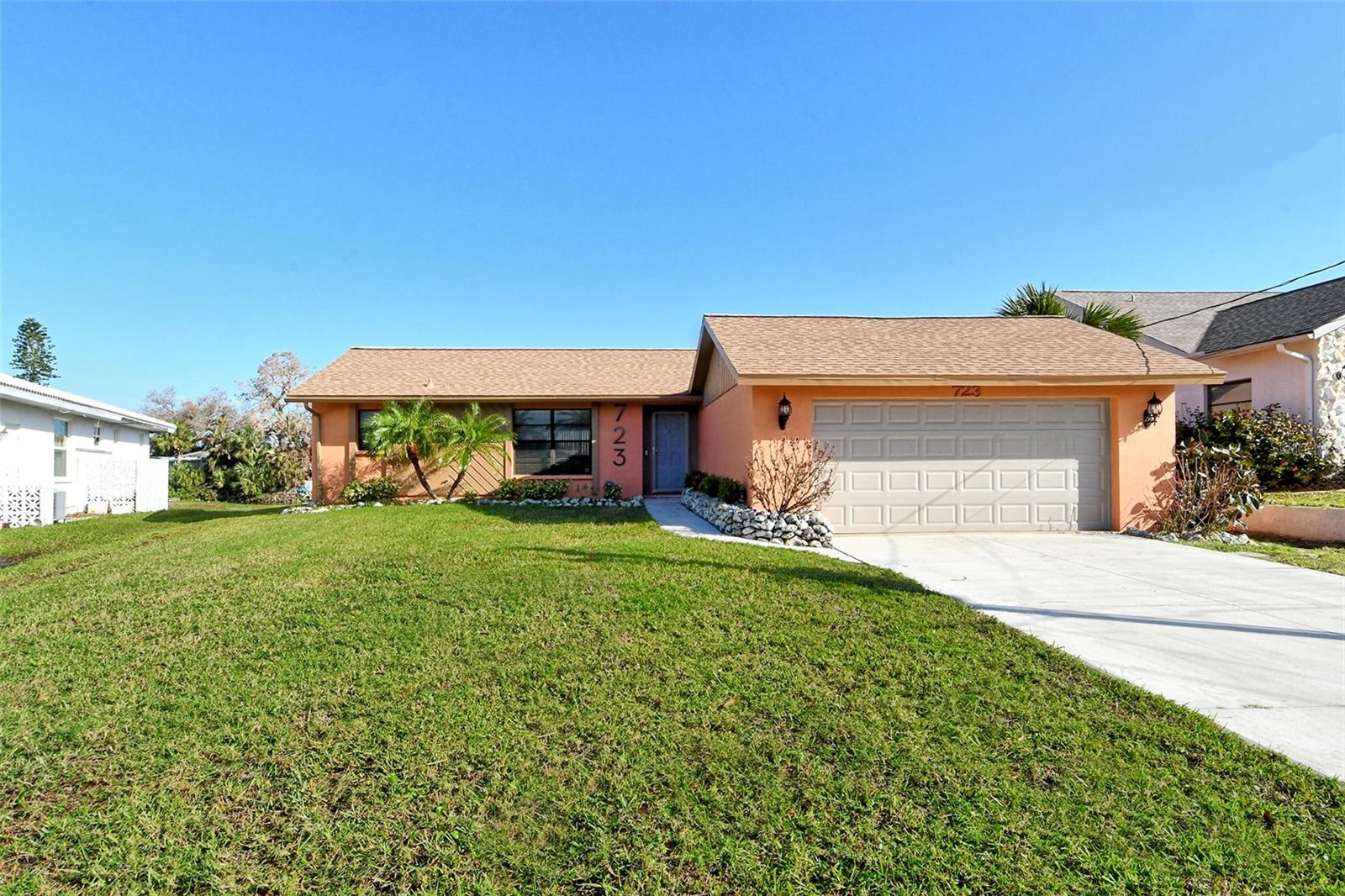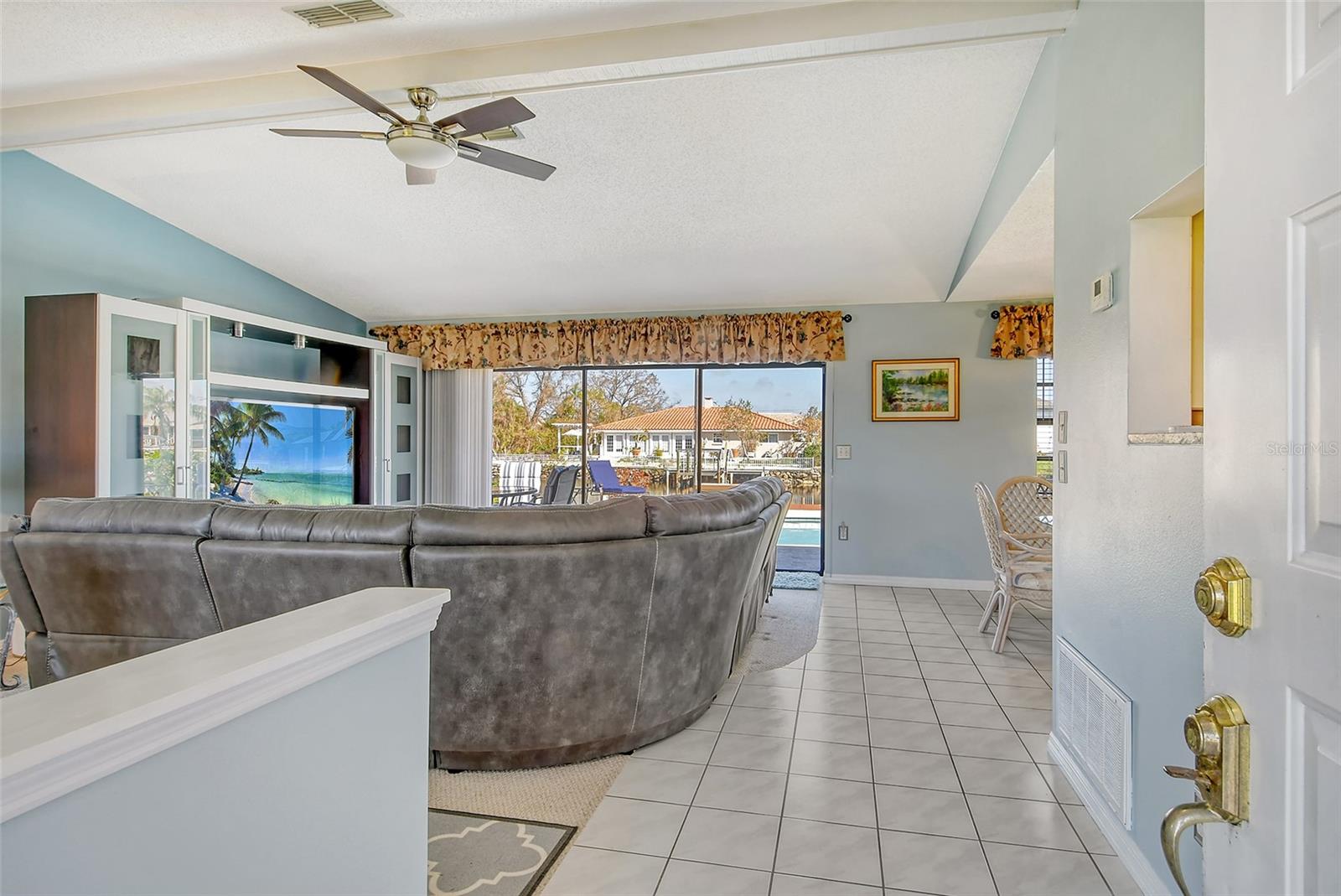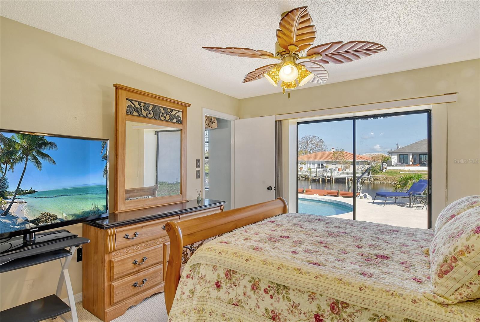 HUGE price reduction. Seller says…SELL!! Buyer’s choice – FURNISHED or UNFURNISHED. HIGH AND DRY…NO WATER DAMAGE!! This lovely home lives much larger than its size. As you enter from the front door you are greeted with the stunning open views of the pool, backyard, dock and canal. The home’s aura is one of calm, peacefulness and vacation all inclusive. It is a true split plan - two bedrooms and 2 baths on either side of the home along with a family room, dining room, kitchen and breakfast area. Need an office?? Make one of the TWO dining areas an office! The roof was completely replaced in June 2024 and has a transferable warranty. Other recent updates include both bathrooms, refrigerator, washer and dryer, sofa, garage door, pool heater and the septic system was cleaned in 2024. All that is left is for the new owner to move in, relax and enjoy this bit of paradise!