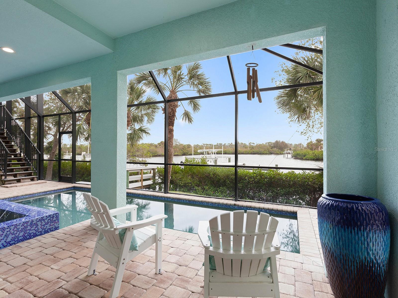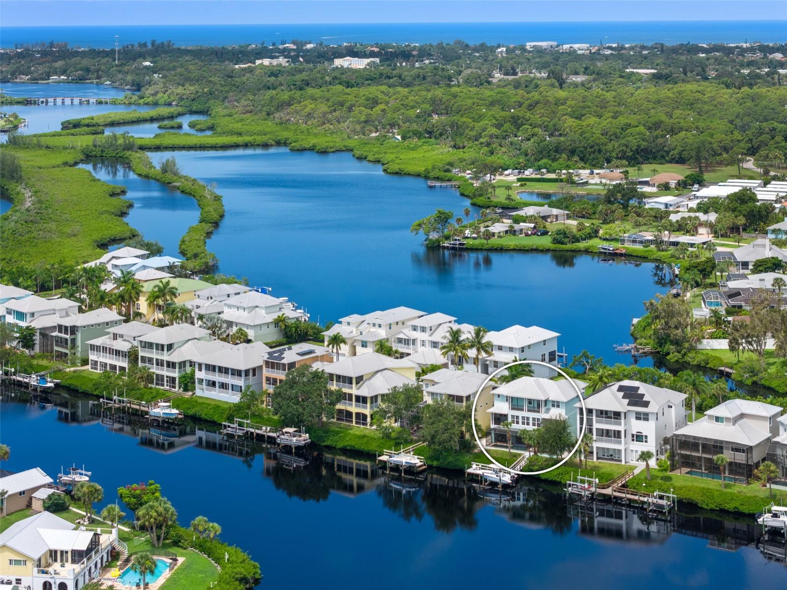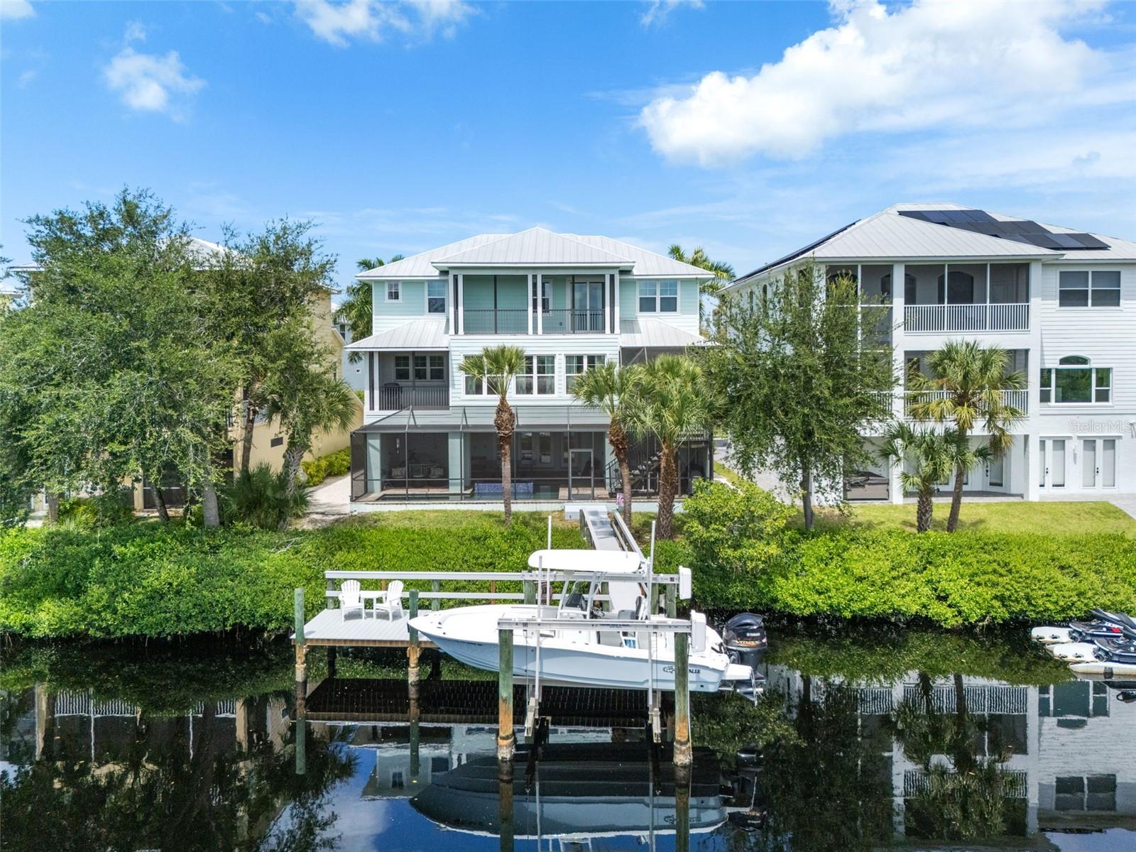 MOTIVATED SELLER, CONSIDERING REASONABLE OFFERS. Welcome to 741 Shakett Creek Drive, a Key West-style coastal masterpiece offering the ultimate in waterfront and boating lifestyle. Nestled in Shakett Creek Pointe—a private, gated enclave of just 24 homes—this exceptional residence offers direct access to Donna Bay, Roberts Bay, and the open waters of the Gulf of Mexico. Wonderful boating lifestyle - Shakett Creek Pointe has never sustained any storm damage! Custom-built with remarkable attention to detail, this expansive 5-bedroom, 4.5-bath home spans 4,310 square feet of refined living space, showcasing captivating water views from nearly every room. Boaters will appreciate the private dock and lift, while panoramic vistas can be enjoyed from multiple balconies and patios throughout the property. The outdoor living area is a true sanctuary, featuring a serene infinity-edge spa, an inviting pool, and a spacious covered lanai ideal for relaxing or entertaining after a day on the water. Inside, the home exudes luxury and thoughtful design. An elevator, butler’s pantry, and grand foyer add to the elegant experience. The light-filled great room is anchored by expansive picture windows framing breathtaking waterfront views. At the heart of the home lies a bright, open-concept kitchen centered around a stunning 6' x 9' island—perfect for gathering with friends and family. The main living level includes two comfortable guest suites, a home office or den, and a screened balcony that invites you to take in the tranquil intercoastal scenery. Upstairs, a private guest suite with its own balcony and morning bar sets the stage for a restful retreat, while French doors lead to the magnificent primary suite. The primary suite is a luxurious haven, complete with a cozy sitting area, peaceful water views, dual walk-in closets, a spa-inspired bathroom, and a spacious private balcony—ideal for enjoying sunsets and quiet mornings by the water. This rare offering captures the essence of coastal luxury living. Ideally located near I-75, the new Sarasota Memorial Hospital-Venice campus, top-rated schools, charming downtown Venice, and world-renowned beaches.