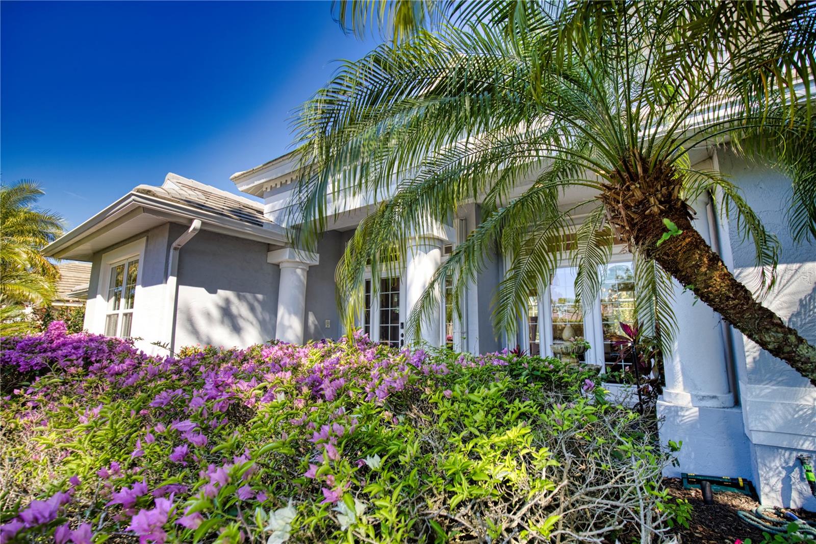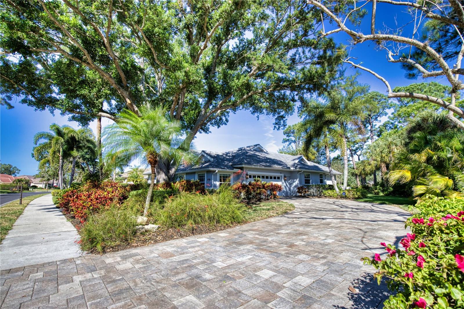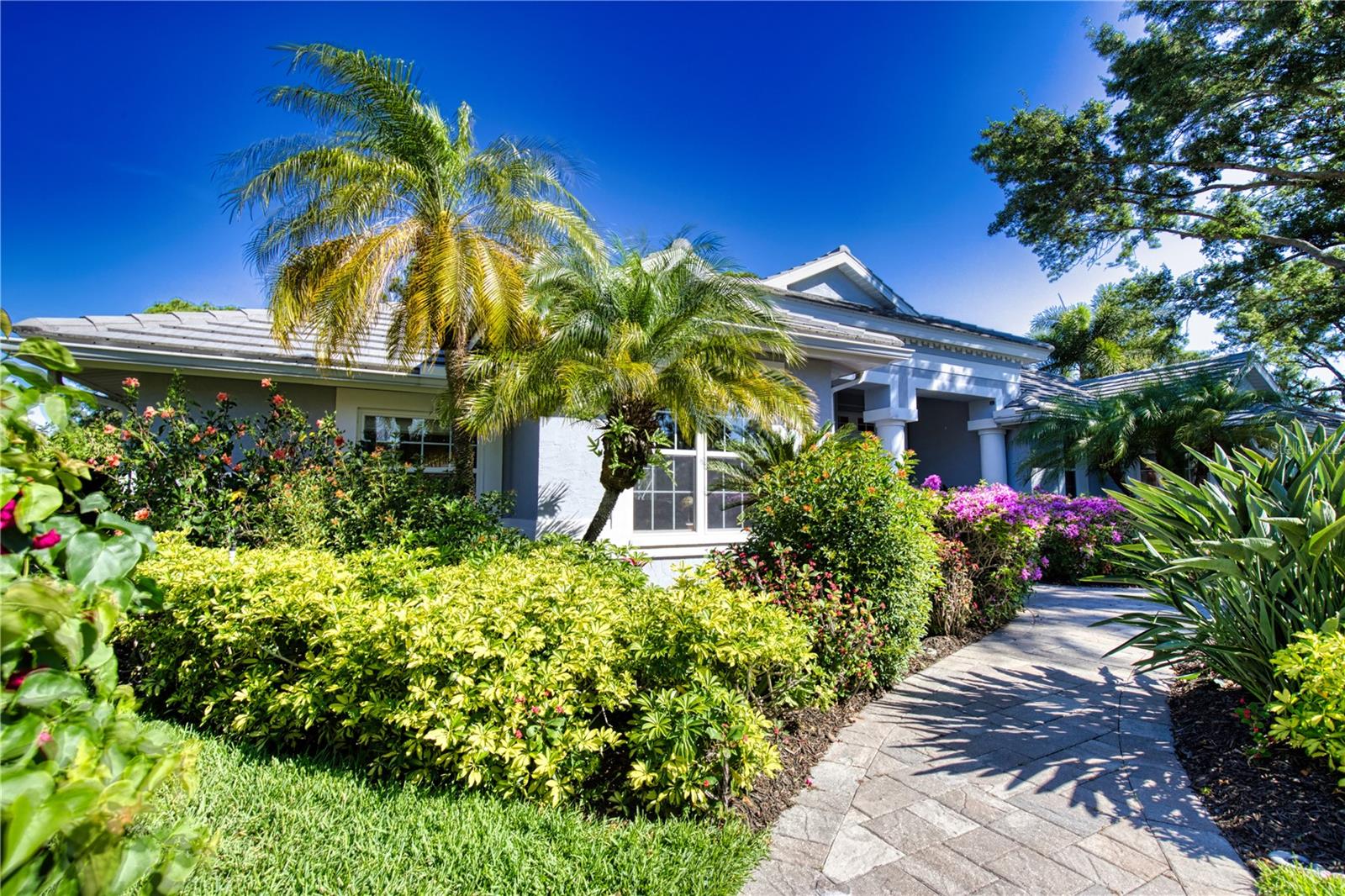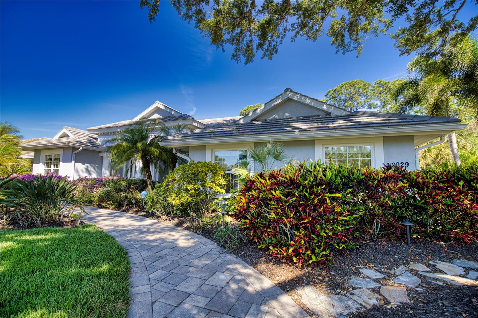 LOOK NO FURTHER FOR THE PERFECTLY UPDATED HOME IN CALUSA LAKES! Located in Flood Zone X, no historical flooding to this property has occurred. Meticulously updated former Nisley model has an open floor concept, private setting and is great for entertaining. 3 BR/2.5 BA, plus a library/den with closet could be 4th bedroom. Office/exercise room could be converted back to a 3rd stall garage. 12' high ceilings with crown molding, Italian marble floors, warm kitchen with expansive quartz countertops and backsplash, numerous soft-close cabinets/drawers and a closet pantry. Spacious owners suite with large walk-in closets, and updated ensuite bathroom/spa. Bedrooms 2 & 3 with a separate full bathroom in their wing. Hurricane impact windows are mostly throughout and motorized shutters in the pool/patio area. 2 zone HVAC heating/cooling replaced 2024 and AC mini spit replaced in 2025. This gated community offers mature landscaping, large lots, golf, and tennis. Easy access and drive to I-75 as well as SMH Venice on Laurel Rd. Only two traffic lights to Nokomis Beach and an easy ride to the Legacy Trail. Come see this jewel of a home in Calusa Lakes! Note: Sellers are licensed REALTORS. Note: the home has audio/video security throughout the property.