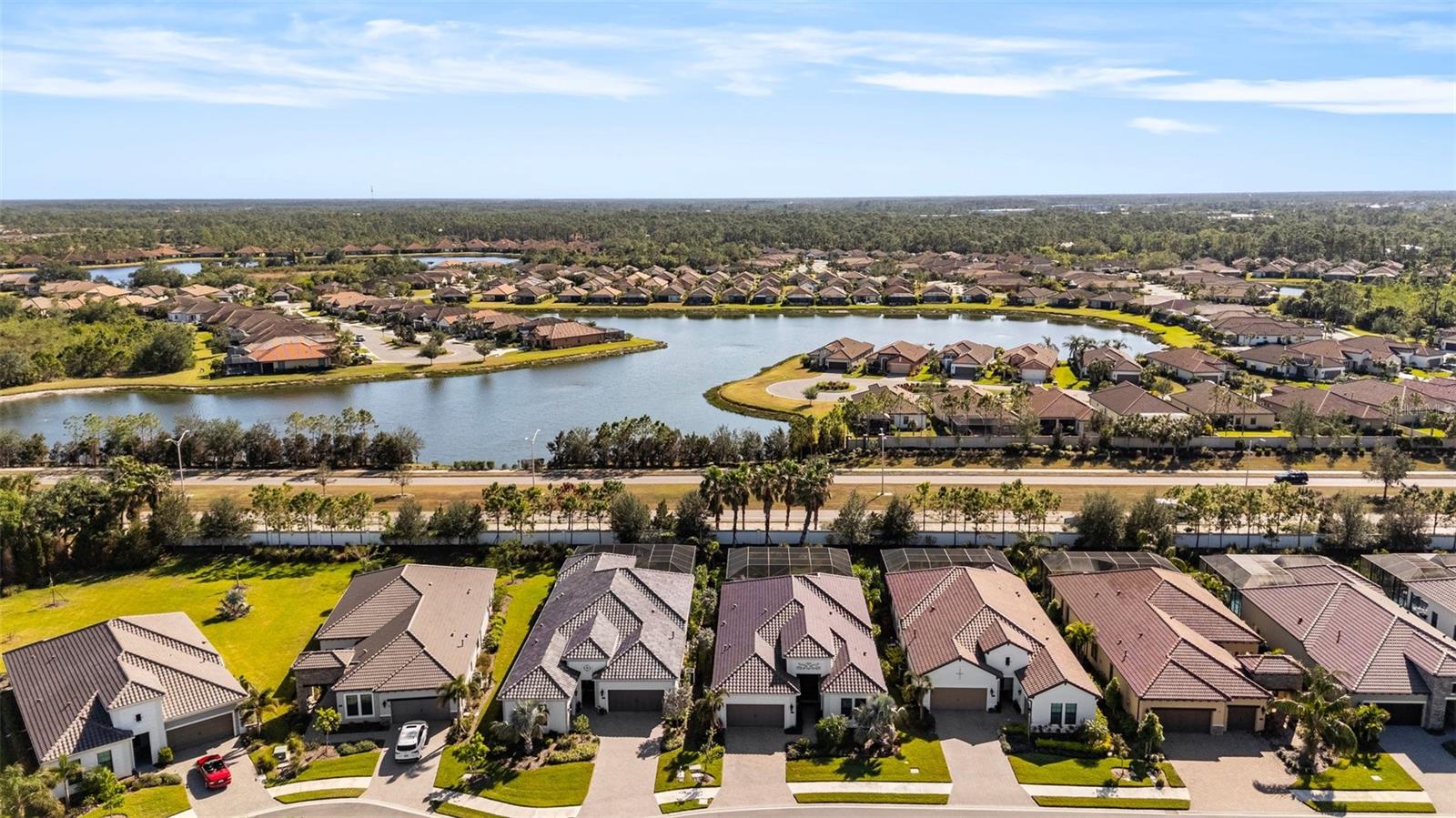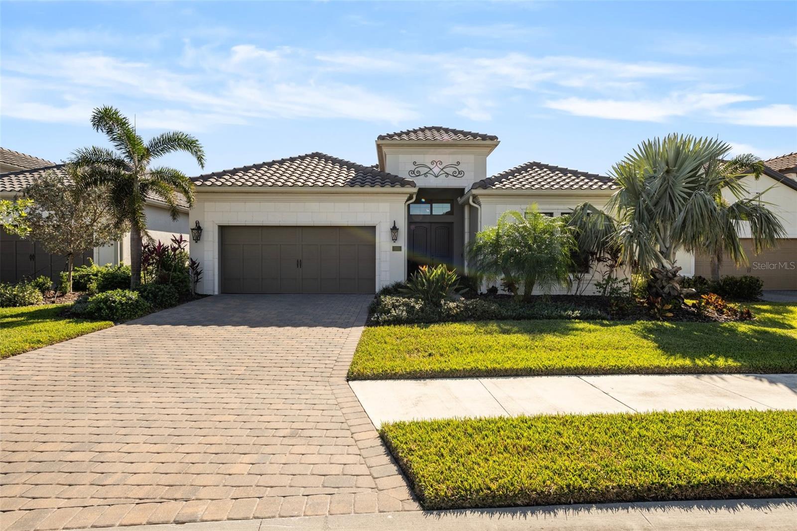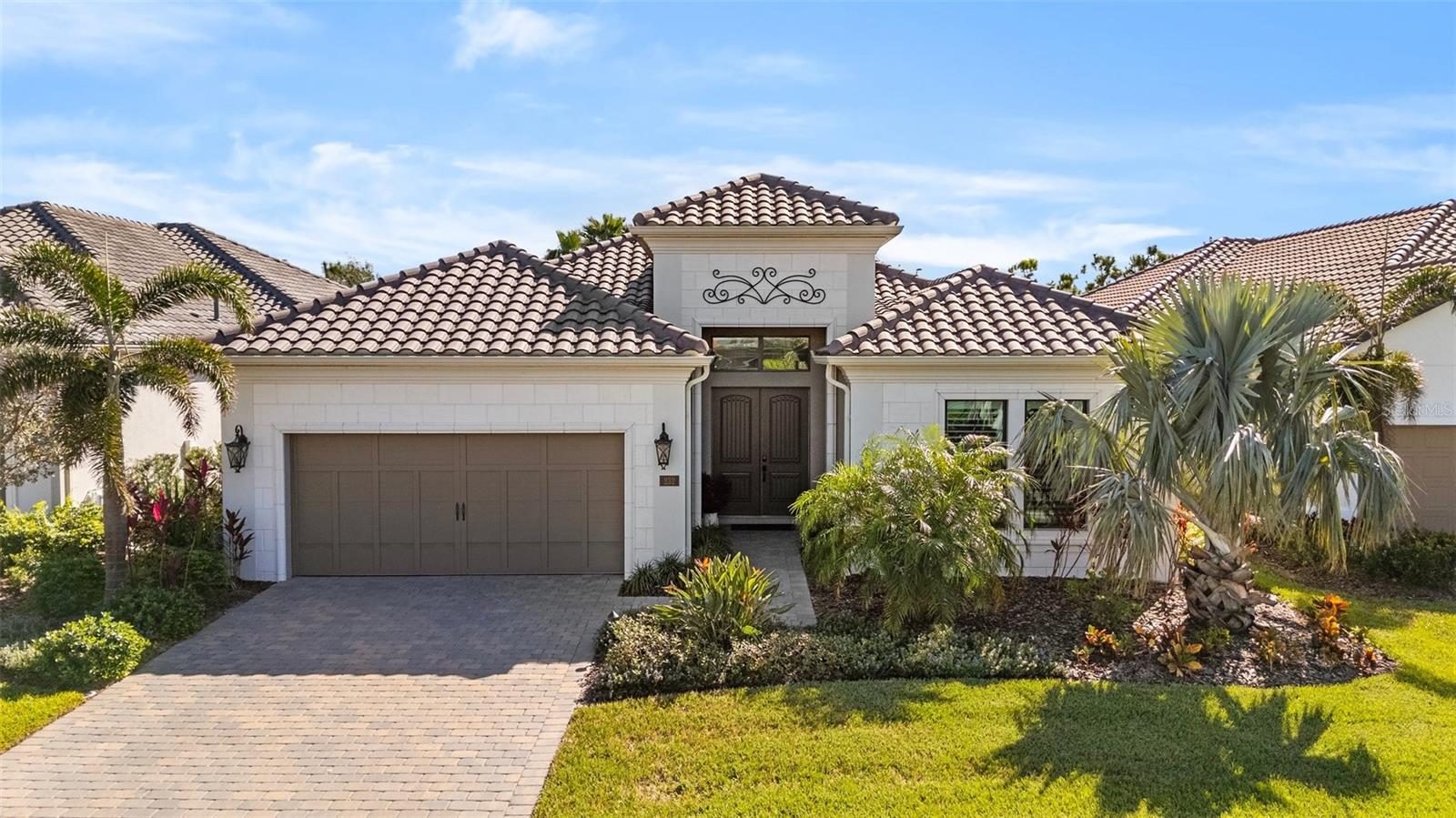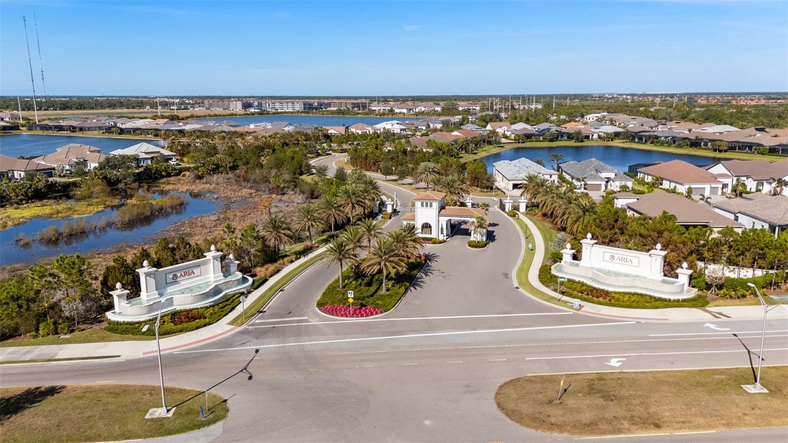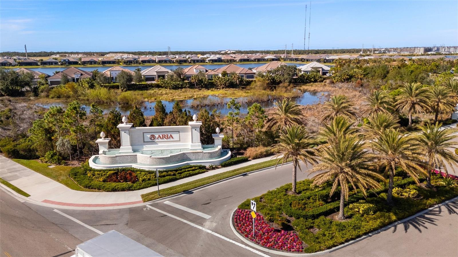 Luxurious Living at Its Finest – come see this Veneto Model by Aria Signature Homes, where elegance and comfort harmoniously combine to create the perfect sanctuary. This beautifully designed 3-bedroom, 3-bathroom residence, featuring a versatile flex room and a spacious 2-car garage, spans 2,647 square feet of meticulously crafted living space. From the moment you step through the grand double door entry, the warm and inviting ambiance draws you in. Stunning Shaw wood flooring in majestic pecan runs throughout, complemented by custom wide crown and base moldings. The 14-foot ceiling in the great room, along with tray ceilings in key areas, enhances the sense of openness and sophistication. The gourmet kitchen is a culinary dream. Outfitted with GE Café white matte stainless steel appliances, including a 6-burner commercial oven with a matching hood, this space is designed for both style and functionality. City Oak wood cabinets with soft-close drawers and roll-out shelves provide ample storage, while the quartz kitchen island in Valente pearl, Level 6 stone backsplash, and Kohler Neoroc taupe sink add a luxurious touch. A butler’s pantry, wine cooler, and brushed brass hardware complete the space, ensuring it meets every need. The master suite is a private retreat with designer carpeting and a spa-inspired ensuite bath. This tranquil space features an oversized glass walk-in shower with a built-in bench and niche, double sinks with Moen Deco faucets, and built-in linen storage. Two additional bedrooms also feature designer carpeting and are served by two beautifully appointed guest bathrooms with upgraded mosaic finishes. The home effortlessly blends indoor and outdoor living. Triple-wide glass sliders in the living room open to an oversized clear view screened lanai framed by a bronze cage, offering stunning views of a tropical garden with eight large palms. The lanai features an electric privacy screen and houses a saltwater pool with two waterfalls. A built-in outdoor kitchen with granite countertops, an Artisan grill, a gas-powered pizza oven, and a stainless steel refrigerator elevates entertaining to an art form. Modern living is enhanced by the ClareVue Smart Home system with automation, alarm features, and outdoor cameras, as well as a Sonos sound system with built-in speakers and subwoofers for seamless indoor and outdoor audio. Plantation shutters add timeless style and privacy throughout the home. Located in the exclusive Aria community, this home offers more than just a place to live. Aria is a luxury enclave by Neal Communities featuring a state-of-the-art fitness center, an active clubhouse, a resort-style pool and spa, and pickleball courts, all surrounded by beautifully maintained green spaces. This home is a rare gem, offering a lifestyle of luxury and convenience. Schedule your private showing today and discover why this Veneto model is a must-see.