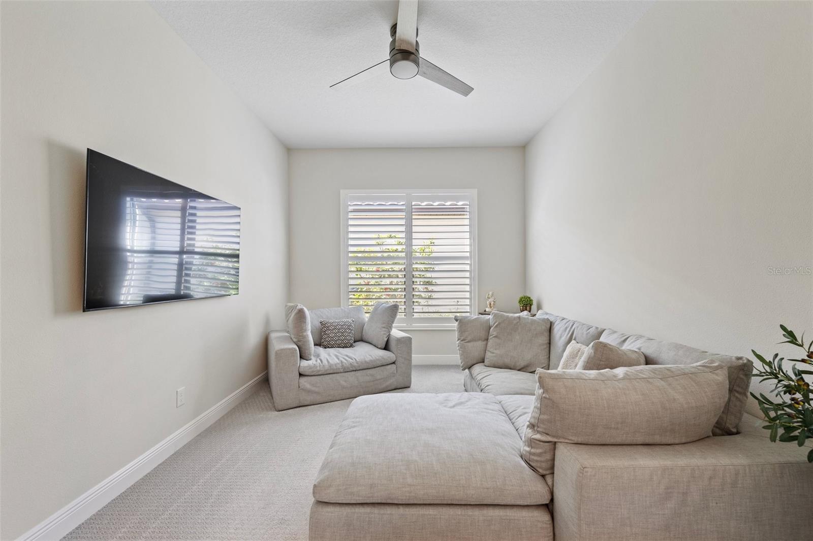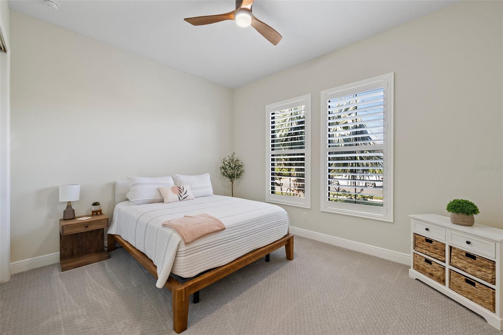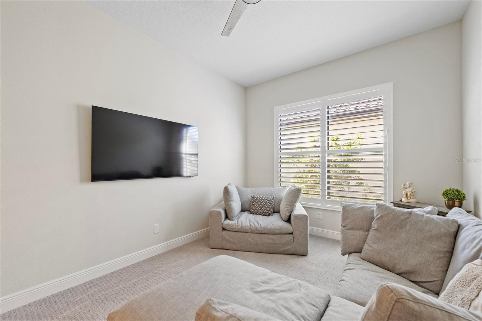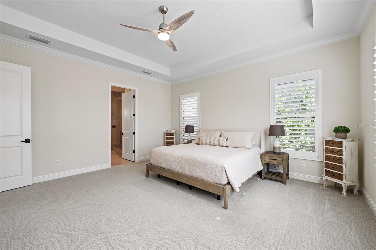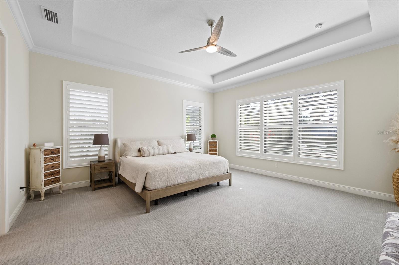 Luxurious Living at Its Finest – come see this Veneto Model by Aria Signature Homes, where elegance and comfort harmoniously combine to create the perfect sanctuary. This beautifully designed 3-bedroom, 3-bathroom residence, featuring a versatile flex room and a spacious 2-car garage, spans 2,647 square feet of meticulously crafted living space. From the moment you step through the grand double door entry, the warm and inviting ambiance draws you in. Stunning Shaw wood flooring in majestic pecan runs throughout, complemented by custom wide crown and base moldings. The 14-foot ceiling in the great room, along with tray ceilings in key areas, enhances the sense of openness and sophistication. The gourmet kitchen is a culinary dream. Outfitted with GE Café white matte stainless steel appliances, including a 6-burner commercial oven with a matching hood, this space is designed for both style and functionality. City Oak wood cabinets with soft-close drawers and roll-out shelves provide ample storage, while the quartz kitchen island in Valente pearl, Level 6 stone backsplash, and Kohler Neoroc taupe sink add a luxurious touch. A butler’s pantry, wine cooler, and brushed brass hardware complete the space, ensuring it meets every need. The master suite is a private retreat with designer carpeting and a spa-inspired ensuite bath. This tranquil space features an oversized glass walk-in shower with a built-in bench and niche, double sinks with Moen Deco faucets, and built-in linen storage. Two additional bedrooms also feature designer carpeting and are served by two beautifully appointed guest bathrooms with upgraded mosaic finishes. The home effortlessly blends indoor and outdoor living. Triple-wide glass sliders in the living room open to an oversized clear view screened lanai framed by a bronze cage, offering stunning views of a tropical garden with eight large palms. The lanai features an electric privacy screen and houses a saltwater pool with two waterfalls. A built-in outdoor kitchen with granite countertops, an Artisan grill, a gas-powered pizza oven, and a stainless steel refrigerator elevates entertaining to an art form. Modern living is enhanced by the ClareVue Smart Home system with automation, alarm features, and outdoor cameras, as well as a Sonos sound system with built-in speakers and subwoofers for seamless indoor and outdoor audio. Plantation shutters add timeless style and privacy throughout the home. Located in the exclusive Aria community, this home offers more than just a place to live. Aria is a luxury enclave by Neal Communities featuring a state-of-the-art fitness center, an active clubhouse, a resort-style pool and spa, and pickleball courts, all surrounded by beautifully maintained green spaces. This home is a rare gem, offering a lifestyle of luxury and convenience. Schedule your private showing today and discover why this Veneto model is a must-see.
