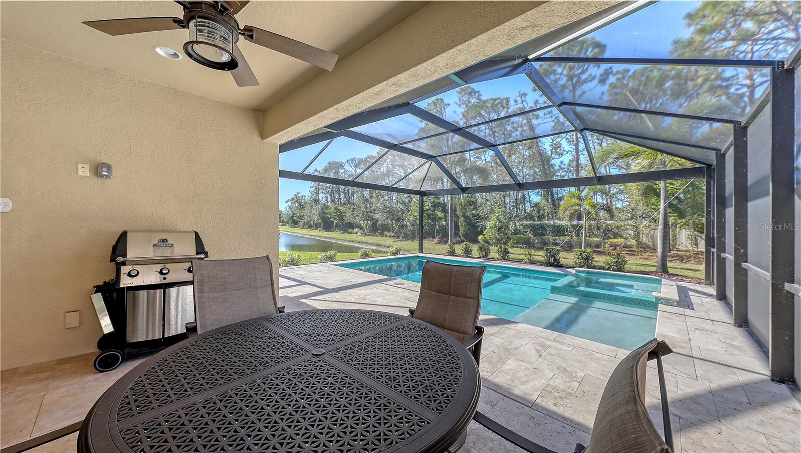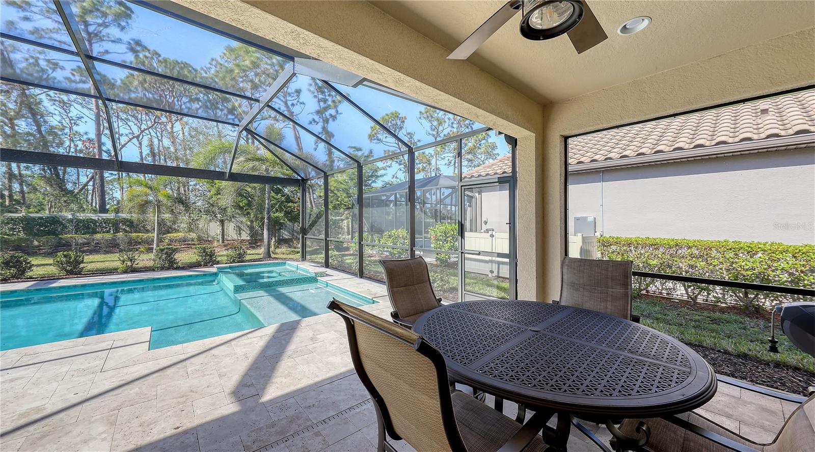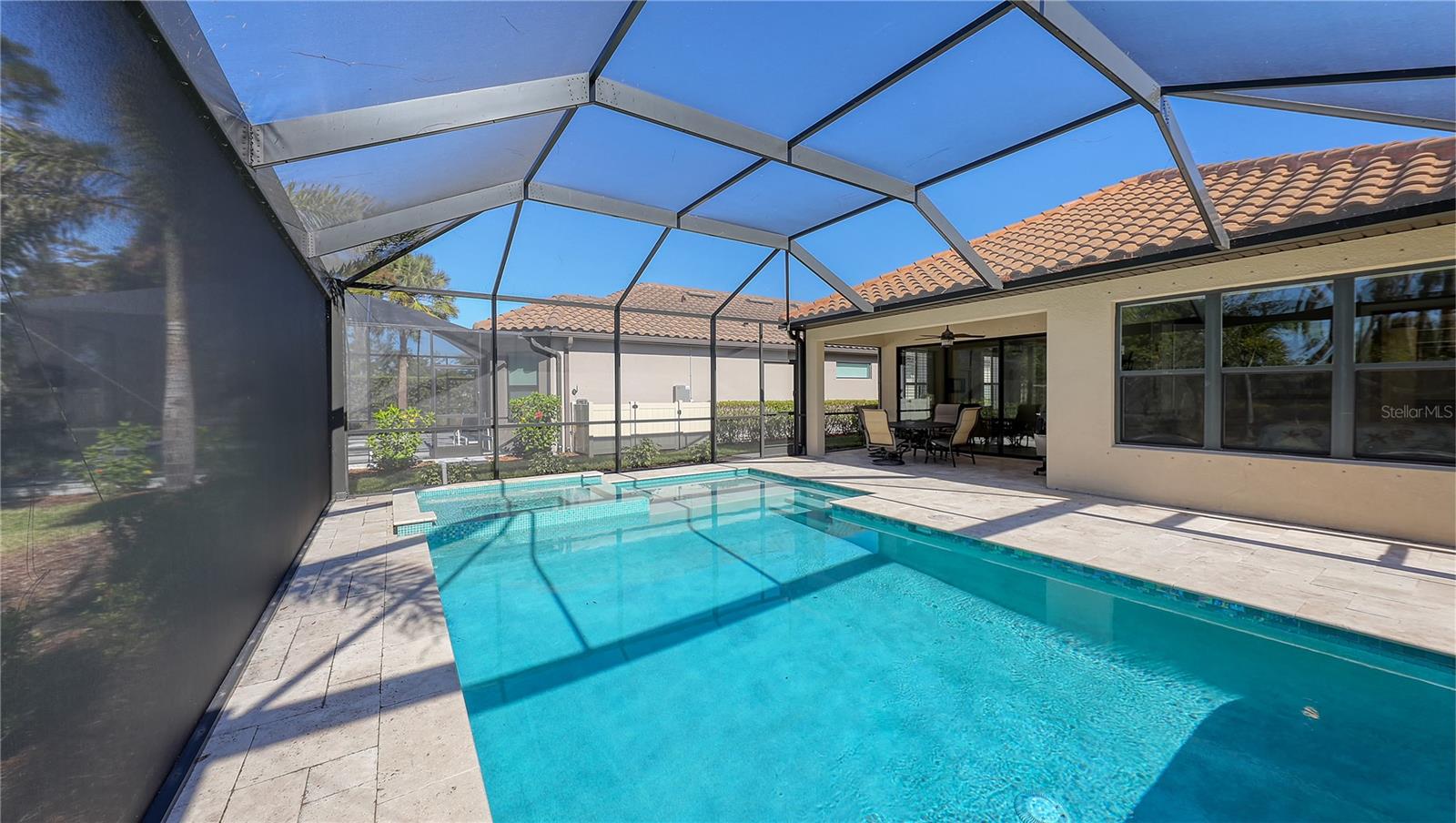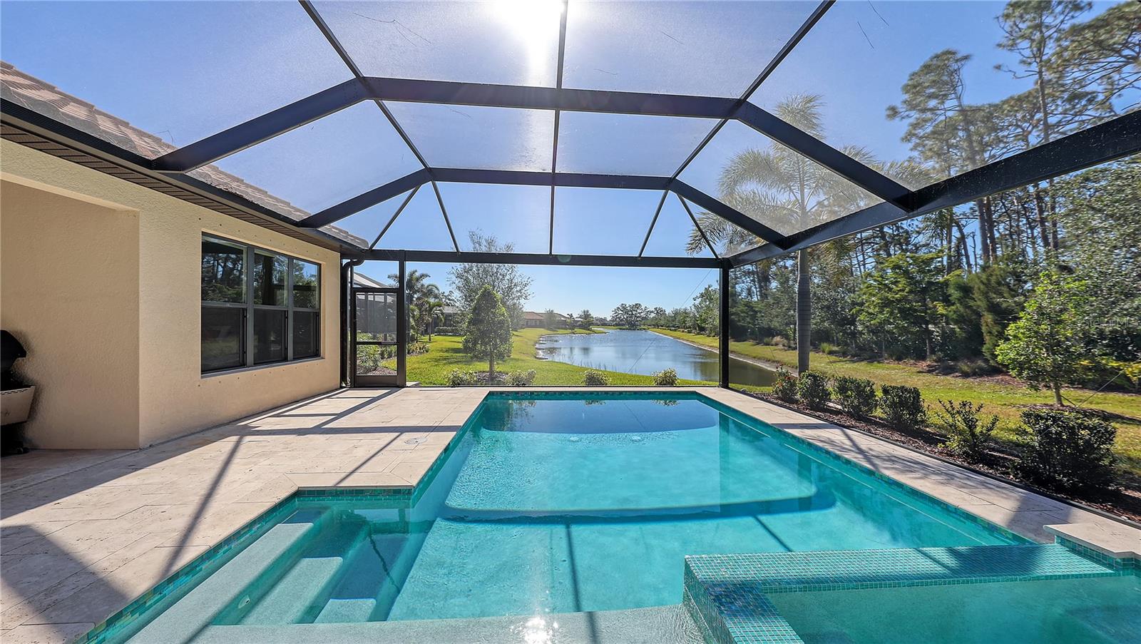 One or more photo(s) has been virtually staged. Discover this charming 3-bedroom plus den Arezzo Model home, perfectly situated on a premier lot in the sought-after Bellacina by Esplanade community. Enjoy the ultimate in privacy with south-facing water views that create your very own tropical oasis. The heated pool and spa complete the experience, making every day feel like a vacation. The open layout is ideal for entertaining, and for cooking enthusiasts, this natural gas community is a dream. Additional features include elegant plantation shutters throughout, upgraded laundry room with an abundance of storage, reverse osmosis water filtration, master closet updated by Affordable Closets, clear span screens on pool cage, room darkening shades in master bedroom, and a Tesla charging station installed in the garage. Community Highlights: Upscale clubhouse with catering kitchen Fitness room overlooking the resort-style heated pool with cabanas Outdoor spa and firepit Pickleball courts, tennis court, and bocce ball court Cornhole station and playground Two dog parks Activities director to keep your social calendar full Additional Benefits: No CDD fees – a rare find! Lawn maintenance included in your HOA fees Gated access to the Sarasota County Legacy Trail Located just minutes from Nokomis Beach, Venice Beach, and Siesta Key Beach, this home is also close to shopping, restaurants and grocery stores. Don’t miss this opportunity to live in one of the most vibrant communities in the area. Schedule your showing today and start enjoying the Florida lifestyle!