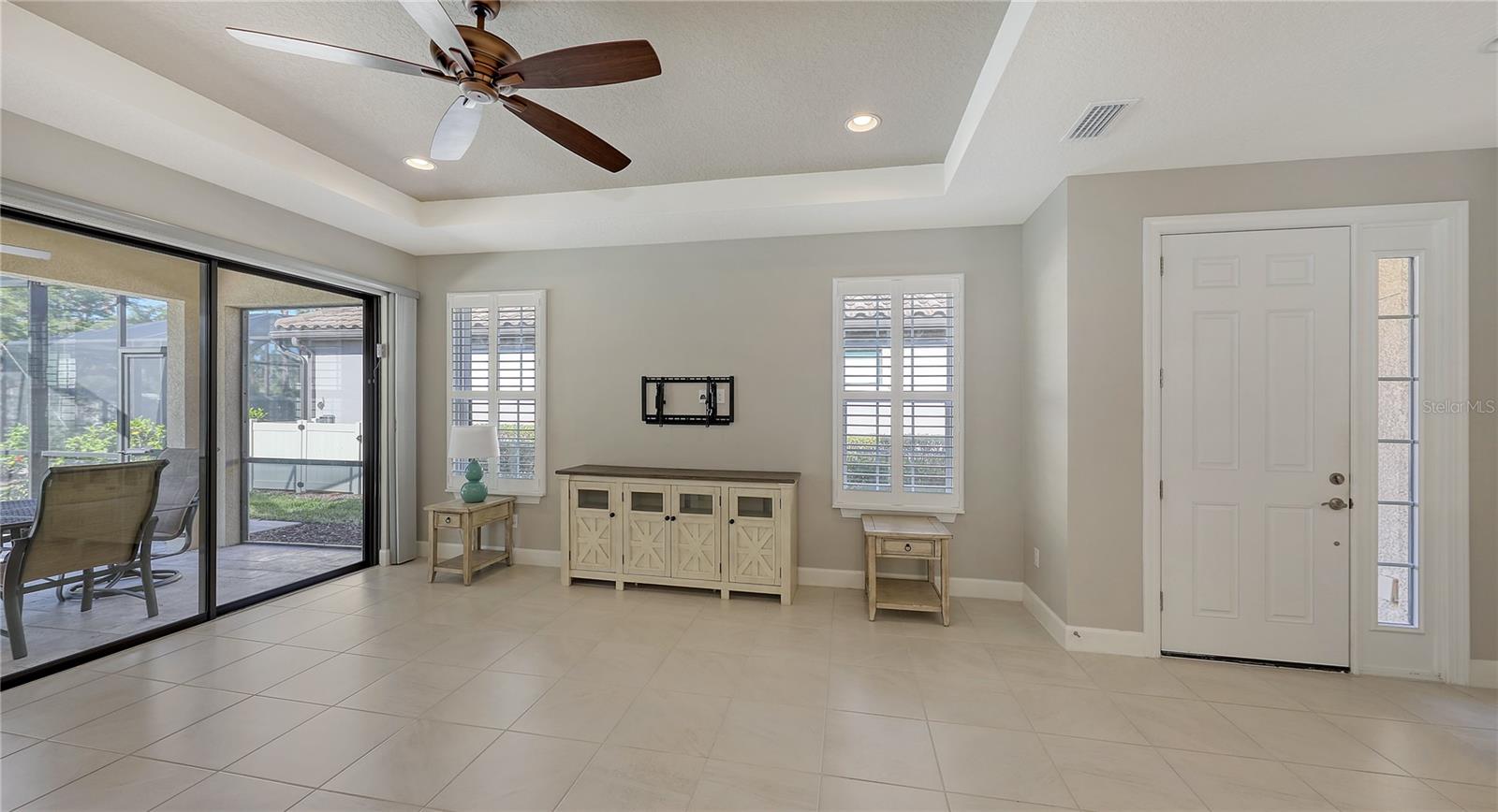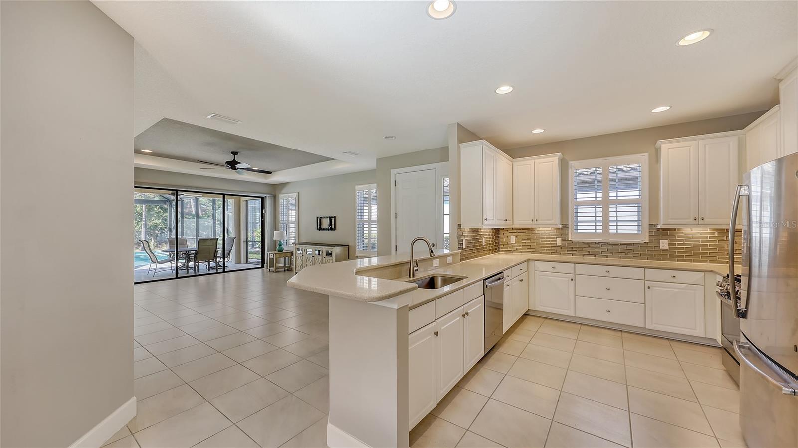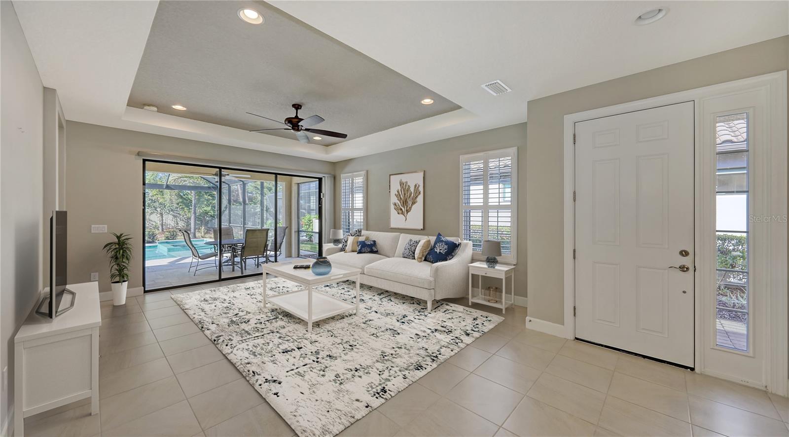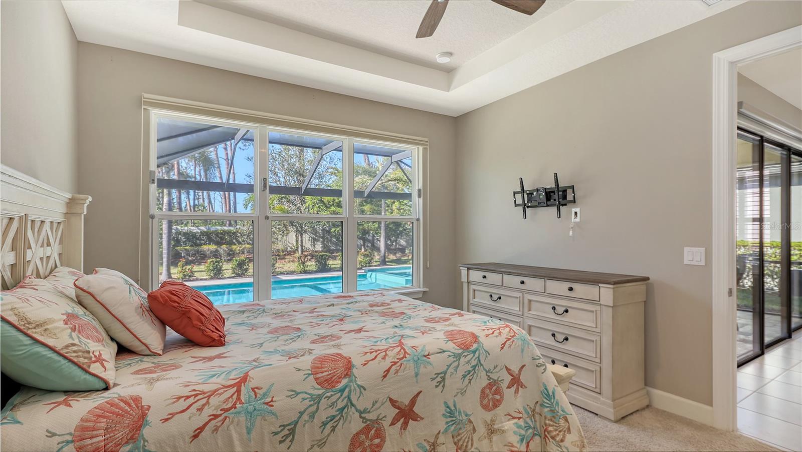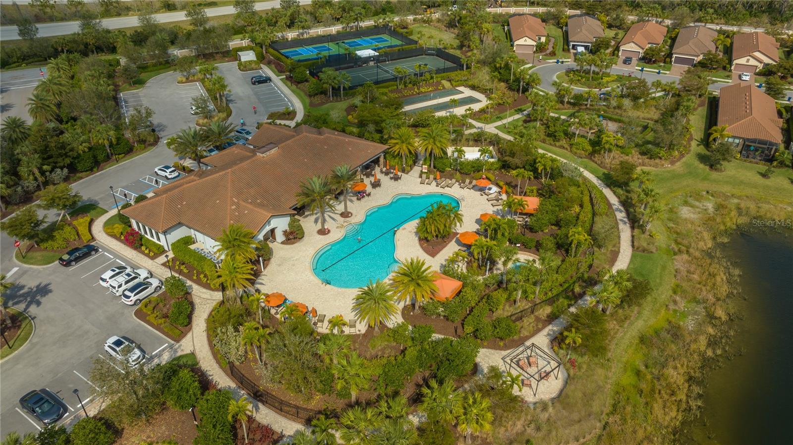 One or more photo(s) has been virtually staged. Discover this charming 3-bedroom plus den Arezzo Model home, perfectly situated on a premier lot in the sought-after Bellacina by Esplanade community. Enjoy the ultimate in privacy with south-facing water views that create your very own tropical oasis. The heated pool and spa complete the experience, making every day feel like a vacation. The open layout is ideal for entertaining, and for cooking enthusiasts, this natural gas community is a dream. Additional features include elegant plantation shutters throughout, upgraded laundry room with an abundance of storage, reverse osmosis water filtration, master closet updated by Affordable Closets, clear span screens on pool cage, room darkening shades in master bedroom, and a Tesla charging station installed in the garage. Community Highlights: Upscale clubhouse with catering kitchen Fitness room overlooking the resort-style heated pool with cabanas Outdoor spa and firepit Pickleball courts, tennis court, and bocce ball court Cornhole station and playground Two dog parks Activities director to keep your social calendar full Additional Benefits: No CDD fees – a rare find! Lawn maintenance included in your HOA fees Gated access to the Sarasota County Legacy Trail Located just minutes from Nokomis Beach, Venice Beach, and Siesta Key Beach, this home is also close to shopping, restaurants and grocery stores. Don’t miss this opportunity to live in one of the most vibrant communities in the area. Schedule your showing today and start enjoying the Florida lifestyle!