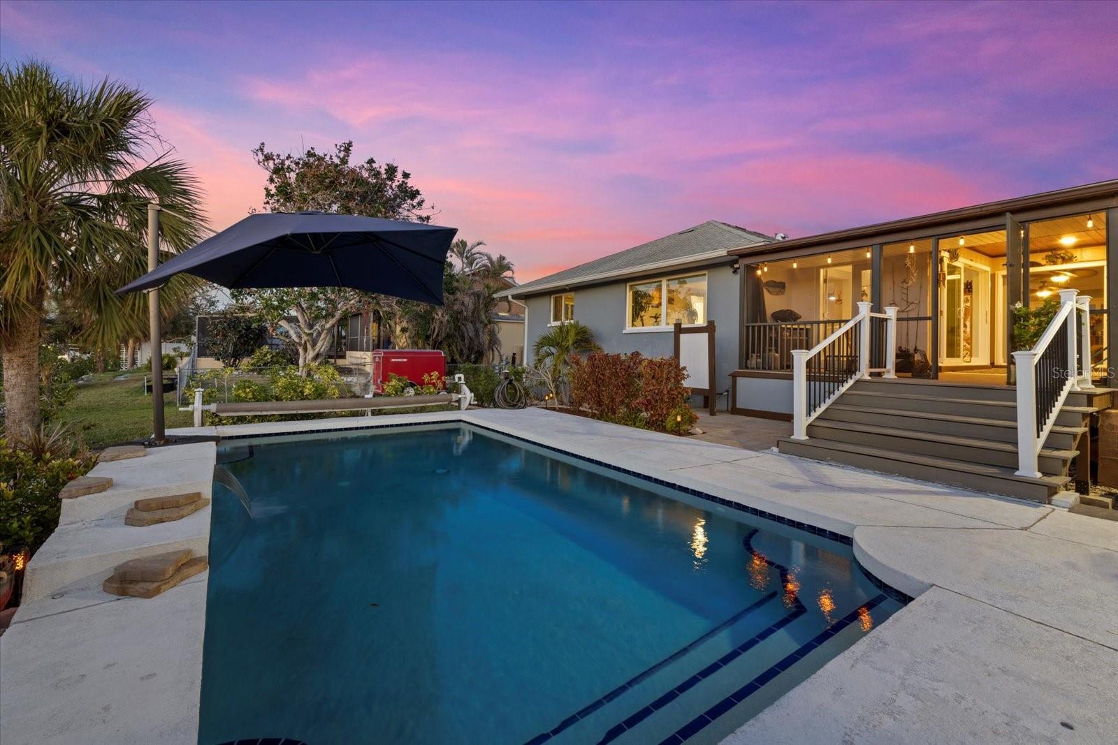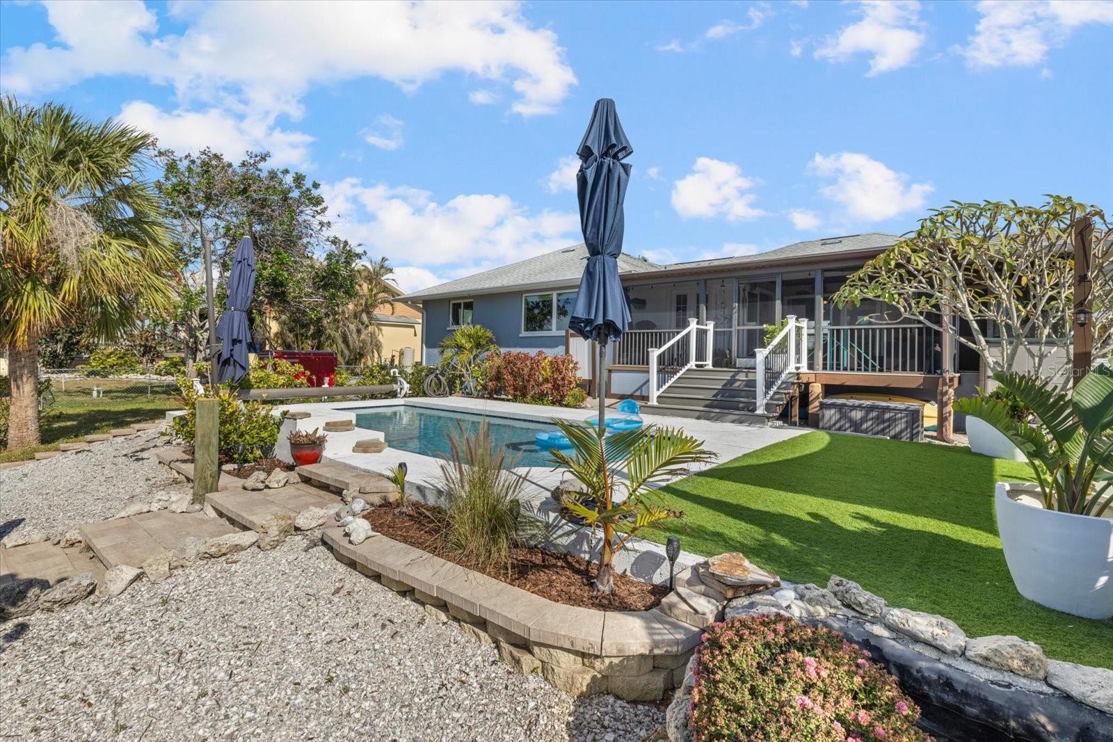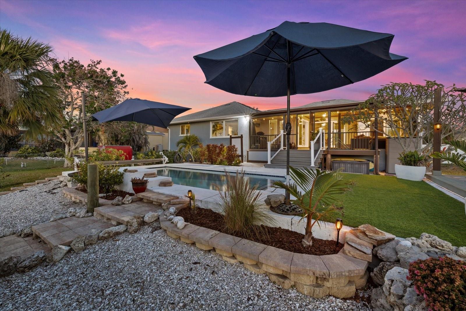 Price Reduction! This beautiful 3-bedroom, 2-bath canal-front pool home on Curry Creek offers the best of coastal living. Perfectly situated only 3 miles to Venice and Nokomis Beach and less than 2 nautical miles to the Gulf, this property is a true private oasis. Built at an elevation over 11 feet, this single-story home features a split floor plan and is thoughtfully designed for effortless living, all on one level. The beautifully landscaped outdoor living area includes a saltwater pool and a screened lanai overlooking the canal—ideal for relaxing, dining, and enjoying your morning coffee. The property also boasts a circular driveway, adding both convenience and curb appeal. Launch your kayak or paddleboard directly from your private dock or take your boat out for fishing or to catch a spectacular sunset. For adventure seekers, Curry Creek provides access to the Myakka River, offering even more opportunities to enjoy Florida’s waterways. Inside, the home is updated with modern amenities, including granite countertops, tile flooring throughout the home, bamboo floors in the master suite, and plantation shutters. Upgrades since 2020 include hurricane-rated windows and pocket sliders, a new hurricane-rated garage door, a new roof, a new AC system with ducts, a new pool pump, and a new water heater. Both bathrooms have been remodeled, and the home also features a whole-house reverse osmosis system. This is a must-see pool home offering unmatched charm, convenience, and opportunities for waterfront adventures.