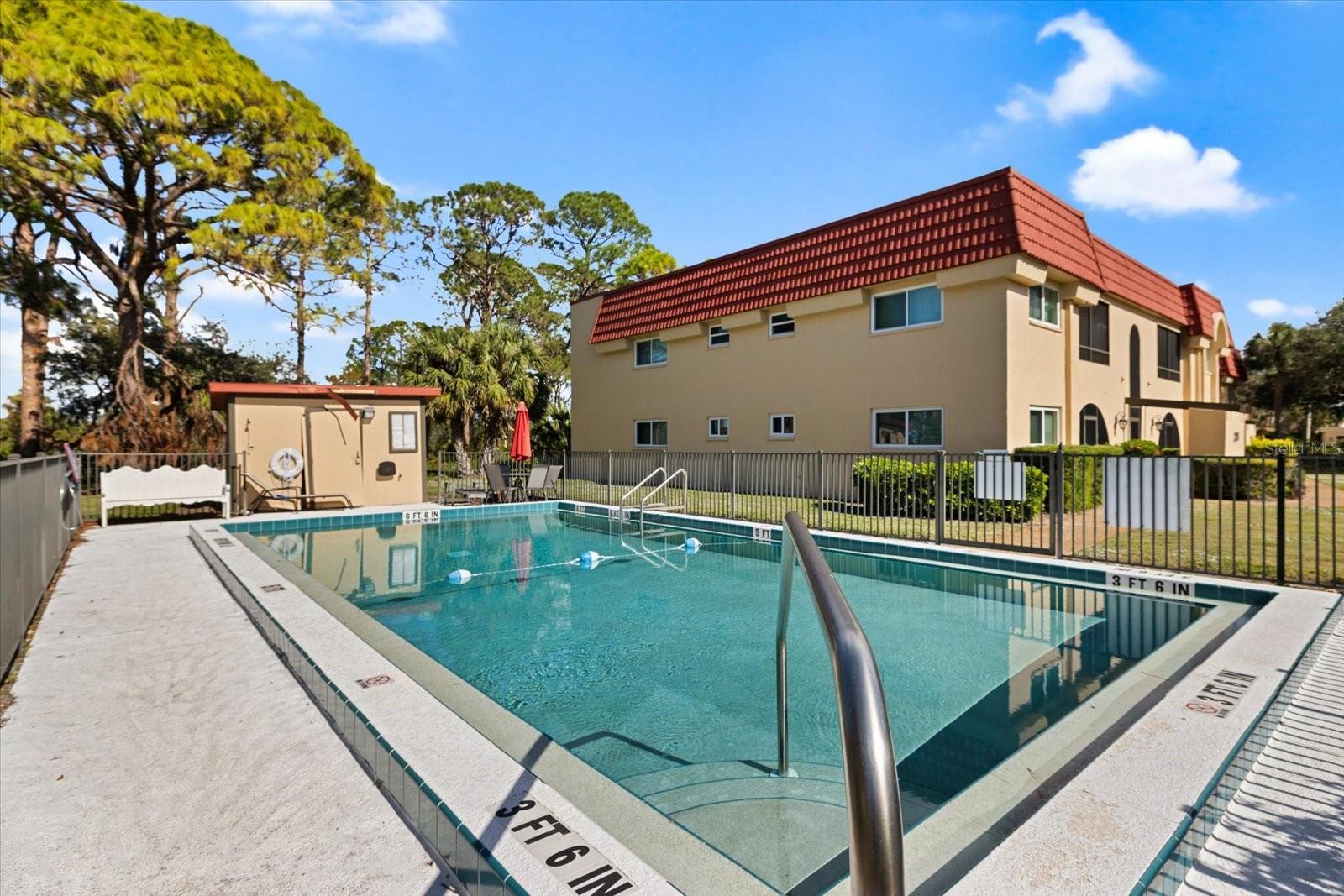 Welcome to your new slice of paradise at 207 Rubens Drive, Unit D, Nokomis, FL! This delightful first-floor condo offers easy living and is perfectly situated near beautiful beaches, boating spots, and shopping, with quick access to I-75. Just steps away from the pool, making it easy to enjoy a refreshing dip anytime. Step inside to discover 1,290 square feet of well-designed space featuring 2 cozy bedrooms and 2 updated bathrooms. The kitchen is a standout, with granite countertops, beautiful KraftMaid cabinets, and top-notch appliances that make cooking a pleasure. The bathrooms were stylishly updated in 2016, adding a fresh touch to the home. You'll appreciate the comfort of the new air conditioning system installed in 2016, and the convenience of tile flooring throughout the entry, kitchen, baths, and great room—perfect for those sandy beach days. Both the great room and master bedroom open up to a spacious lanai, offering serene views of Oscar Scherer Park. This pet-friendly community is ideal for outdoor enthusiasts, with direct access to The Legacy Trail. Whether you're lounging by the pool or heading out for a day of boating, this place has it all. Pets are welcome with some conditions, so your furry friends can enjoy the good life too. Don't miss out on this fantastic opportunity to join a welcoming community and enjoy the best of Florida living. Come see it for yourself and make it yours!