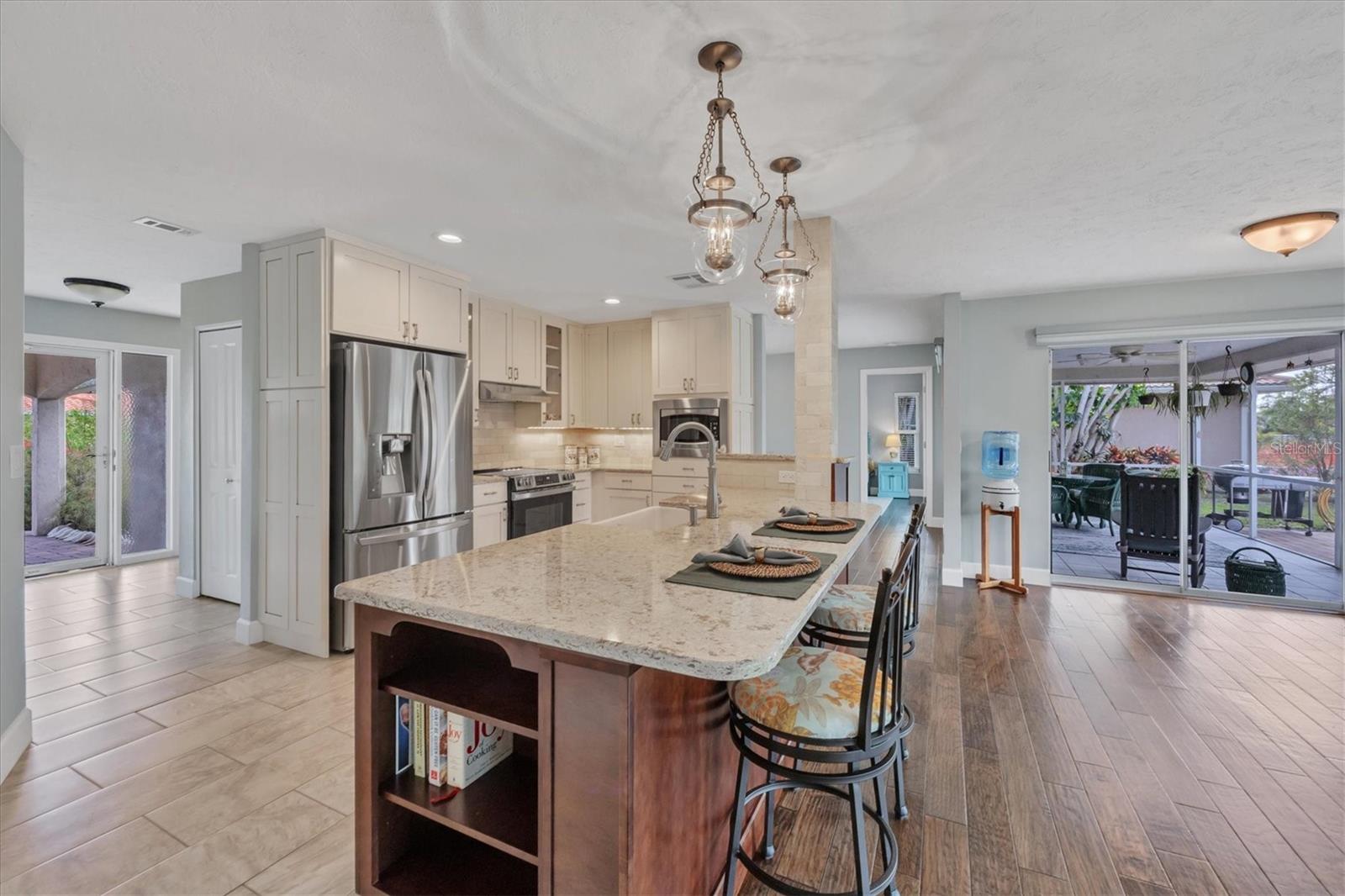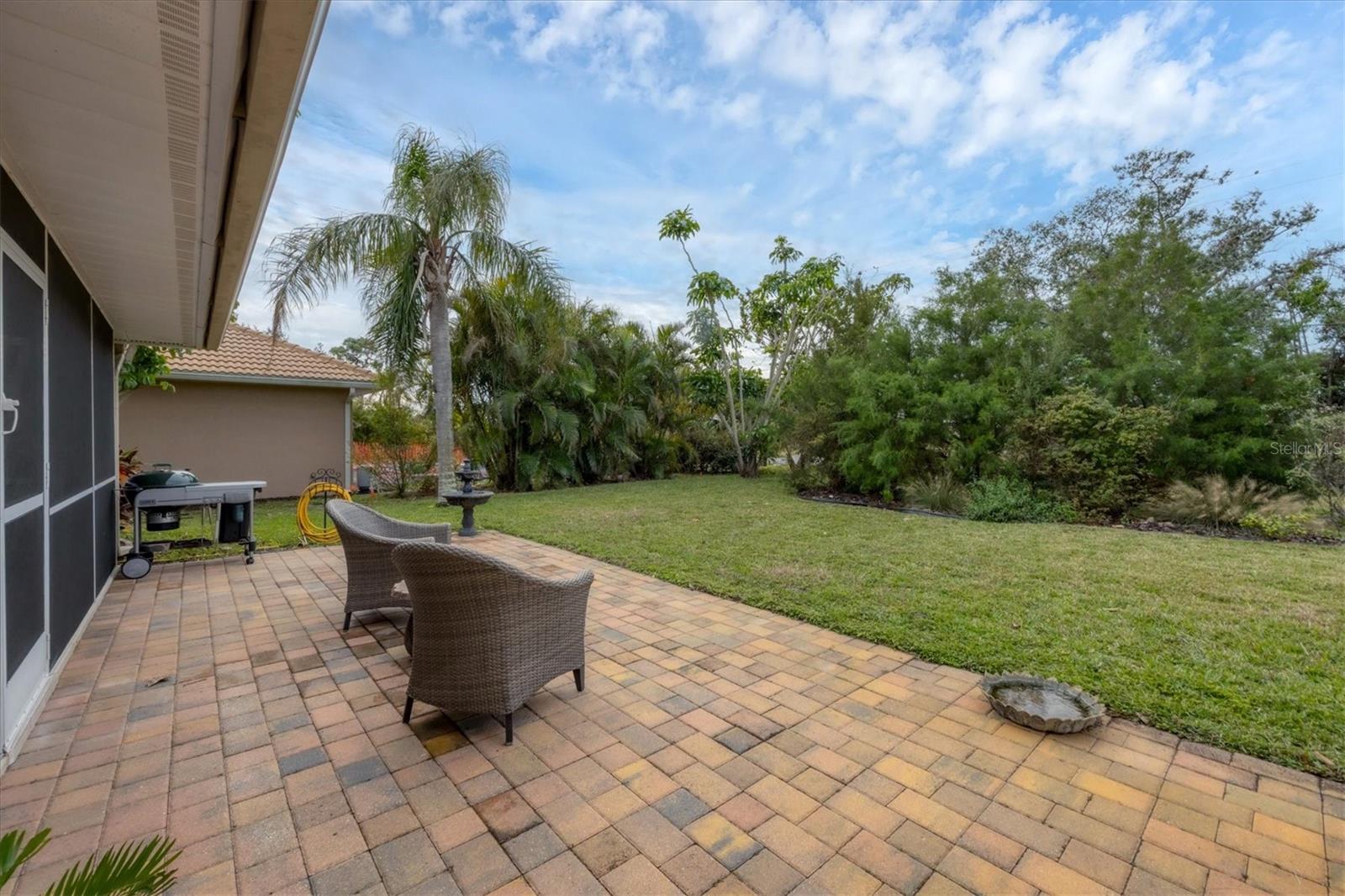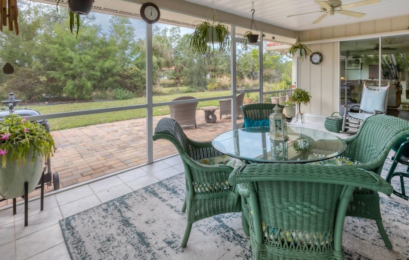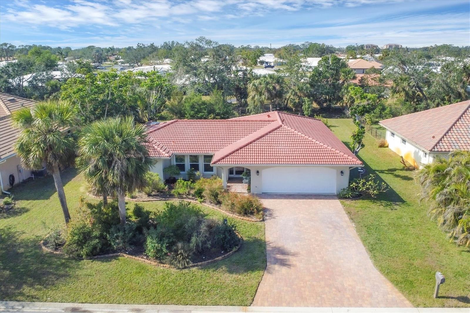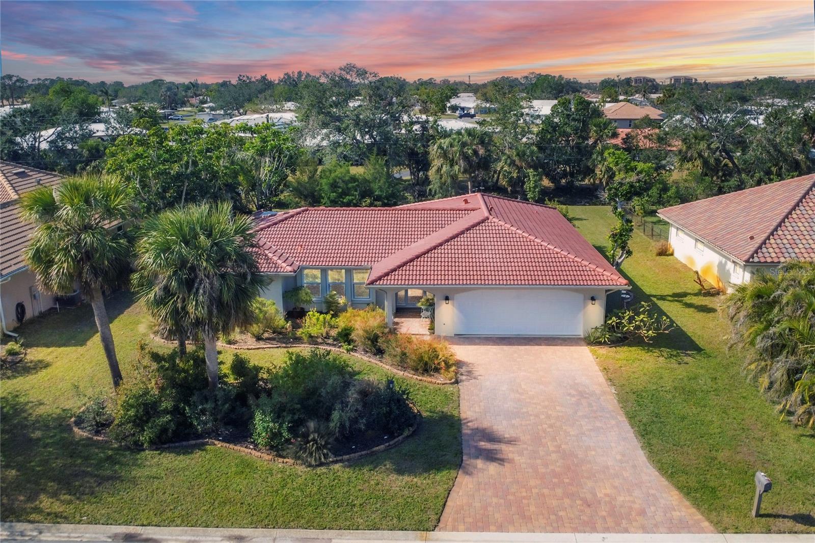 NEW tile roof, NEW HVAC, and newer hurricane-rated impact windows mean you can spend more time enjoying all that Florida has to offer. This 3-bedroom, 2-bath residence is nestled in Sorrento East, a quiet and friendly neighborhood ideal for families, professionals, or anyone looking for a serene yet conveniently located property. With its spacious layout, elegant finishes (including tile and engineered hardwood floors), and thoughtfully designed features, this home is a true find. The split bedroom floor plan ensures privacy for family and guests and features a master ensuite with a walk-in tile shower and quartz-topped double vanity. Two additional bedrooms allow ample natural light and share a bathroom with a tile tub/shower combination. The updated kitchen with quartz countertops, soft-close cabinets, under-cabinet lighting, farmhouse sink, and stainless-steel appliances is the heart of the house and is open to the family room and breakfast nook, making for effortless entertaining and relaxing gatherings. Multiple sliding doors provide easy access to the lanai and paver patio leading to the spacious backyard, where Florida-friendly landscaping attracts butterflies, songbirds, and iconic Florida wildlife. The .27-acre lot provides ample room to add a pool if desired. The new barrel tile roof (2024) has a transferable warranty and is reinforced with 3-nail clips for peace of mind and insurance discounts. The new (2025) Lennox HVAC system features 2 whole-home air purification UV lights as well as new ductwork. Main and lateral drain pipes were cleaned and relined in 2022. This property is in Zone X and requires no flood insurance. It is adjacent to Oscar Scherer State Park and the Legacy Trail and just 4 miles from Nokomis beach. Sorrento East is ideally located between Venice and Sarasota, allowing easy access to shopping and restaurants.