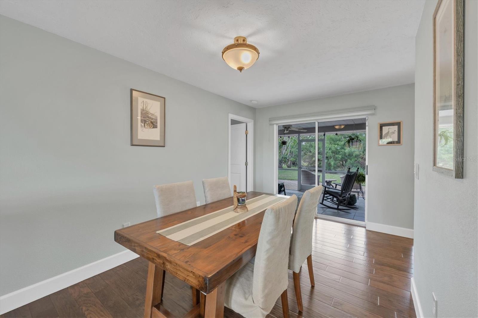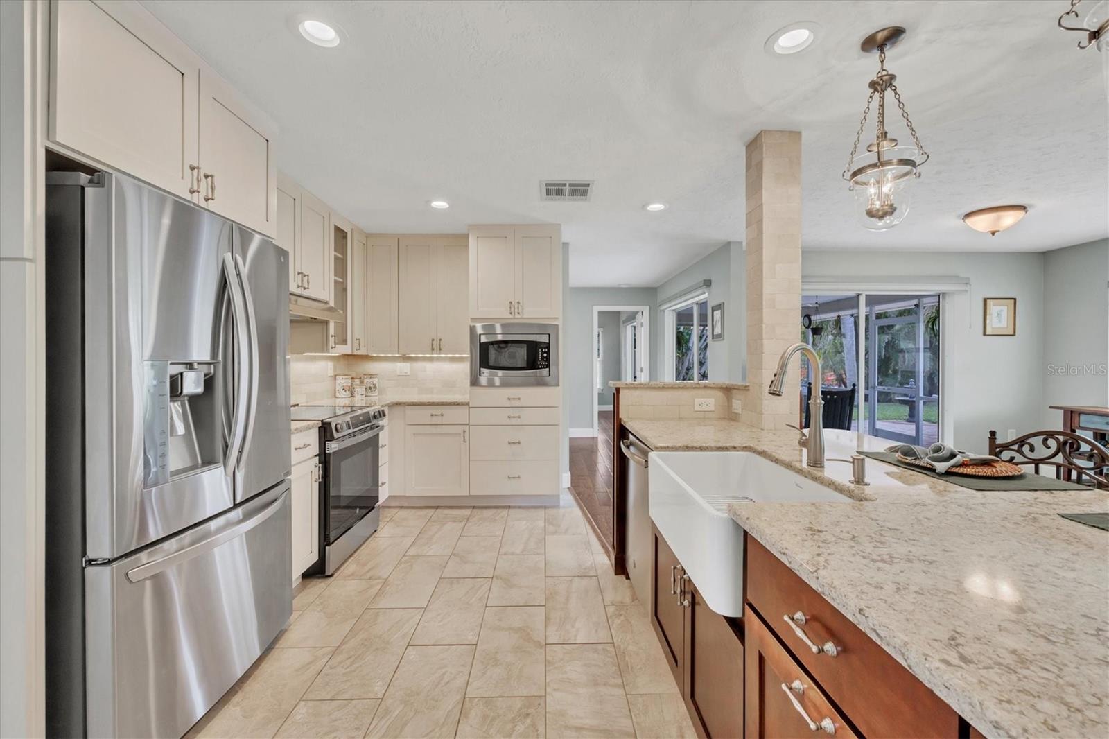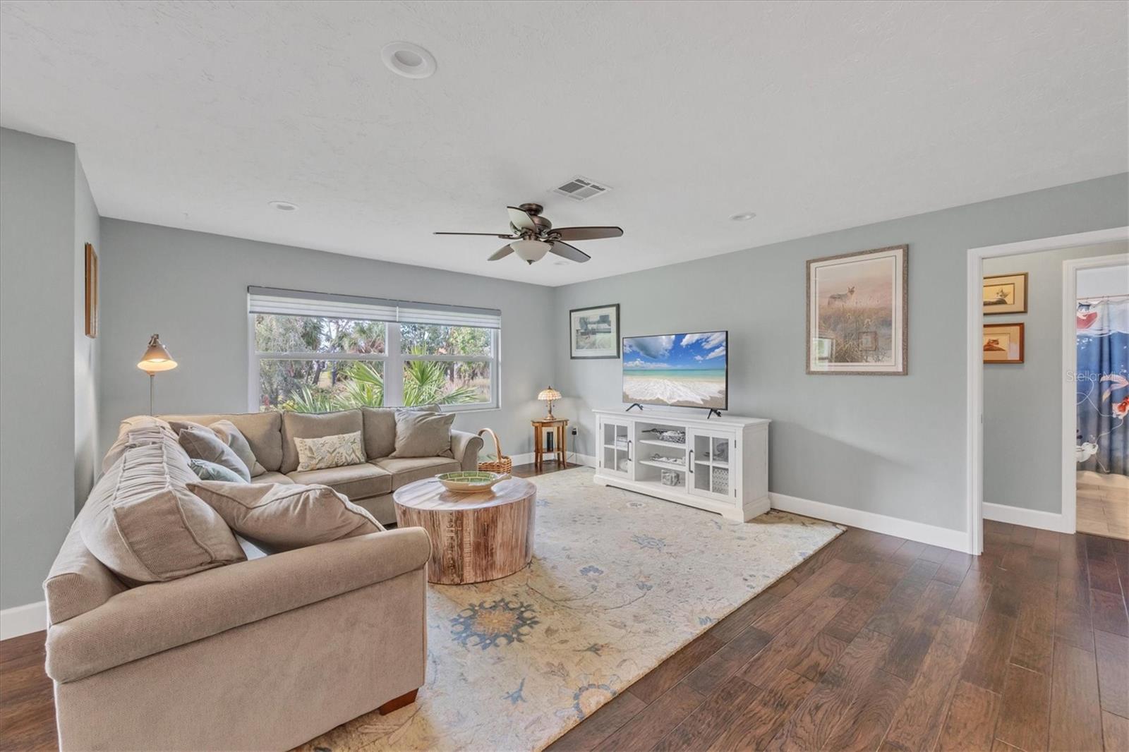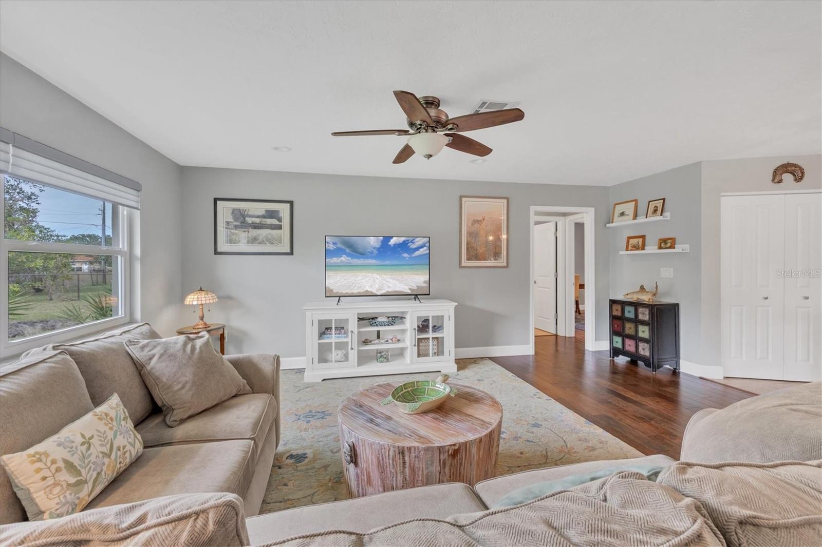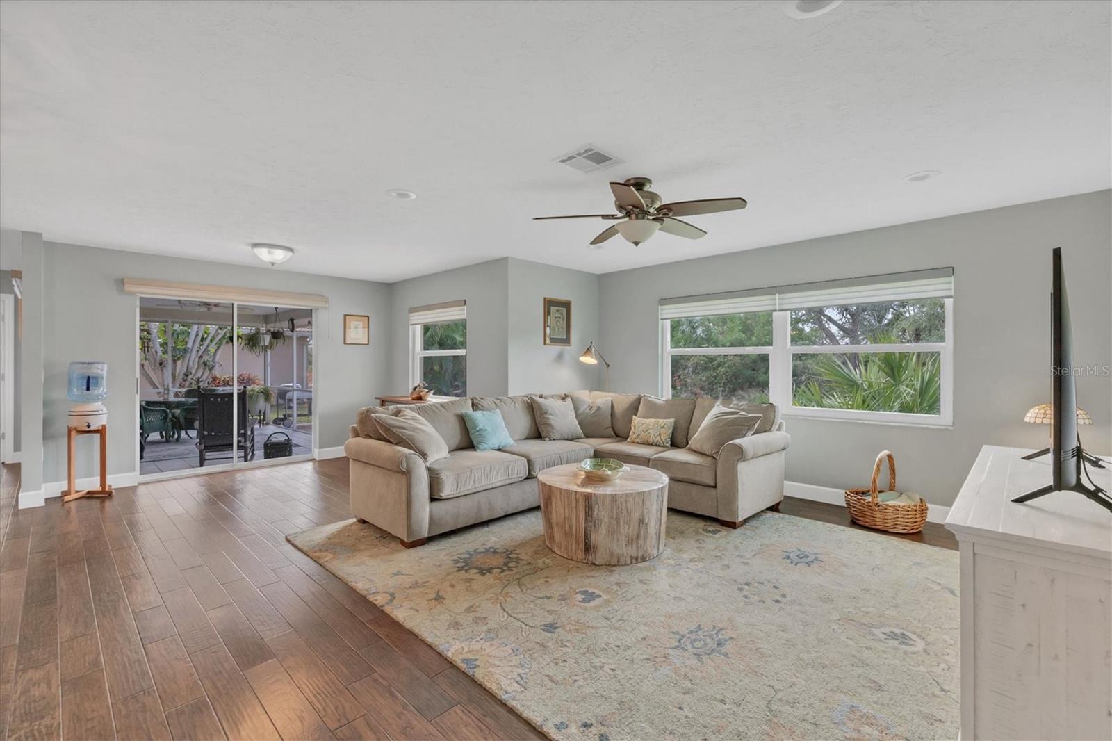 NEW tile roof, NEW HVAC, and newer hurricane-rated impact windows mean you can spend more time enjoying all that Florida has to offer. This 3-bedroom, 2-bath residence is nestled in Sorrento East, a quiet and friendly neighborhood ideal for families, professionals, or anyone looking for a serene yet conveniently located property. With its spacious layout, elegant finishes (including tile and engineered hardwood floors), and thoughtfully designed features, this home is a true find. The split bedroom floor plan ensures privacy for family and guests and features a master ensuite with a walk-in tile shower and quartz-topped double vanity. Two additional bedrooms allow ample natural light and share a bathroom with a tile tub/shower combination. The updated kitchen with quartz countertops, soft-close cabinets, under-cabinet lighting, farmhouse sink, and stainless-steel appliances is the heart of the house and is open to the family room and breakfast nook, making for effortless entertaining and relaxing gatherings. Multiple sliding doors provide easy access to the lanai and paver patio leading to the spacious backyard, where Florida-friendly landscaping attracts butterflies, songbirds, and iconic Florida wildlife. The .27-acre lot provides ample room to add a pool if desired. The new barrel tile roof (2024) has a transferable warranty and is reinforced with 3-nail clips for peace of mind and insurance discounts. The new (2025) Lennox HVAC system features 2 whole-home air purification UV lights as well as new ductwork. Main and lateral drain pipes were cleaned and relined in 2022. This property is in Zone X and requires no flood insurance. It is adjacent to Oscar Scherer State Park and the Legacy Trail and just 4 miles from Nokomis beach. Sorrento East is ideally located between Venice and Sarasota, allowing easy access to shopping and restaurants.