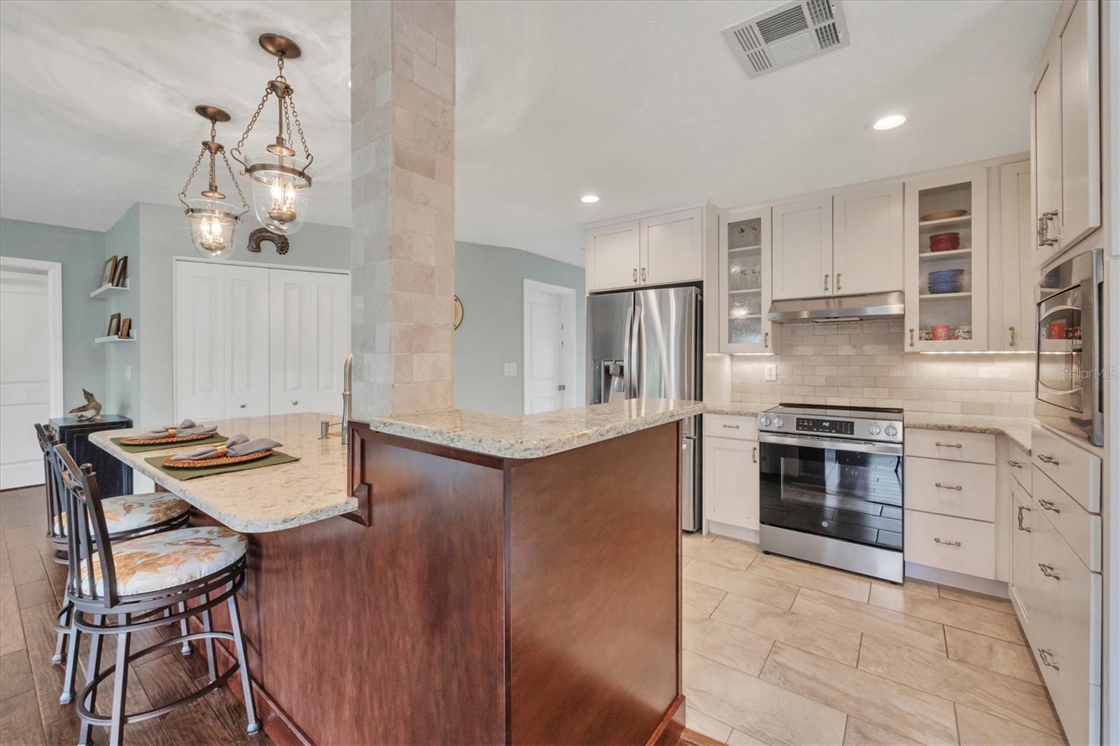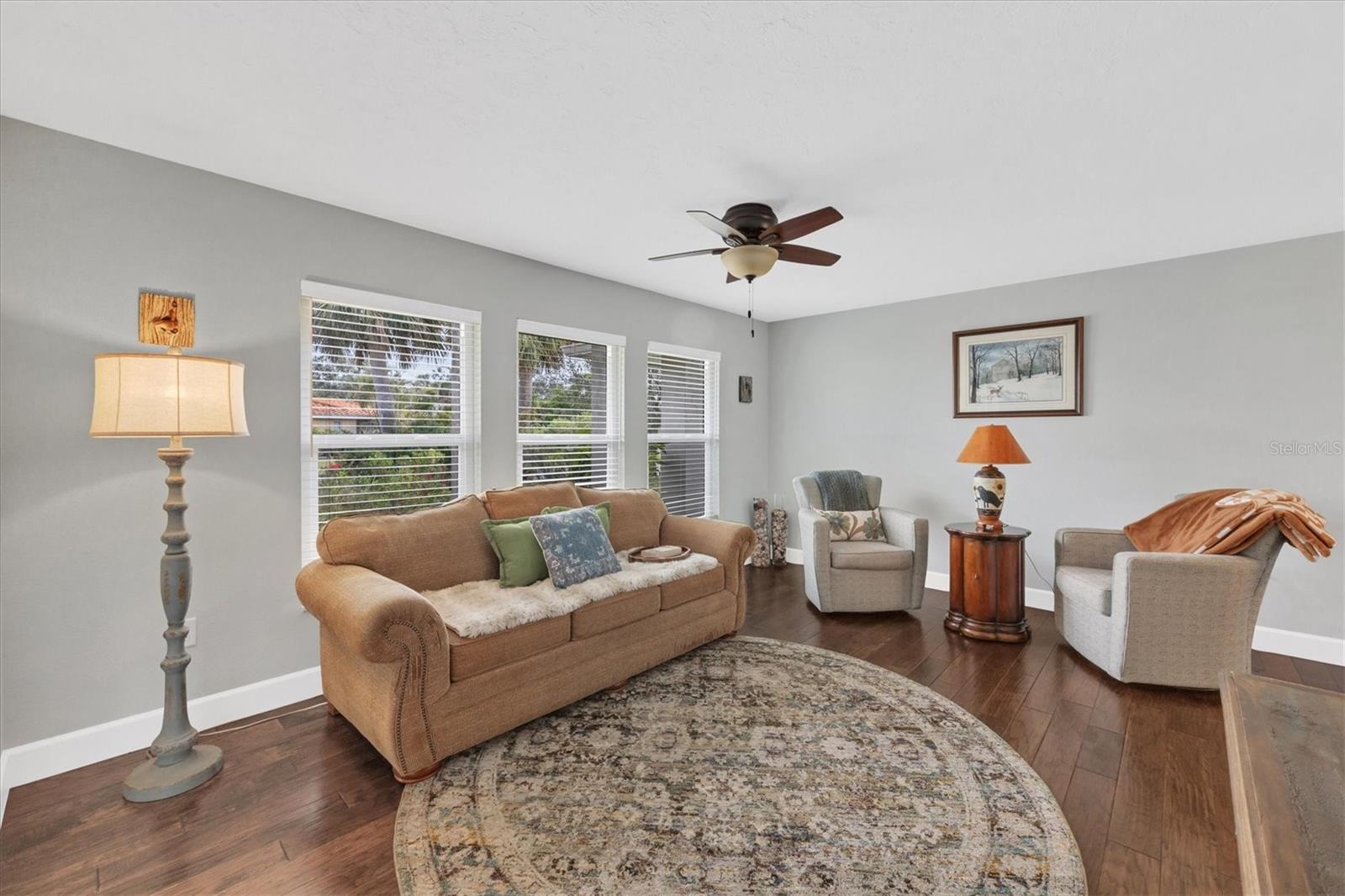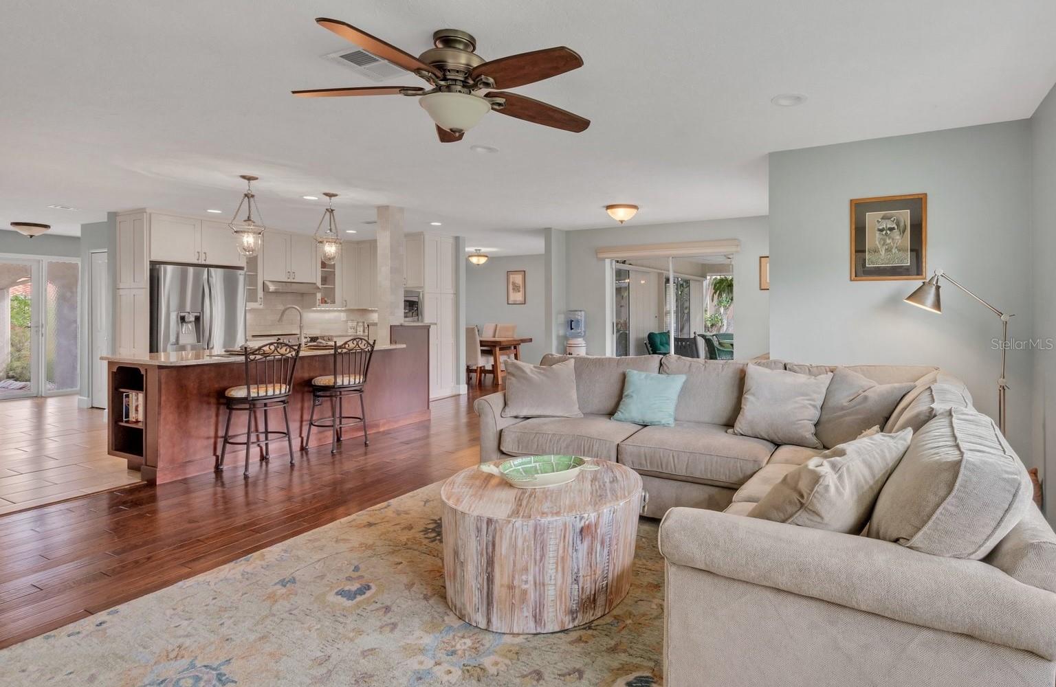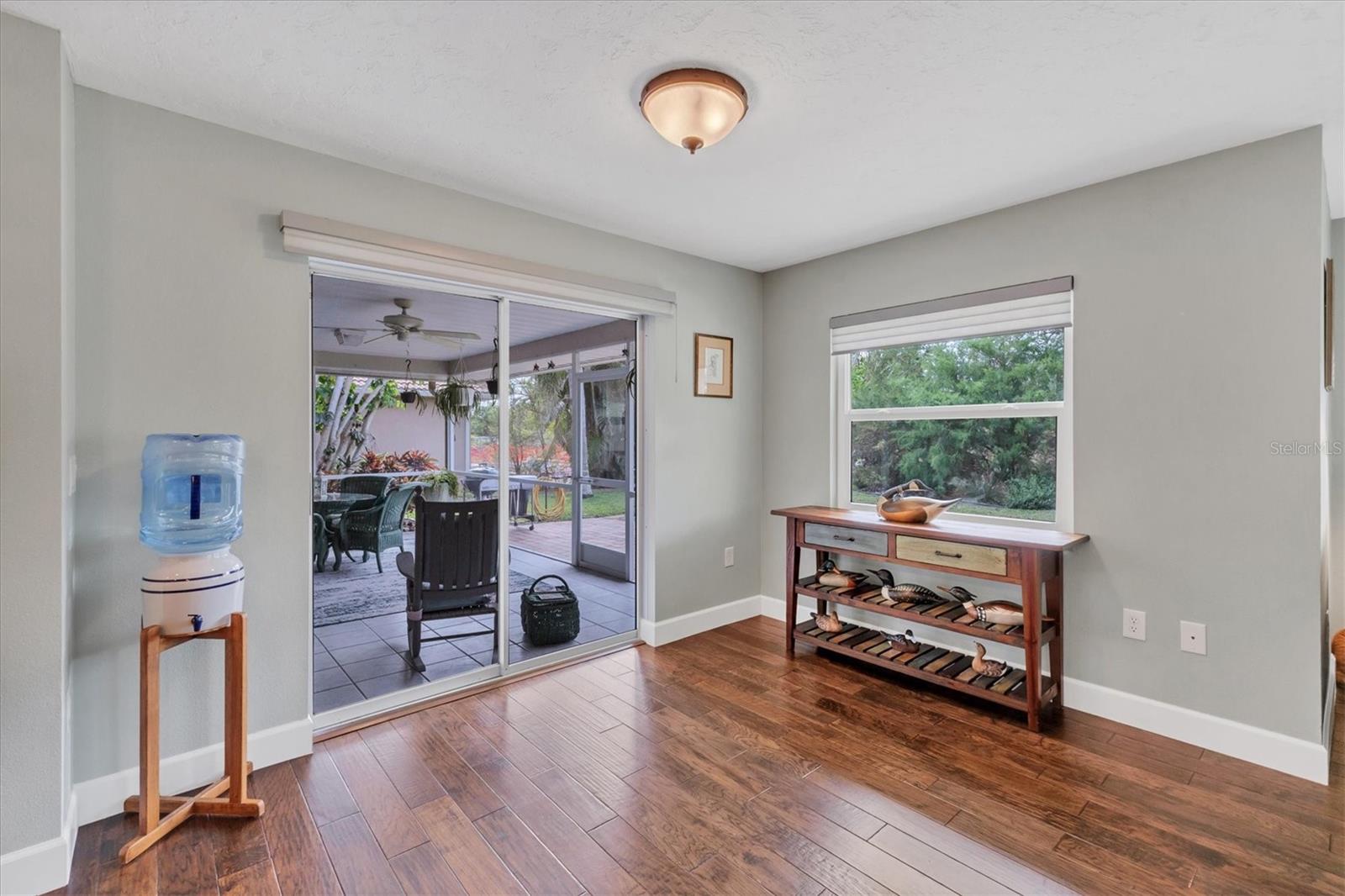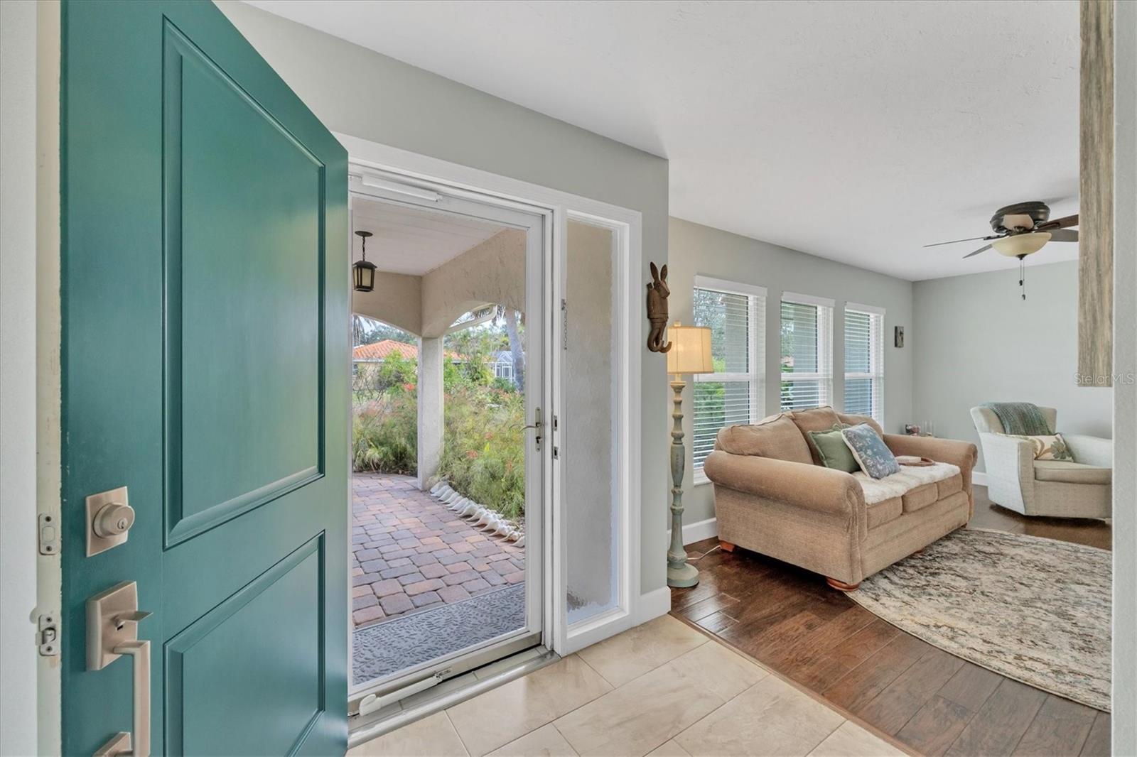 NEW tile roof, NEW HVAC, and newer hurricane-rated impact windows mean you can spend more time enjoying all that Florida has to offer. This 3-bedroom, 2-bath residence is nestled in Sorrento East, a quiet and friendly neighborhood ideal for families, professionals, or anyone looking for a serene yet conveniently located property. With its spacious layout, elegant finishes (including tile and engineered hardwood floors), and thoughtfully designed features, this home is a true find. The split bedroom floor plan ensures privacy for family and guests and features a master ensuite with a walk-in tile shower and quartz-topped double vanity. Two additional bedrooms allow ample natural light and share a bathroom with a tile tub/shower combination. The updated kitchen with quartz countertops, soft-close cabinets, under-cabinet lighting, farmhouse sink, and stainless-steel appliances is the heart of the house and is open to the family room and breakfast nook, making for effortless entertaining and relaxing gatherings. Multiple sliding doors provide easy access to the lanai and paver patio leading to the spacious backyard, where Florida-friendly landscaping attracts butterflies, songbirds, and iconic Florida wildlife. The .27-acre lot provides ample room to add a pool if desired. The new barrel tile roof (2024) has a transferable warranty and is reinforced with 3-nail clips for peace of mind and insurance discounts. The new (2025) Lennox HVAC system features 2 whole-home air purification UV lights as well as new ductwork. Main and lateral drain pipes were cleaned and relined in 2022. This property is in Zone X and requires no flood insurance. It is adjacent to Oscar Scherer State Park and the Legacy Trail and just 4 miles from Nokomis beach. Sorrento East is ideally located between Venice and Sarasota, allowing easy access to shopping and restaurants.
