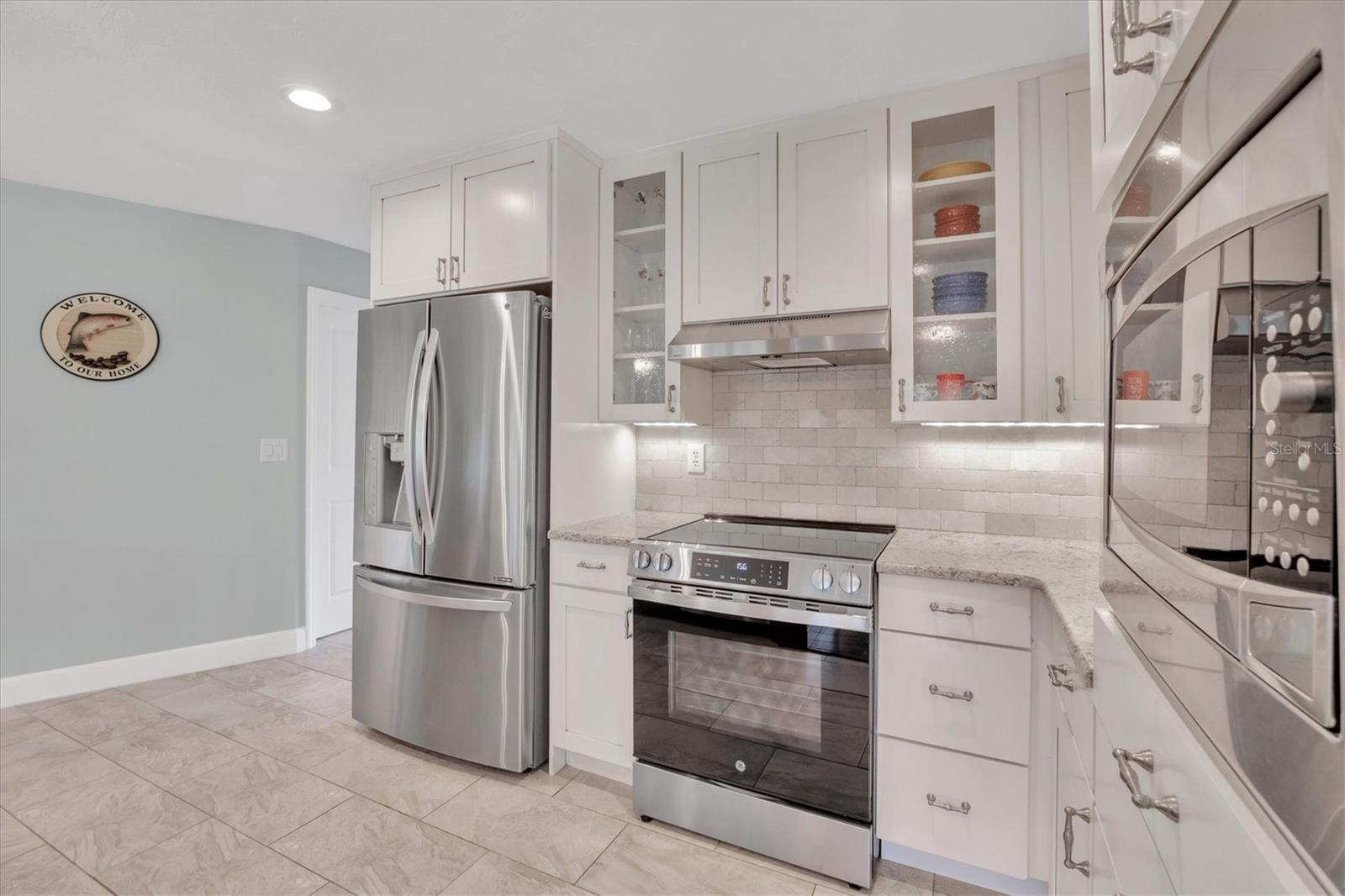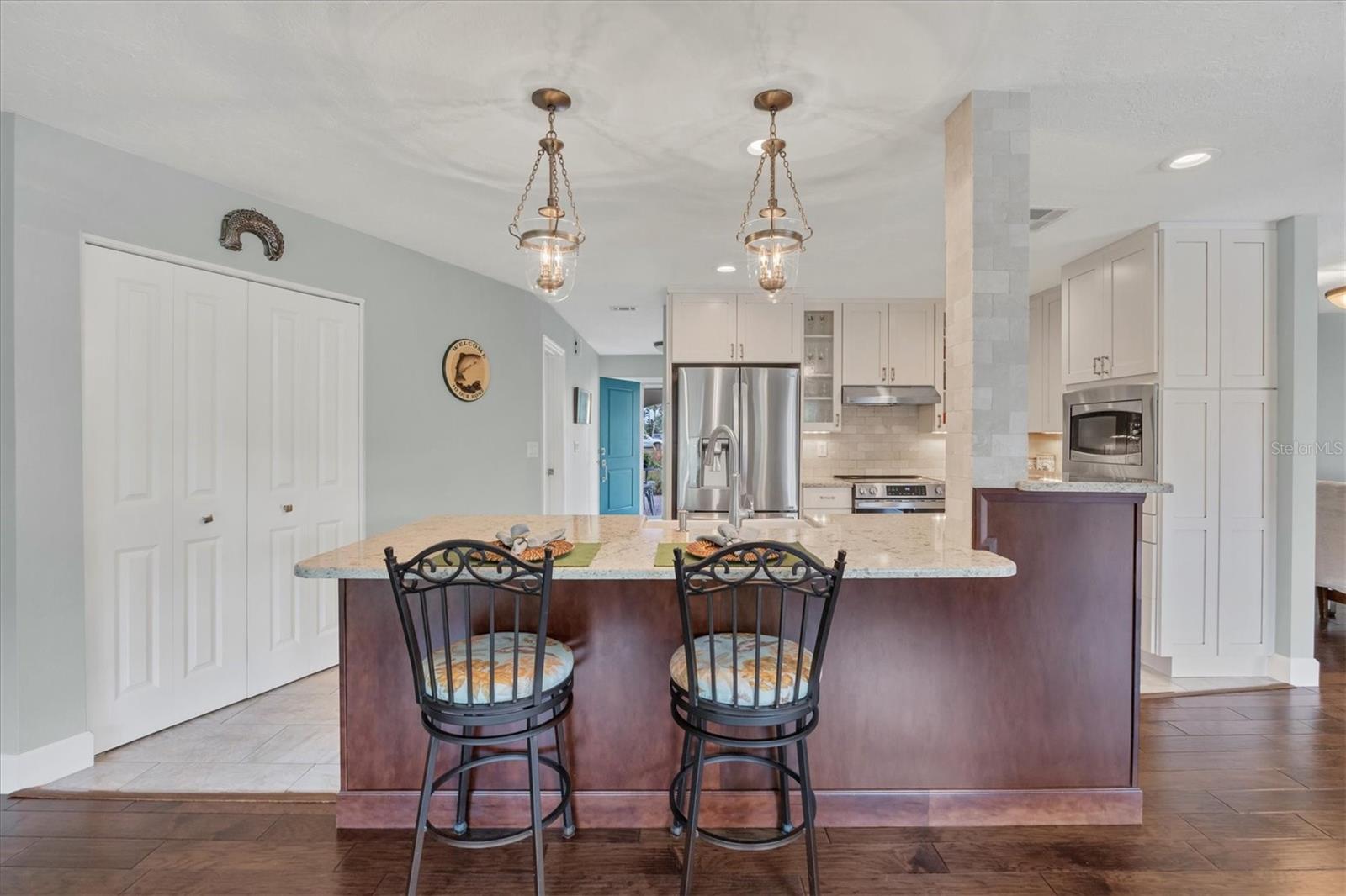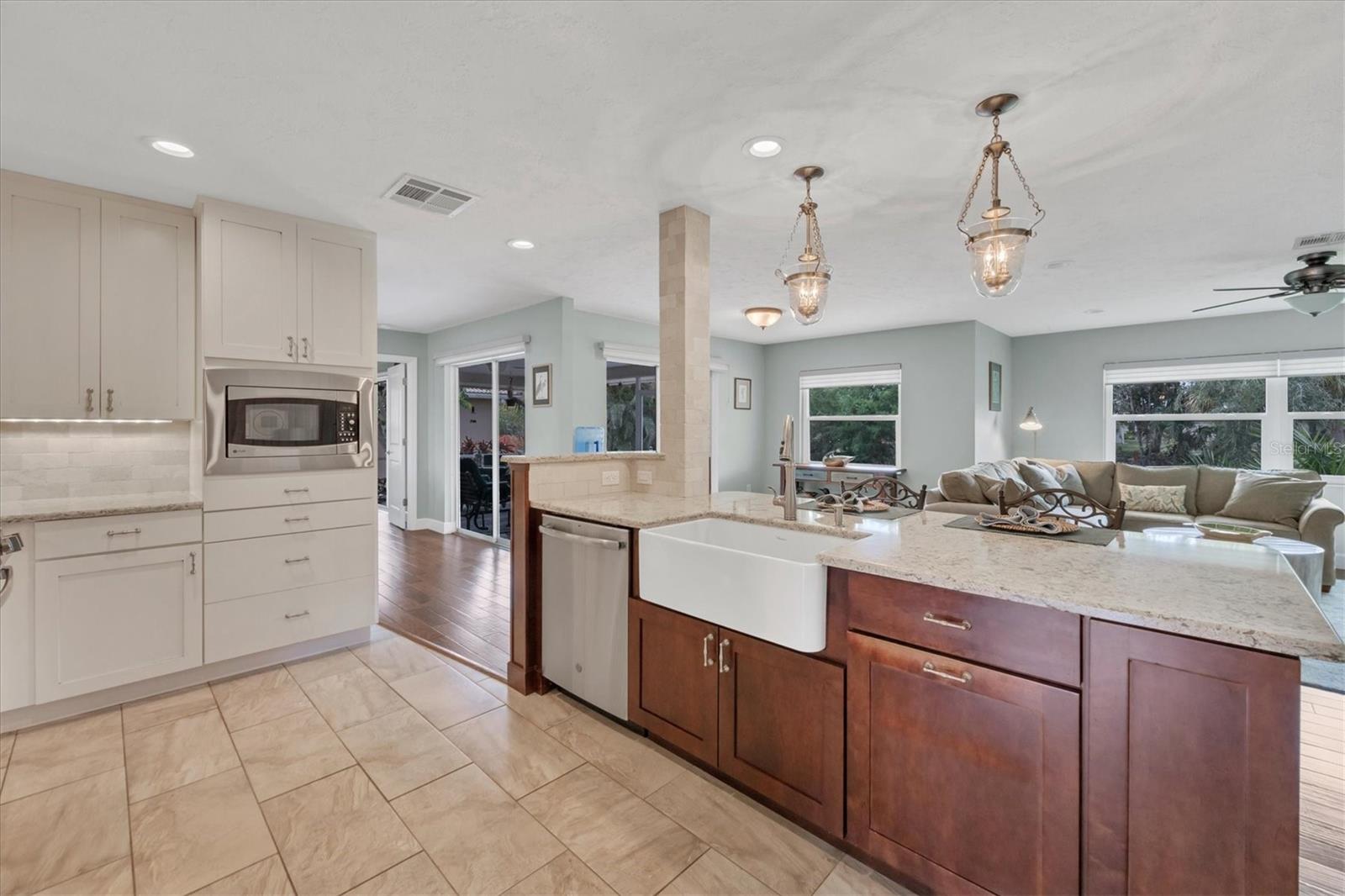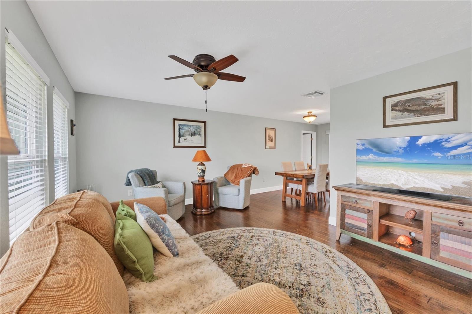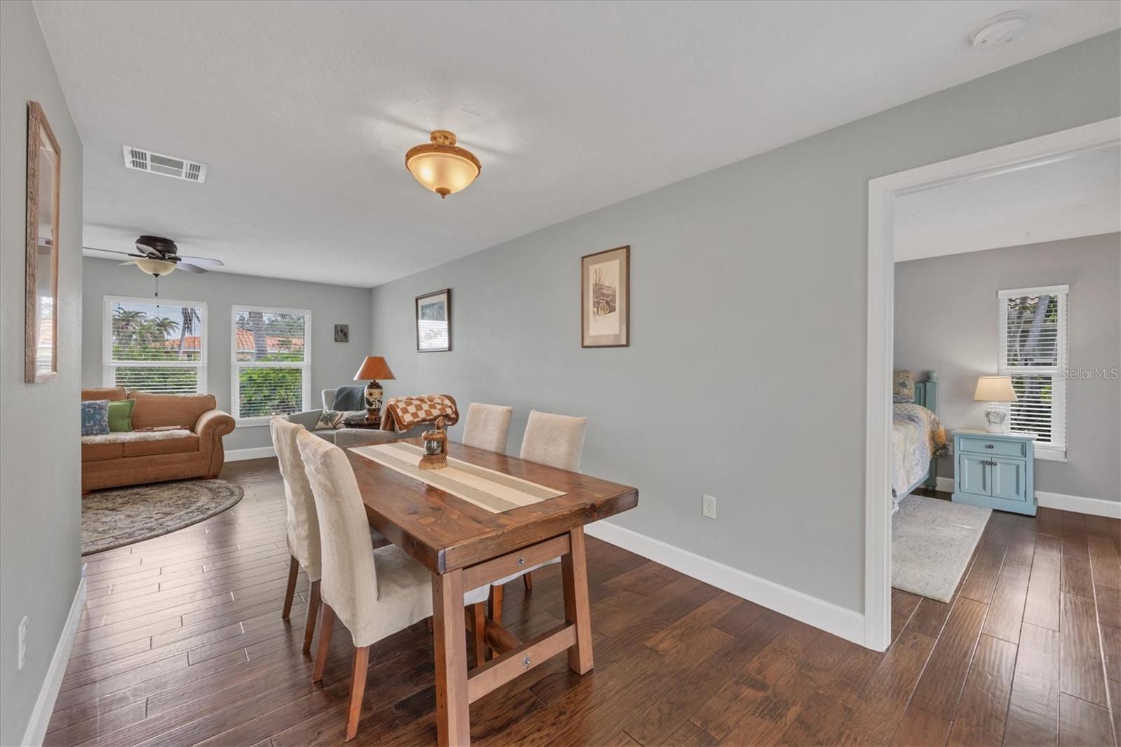 NEW tile roof, NEW HVAC, and newer hurricane-rated impact windows mean you can spend more time enjoying all that Florida has to offer. This 3-bedroom, 2-bath residence is nestled in Sorrento East, a quiet and friendly neighborhood ideal for families, professionals, or anyone looking for a serene yet conveniently located property. With its spacious layout, elegant finishes (including tile and engineered hardwood floors), and thoughtfully designed features, this home is a true find. The split bedroom floor plan ensures privacy for family and guests and features a master ensuite with a walk-in tile shower and quartz-topped double vanity. Two additional bedrooms allow ample natural light and share a bathroom with a tile tub/shower combination. The updated kitchen with quartz countertops, soft-close cabinets, under-cabinet lighting, farmhouse sink, and stainless-steel appliances is the heart of the house and is open to the family room and breakfast nook, making for effortless entertaining and relaxing gatherings. Multiple sliding doors provide easy access to the lanai and paver patio leading to the spacious backyard, where Florida-friendly landscaping attracts butterflies, songbirds, and iconic Florida wildlife. The .27-acre lot provides ample room to add a pool if desired. The new barrel tile roof (2024) has a transferable warranty and is reinforced with 3-nail clips for peace of mind and insurance discounts. The new (2025) Lennox HVAC system features 2 whole-home air purification UV lights as well as new ductwork. Main and lateral drain pipes were cleaned and relined in 2022. This property is in Zone X and requires no flood insurance. It is adjacent to Oscar Scherer State Park and the Legacy Trail and just 4 miles from Nokomis beach. Sorrento East is ideally located between Venice and Sarasota, allowing easy access to shopping and restaurants.