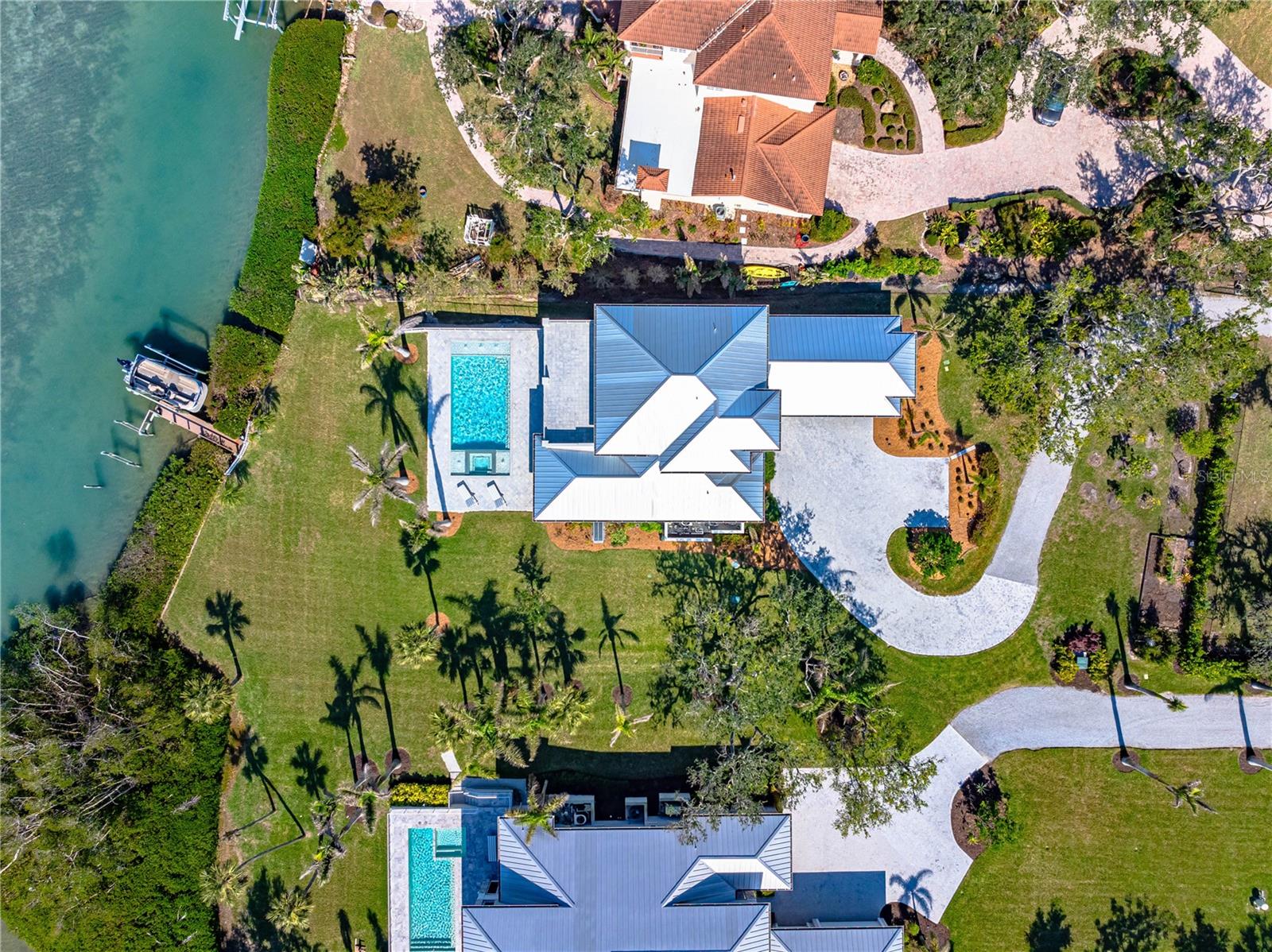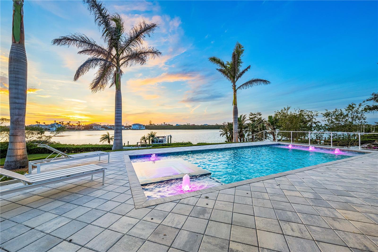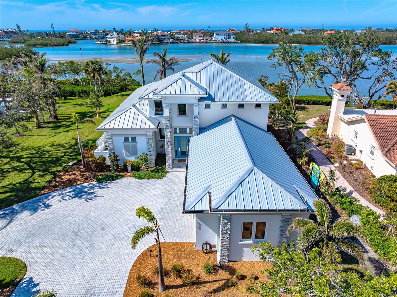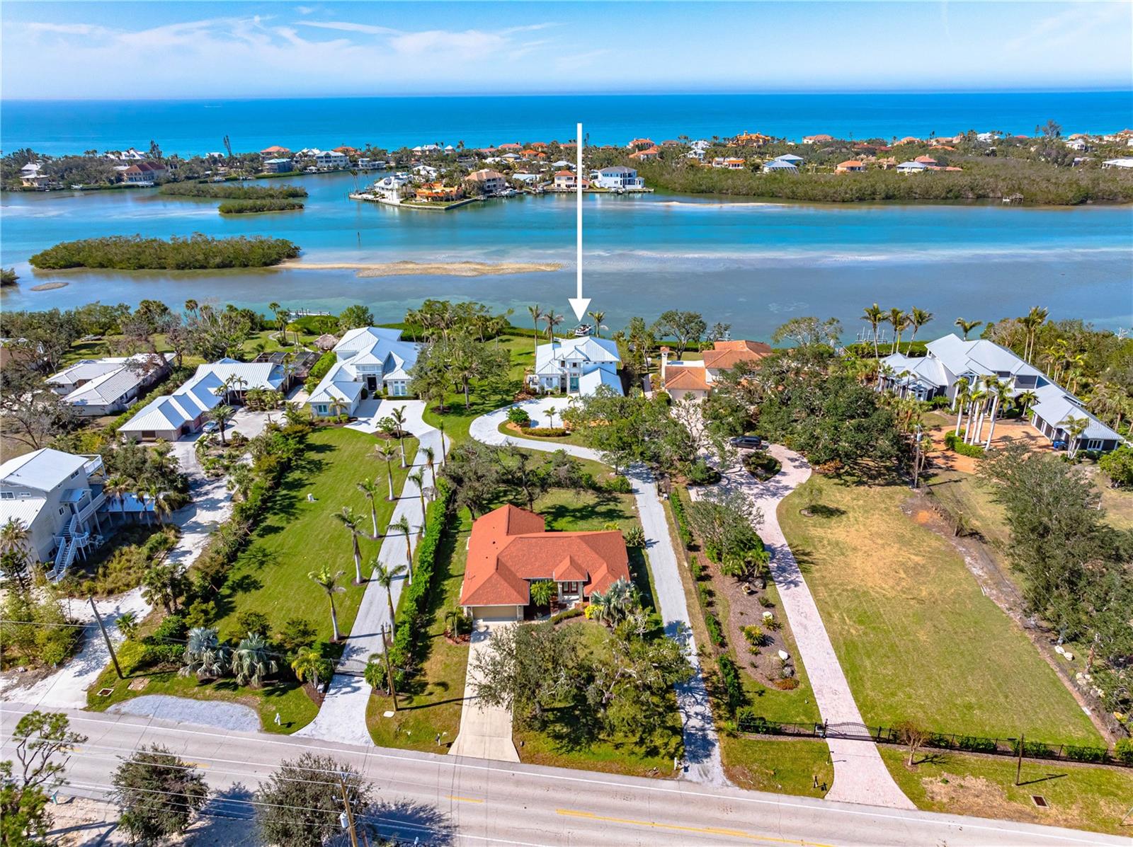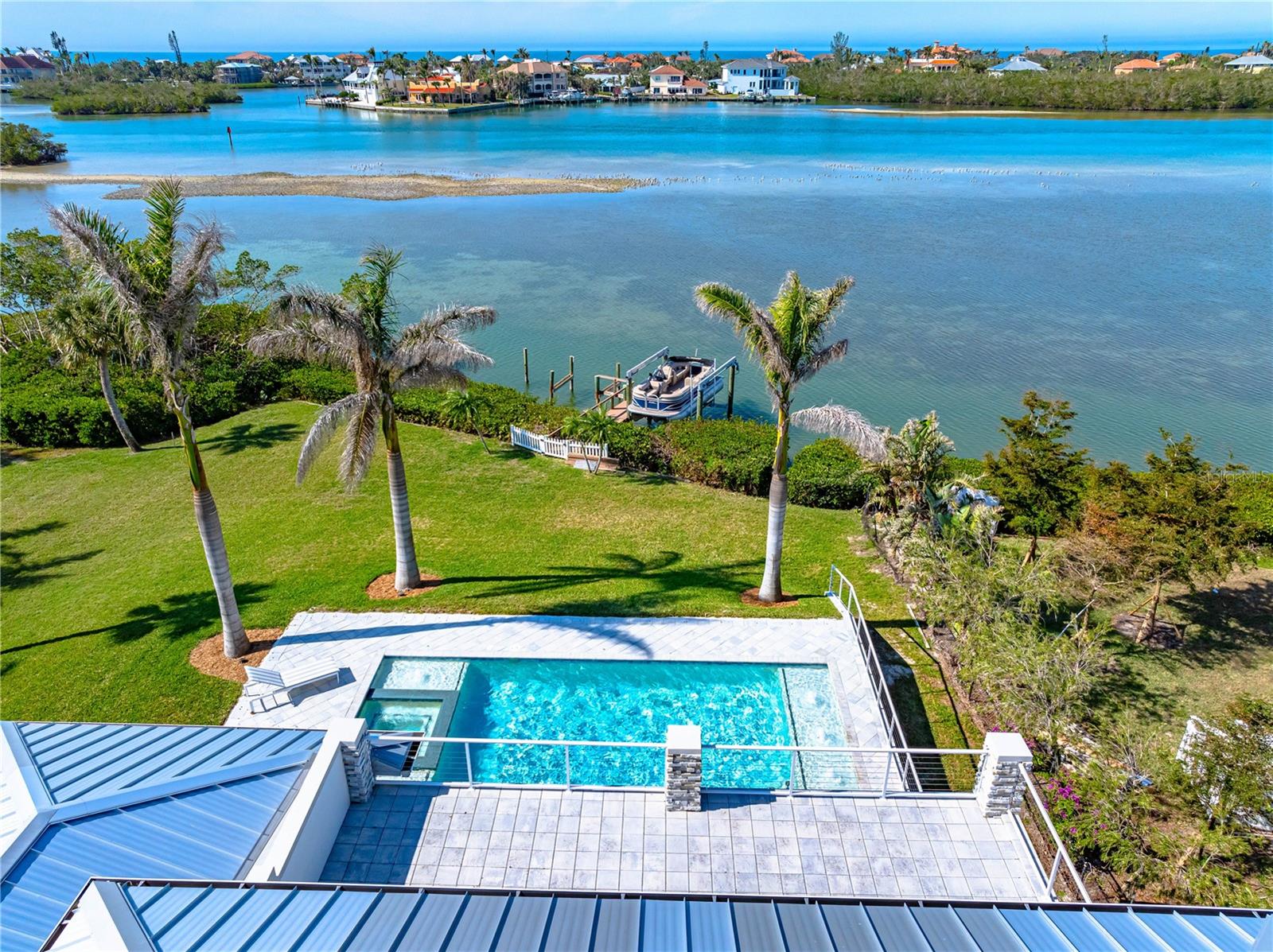 This stunning coastal waterfront estate is a fishing and boaters' dream. This property promises the sought-after Florida sunsets night after night! This private oasis sits on .65 acre and establishes security with a private solar powered gate. Walking into the foyer you experience the open floor plan with a linear gas fireplace in the great room, and high end finishes throughout. Pocket sliders line the great room, kitchen, and owner’s suite, with breathtaking views of the intracoastal that provides an abundance of natural light! The flow from the kitchen to the great room provides functionality for everyday living or entertaining. The kitchen provides stainless steel Thermador wifi-compatible appliances, a convection double oven, glass induction cooktop, microwave drawer, and an oversized refrigerator with two ice makers! It is also fitted with Italian tile backsplash! The Owners' suite is conveniently located on the first floor with the same beautiful views, a large shower, and a favorable walk-in closet. Other features of this spectacular home include a Sonos sound system, and an elevator to the 2nd floor. The elevator opens up to a loft and three additional bedrooms. Two of the three bedrooms include ensuites with a private patio and breathtaking views to the North and South of the intracoastal waterway. The 3rd bedroom shares the public bathroom. Once outside there is a spacious lanai with a fully equipped outdoor kitchen, including seating versatility for dining, watching your favorite tv programs, and entertaining. The lanai is also equipped with a linear gas fireplace, powered sun and storm shades, and a Sonos sound system. After a short walk down to the dock you will find easy access to a 10,000 lb boat lift with remote control operation. There is electric and a fresh water source for convenient fish and boat cleaning. Just 1.1 miles from Nokomis Beach, this estate allows for a quiet and private lifestyle and is within a short drive to vibrant downtown Venice and Sarasota. Don’t miss out on your chance for Coastal living! *Dont forget to click the virtual link* *This is turnkey optional*