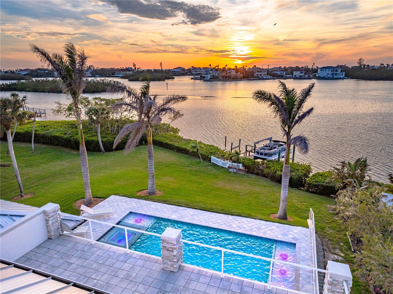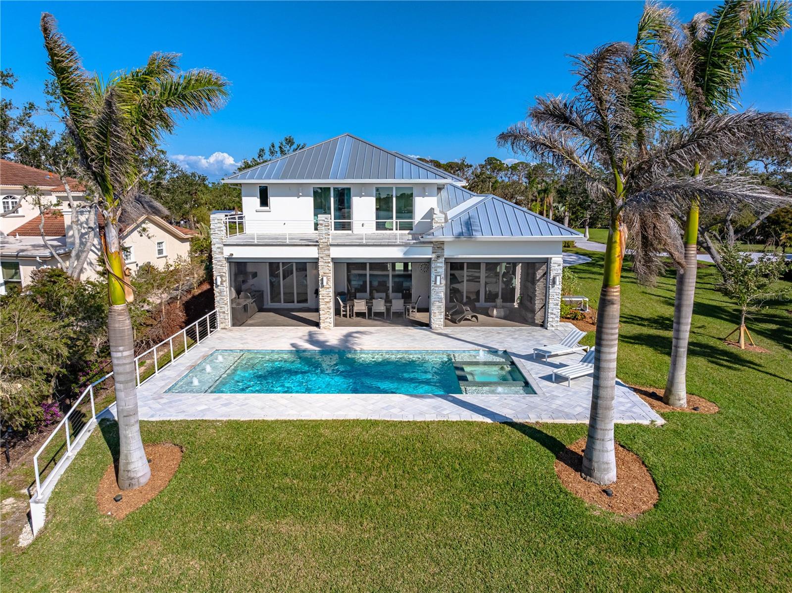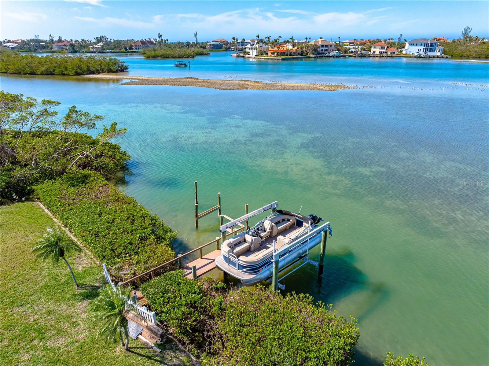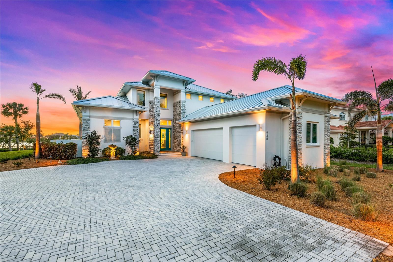 This stunning coastal waterfront estate is a fishing and boaters' dream. This property promises the sought-after Florida sunsets night after night! This private oasis sits on .65 acre and establishes security with a private solar powered gate. Walking into the foyer you experience the open floor plan with a linear gas fireplace in the great room, and high end finishes throughout. Pocket sliders line the great room, kitchen, and owner’s suite, with breathtaking views of the intracoastal that provides an abundance of natural light! The flow from the kitchen to the great room provides functionality for everyday living or entertaining. The kitchen provides stainless steel Thermador wifi-compatible appliances, a convection double oven, glass induction cooktop, microwave drawer, and an oversized refrigerator with two ice makers! It is also fitted with Italian tile backsplash! The Owners' suite is conveniently located on the first floor with the same beautiful views, a large shower, and a favorable walk-in closet. Other features of this spectacular home include a Sonos sound system, and an elevator to the 2nd floor. The elevator opens up to a loft and three additional bedrooms. Two of the three bedrooms include ensuites with a private patio and breathtaking views to the North and South of the intracoastal waterway. The 3rd bedroom shares the public bathroom. Once outside there is a spacious lanai with a fully equipped outdoor kitchen, including seating versatility for dining, watching your favorite tv programs, and entertaining. The lanai is also equipped with a linear gas fireplace, powered sun and storm shades, and a Sonos sound system. After a short walk down to the dock you will find easy access to a 10,000 lb boat lift with remote control operation. There is electric and a fresh water source for convenient fish and boat cleaning. Just 1.1 miles from Nokomis Beach, this estate allows for a quiet and private lifestyle and is within a short drive to vibrant downtown Venice and Sarasota. Don’t miss out on your chance for Coastal living! *Dont forget to click the virtual link* *This is turnkey optional*