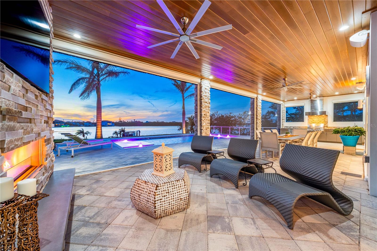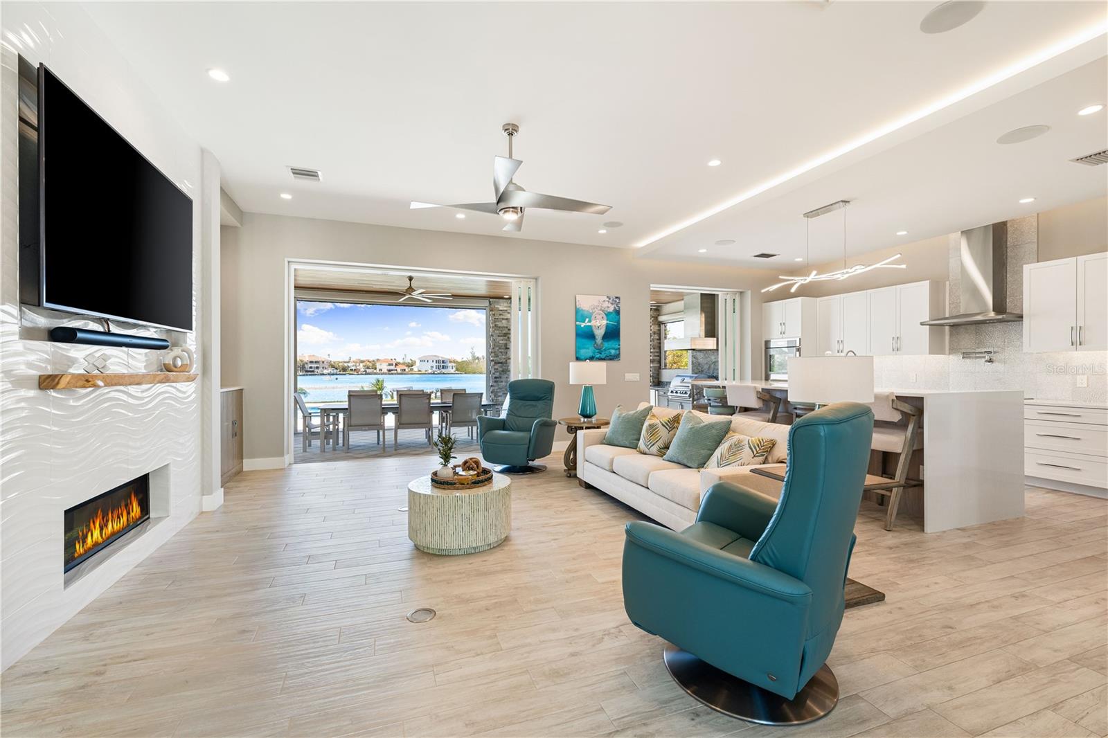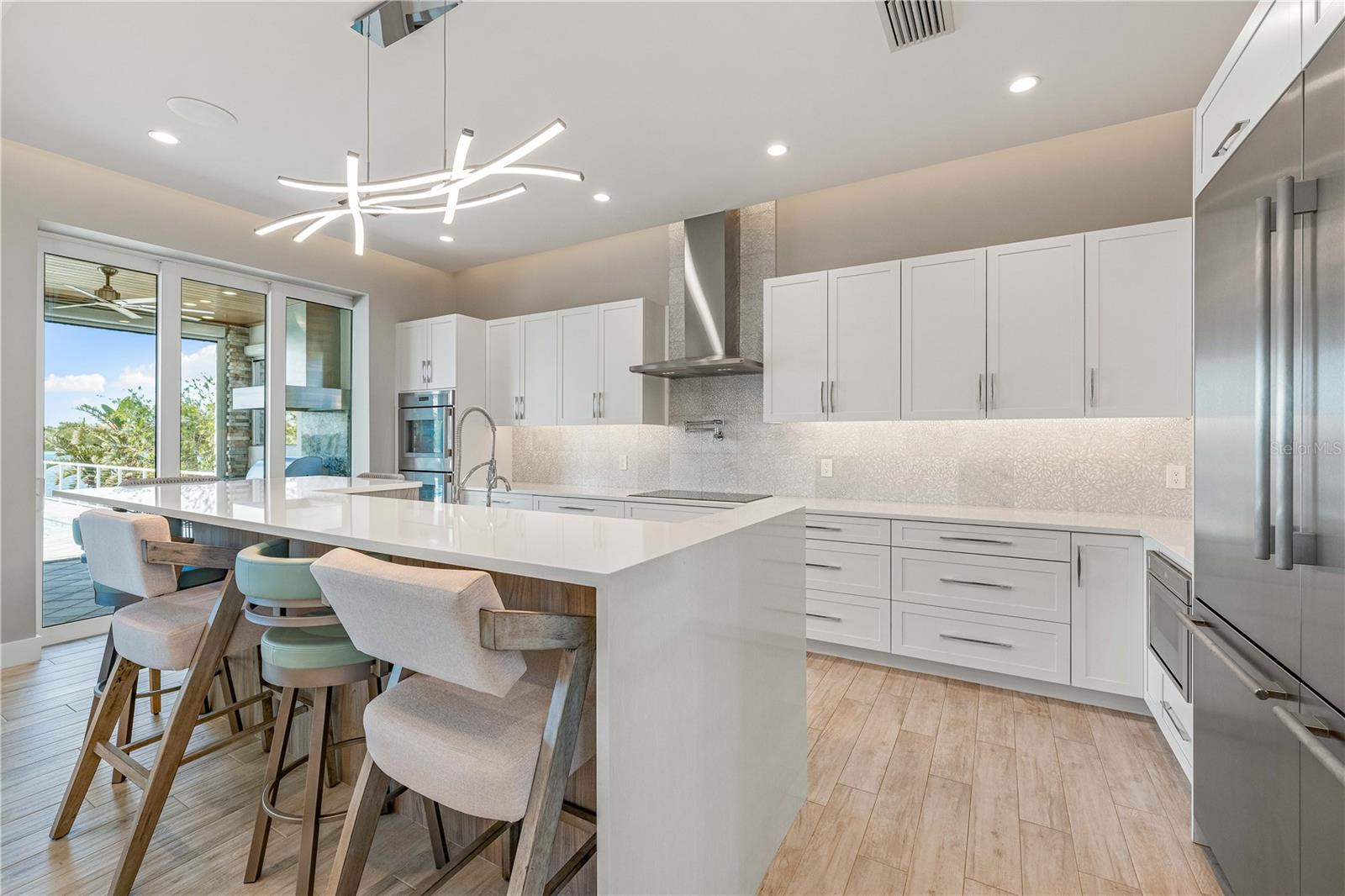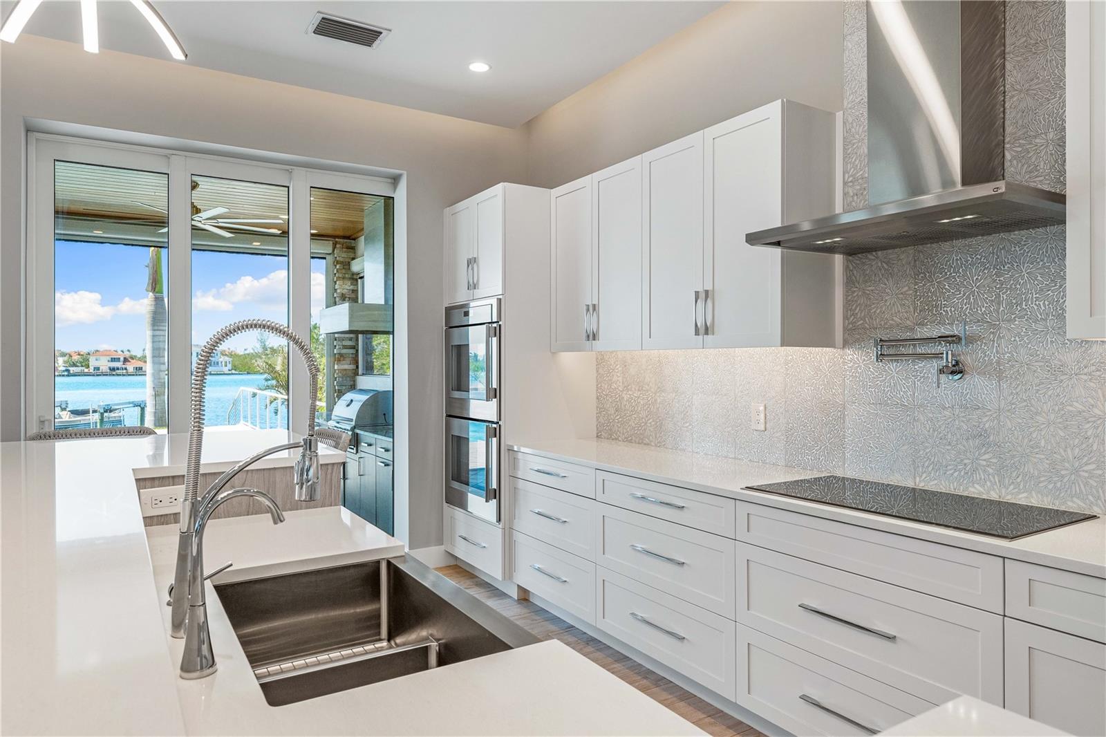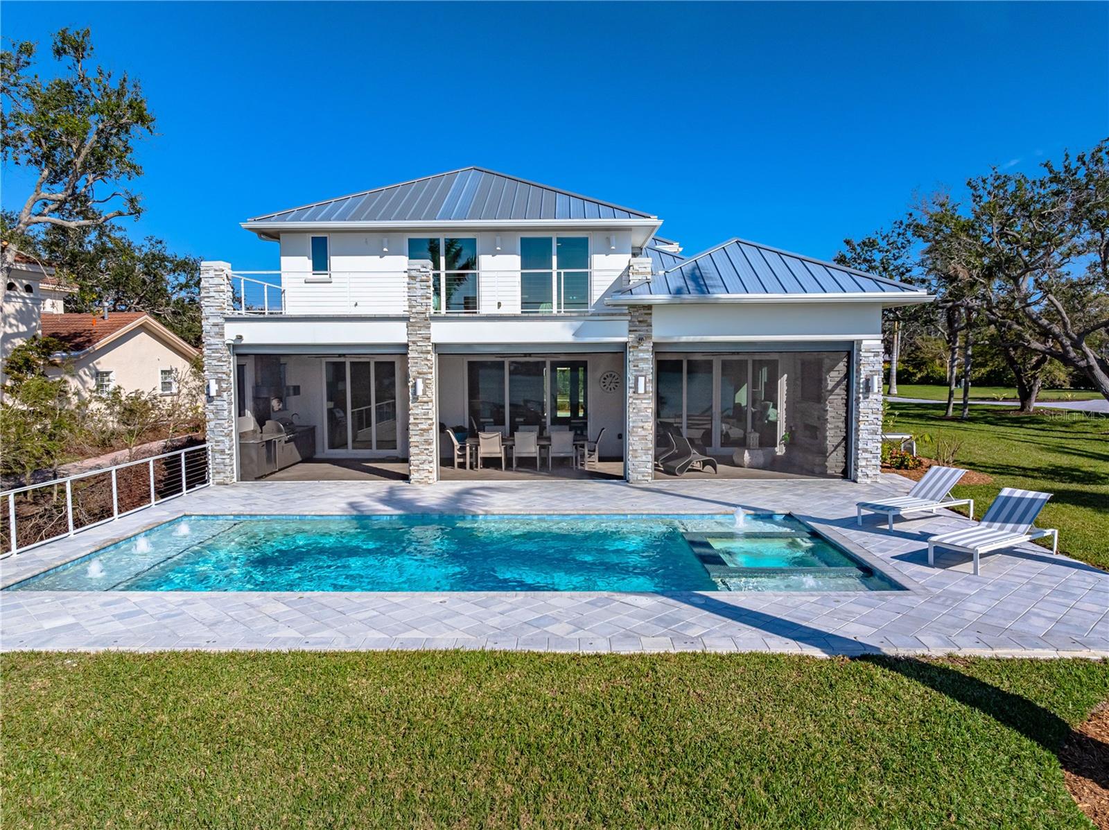 This stunning coastal waterfront estate is a fishing and boaters' dream. This property promises the sought-after Florida sunsets night after night! This private oasis sits on .65 acre and establishes security with a private solar powered gate. Walking into the foyer you experience the open floor plan with a linear gas fireplace in the great room, and high end finishes throughout. Pocket sliders line the great room, kitchen, and owner’s suite, with breathtaking views of the intracoastal that provides an abundance of natural light! The flow from the kitchen to the great room provides functionality for everyday living or entertaining. The kitchen provides stainless steel Thermador wifi-compatible appliances, a convection double oven, glass induction cooktop, microwave drawer, and an oversized refrigerator with two ice makers! It is also fitted with Italian tile backsplash! The Owners' suite is conveniently located on the first floor with the same beautiful views, a large shower, and a favorable walk-in closet. Other features of this spectacular home include a Sonos sound system, and an elevator to the 2nd floor. The elevator opens up to a loft and three additional bedrooms. Two of the three bedrooms include ensuites with a private patio and breathtaking views to the North and South of the intracoastal waterway. The 3rd bedroom shares the public bathroom. Once outside there is a spacious lanai with a fully equipped outdoor kitchen, including seating versatility for dining, watching your favorite tv programs, and entertaining. The lanai is also equipped with a linear gas fireplace, powered sun and storm shades, and a Sonos sound system. After a short walk down to the dock you will find easy access to a 10,000 lb boat lift with remote control operation. There is electric and a fresh water source for convenient fish and boat cleaning. Just 1.1 miles from Nokomis Beach, this estate allows for a quiet and private lifestyle and is within a short drive to vibrant downtown Venice and Sarasota. Don’t miss out on your chance for Coastal living! *Dont forget to click the virtual link* *This is turnkey optional*