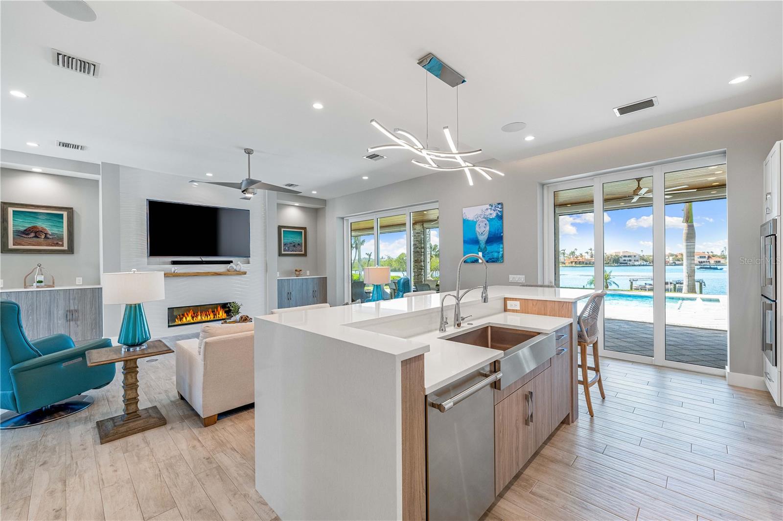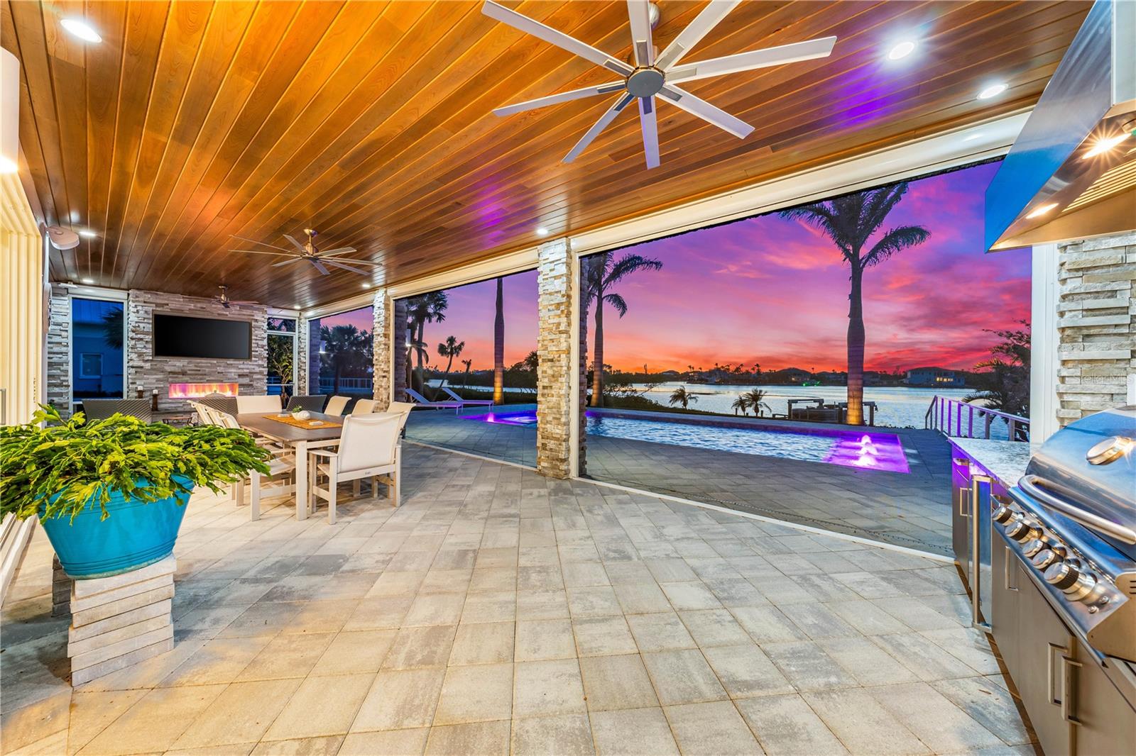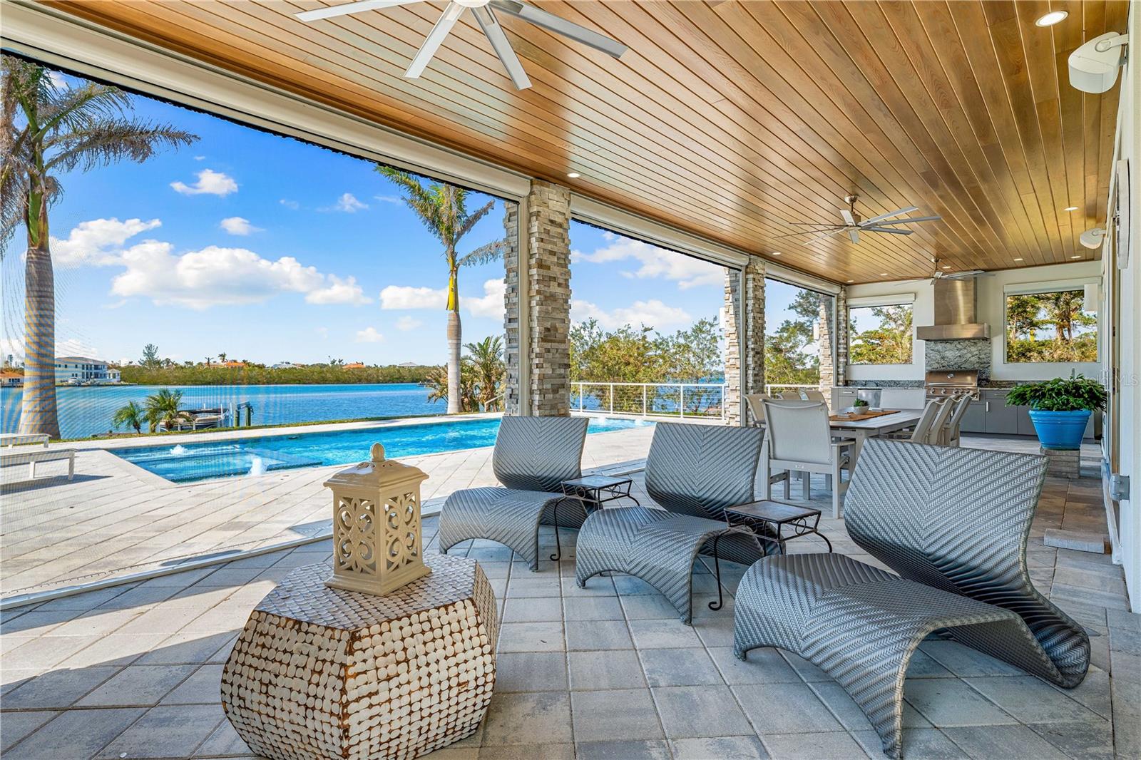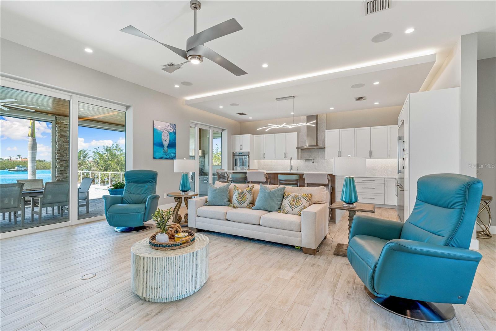This stunning coastal waterfront estate is a fishing and boaters' dream. This property promises the sought-after Florida sunsets night after night! This private oasis sits on .65 acre and establishes security with a private solar powered gate. Walking into the foyer you experience the open floor plan with a linear gas fireplace in the great room, and high end finishes throughout. Pocket sliders line the great room, kitchen, and owner’s suite, with breathtaking views of the intracoastal that provides an abundance of natural light! The flow from the kitchen to the great room provides functionality for everyday living or entertaining. The kitchen provides stainless steel Thermador wifi-compatible appliances, a convection double oven, glass induction cooktop, microwave drawer, and an oversized refrigerator with two ice makers! It is also fitted with Italian tile backsplash! The Owners' suite is conveniently located on the first floor with the same beautiful views, a large shower, and a favorable walk-in closet. Other features of this spectacular home include a Sonos sound system, and an elevator to the 2nd floor. The elevator opens up to a loft and three additional bedrooms. Two of the three bedrooms include ensuites with a private patio and breathtaking views to the North and South of the intracoastal waterway. The 3rd bedroom shares the public bathroom. Once outside there is a spacious lanai with a fully equipped outdoor kitchen, including seating versatility for dining, watching your favorite tv programs, and entertaining. The lanai is also equipped with a linear gas fireplace, powered sun and storm shades, and a Sonos sound system. After a short walk down to the dock you will find easy access to a 10,000 lb boat lift with remote control operation. There is electric and a fresh water source for convenient fish and boat cleaning. Just 1.1 miles from Nokomis Beach, this estate allows for a quiet and private lifestyle and is within a short drive to vibrant downtown Venice and Sarasota. Don’t miss out on your chance for Coastal living! *Dont forget to click the virtual link* *This is turnkey optional*