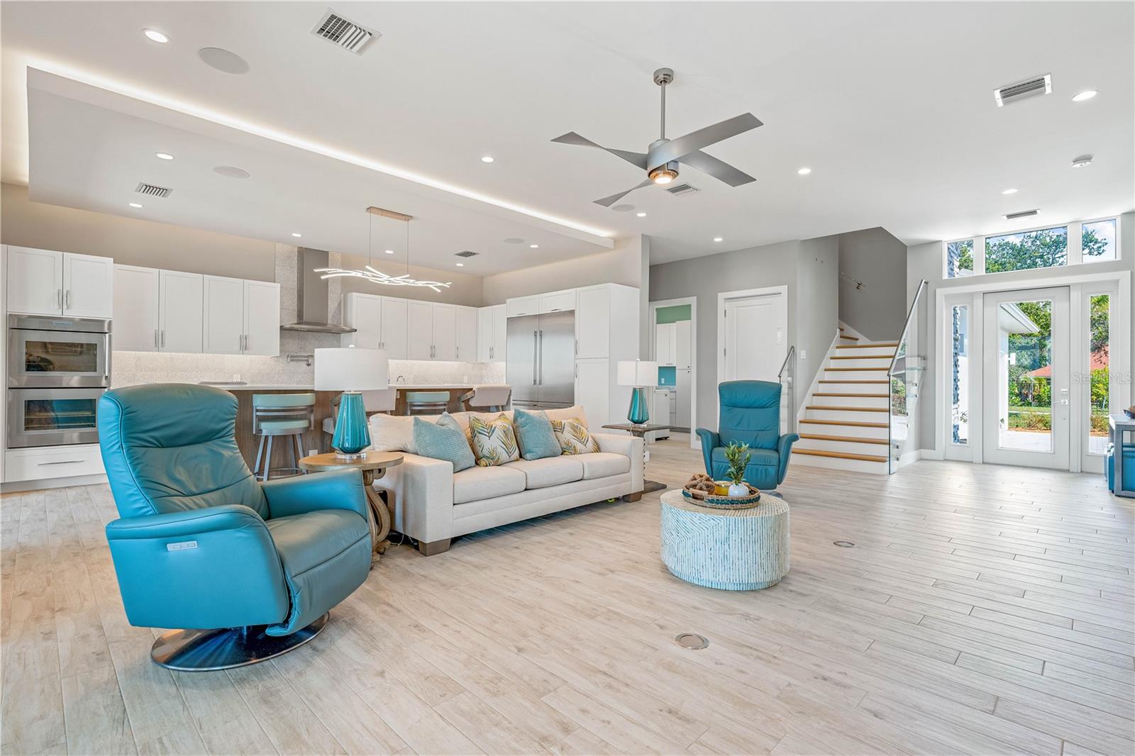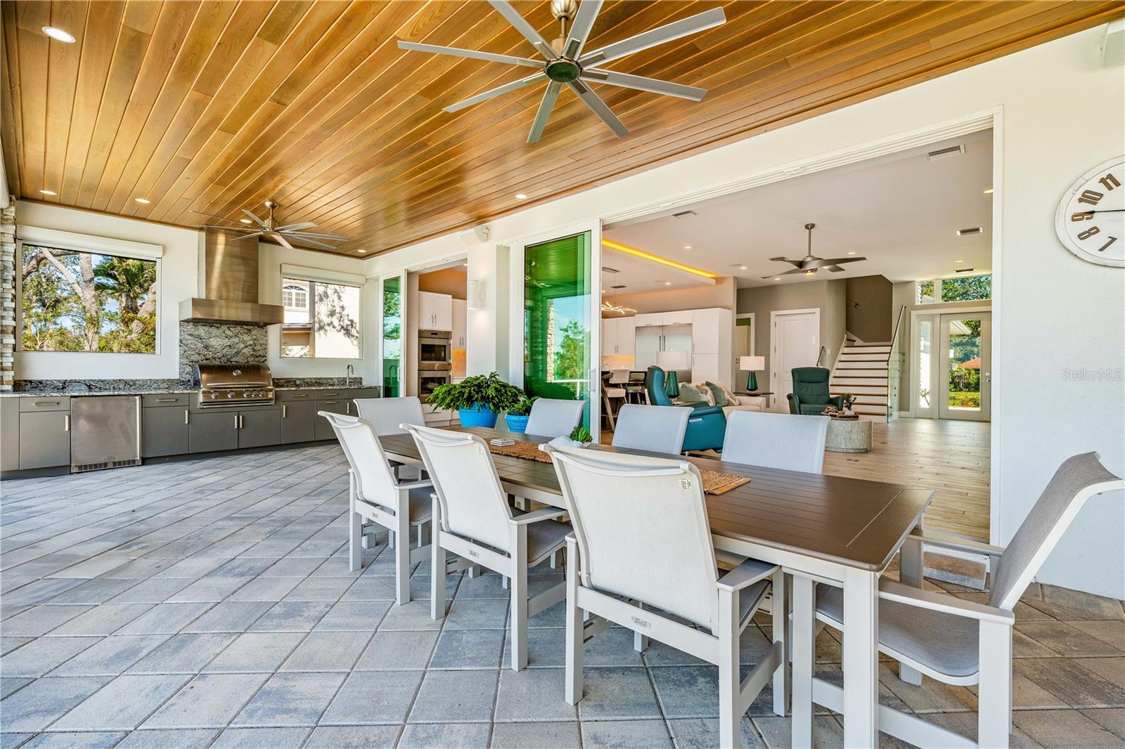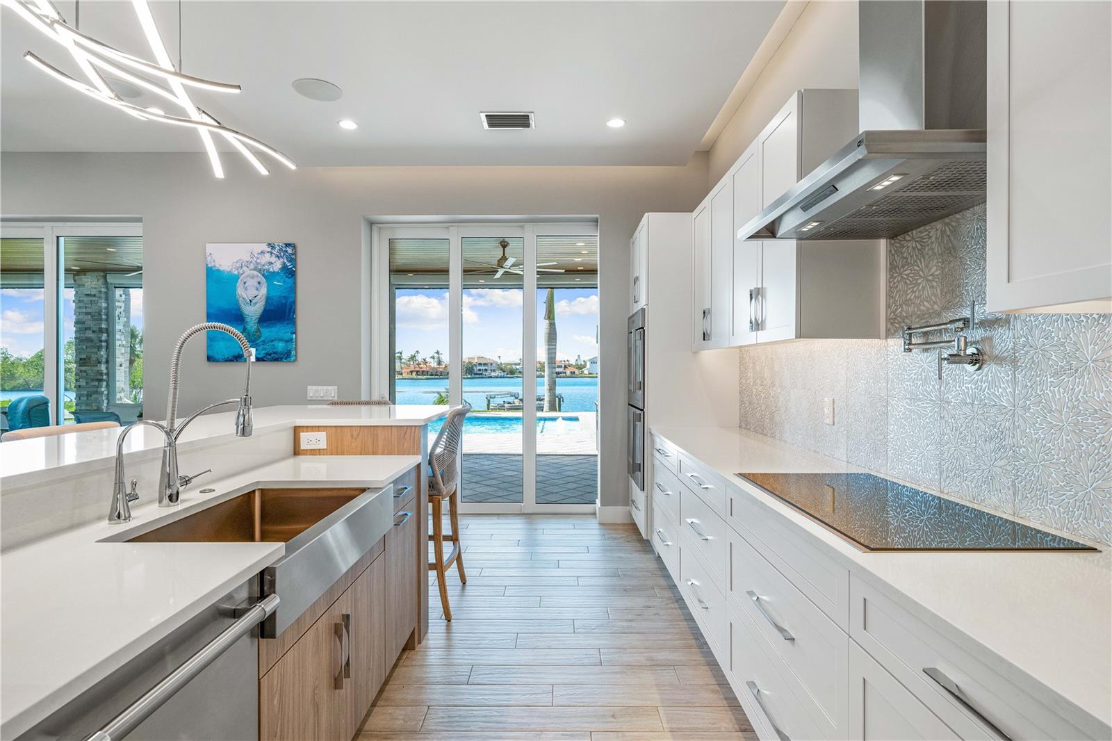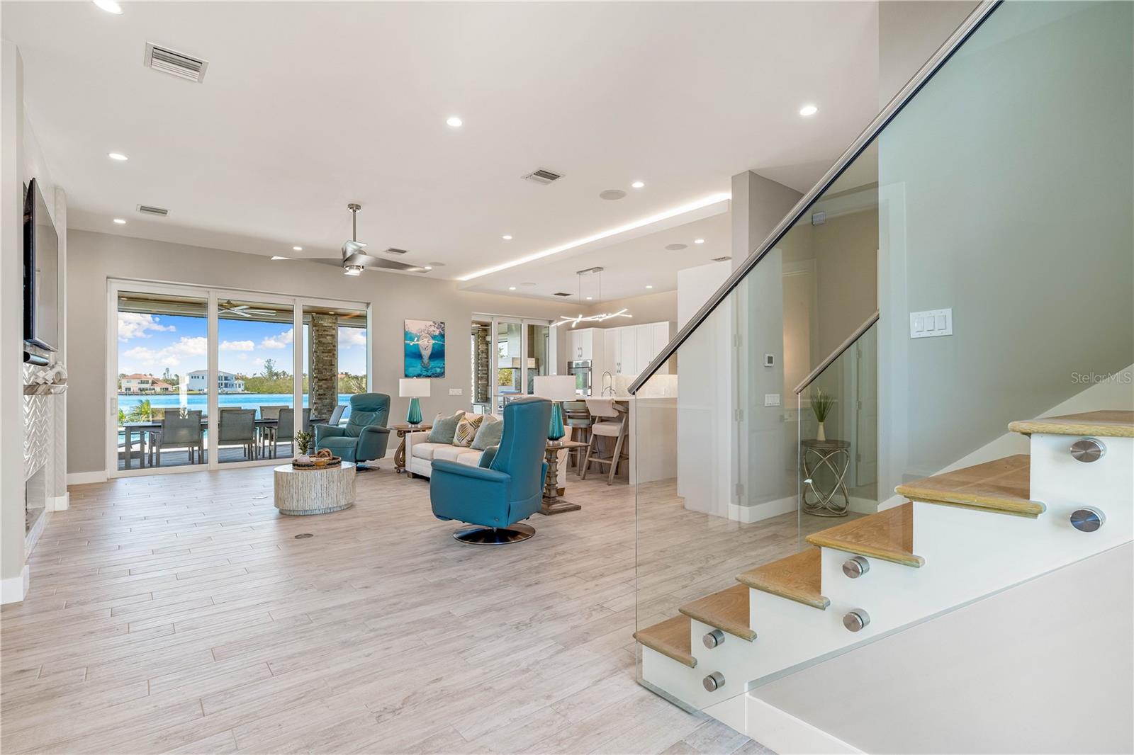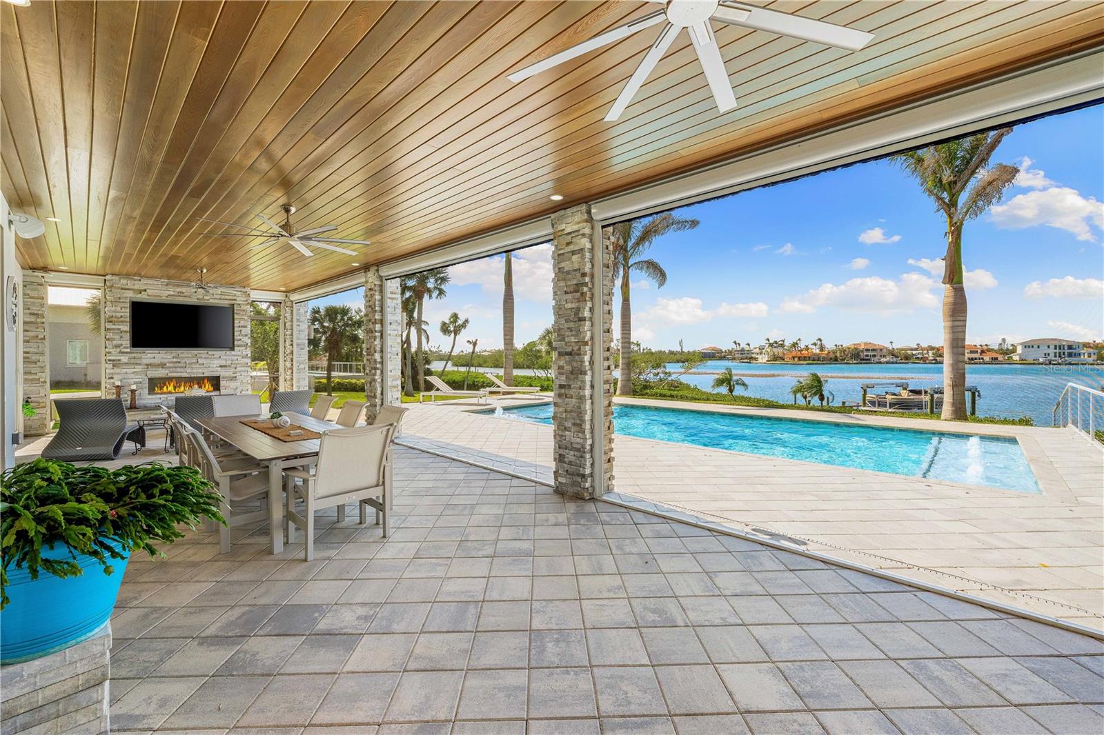 This stunning coastal waterfront estate is a fishing and boaters' dream. This property promises the sought-after Florida sunsets night after night! This private oasis sits on .65 acre and establishes security with a private solar powered gate. Walking into the foyer you experience the open floor plan with a linear gas fireplace in the great room, and high end finishes throughout. Pocket sliders line the great room, kitchen, and owner’s suite, with breathtaking views of the intracoastal that provides an abundance of natural light! The flow from the kitchen to the great room provides functionality for everyday living or entertaining. The kitchen provides stainless steel Thermador wifi-compatible appliances, a convection double oven, glass induction cooktop, microwave drawer, and an oversized refrigerator with two ice makers! It is also fitted with Italian tile backsplash! The Owners' suite is conveniently located on the first floor with the same beautiful views, a large shower, and a favorable walk-in closet. Other features of this spectacular home include a Sonos sound system, and an elevator to the 2nd floor. The elevator opens up to a loft and three additional bedrooms. Two of the three bedrooms include ensuites with a private patio and breathtaking views to the North and South of the intracoastal waterway. The 3rd bedroom shares the public bathroom. Once outside there is a spacious lanai with a fully equipped outdoor kitchen, including seating versatility for dining, watching your favorite tv programs, and entertaining. The lanai is also equipped with a linear gas fireplace, powered sun and storm shades, and a Sonos sound system. After a short walk down to the dock you will find easy access to a 10,000 lb boat lift with remote control operation. There is electric and a fresh water source for convenient fish and boat cleaning. Just 1.1 miles from Nokomis Beach, this estate allows for a quiet and private lifestyle and is within a short drive to vibrant downtown Venice and Sarasota. Don’t miss out on your chance for Coastal living! *Dont forget to click the virtual link* *This is turnkey optional*