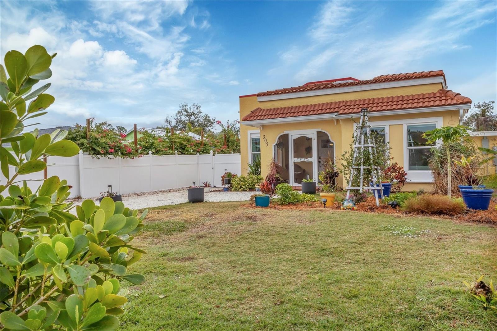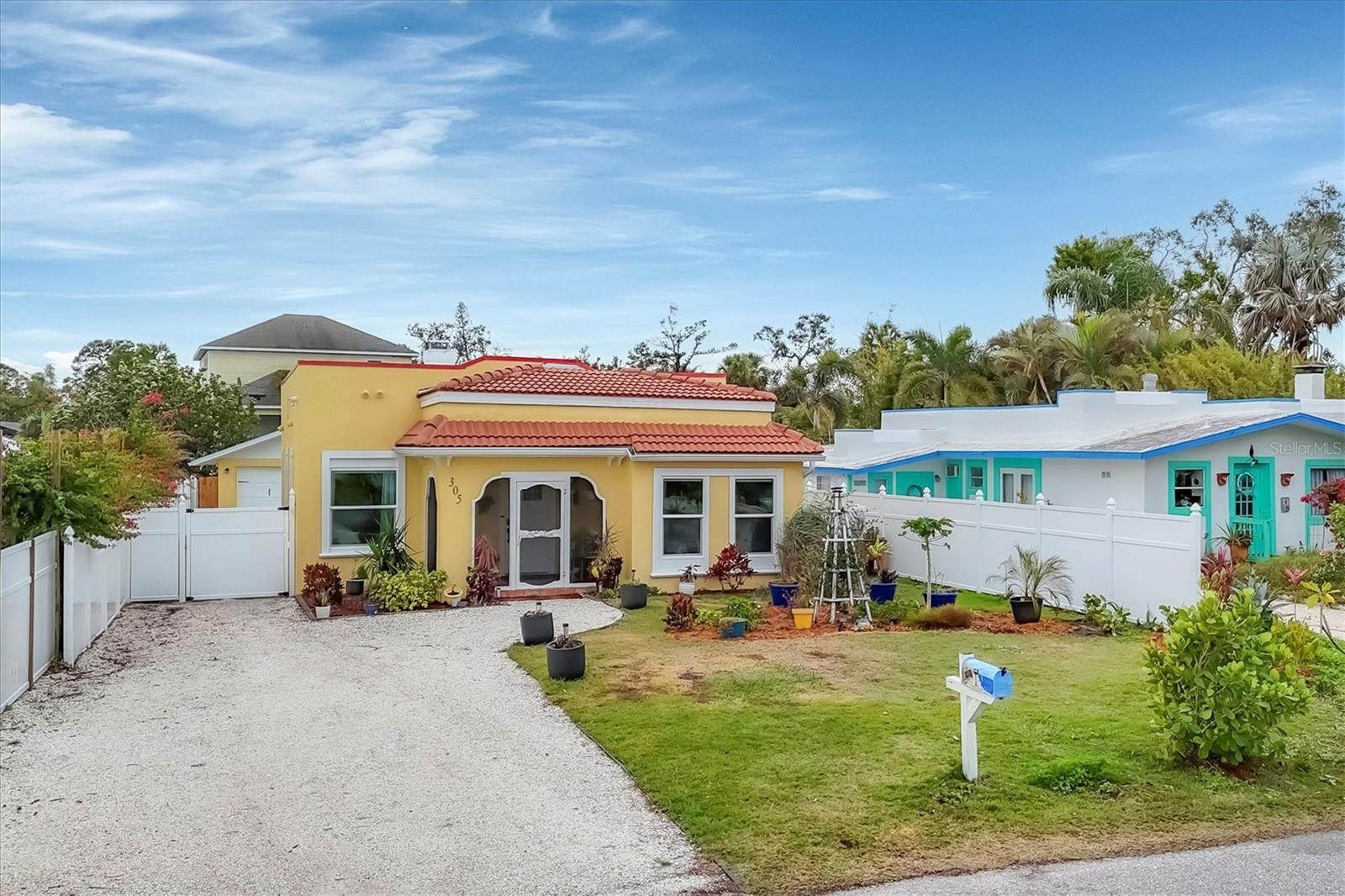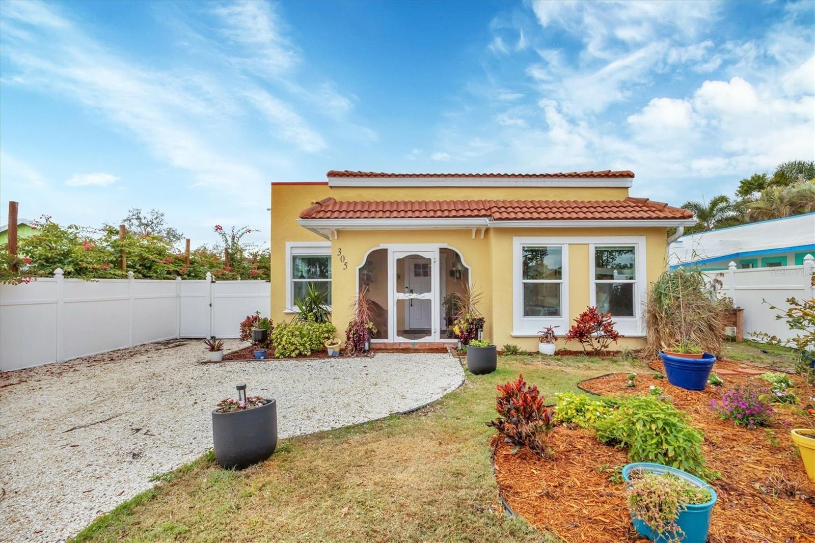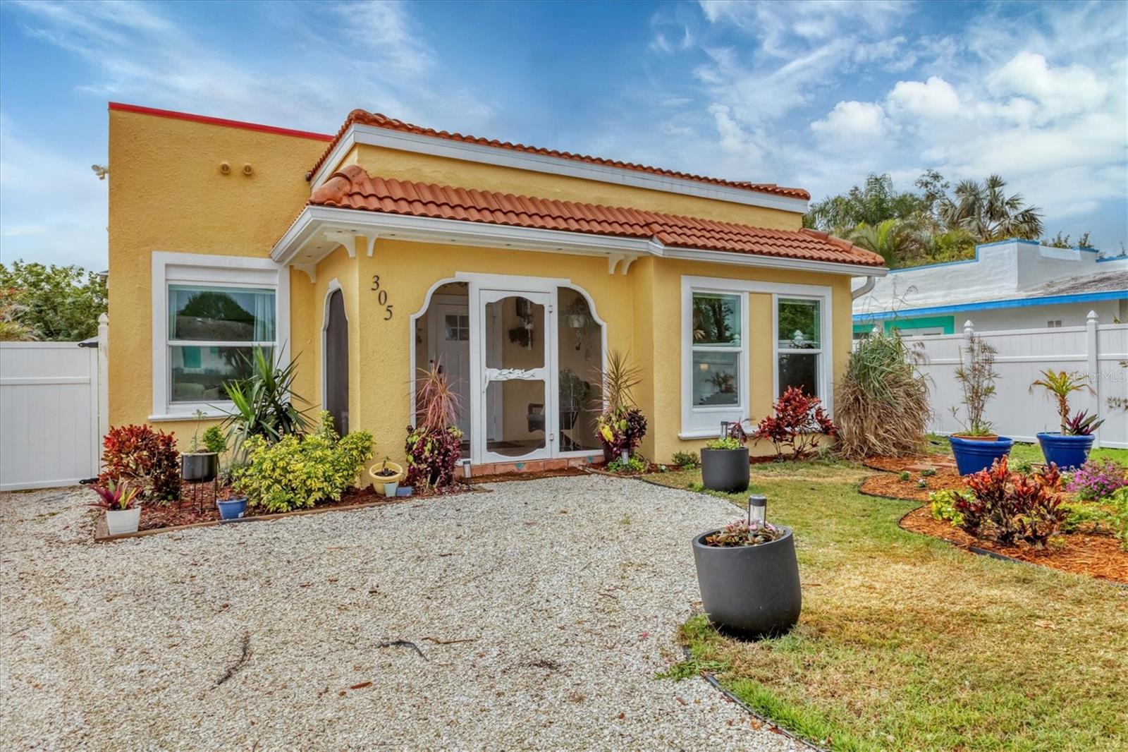 Charming 1926 Spanish Mediterranean in Bay Point, just a mile to Nokomis Beach! Step into a world of timeless charm with all modern upgrades you’ve been looking for. In the heart of Bay Point, this beautiful three-bedroom, 2.5-bath home is a gem that effortlessly blends classic Spanish Mediterranean style with contemporary finishes. Upon approach, envision yourself relaxing on the charming screened front porch as you take in the quiet neighborhood ambiance. Once inside, you are greeted with a bright open and airy living room with a gorgeous wood-burning fireplace, tongue and groove ceilings, and natural light filtering through two large windows. Guest bedroom suite is off the living room, offering ample privacy from the other bedrooms, and has an updated en-suite bath and step-in closet. The kitchen is the heart of this home and has been beautifully finished with wood cabinetry, granite counters and newer stainless steel appliances. Adjacent to the kitchen is a generous dining space for gatherings with a large window to the side yard and offering filtered light for an elegant dining experience. The primary bedroom is positioned at rear of the home with a high ceiling and a luxurious updated bath including a huge shower, stunning tile work and a walk-in closet with built-in storage solutions. Step outside to your tranquil, private pool area that is fully fenced and with pavers, ideal for relaxing and taking the sand off after a long day at the beach. Previously used as a hobbyist’s dream space, the oversized two-car garage offers tons of storage options and plenty of room for your creative projects. Create your dream outdoor oasis or garden in the fully fenced backyard, brimming with potential. This home exudes character with every corner telling a story of the past yet offering all modern amenities you desire. See for yourself why this home is the one you have been waiting for.