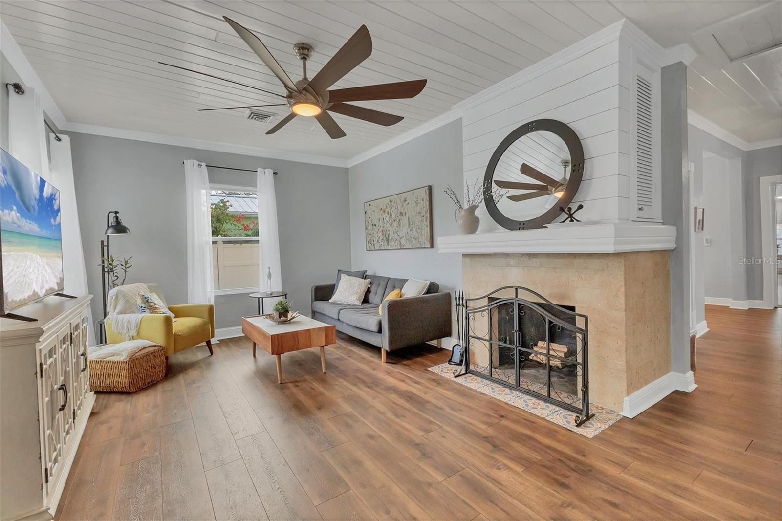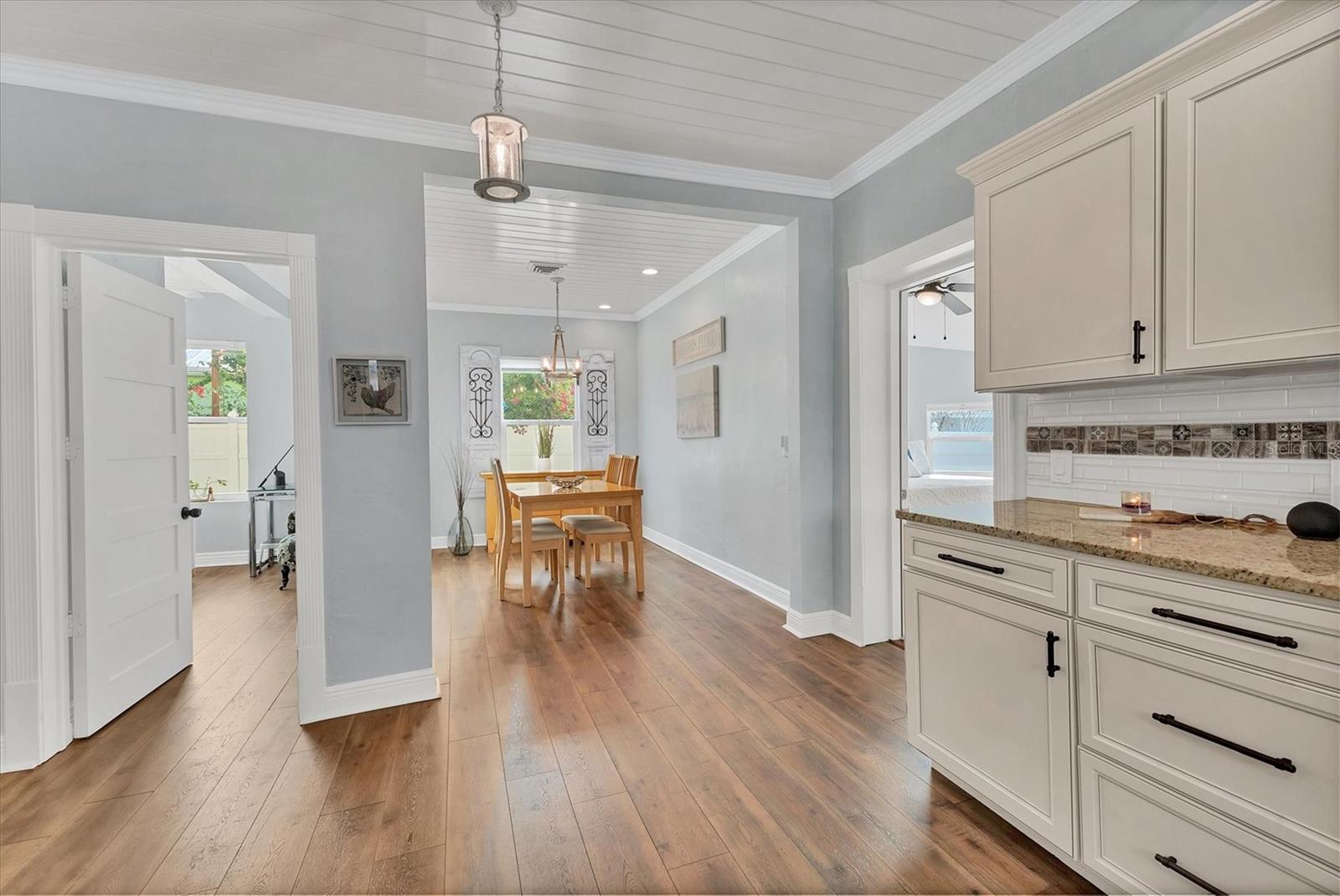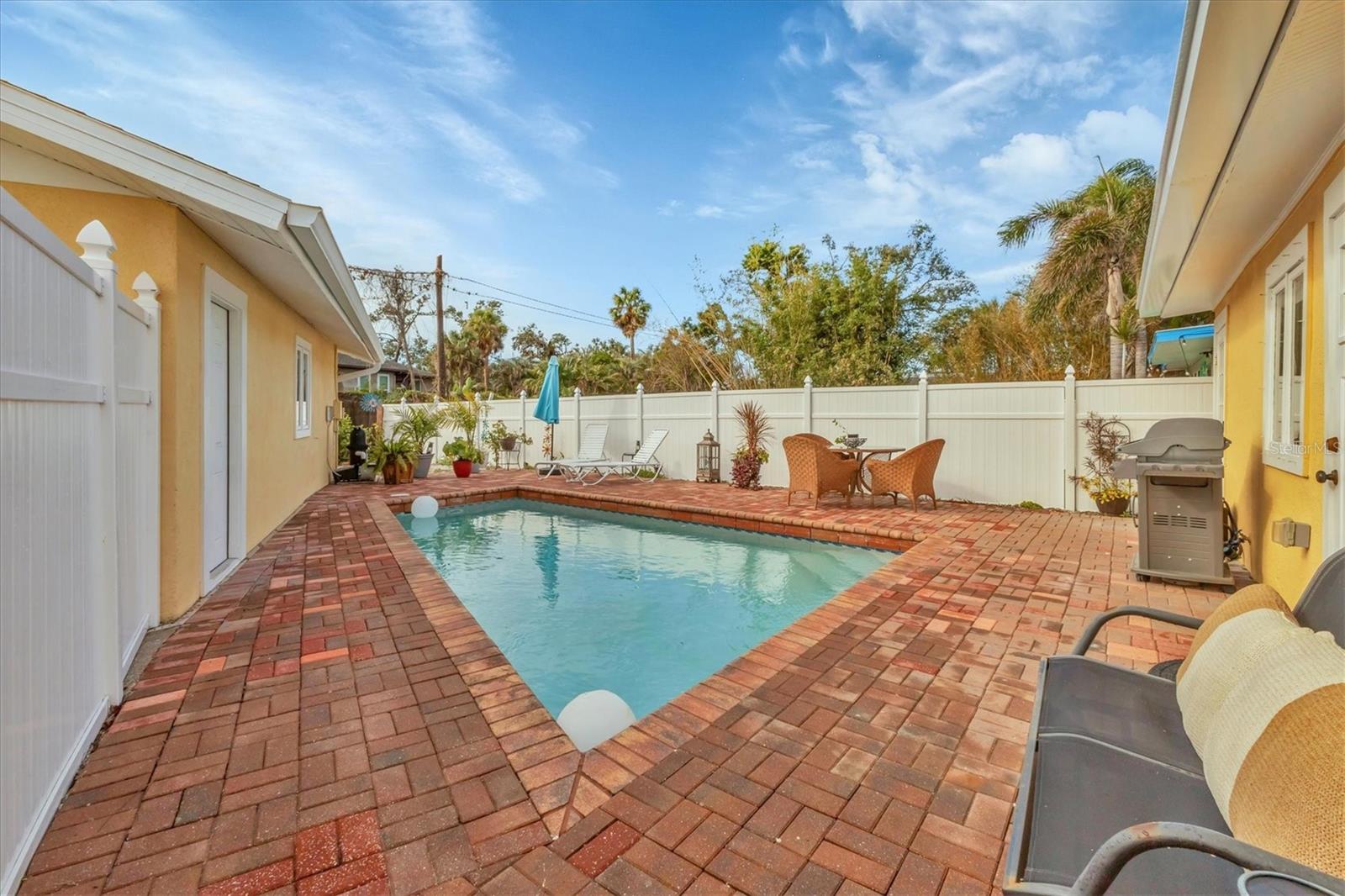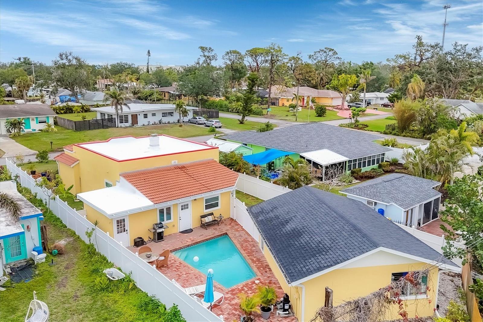 Charming 1926 Spanish Mediterranean in Bay Point, just a mile to Nokomis Beach! Step into a world of timeless charm with all modern upgrades you’ve been looking for. In the heart of Bay Point, this beautiful three-bedroom, 2.5-bath home is a gem that effortlessly blends classic Spanish Mediterranean style with contemporary finishes. Upon approach, envision yourself relaxing on the charming screened front porch as you take in the quiet neighborhood ambiance. Once inside, you are greeted with a bright open and airy living room with a gorgeous wood-burning fireplace, tongue and groove ceilings, and natural light filtering through two large windows. Guest bedroom suite is off the living room, offering ample privacy from the other bedrooms, and has an updated en-suite bath and step-in closet. The kitchen is the heart of this home and has been beautifully finished with wood cabinetry, granite counters and newer stainless steel appliances. Adjacent to the kitchen is a generous dining space for gatherings with a large window to the side yard and offering filtered light for an elegant dining experience. The primary bedroom is positioned at rear of the home with a high ceiling and a luxurious updated bath including a huge shower, stunning tile work and a walk-in closet with built-in storage solutions. Step outside to your tranquil, private pool area that is fully fenced and with pavers, ideal for relaxing and taking the sand off after a long day at the beach. Previously used as a hobbyist’s dream space, the oversized two-car garage offers tons of storage options and plenty of room for your creative projects. Create your dream outdoor oasis or garden in the fully fenced backyard, brimming with potential. This home exudes character with every corner telling a story of the past yet offering all modern amenities you desire. See for yourself why this home is the one you have been waiting for.